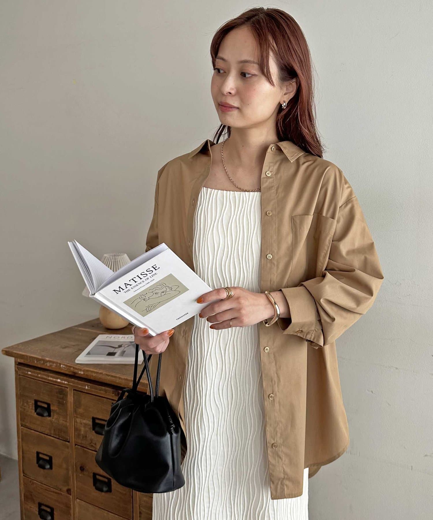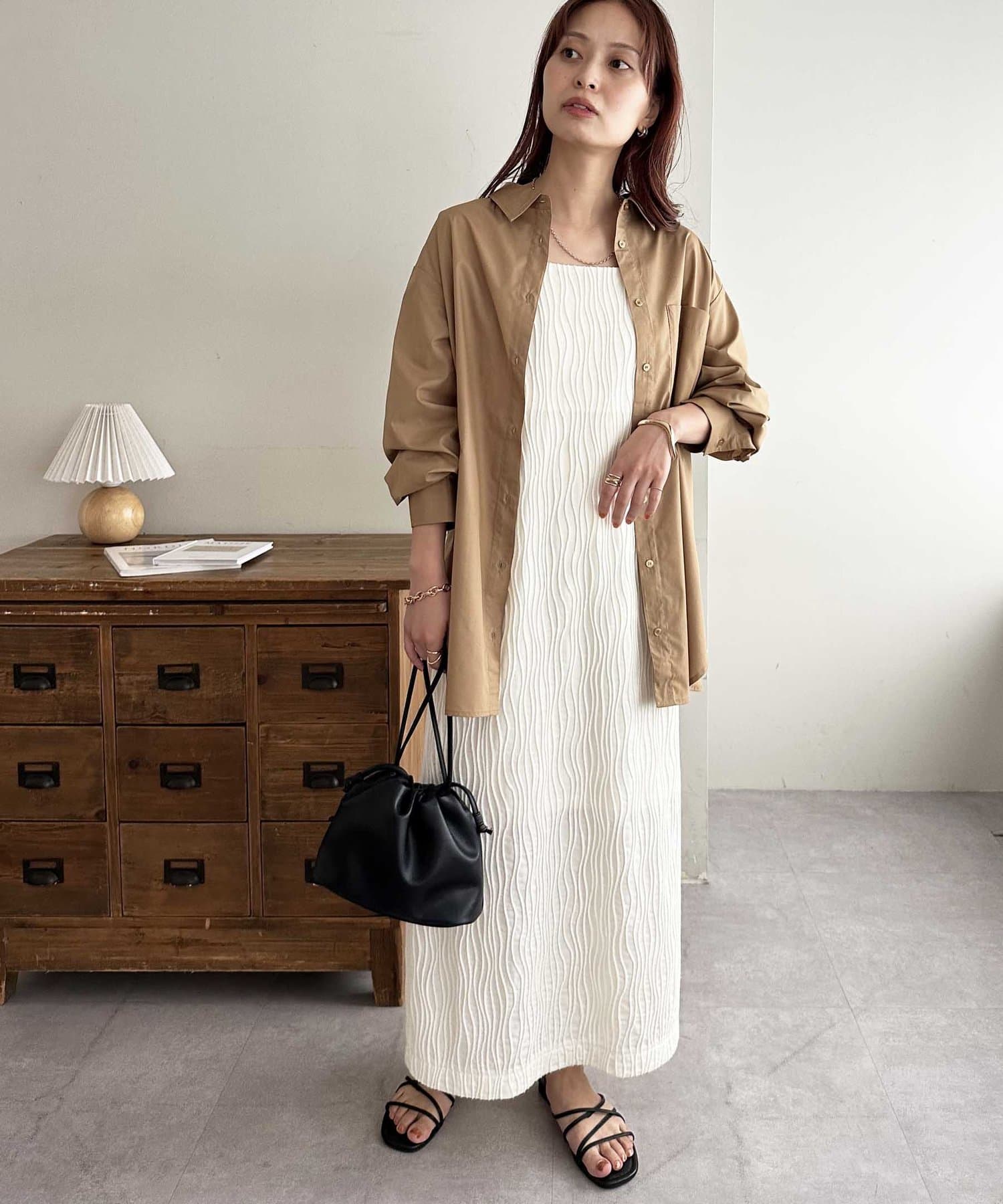 ・フロントを開けてタンクやキャミに重ねれば、軽アウターのような抜け感スタイリングに