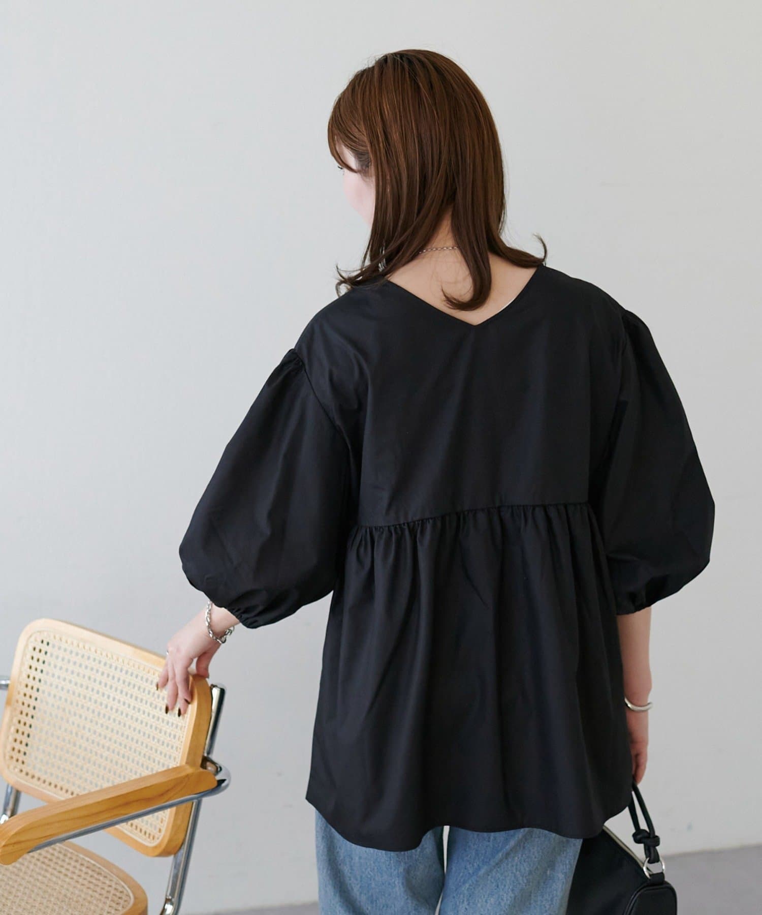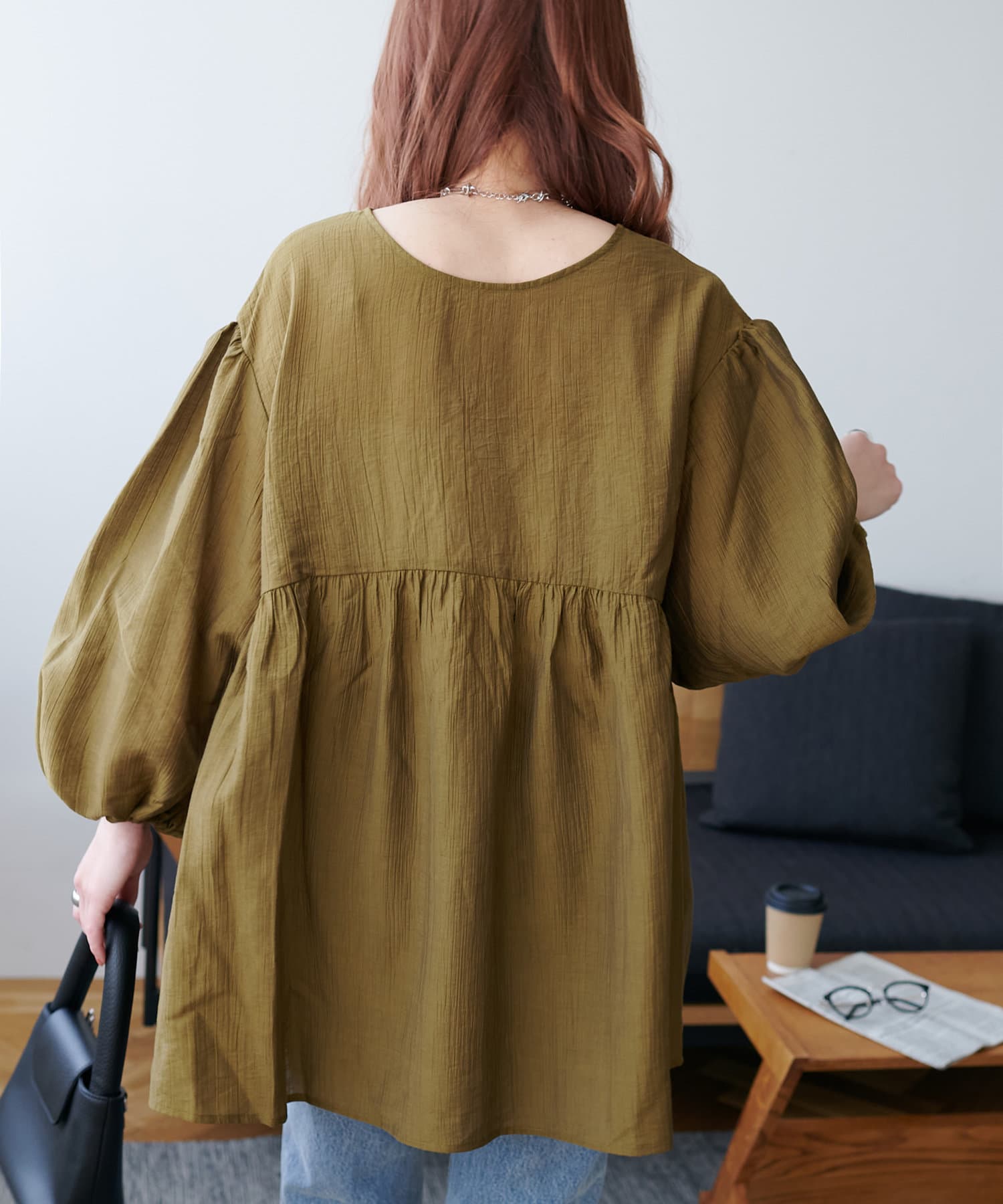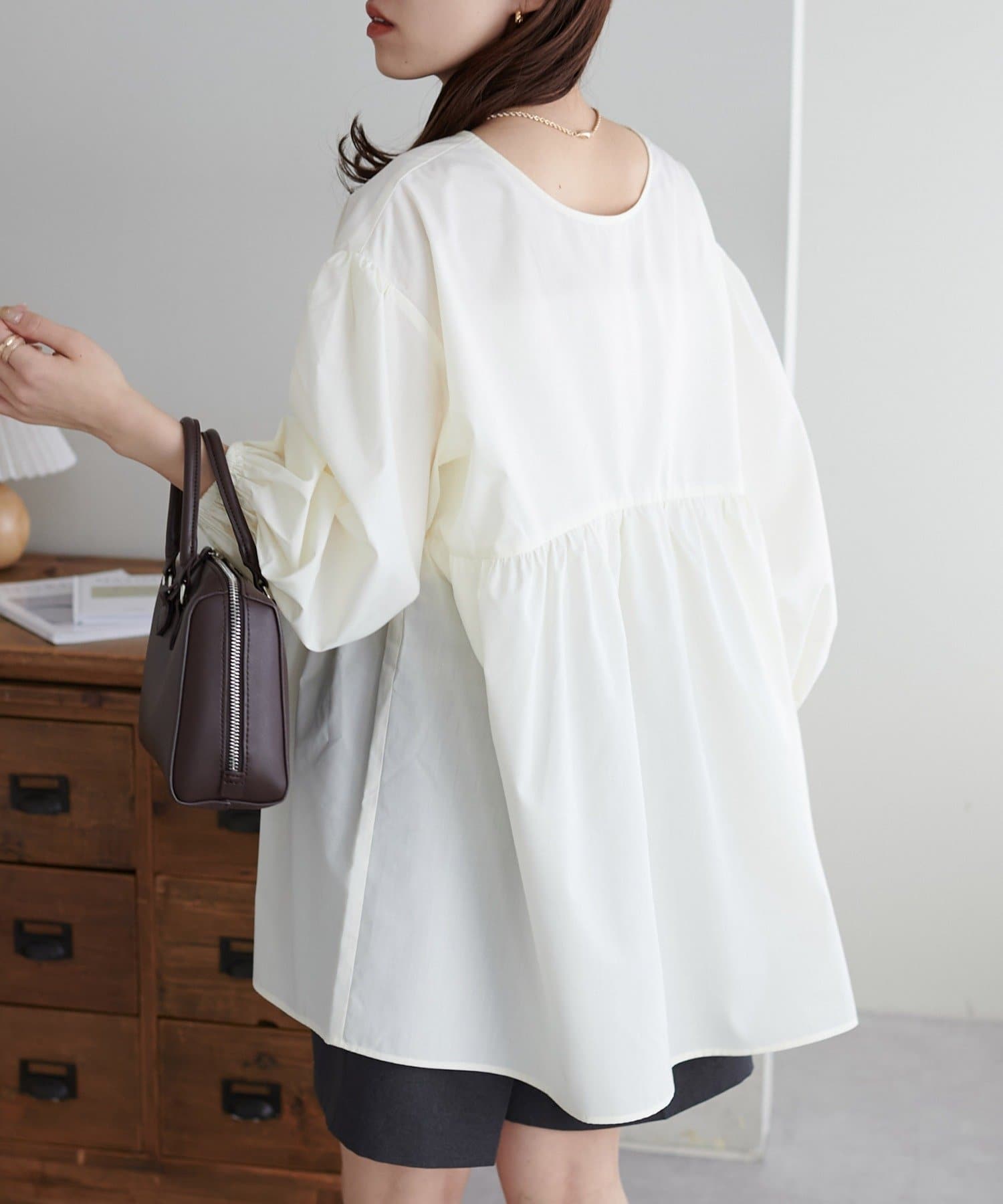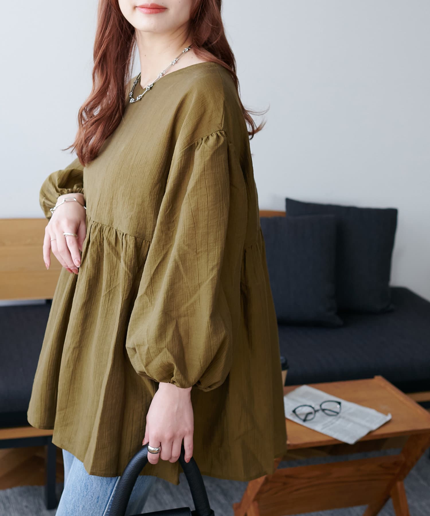 ・程よいボリューム感のあるバルーンスリーブで二の腕カバー、体型問わず着やすいシルエット