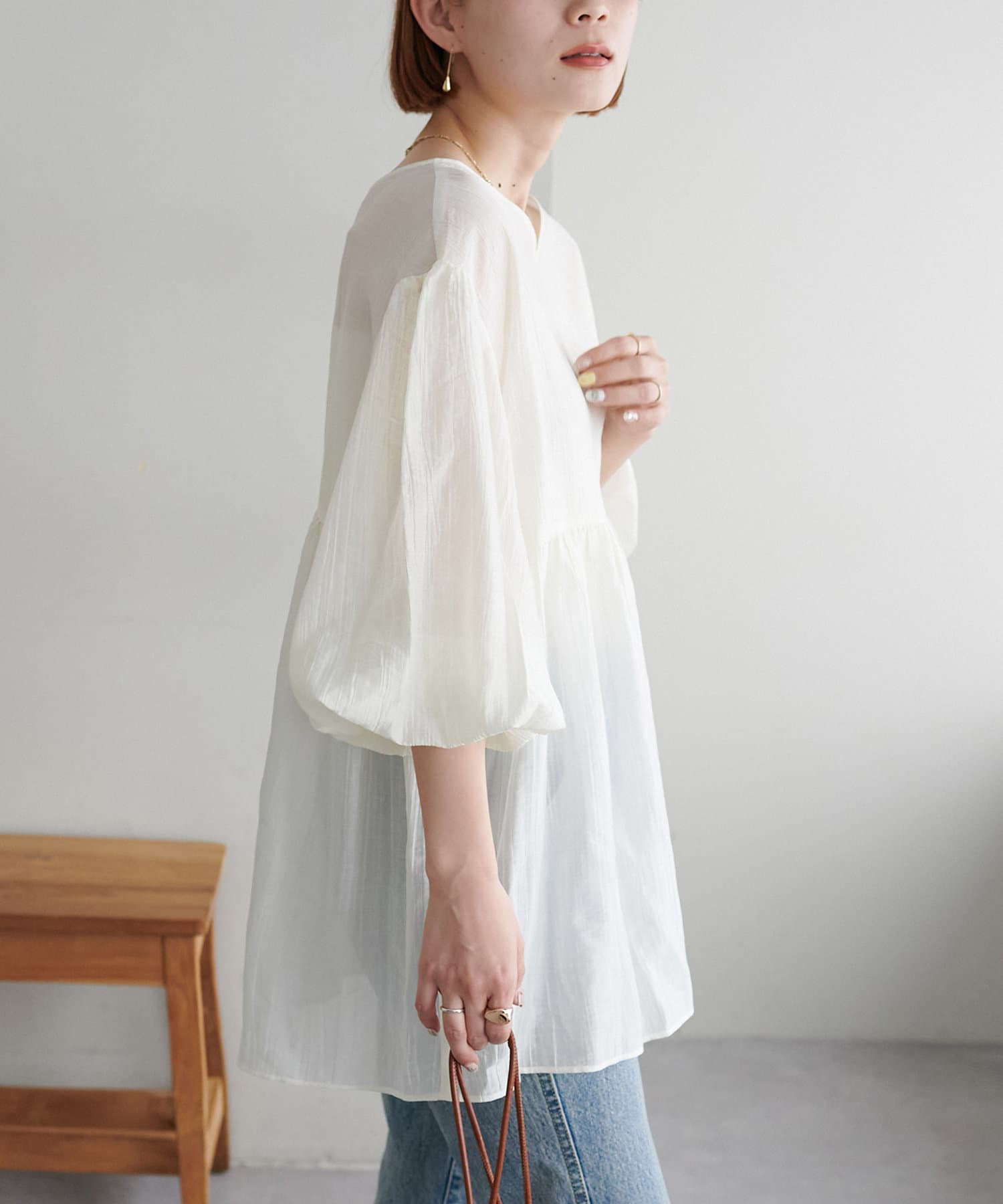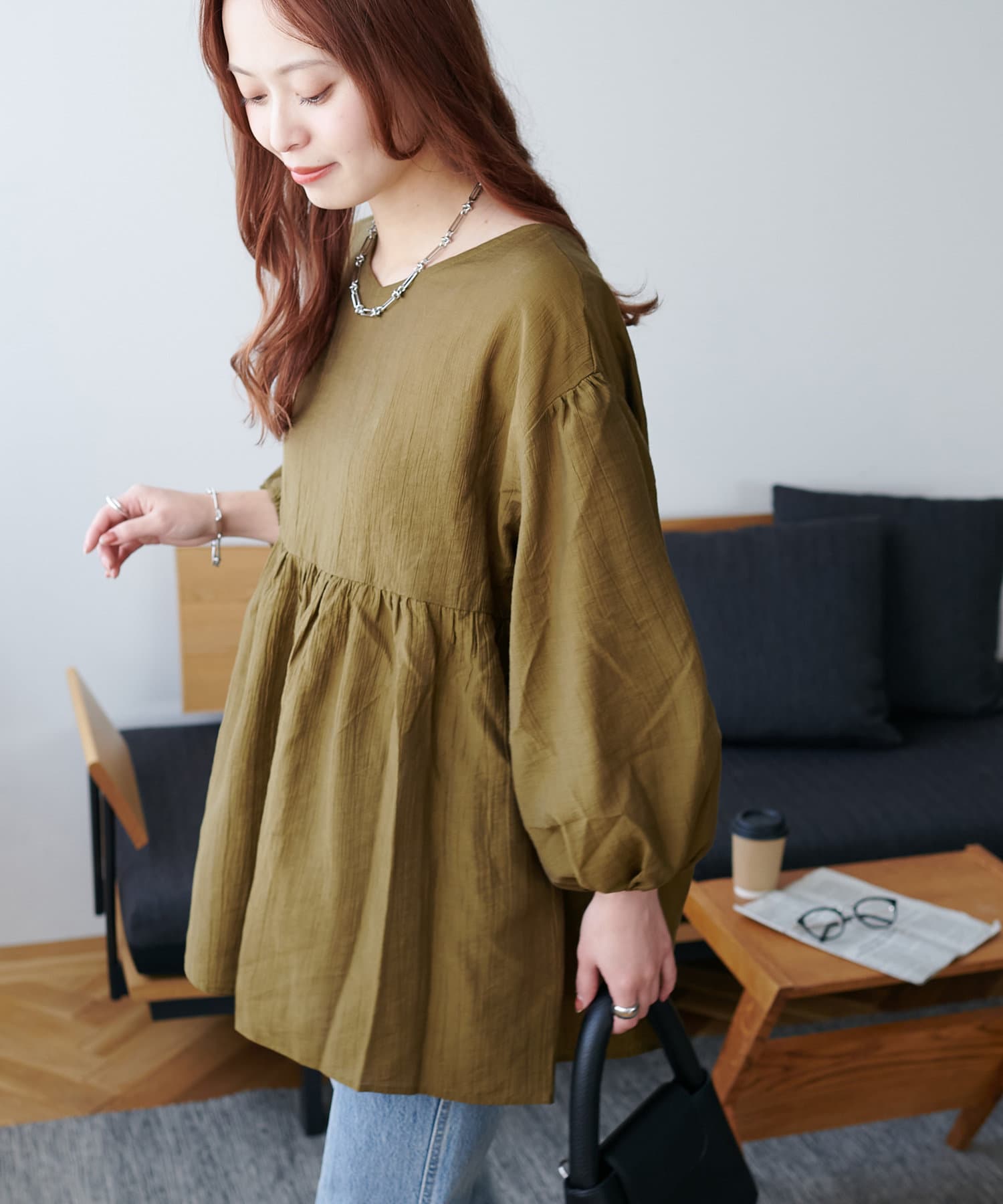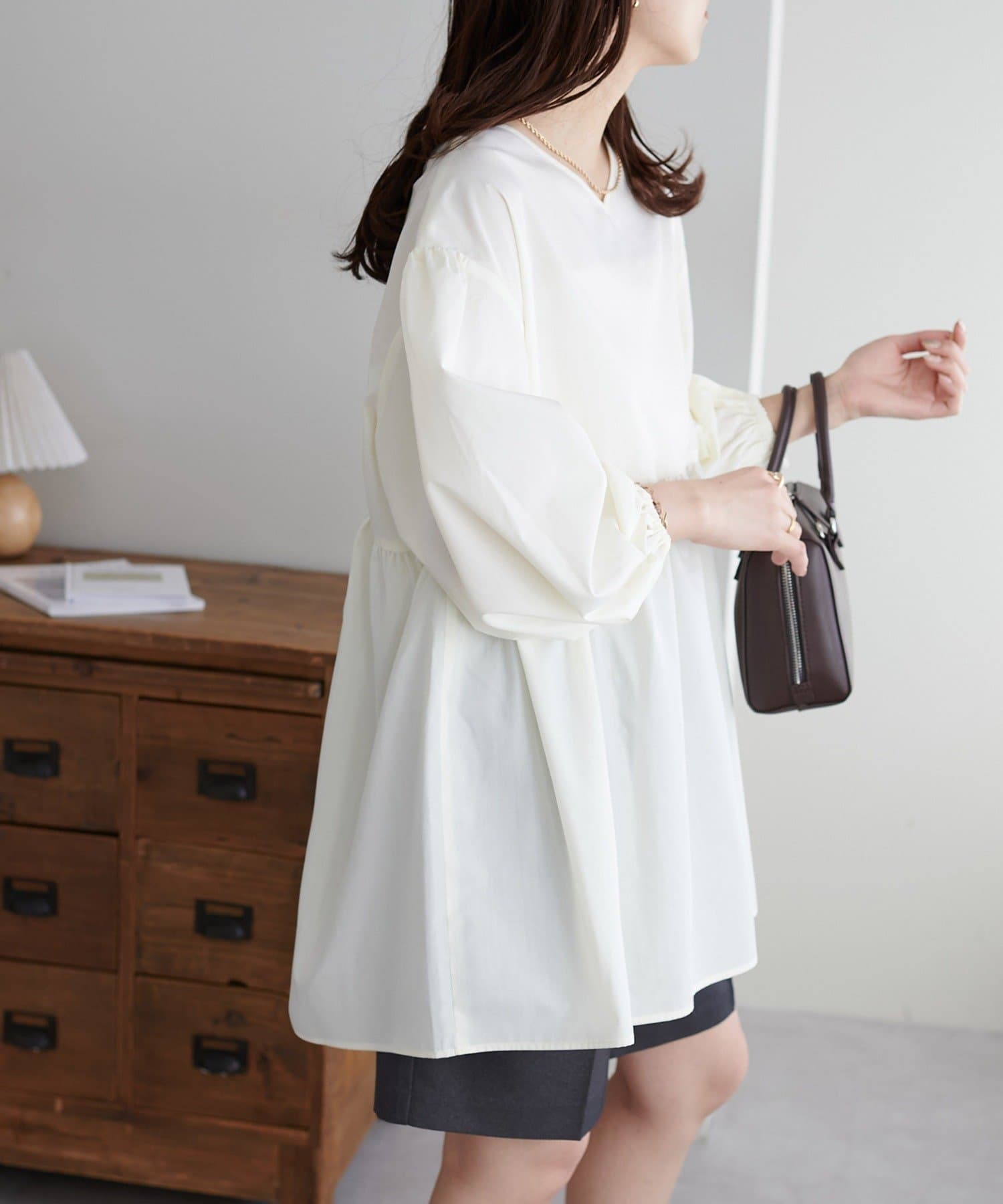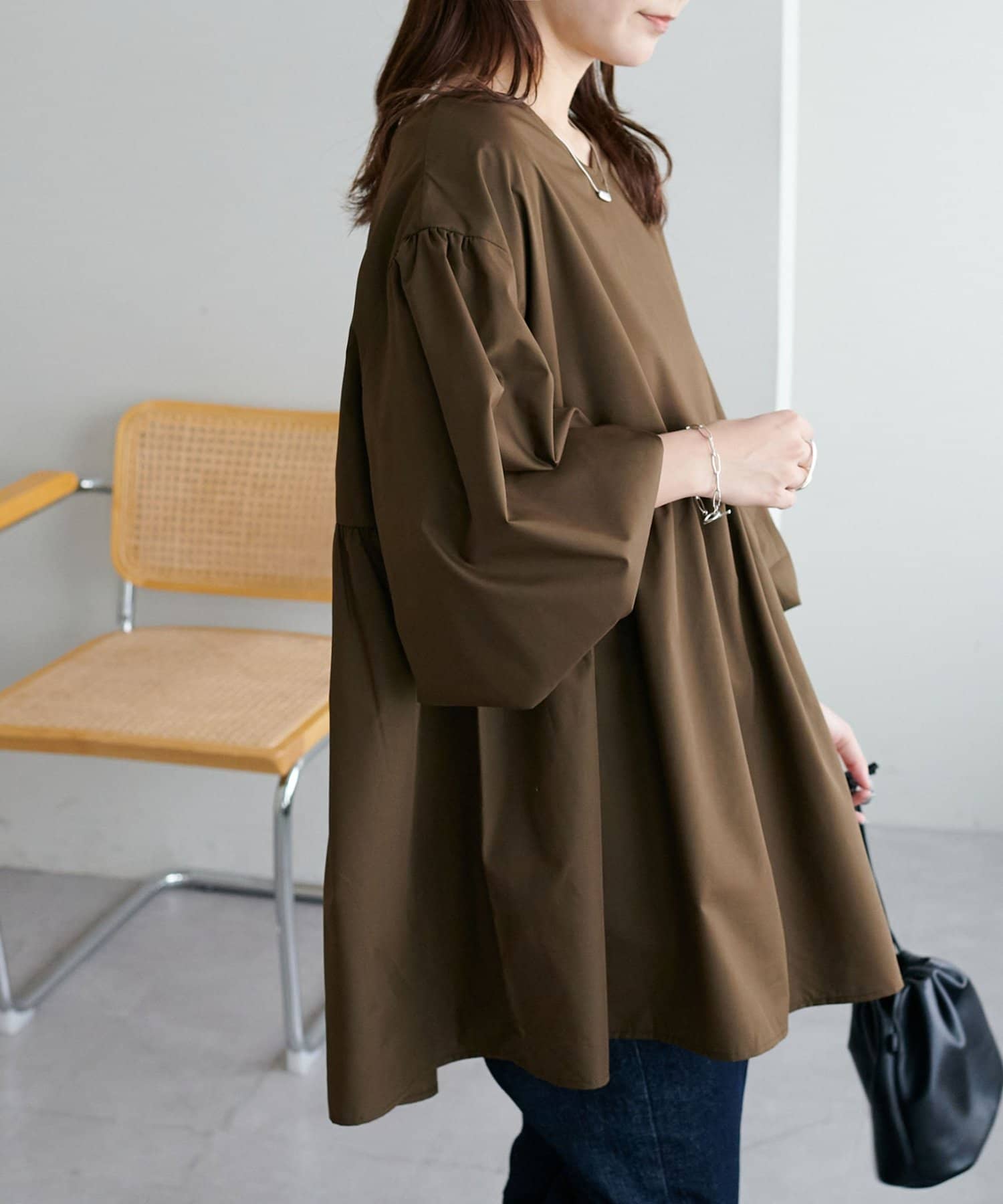 ・程よいボリューム感のあるバルーンスリーブで二の腕カバー、体型問わず着やすいシルエット