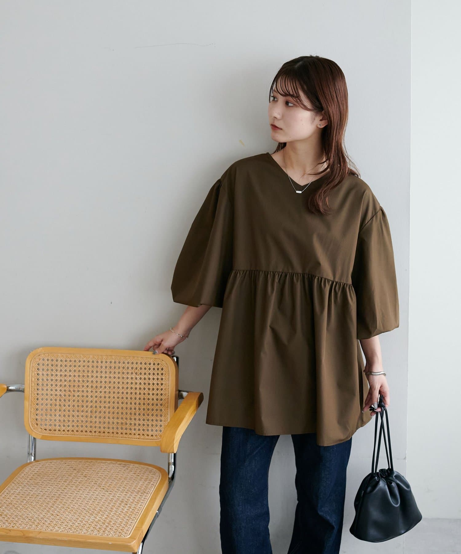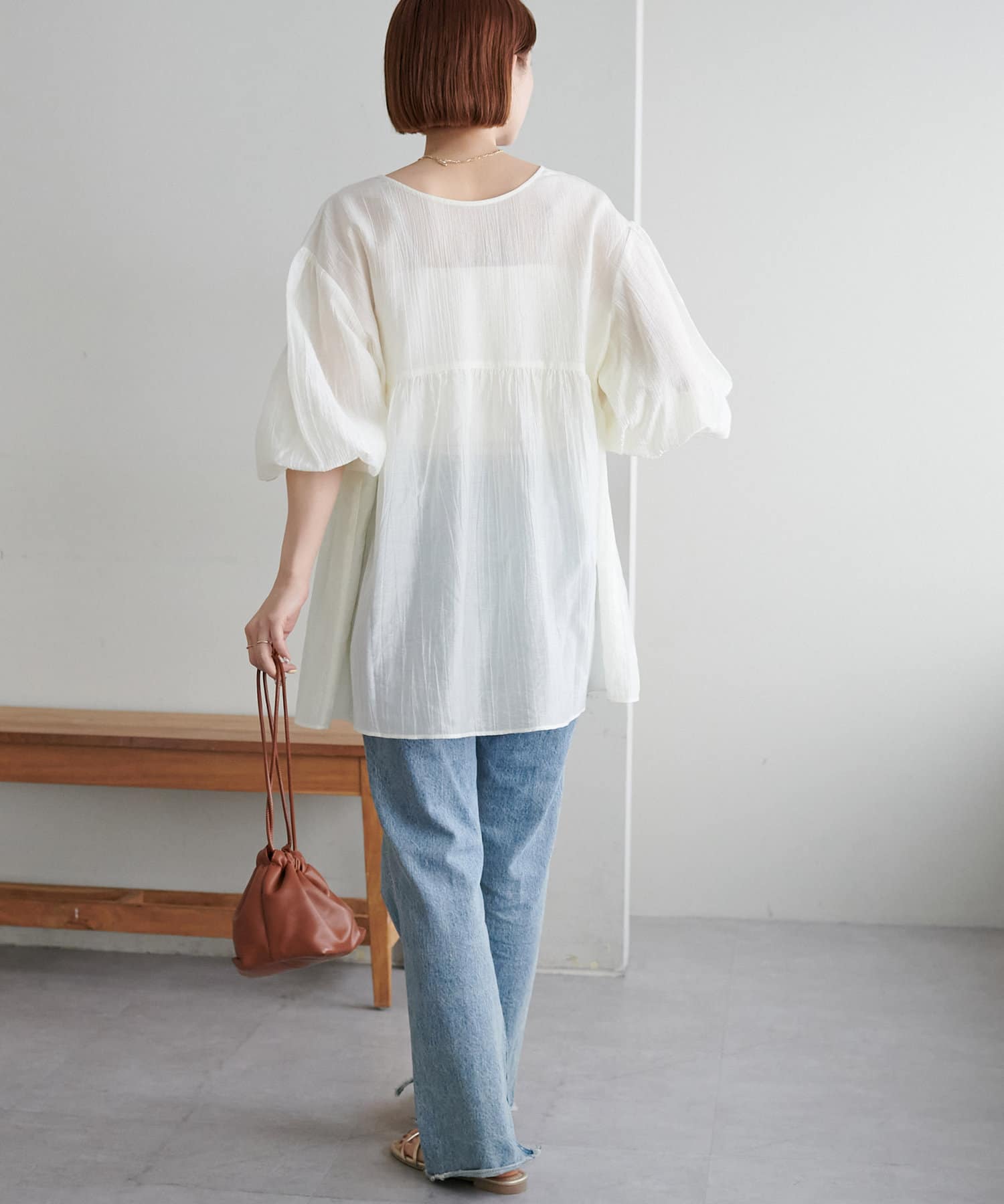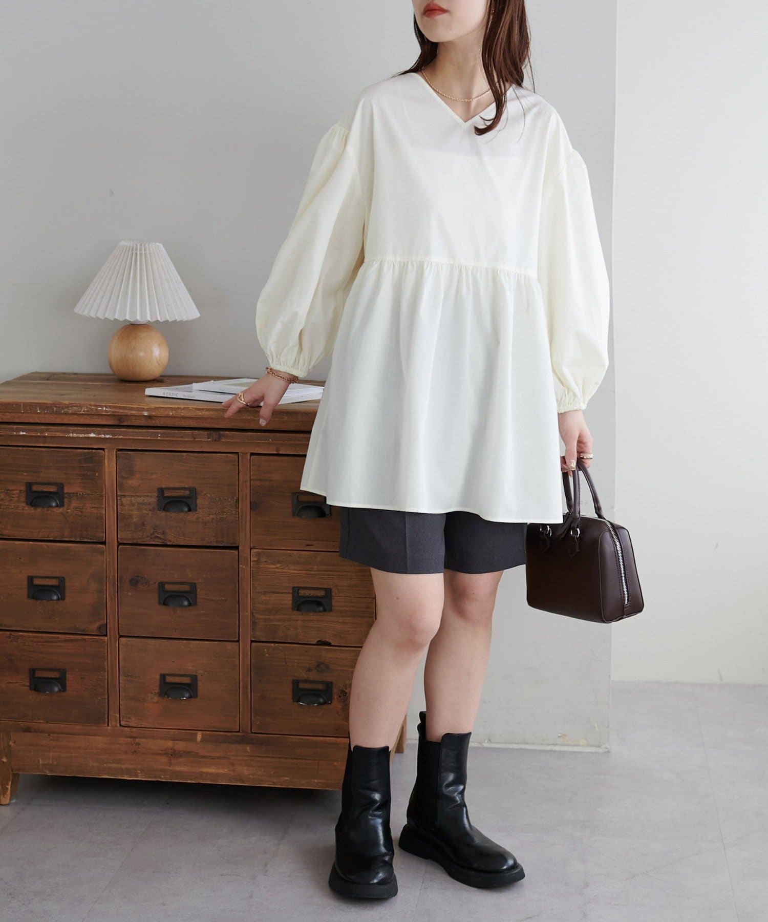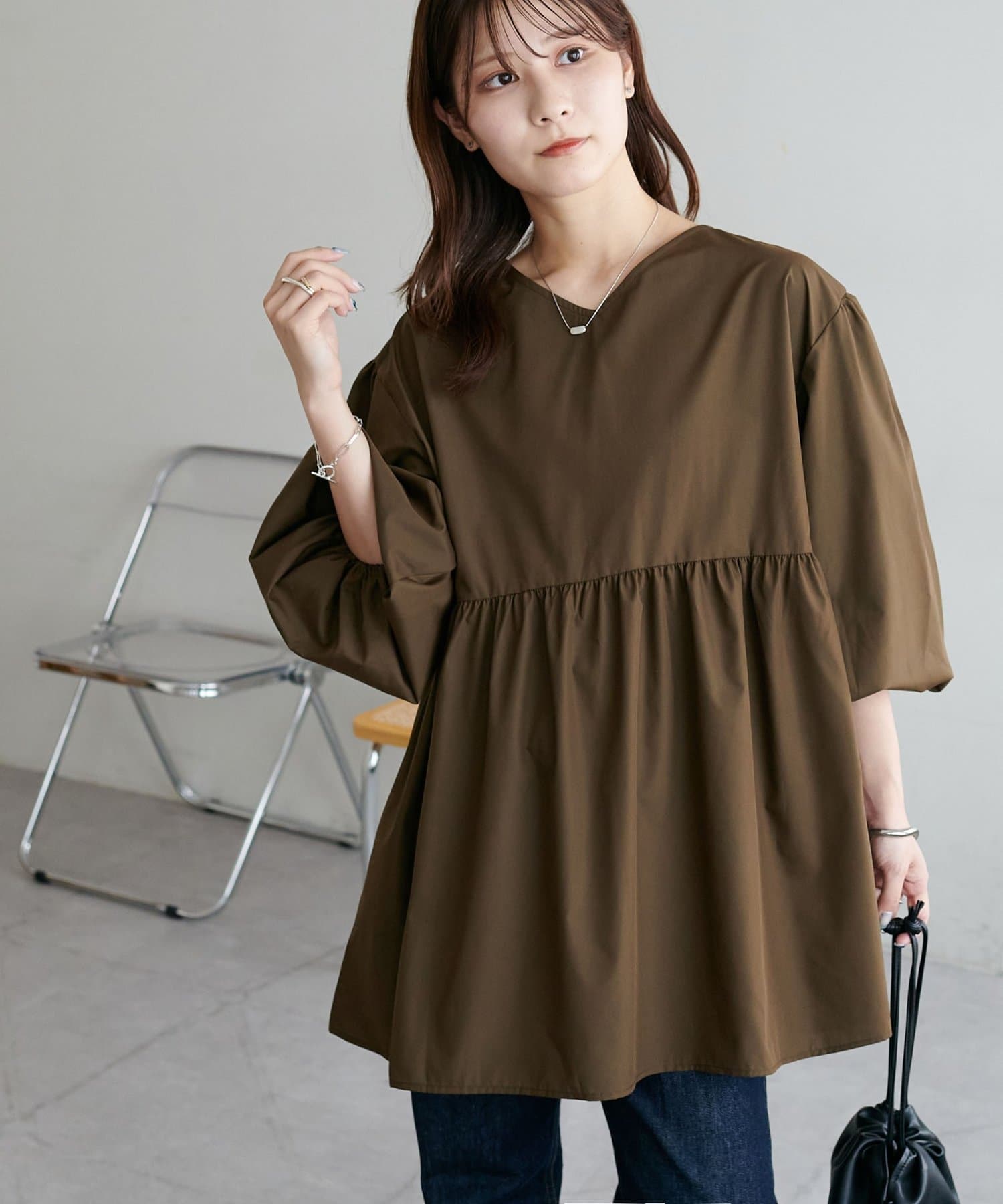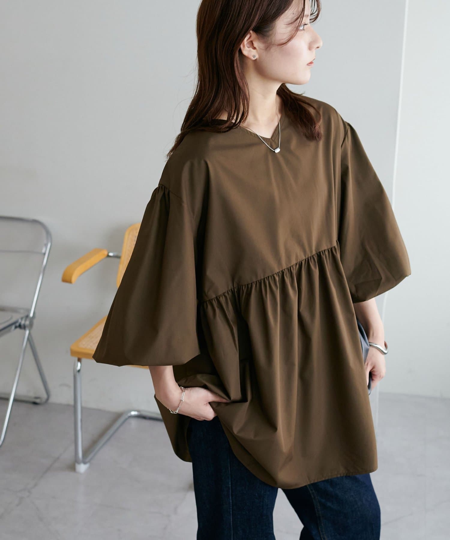 ・程よいボリューム感のあるバルーンスリーブで二の腕カバー、体型問わず着やすいシルエット