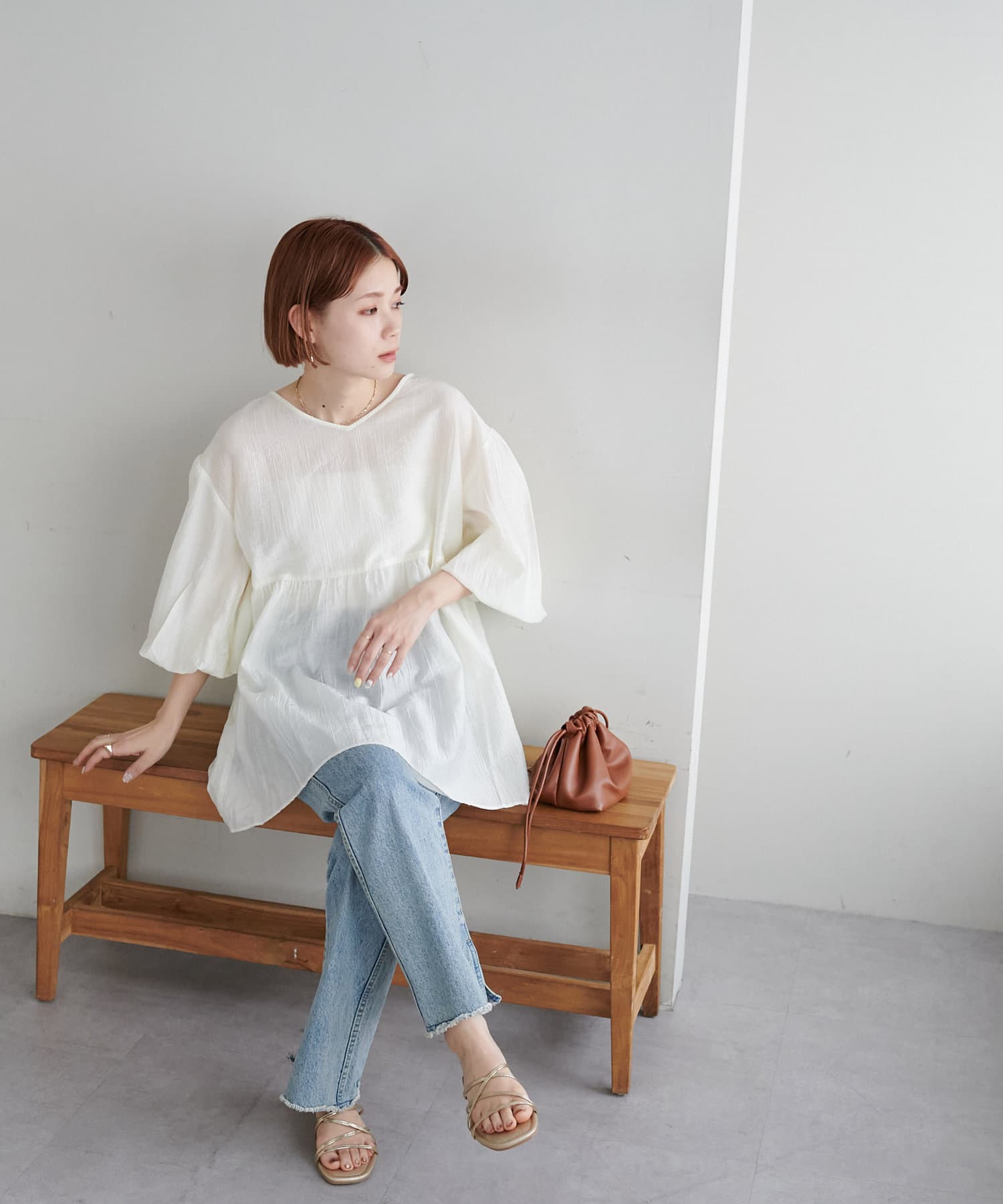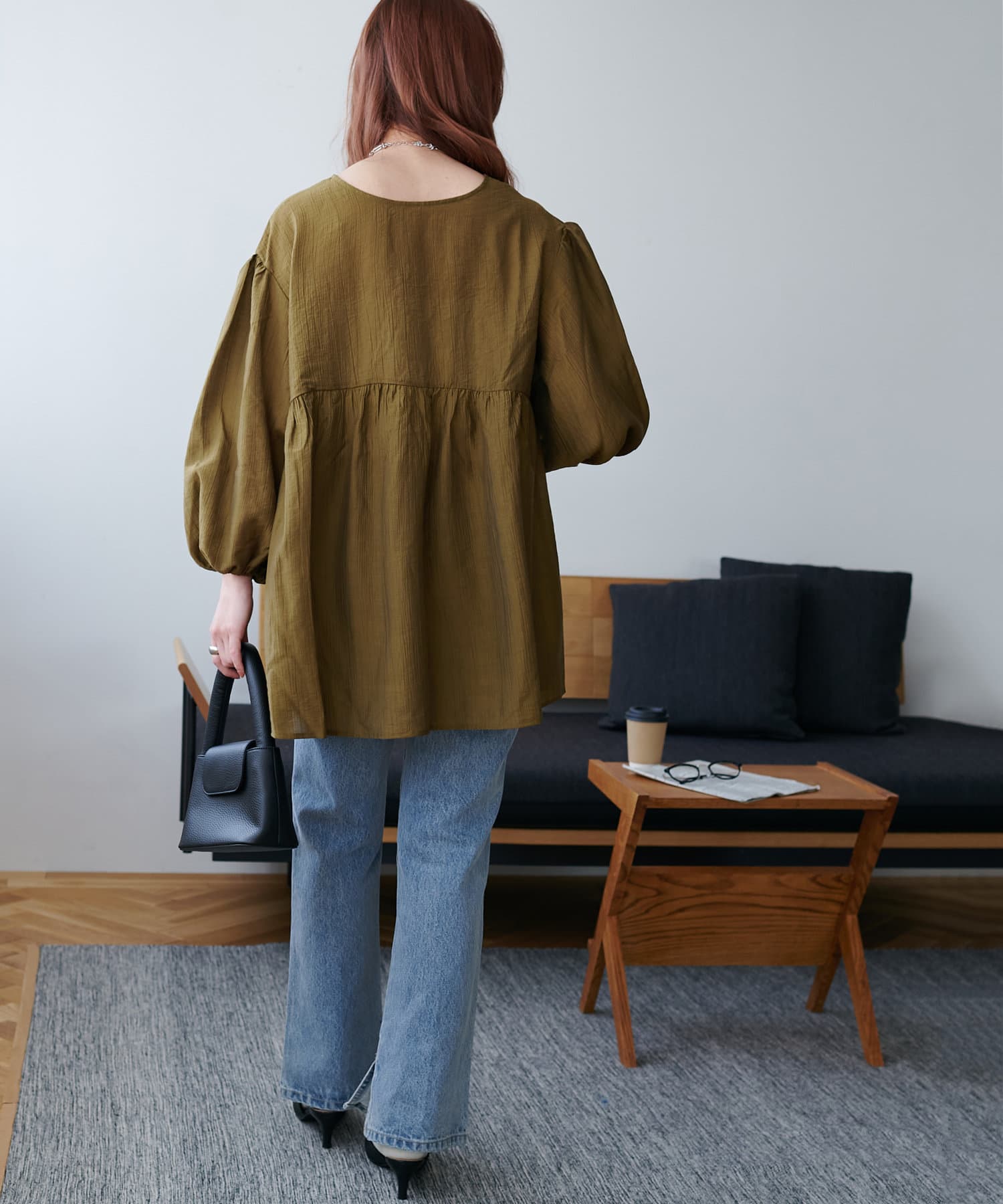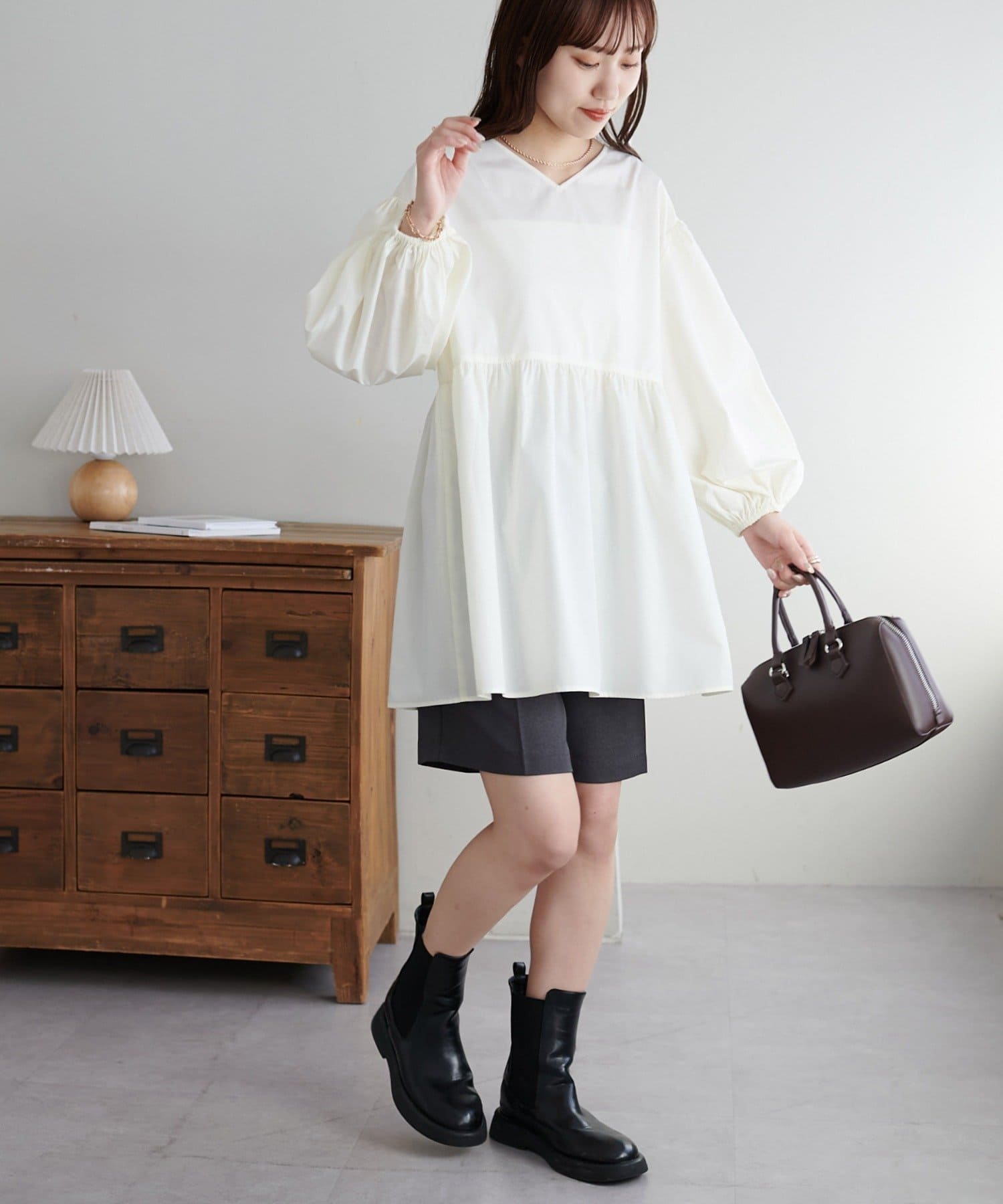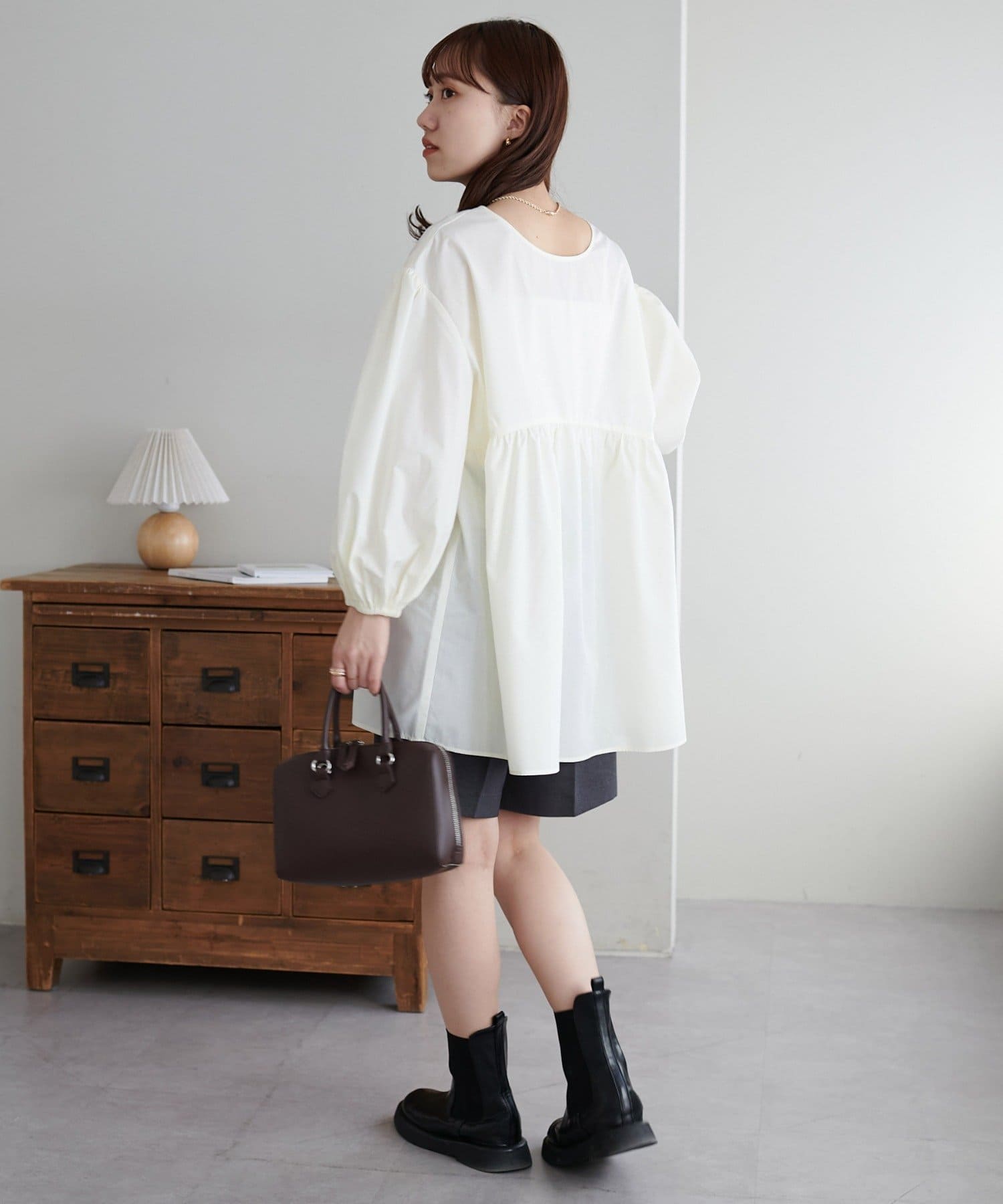・程よいボリューム感のあるバルーンスリーブで二の腕カバー、体型問わず着やすいシルエット