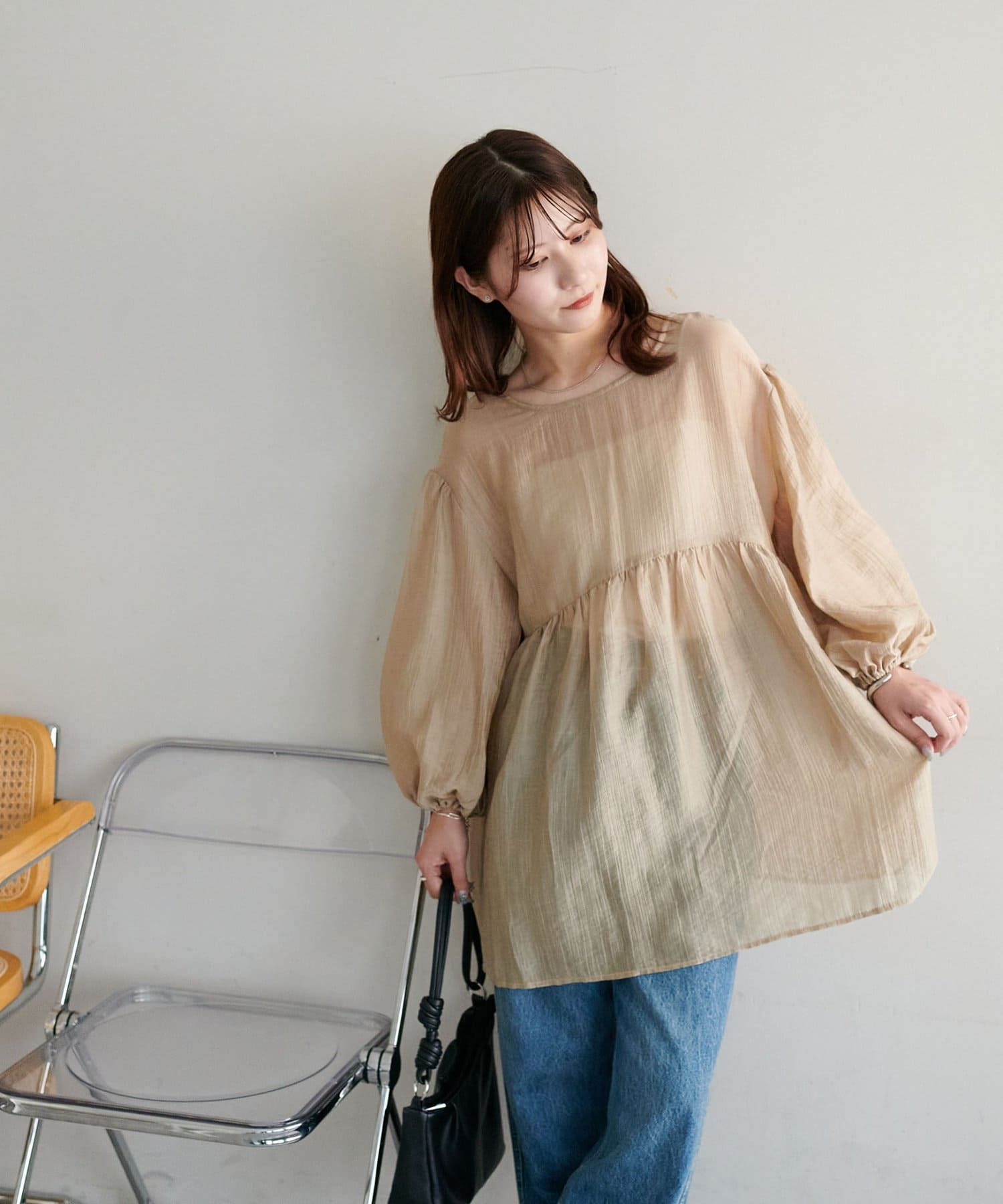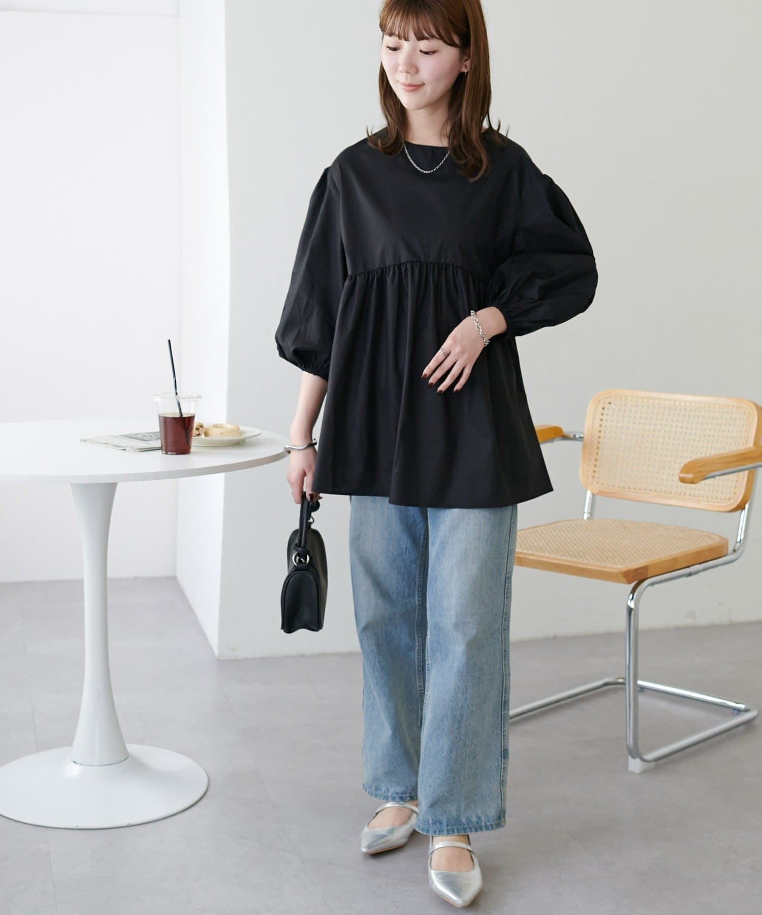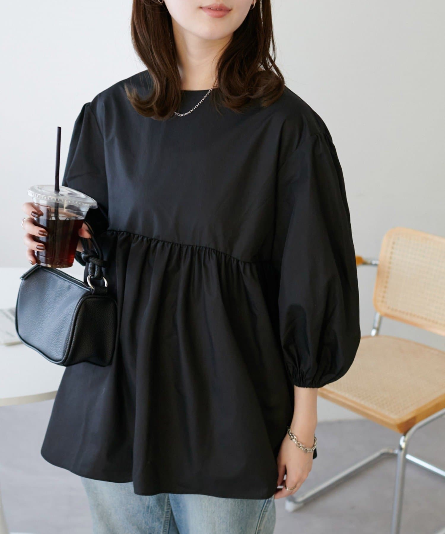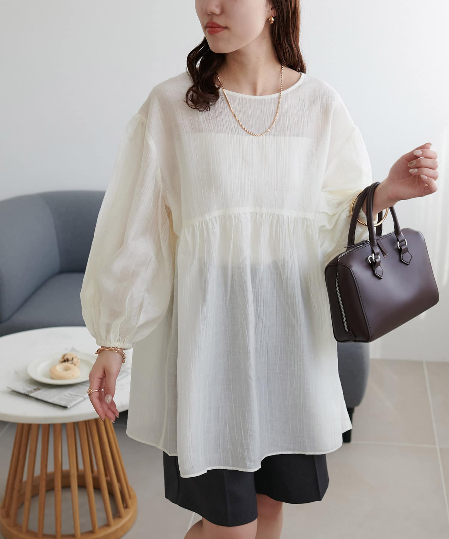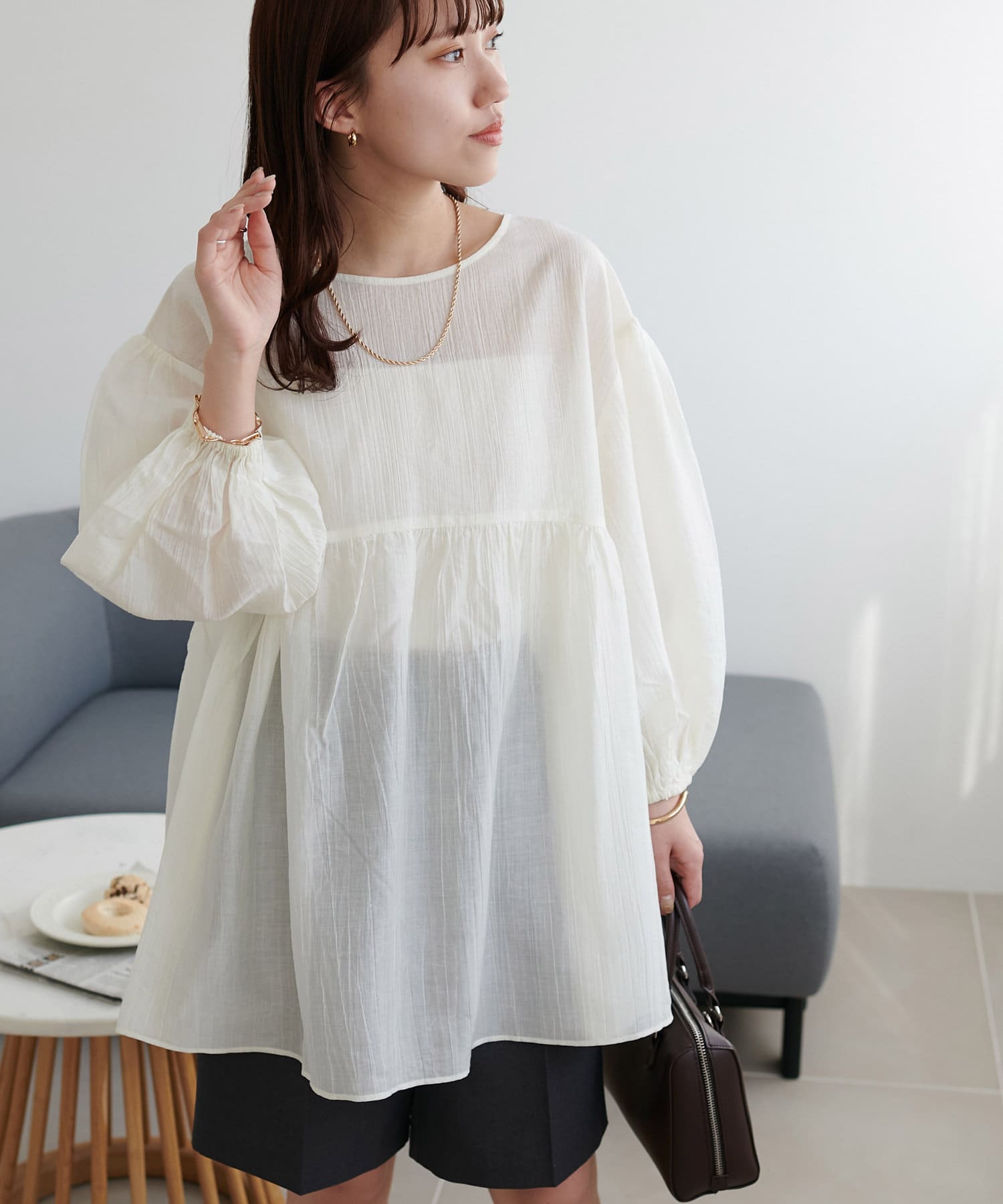 ・軽やかな素材感とペプラムのふんわりシルエットが魅力