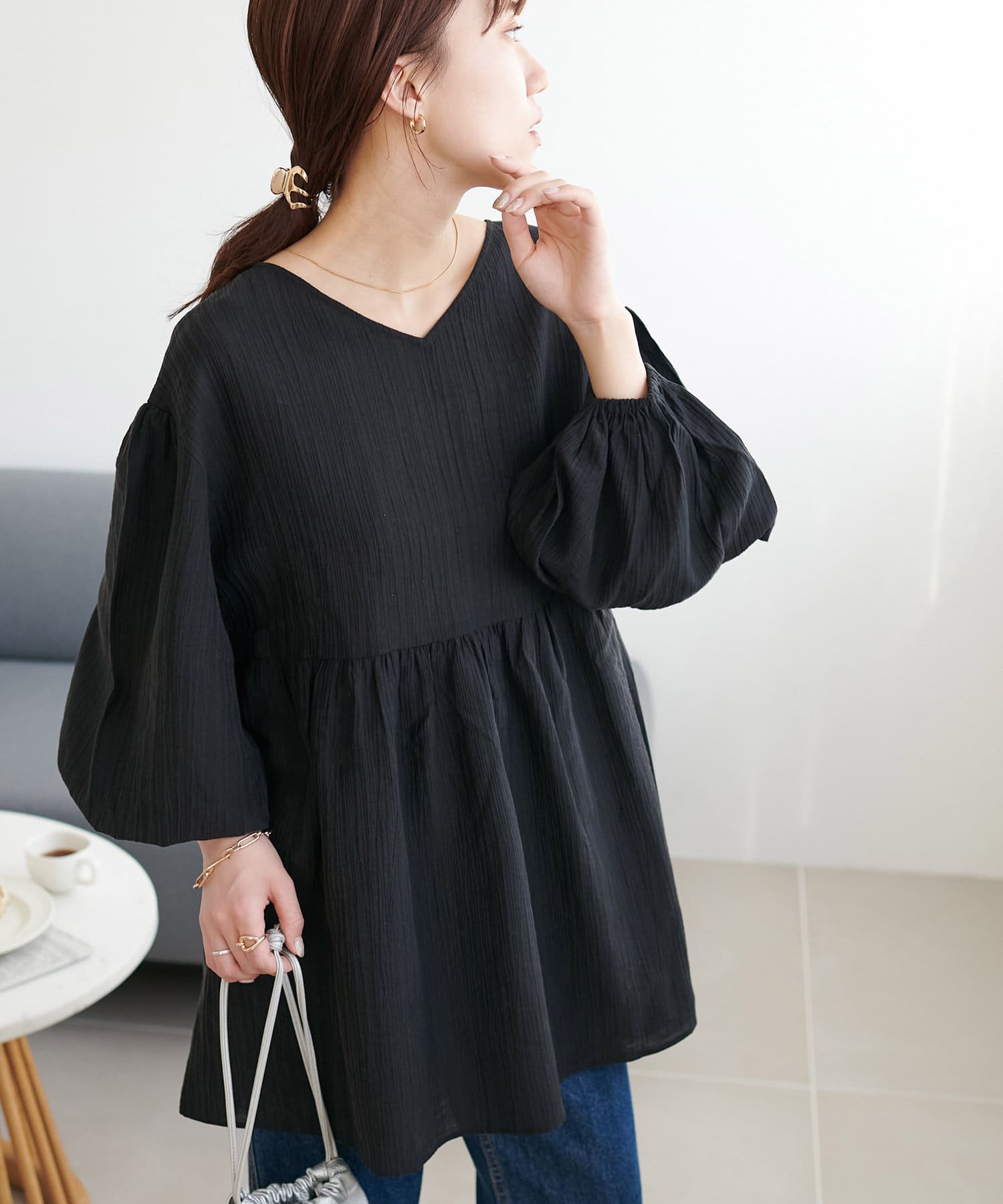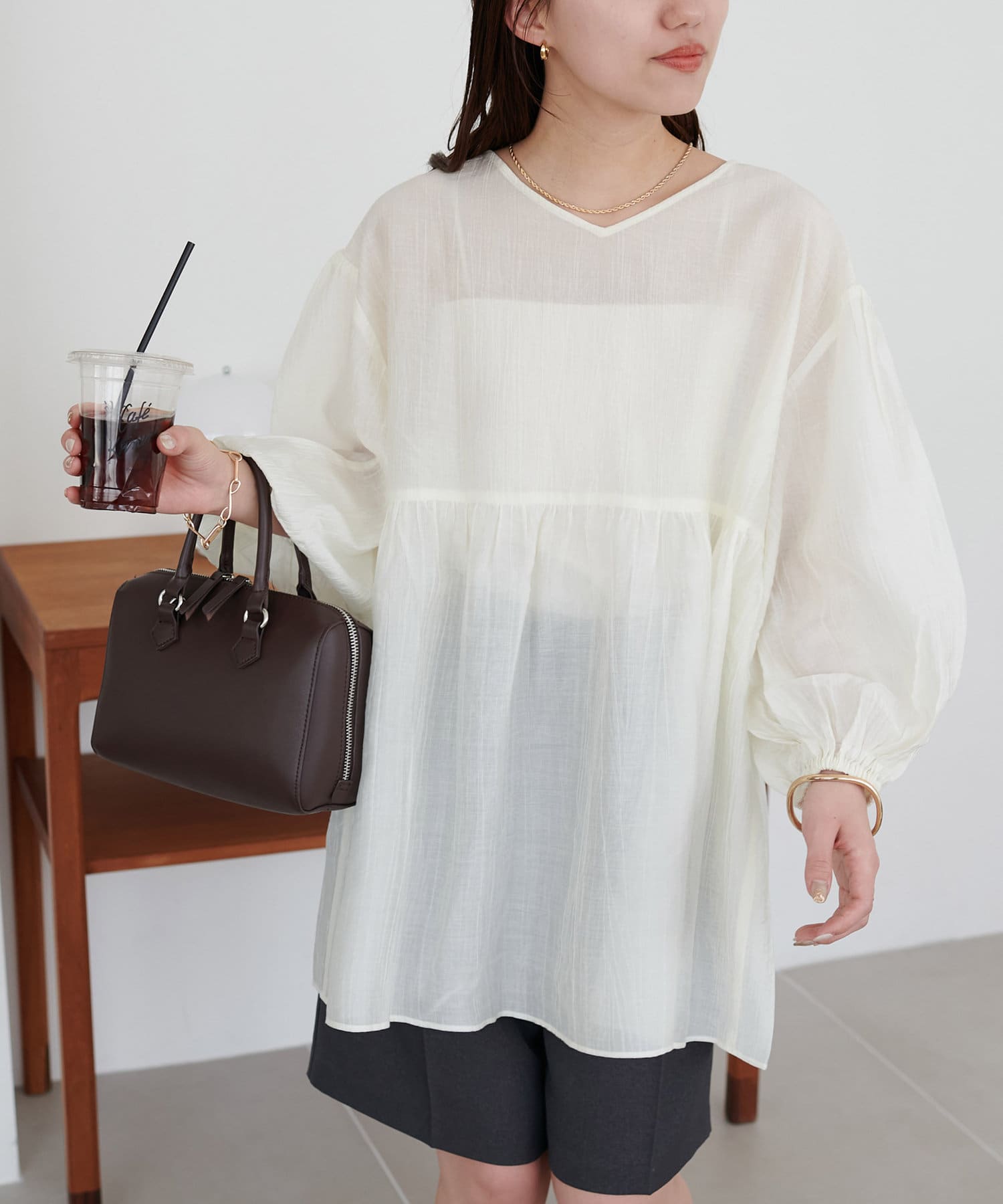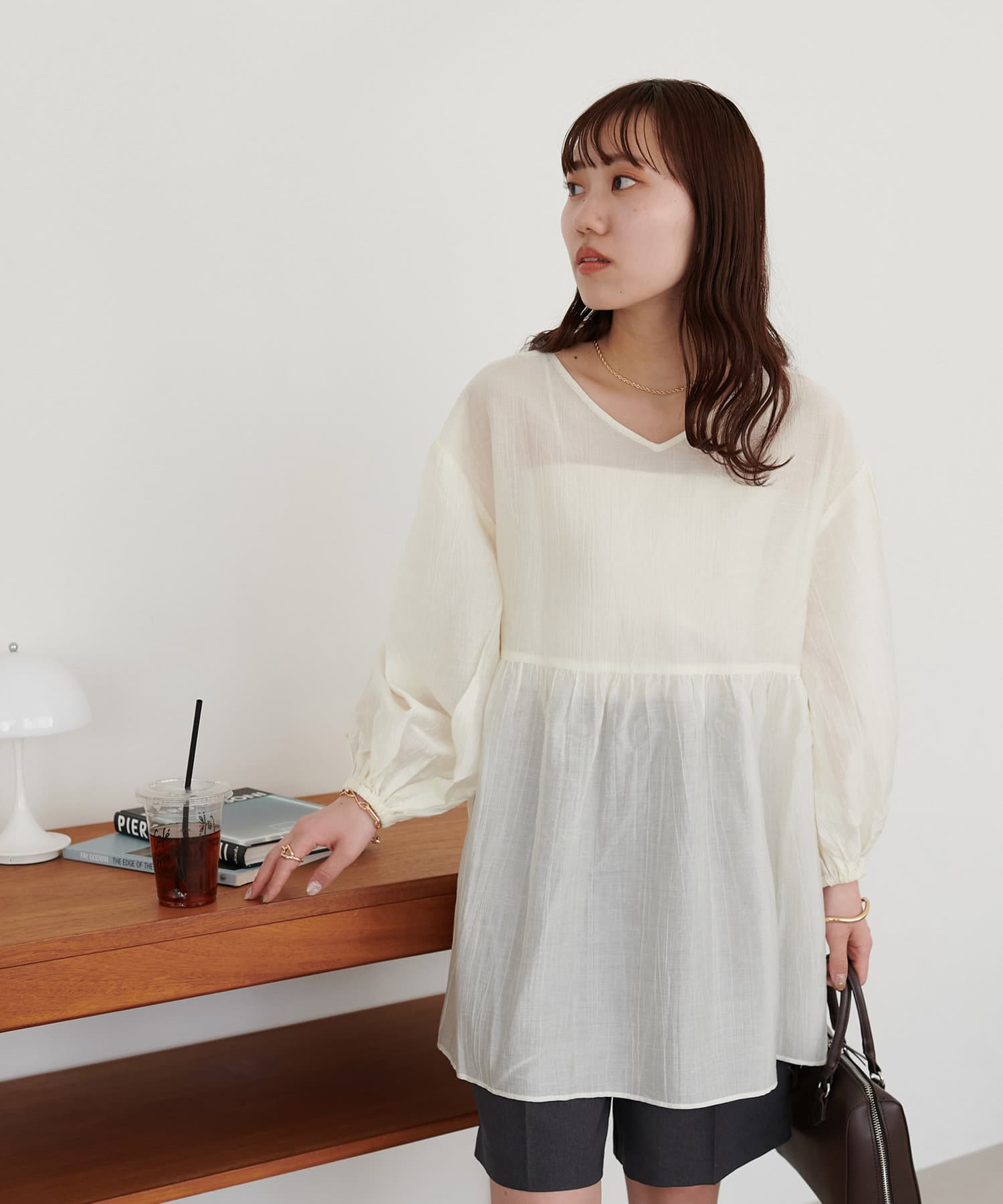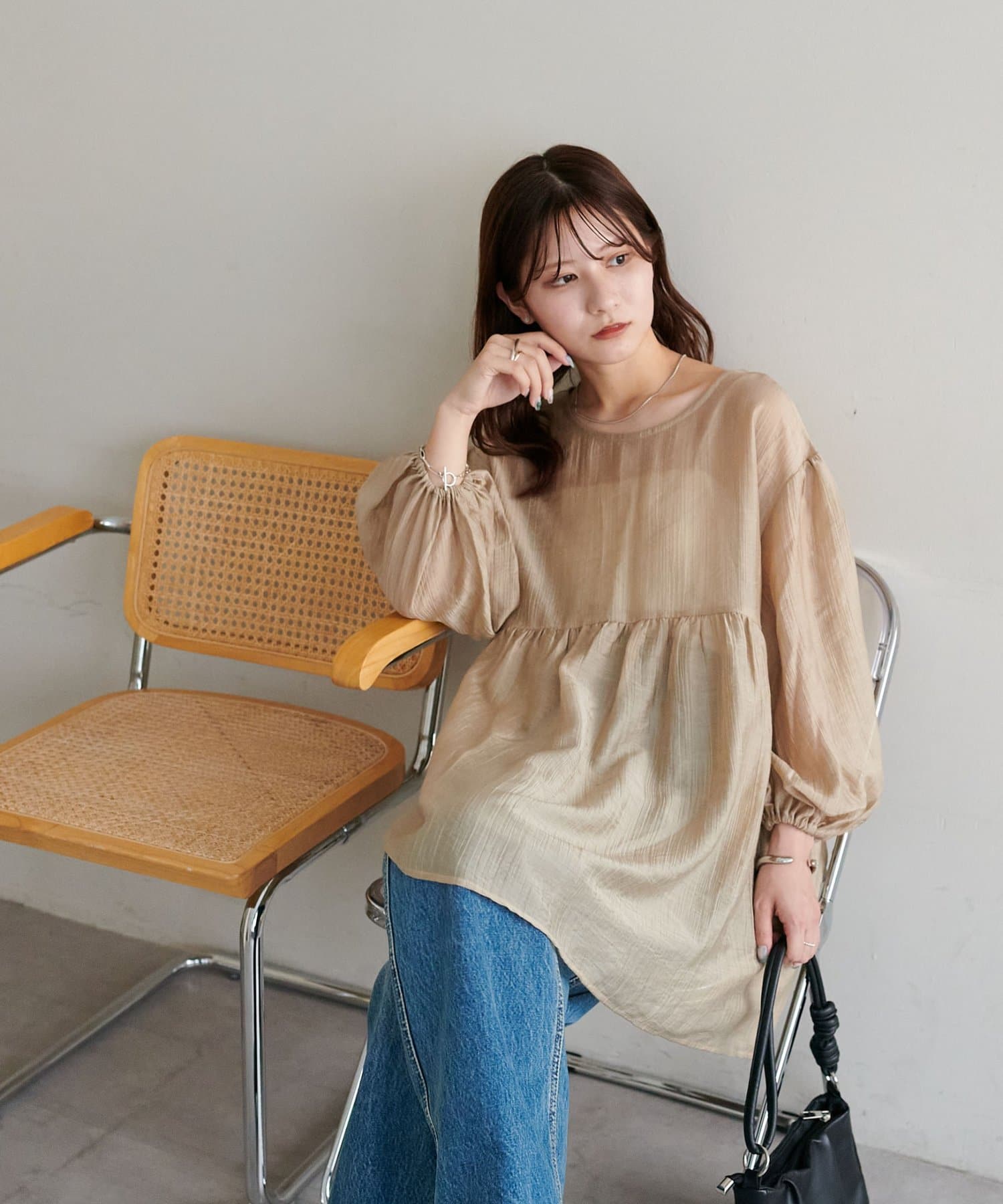 ・軽やかな素材感とペプラムのふんわりシルエットが魅力