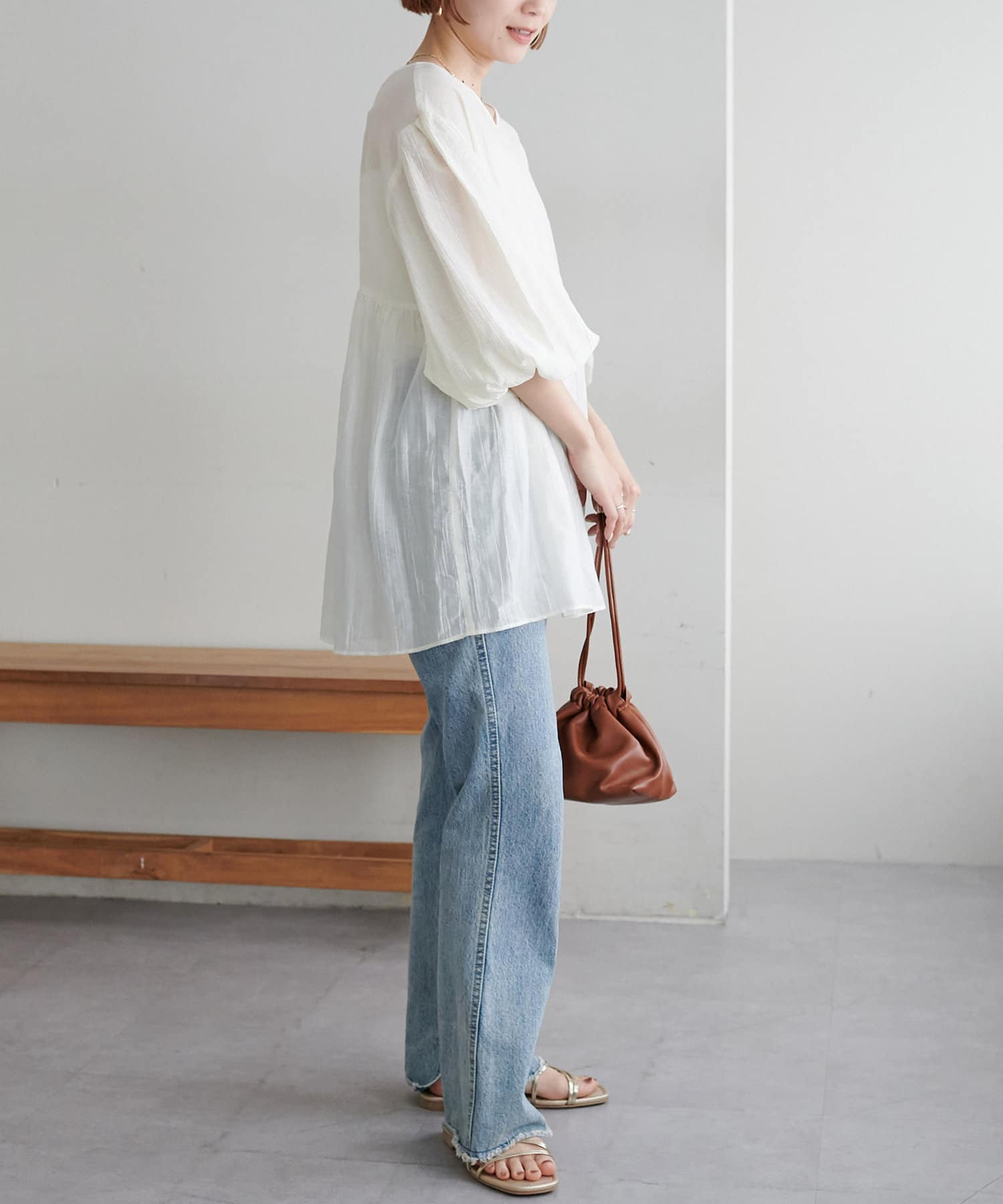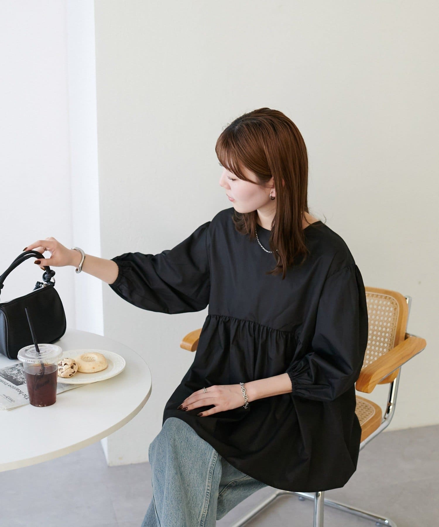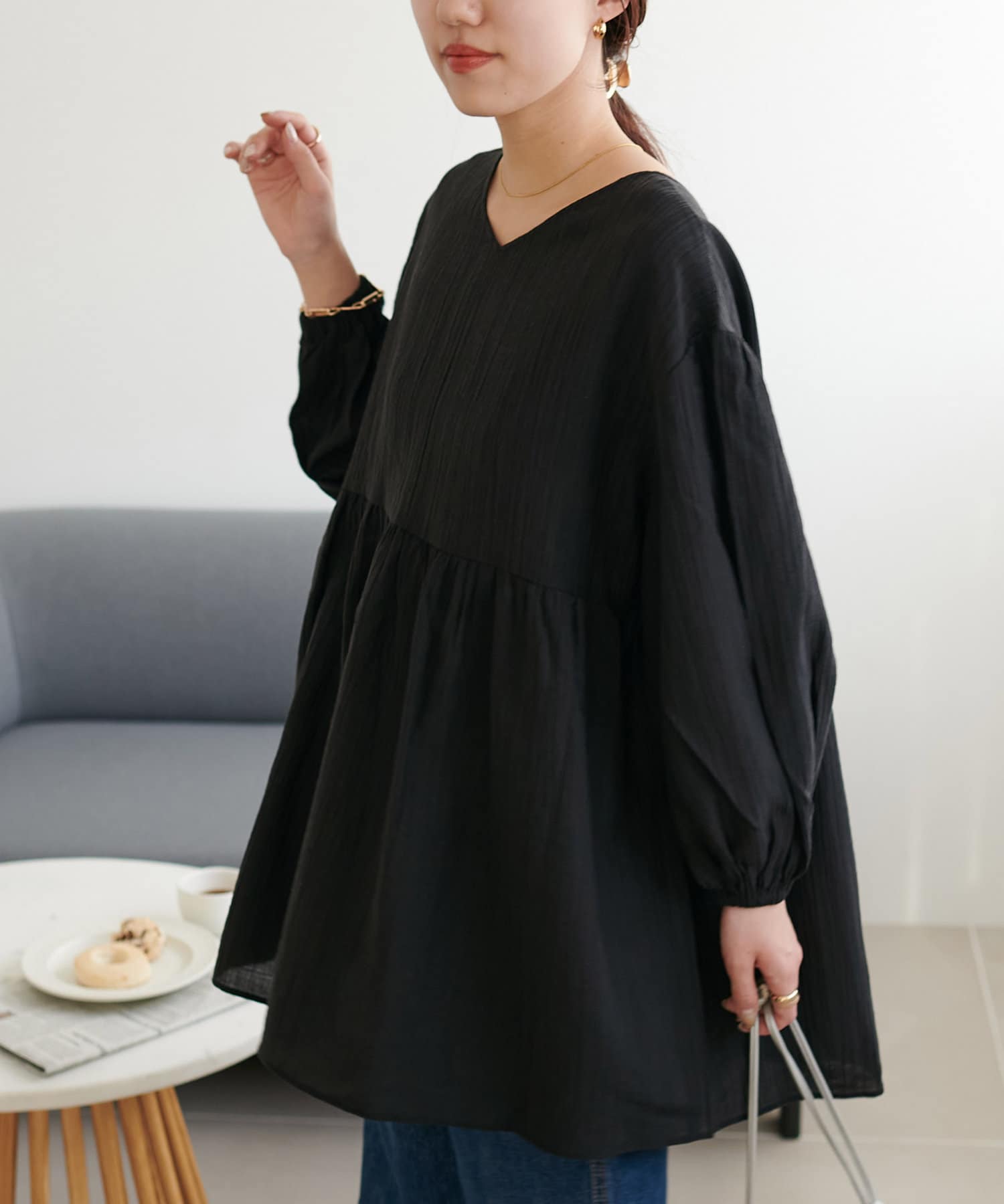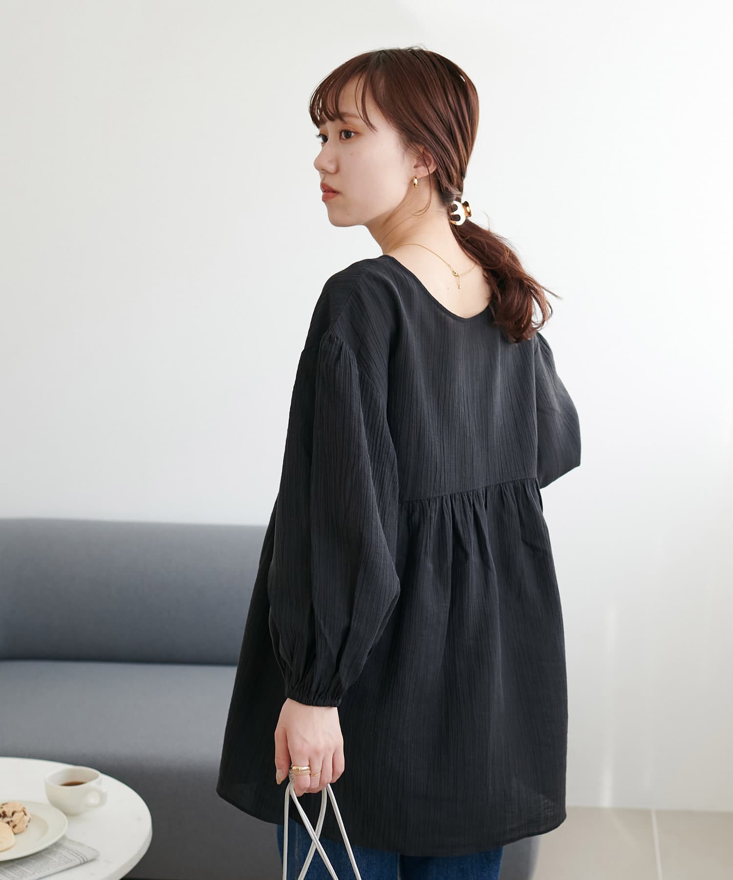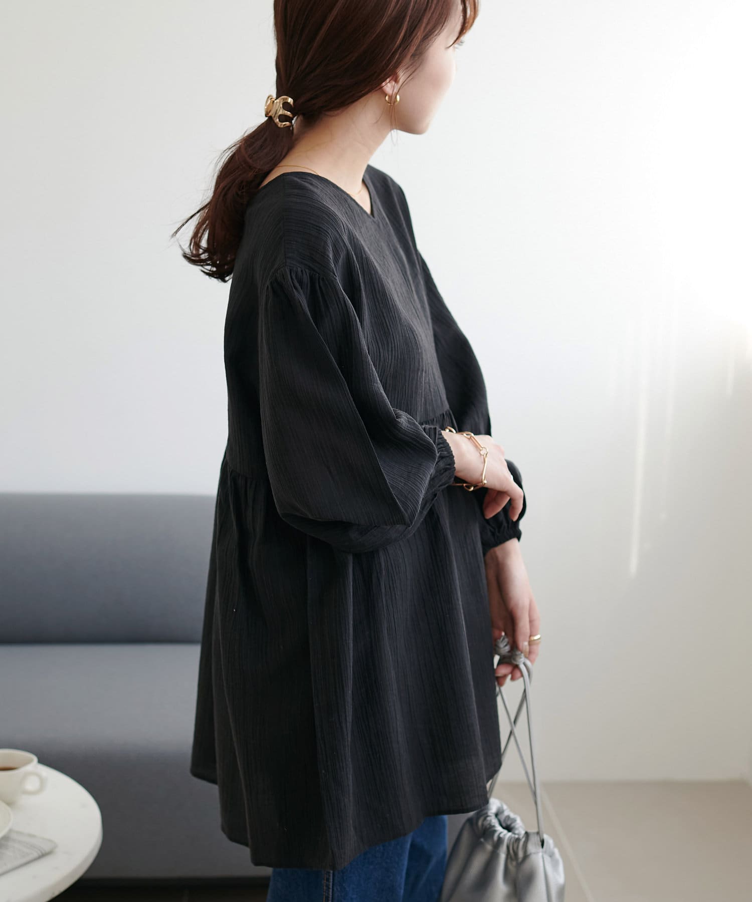 ・軽やかな素材感とペプラムのふんわりシルエットが魅力