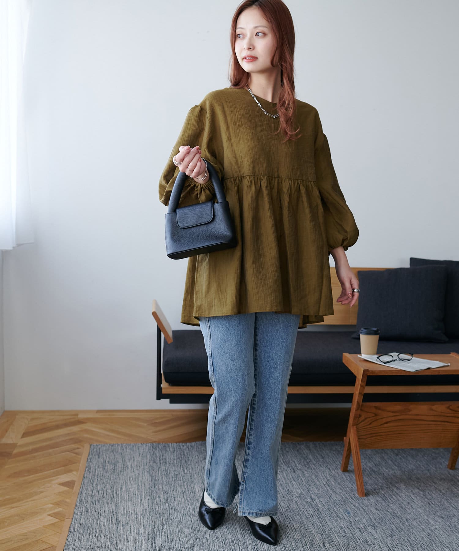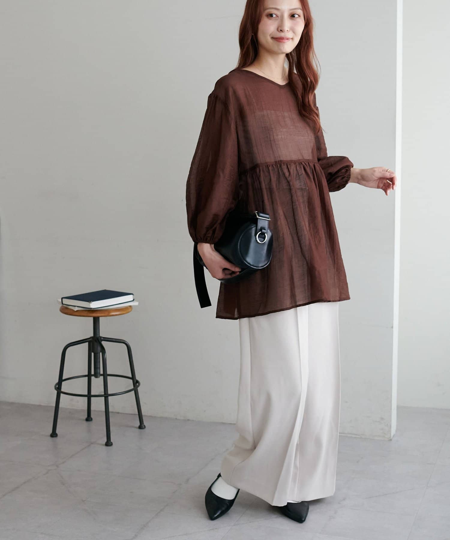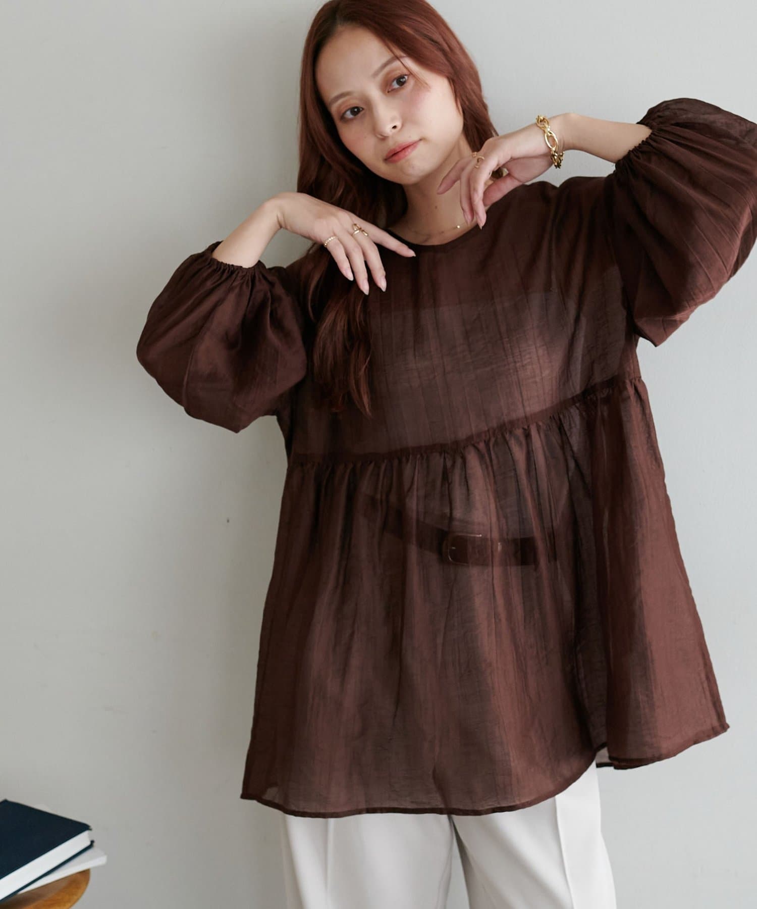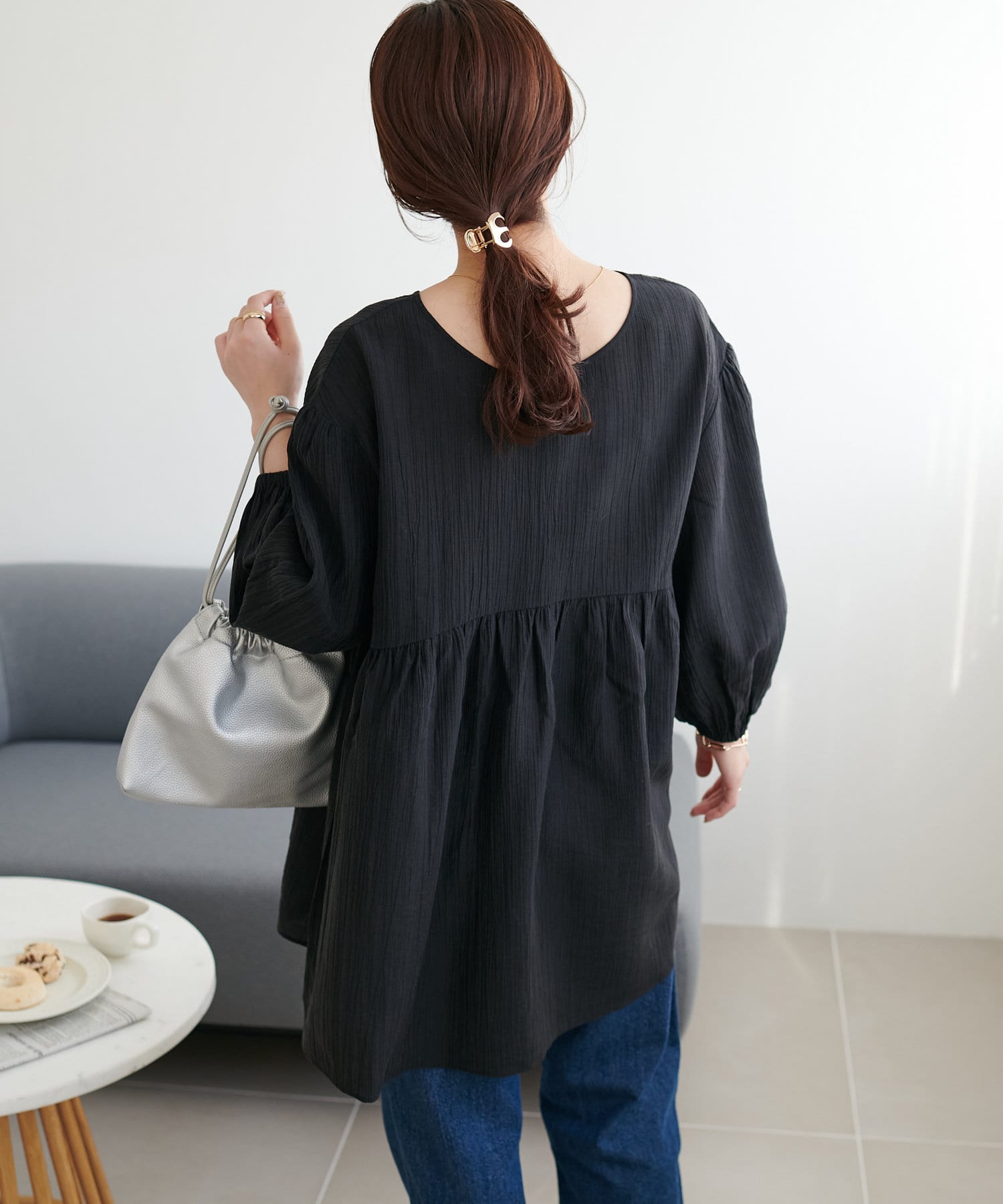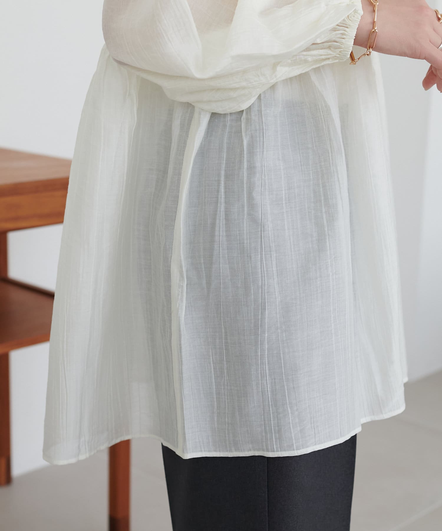 ・軽やかな素材感とペプラムのふんわりシルエットが魅力