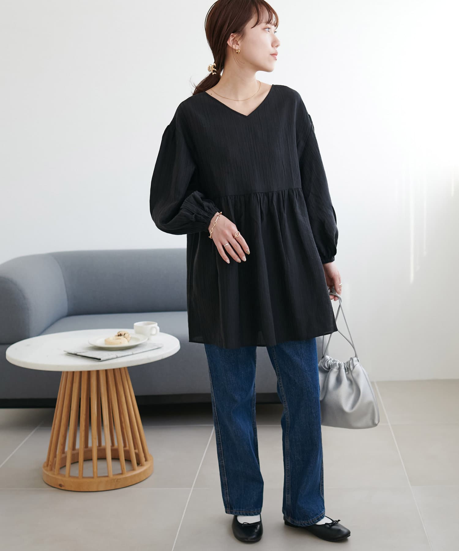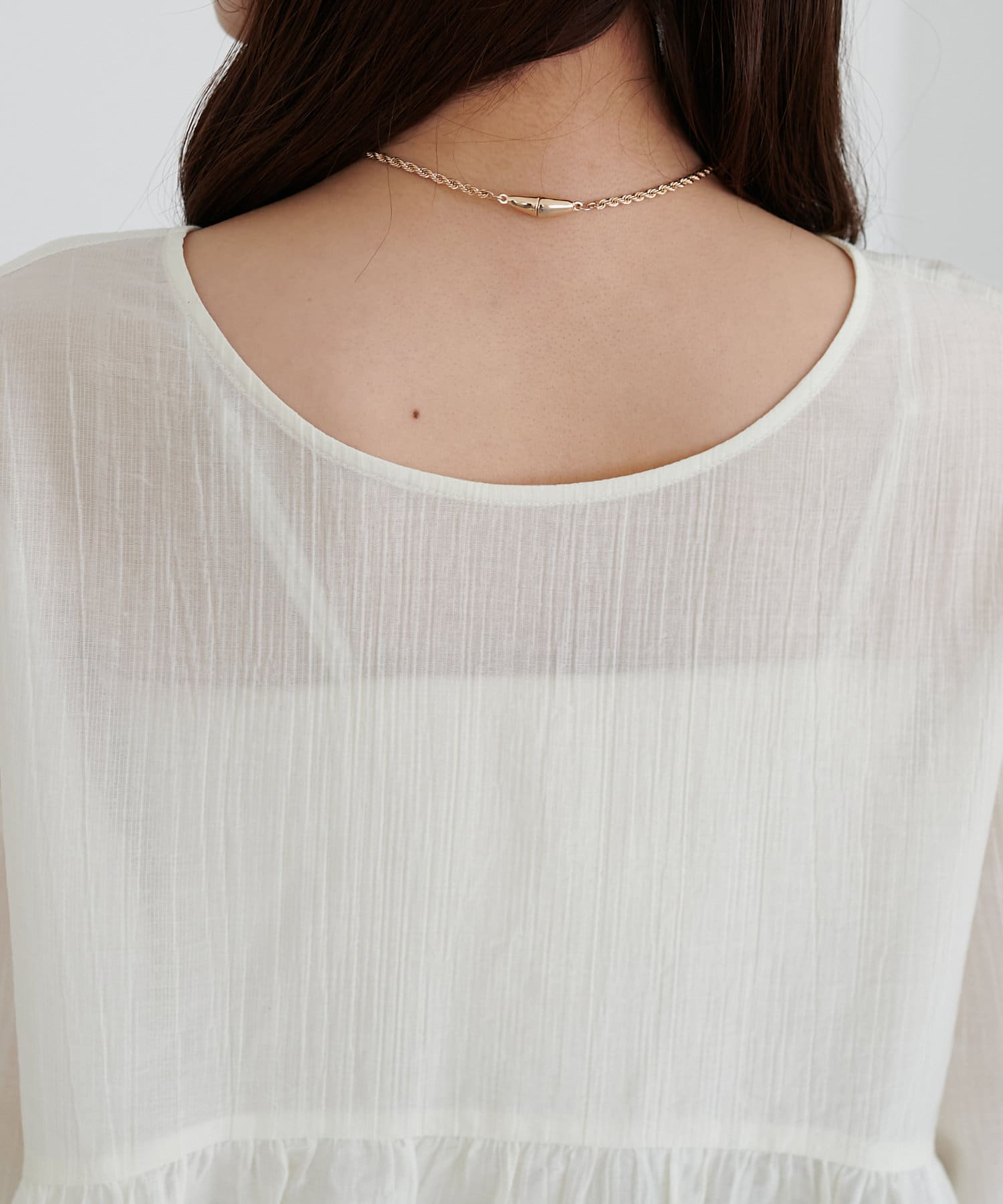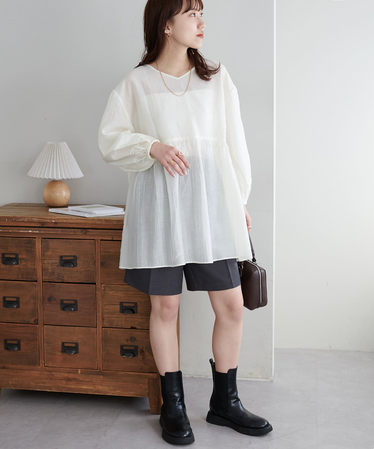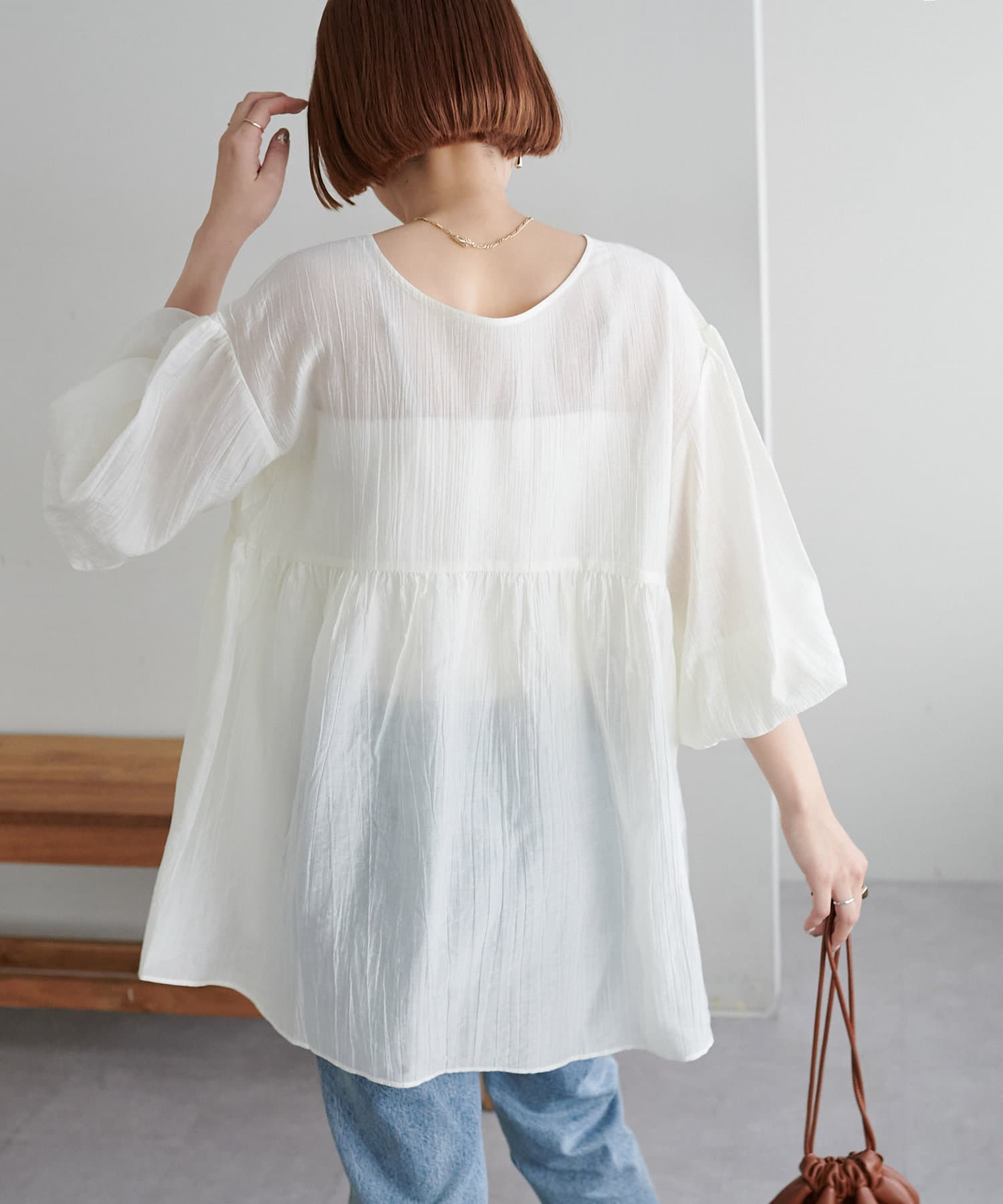 ・軽やかな素材感とペプラムのふんわりシルエットが魅力
