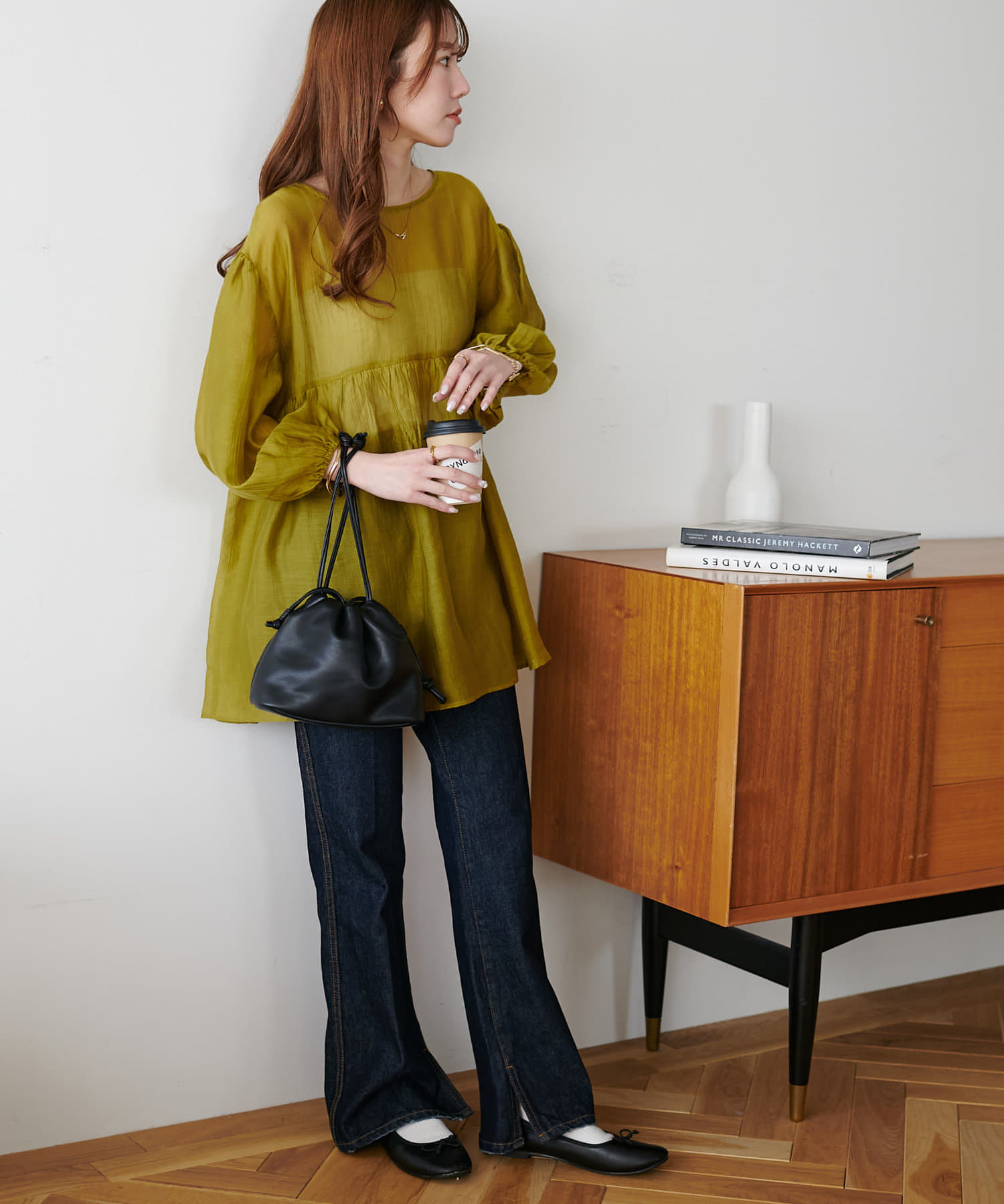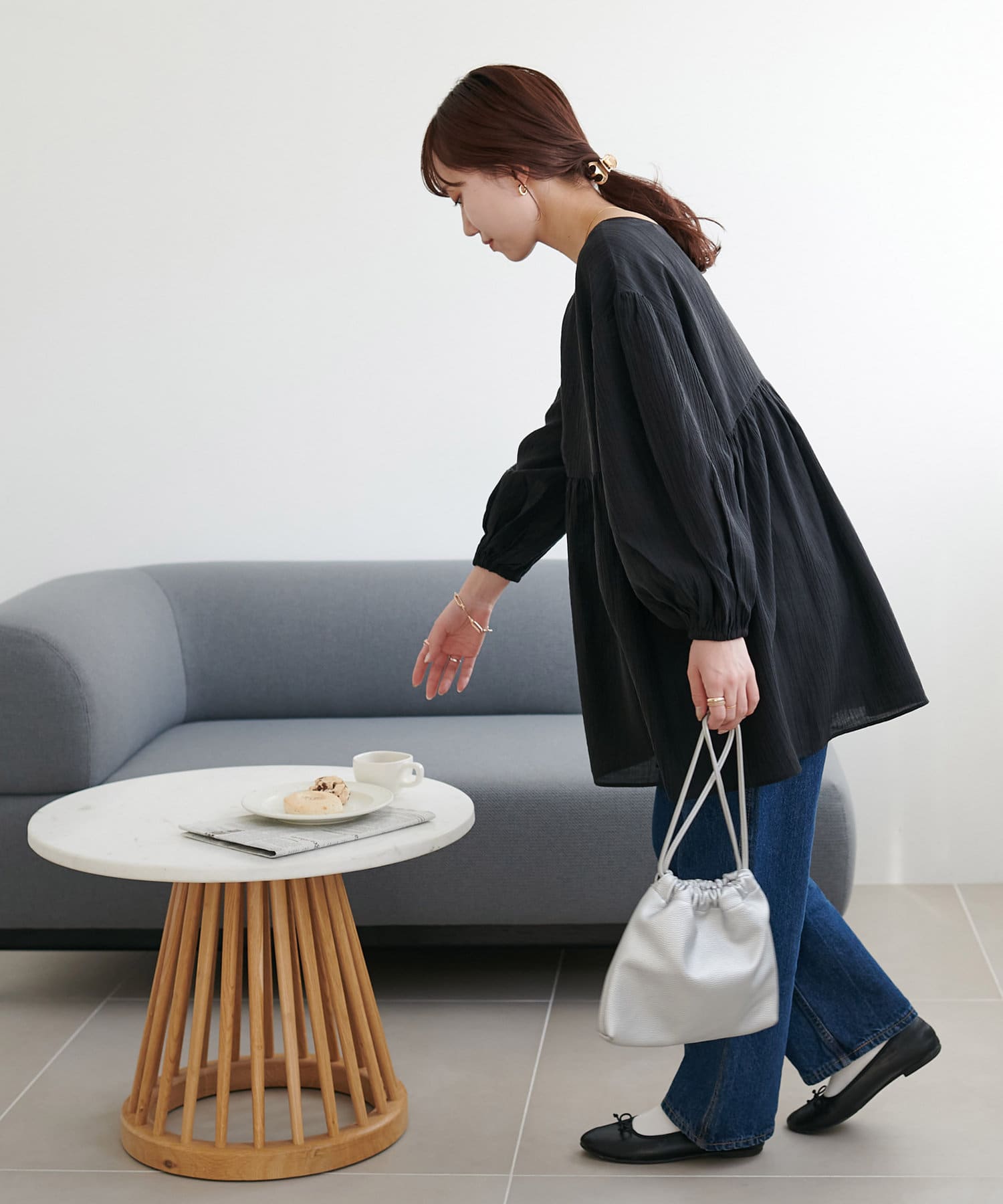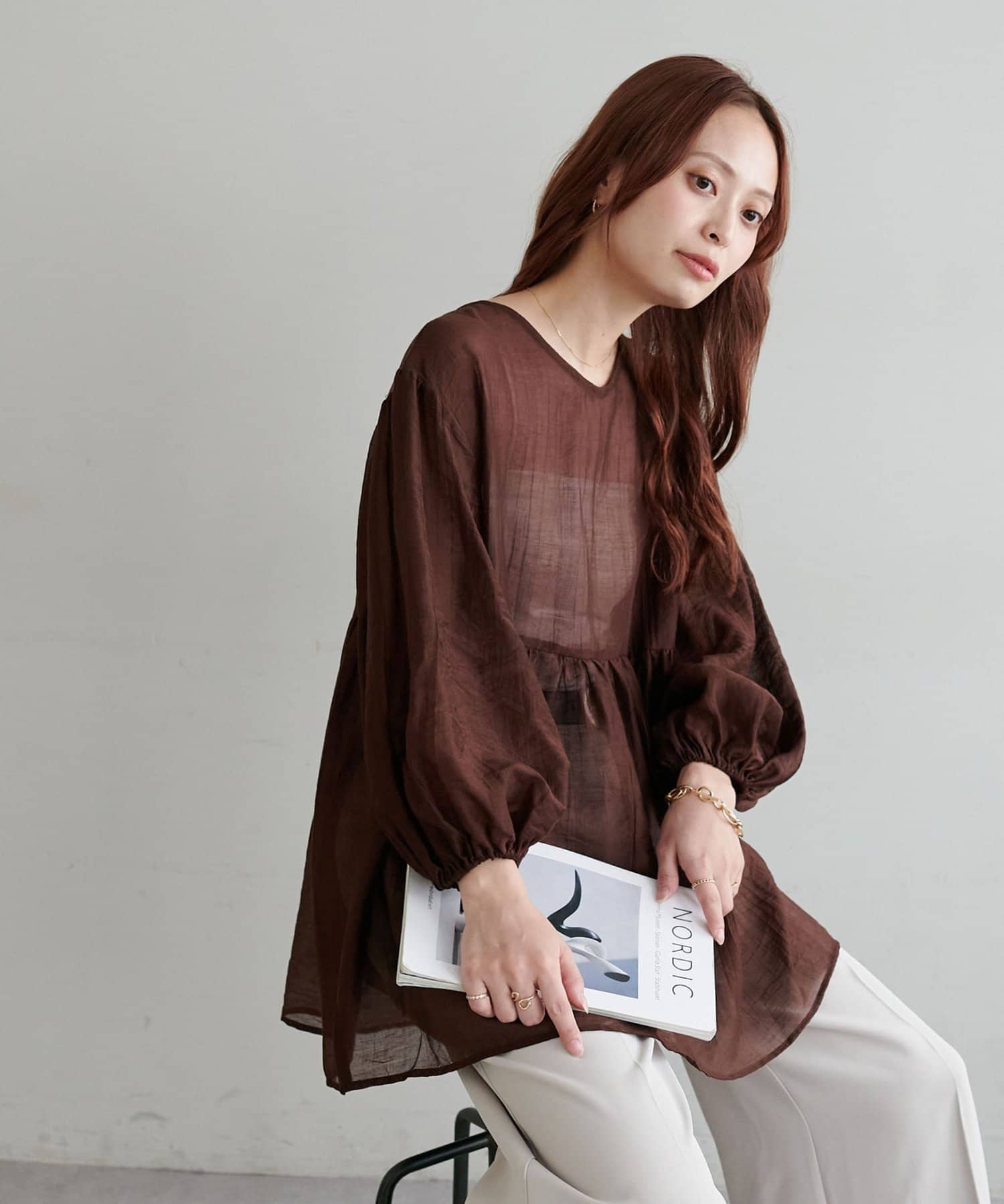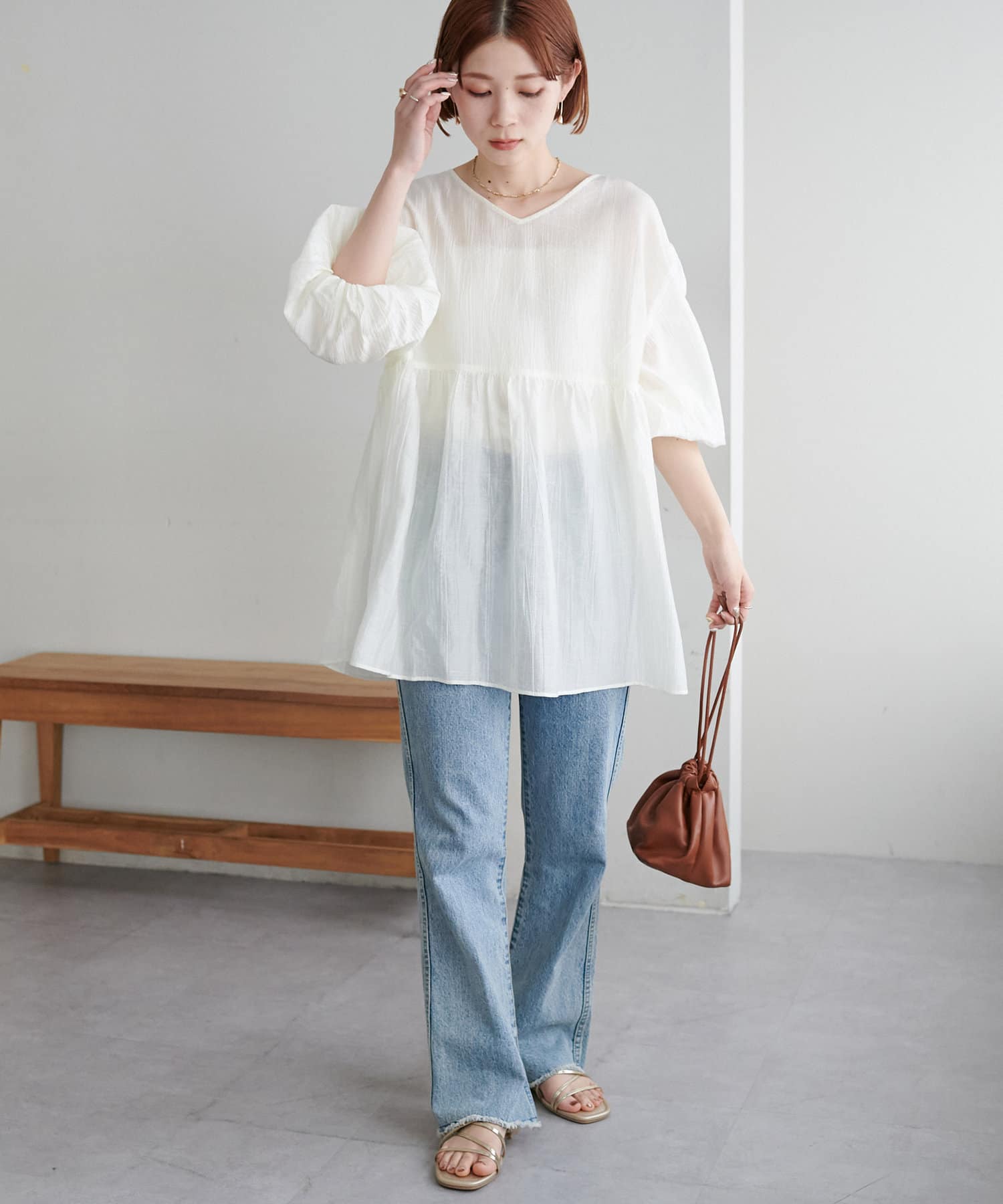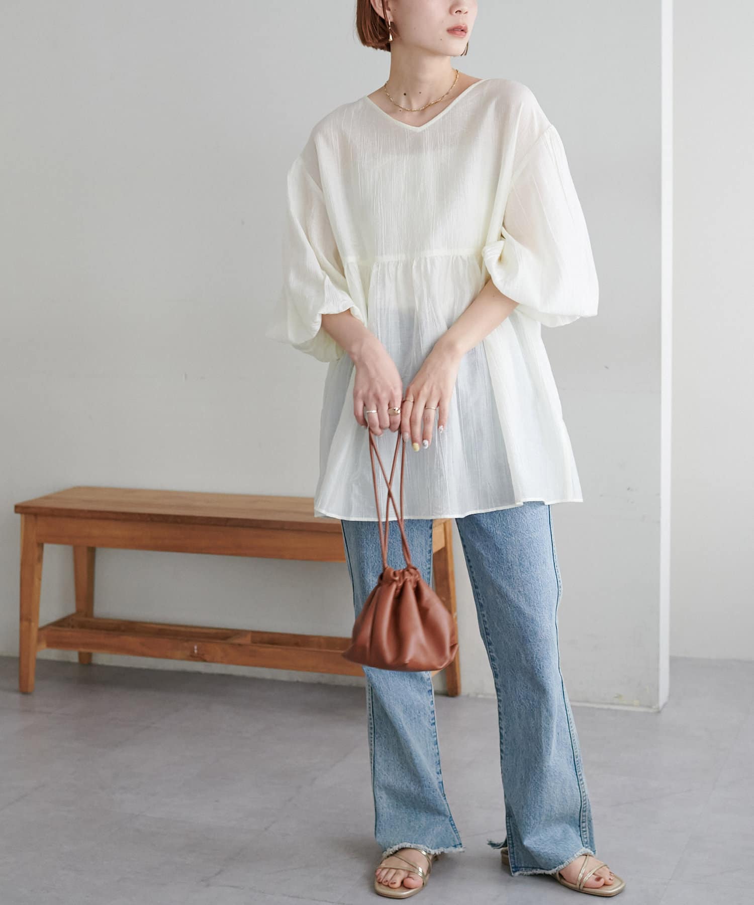・軽やかな素材感とペプラムのふんわりシルエットが魅力