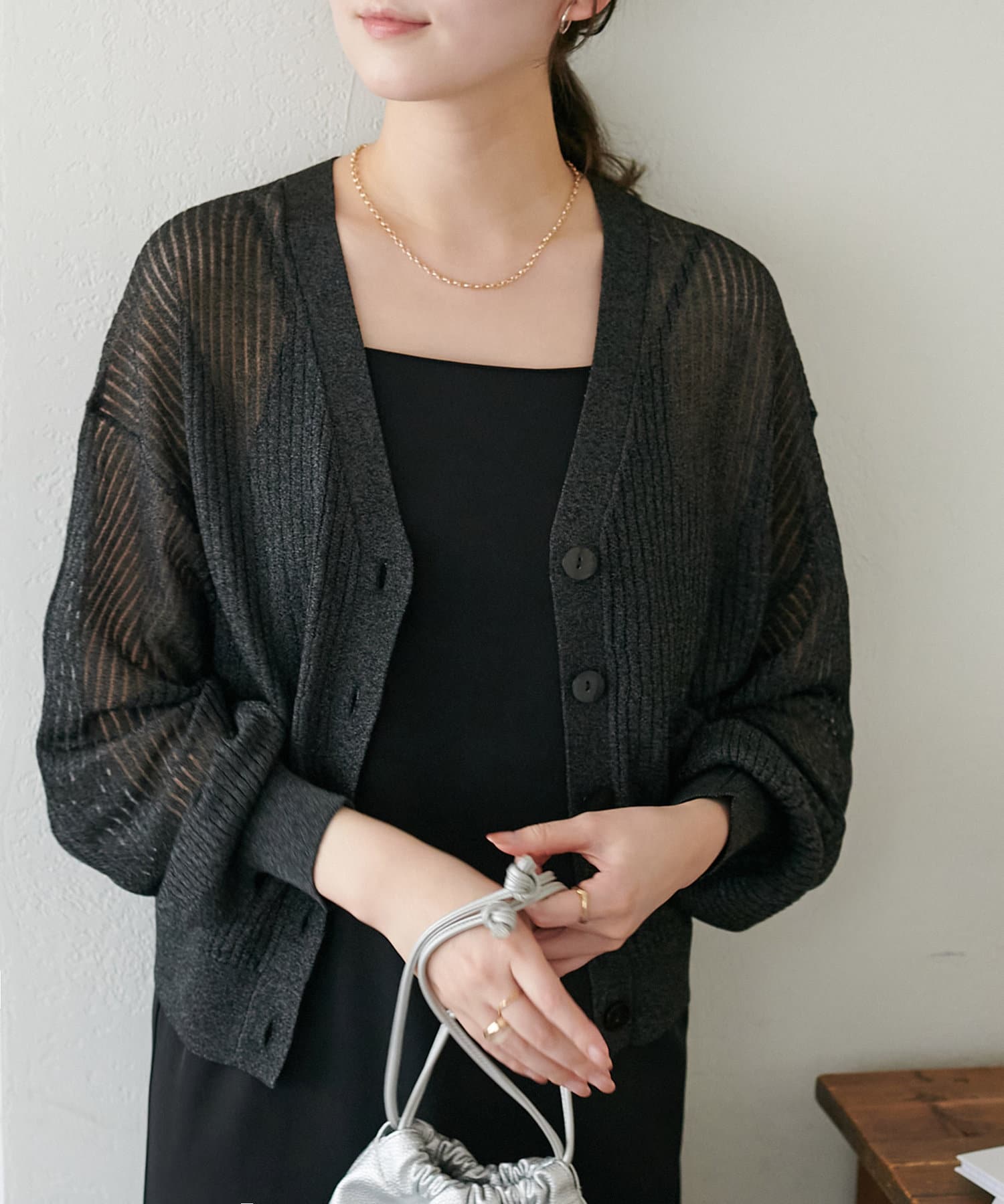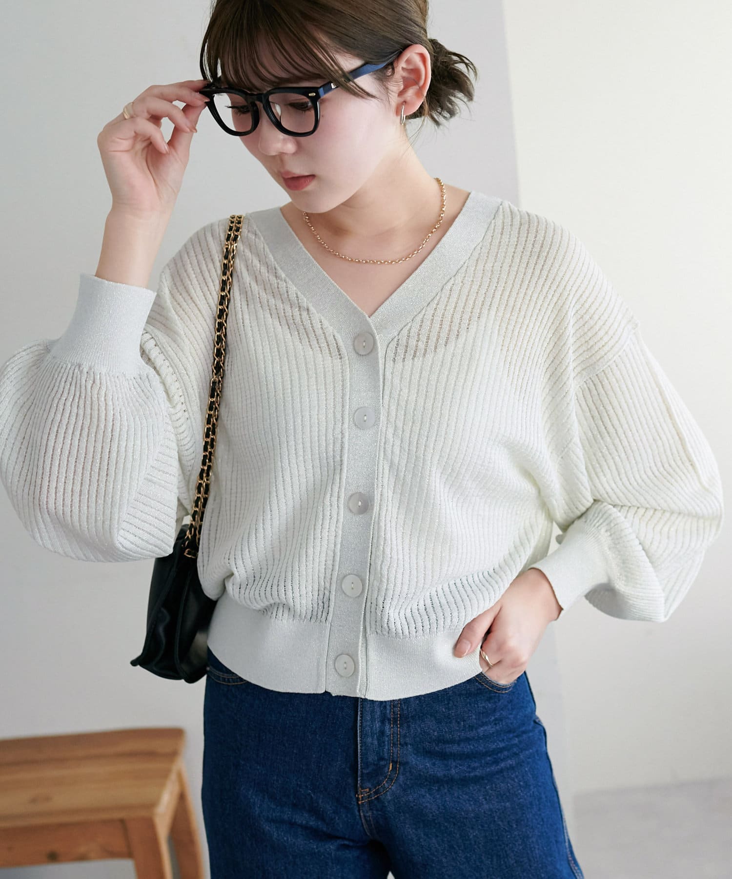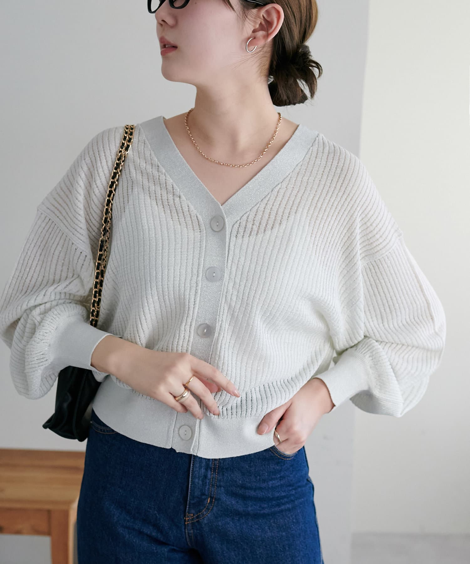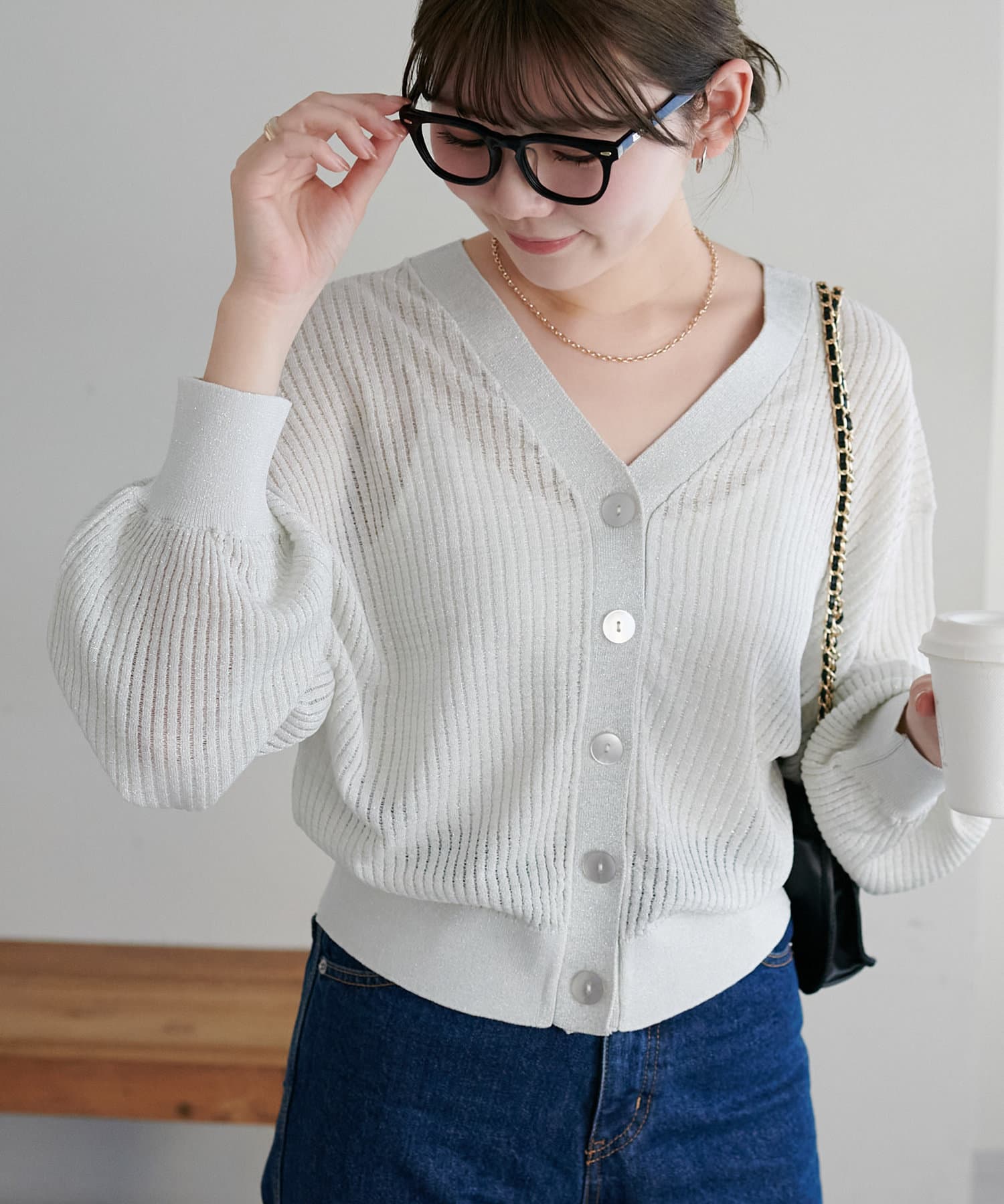【Discoat】【前後2WAY】ラメリブシアーVカーディガン