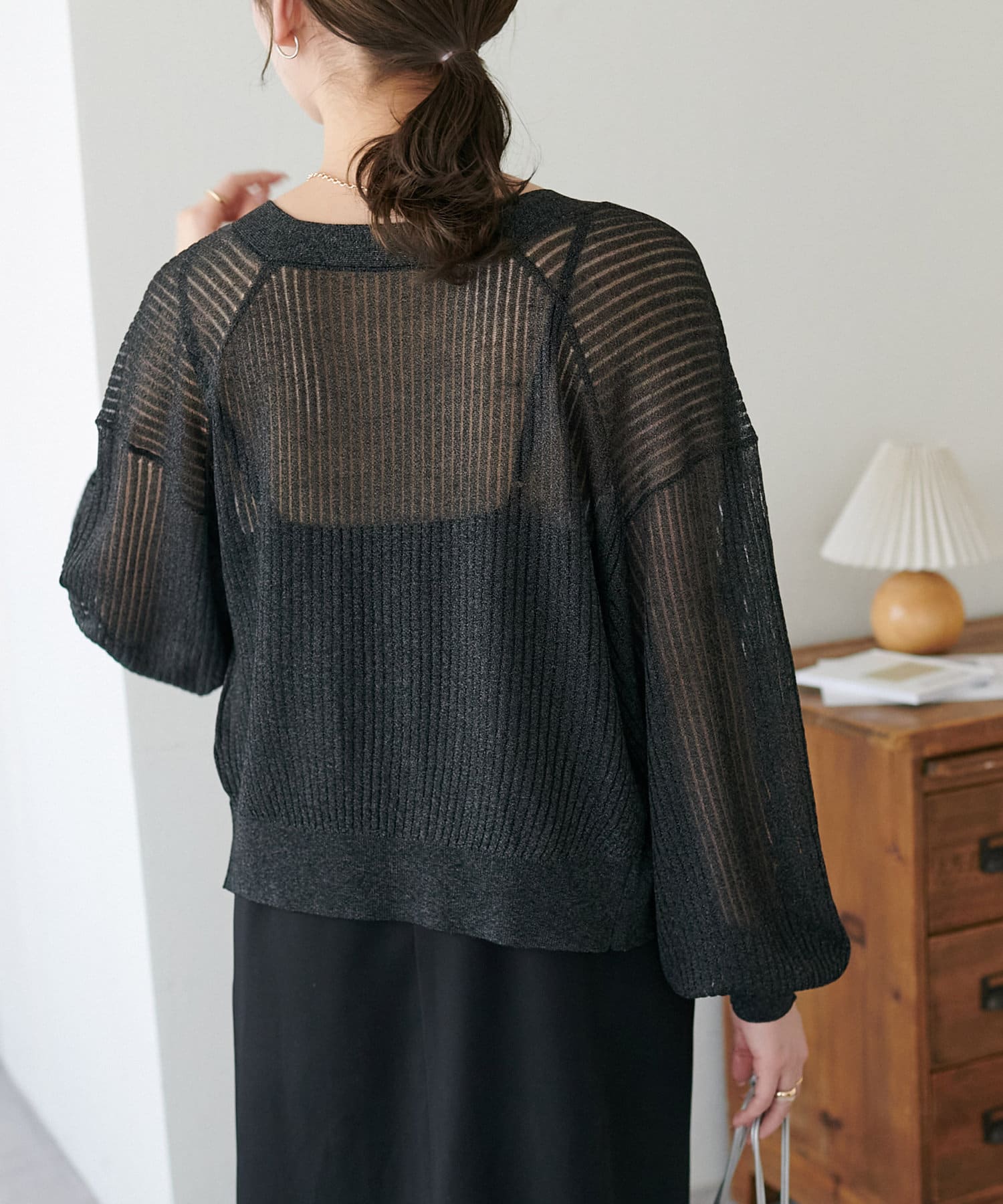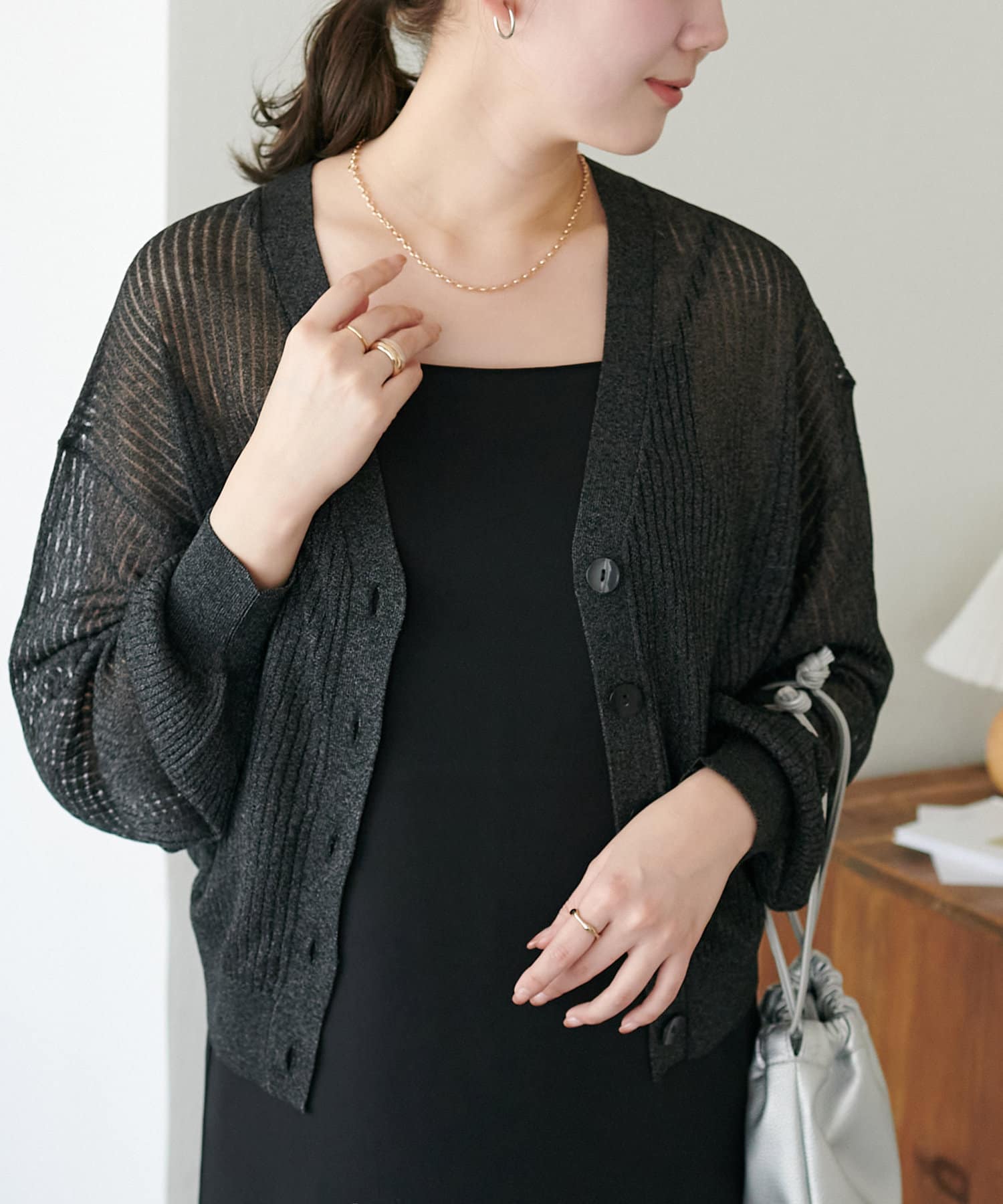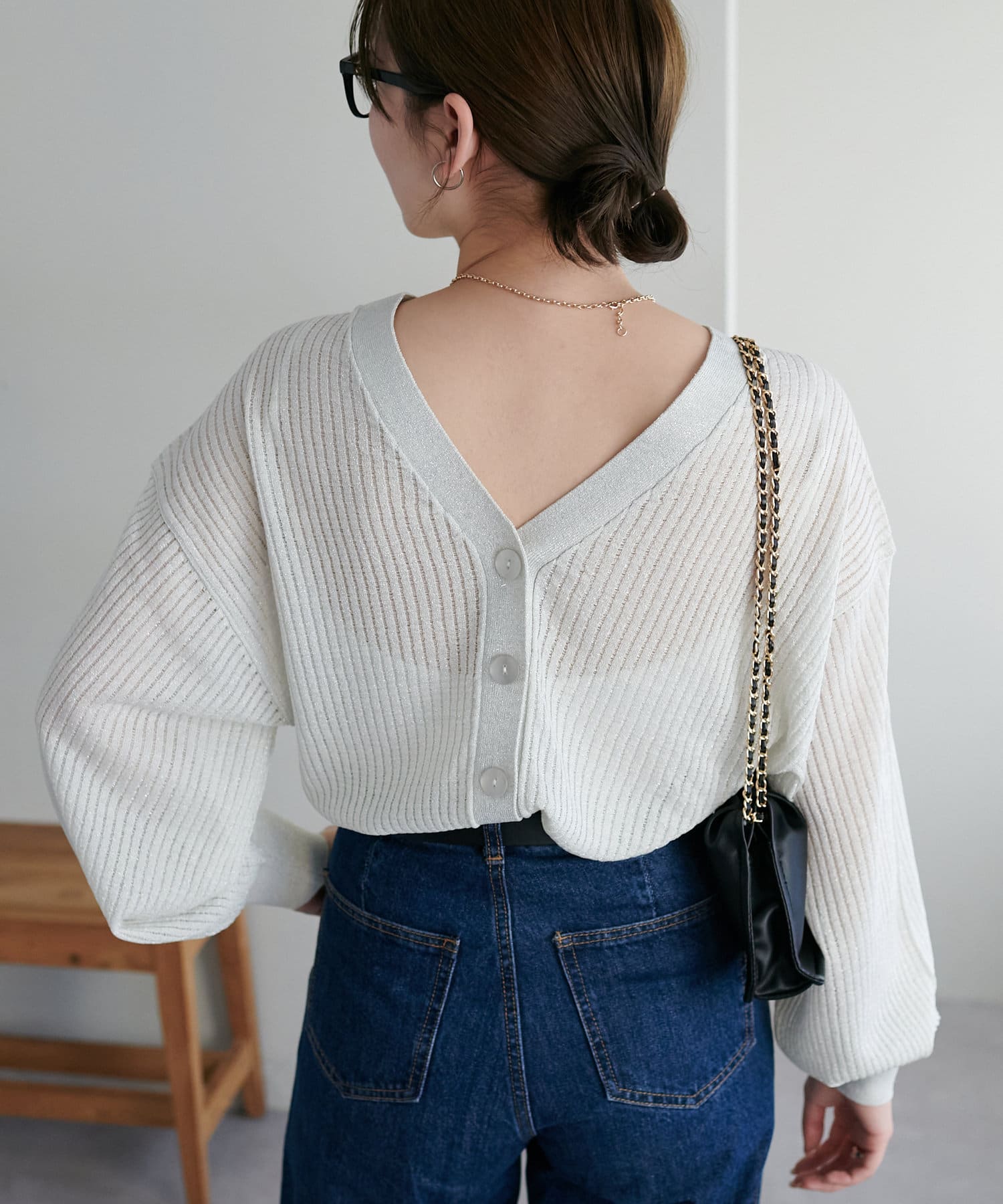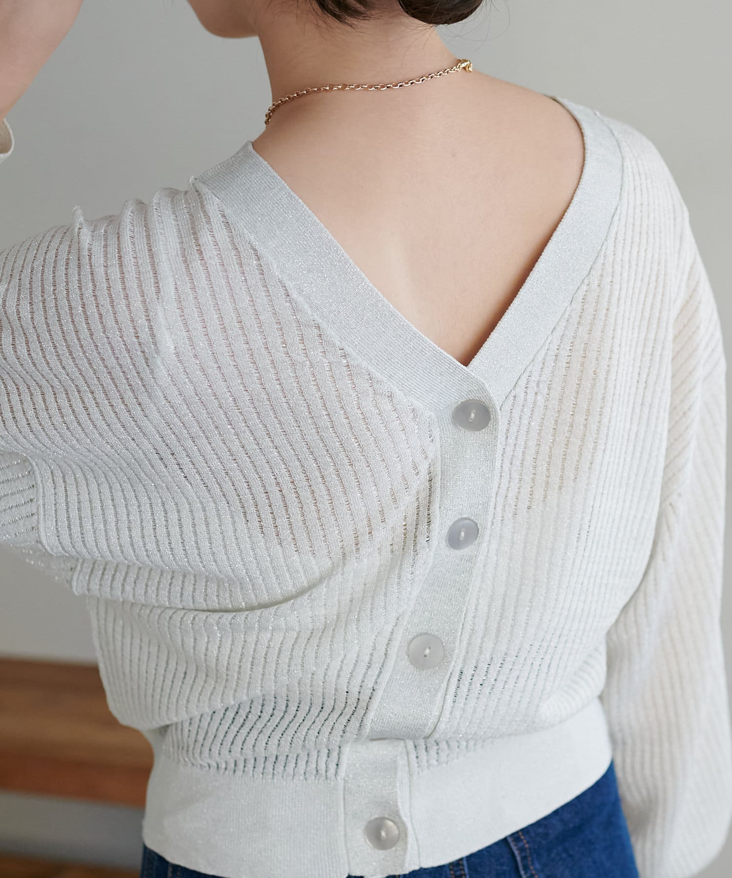 【Discoat】【前後2WAY】ラメリブシアーVカーディガン
