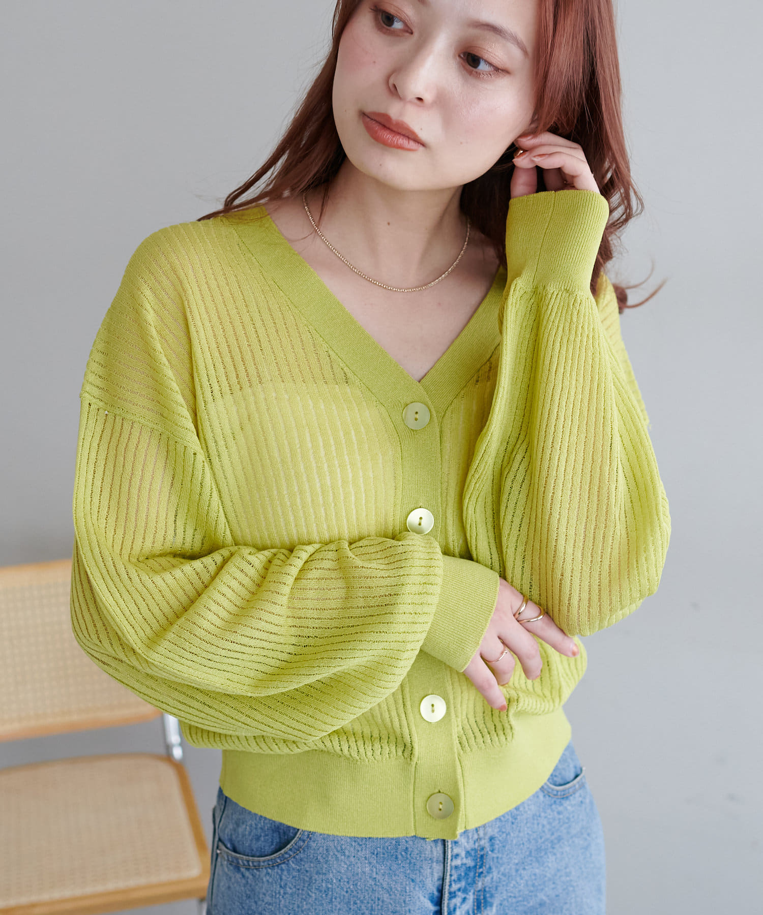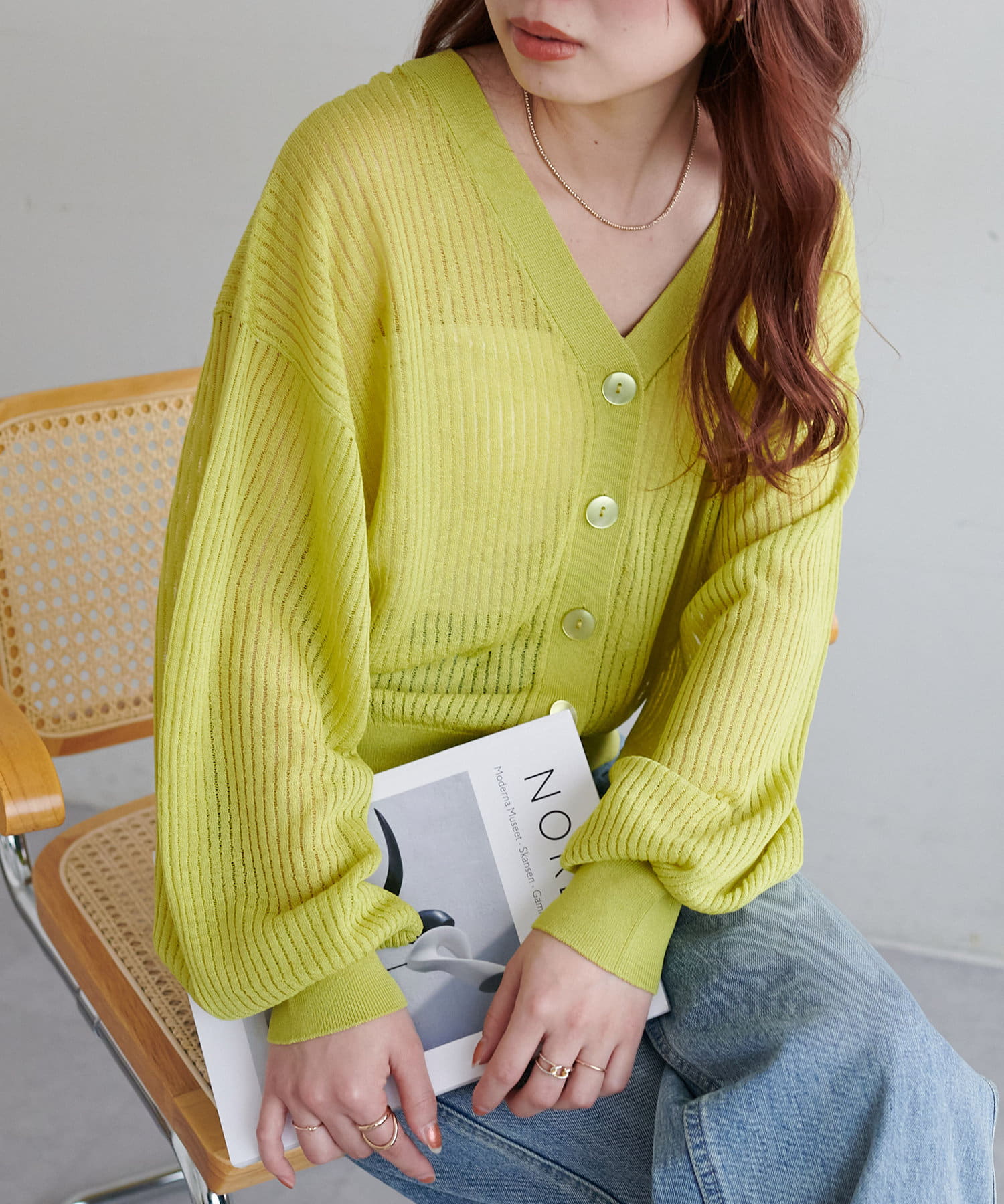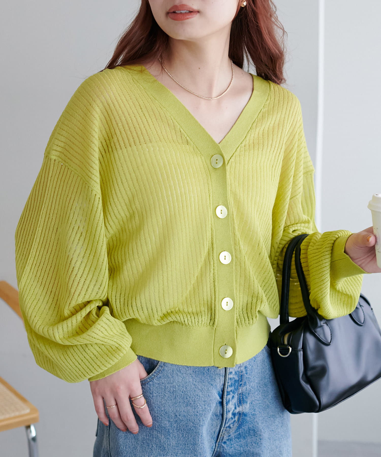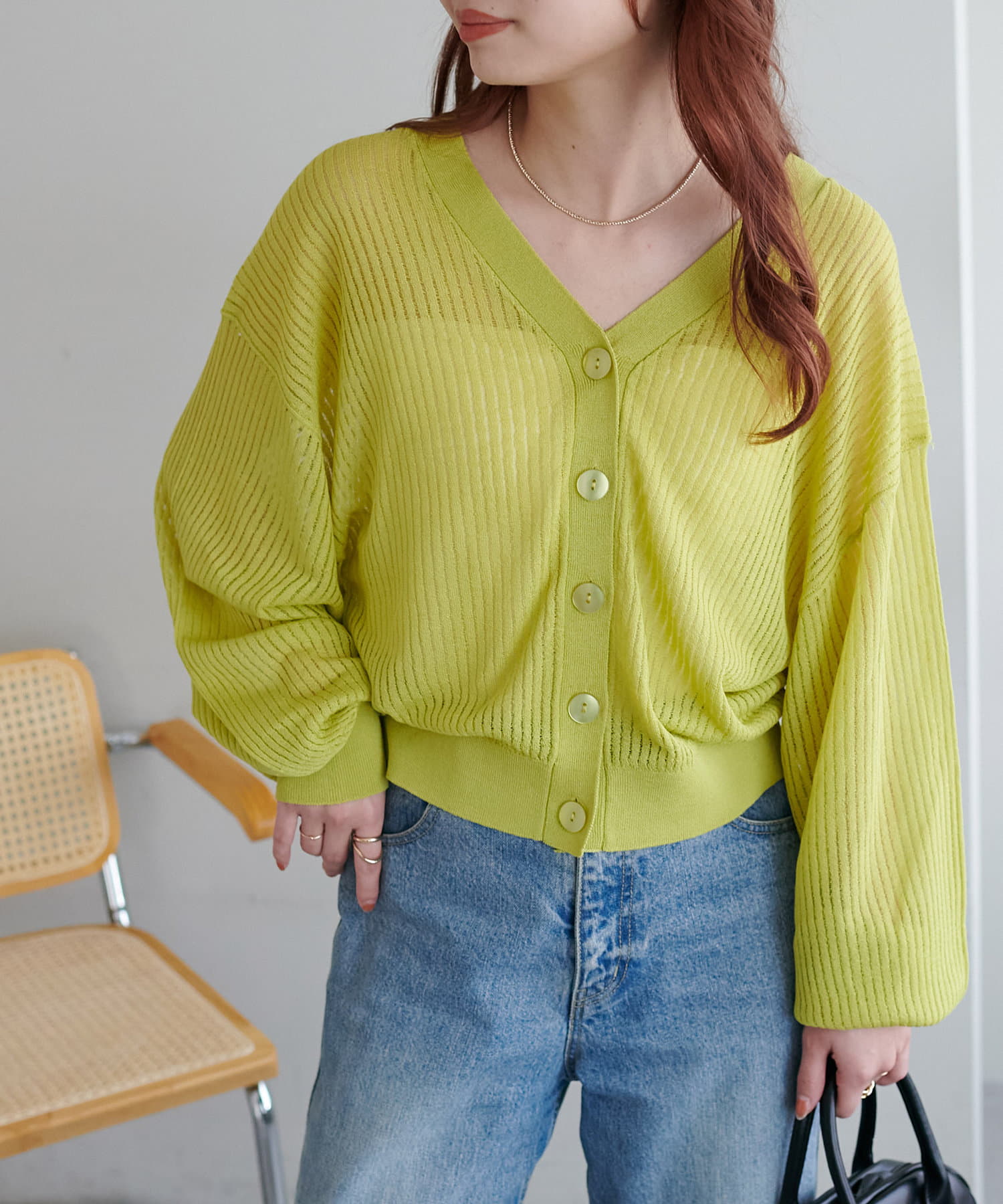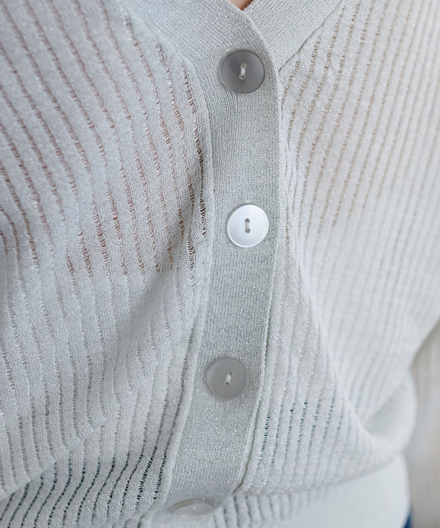 【Discoat】【前後2WAY】ラメリブシアーVカーディガン