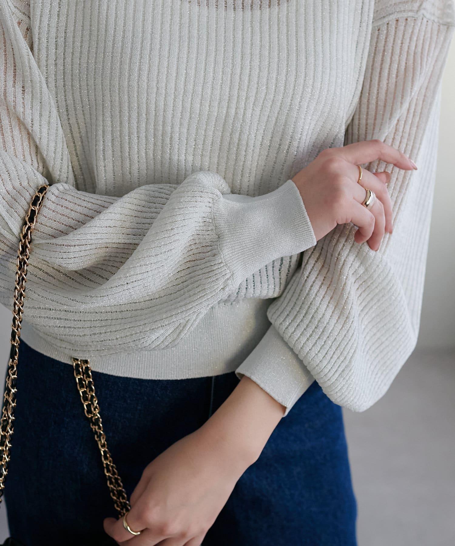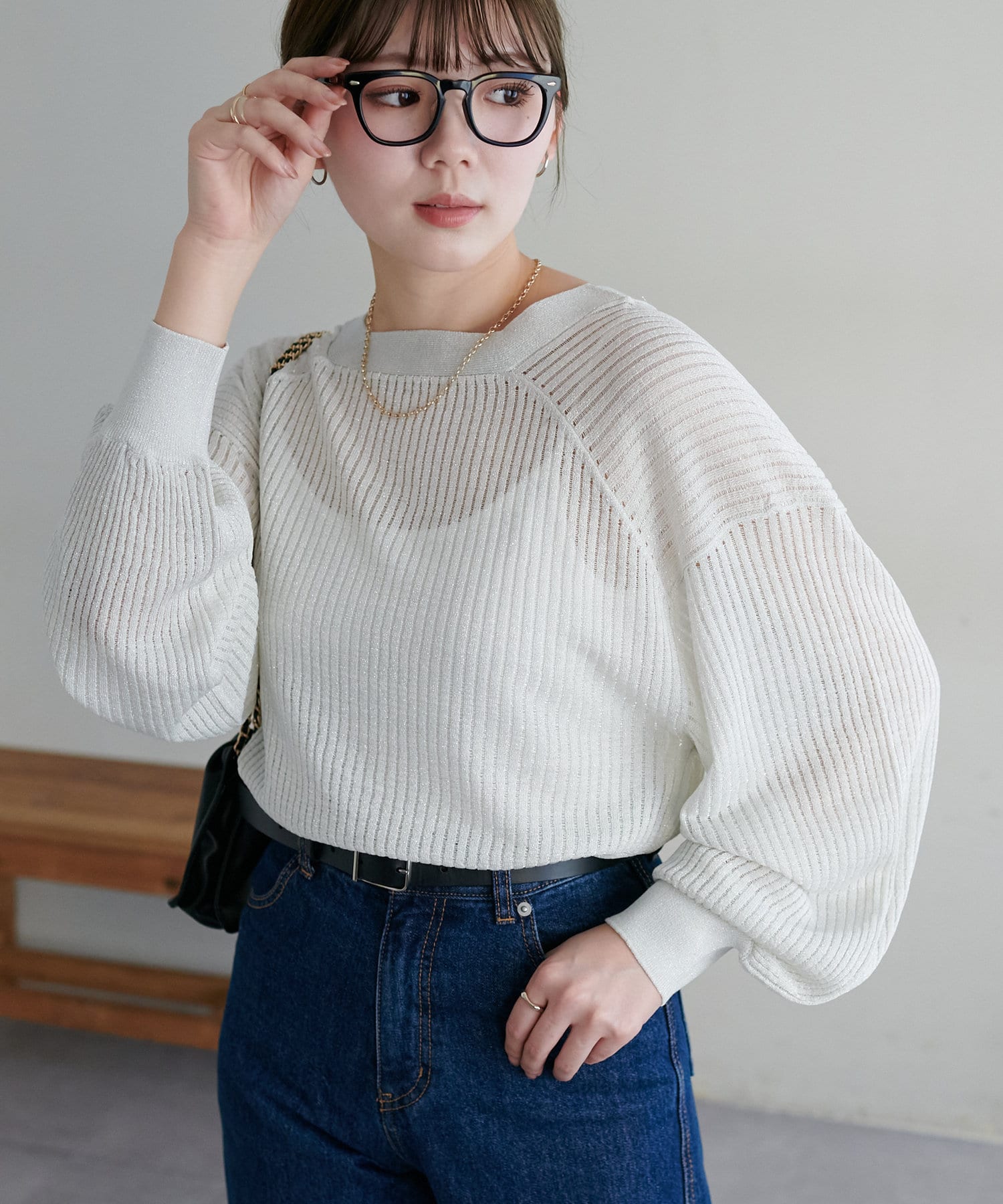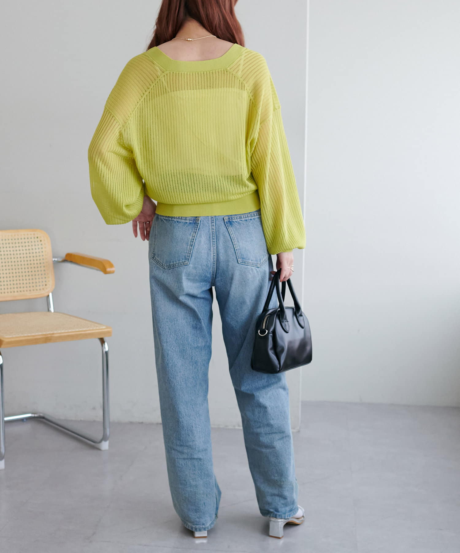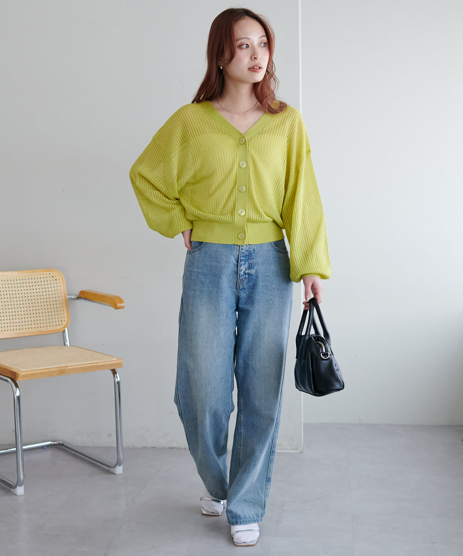【Discoat】【前後2WAY】ラメリブシアーVカーディガン