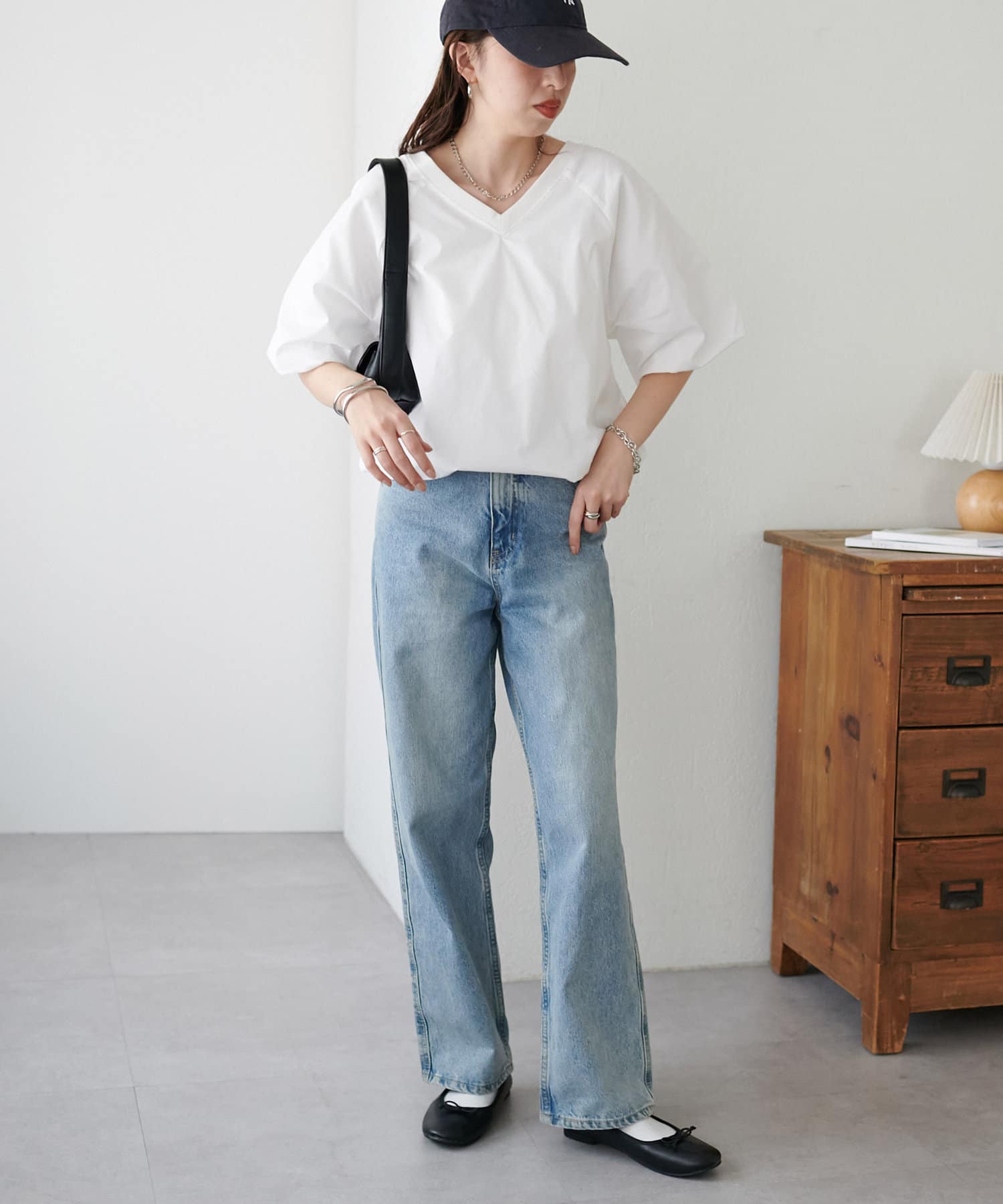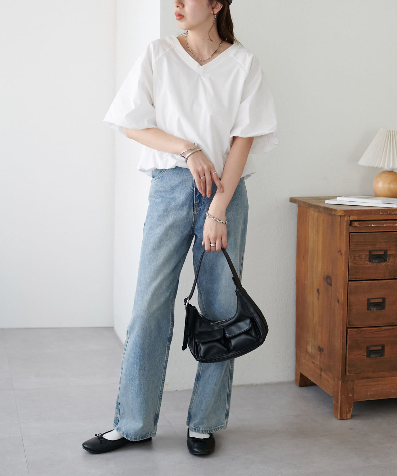 【Discoat】【前後2WAY】衿リブバルーンブラウス