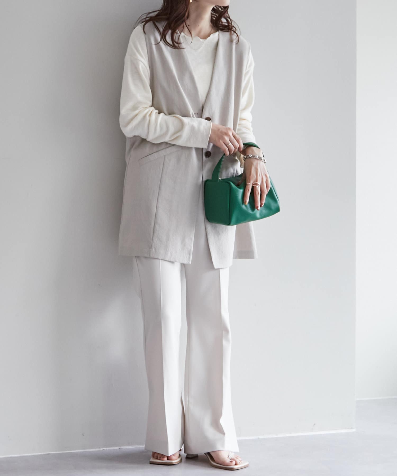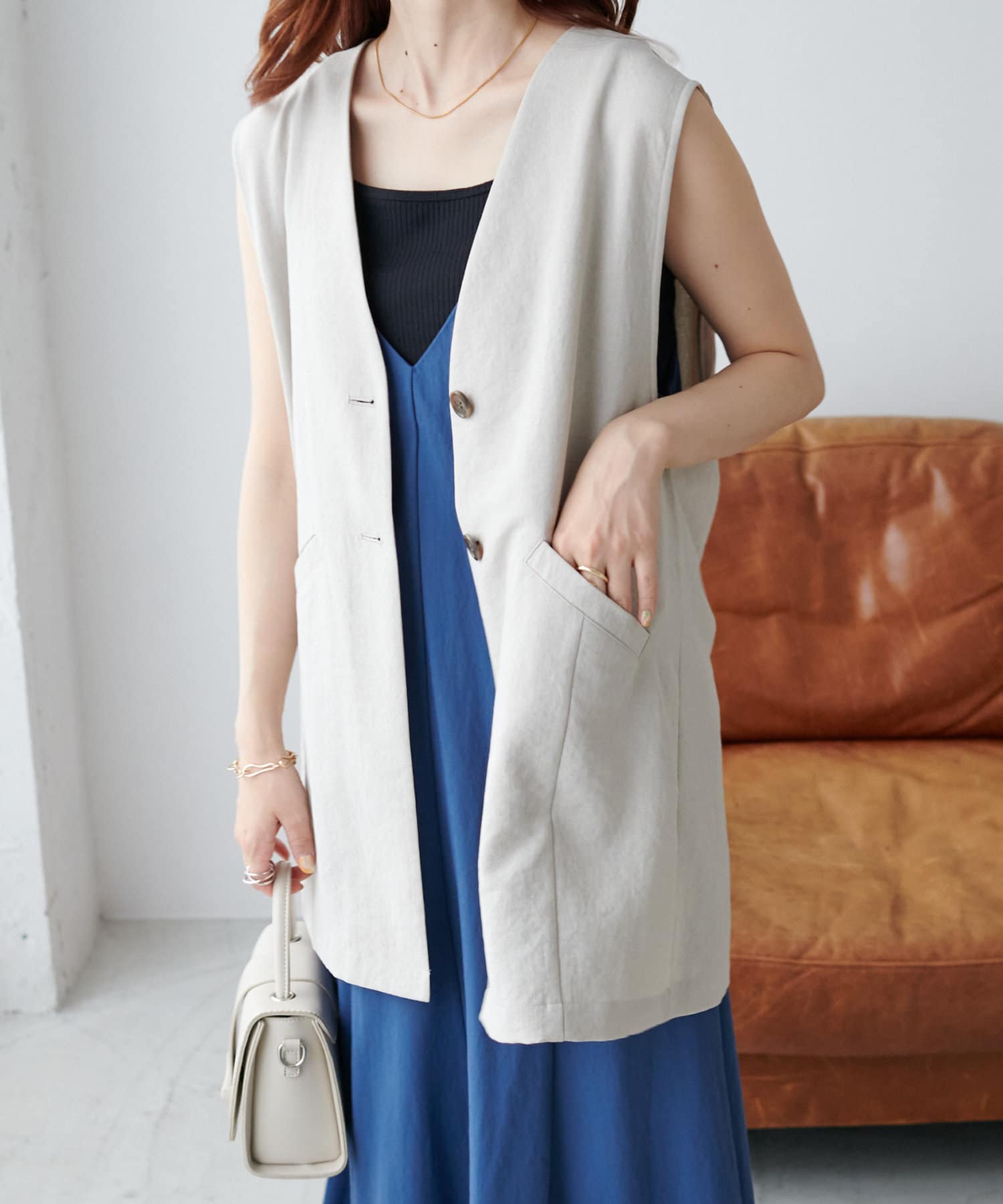 黒色のジレは持っていたので、ライトグレーかベージュが欲しいと思いずっと購入を迷っていましたが、SALEになったのでライトグレーを購入しました!肌触りもよくTシャツの上に羽織るだけでオシャレ度アップするので重宝してます!
