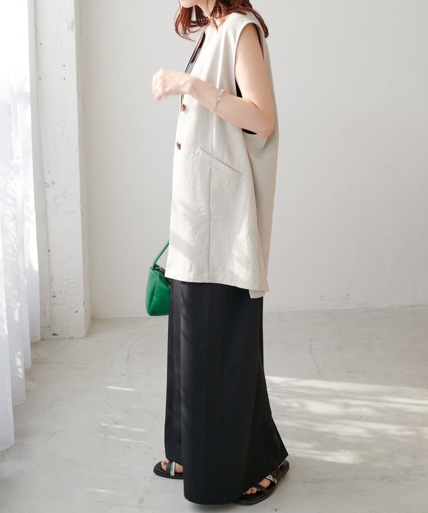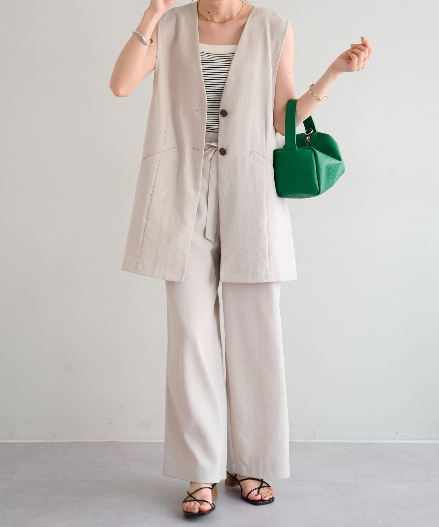 TOP > DISCOAT > レディース > トップス > ベスト/ジレ > 【WEB限定】テックリネンノーカラージレ