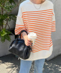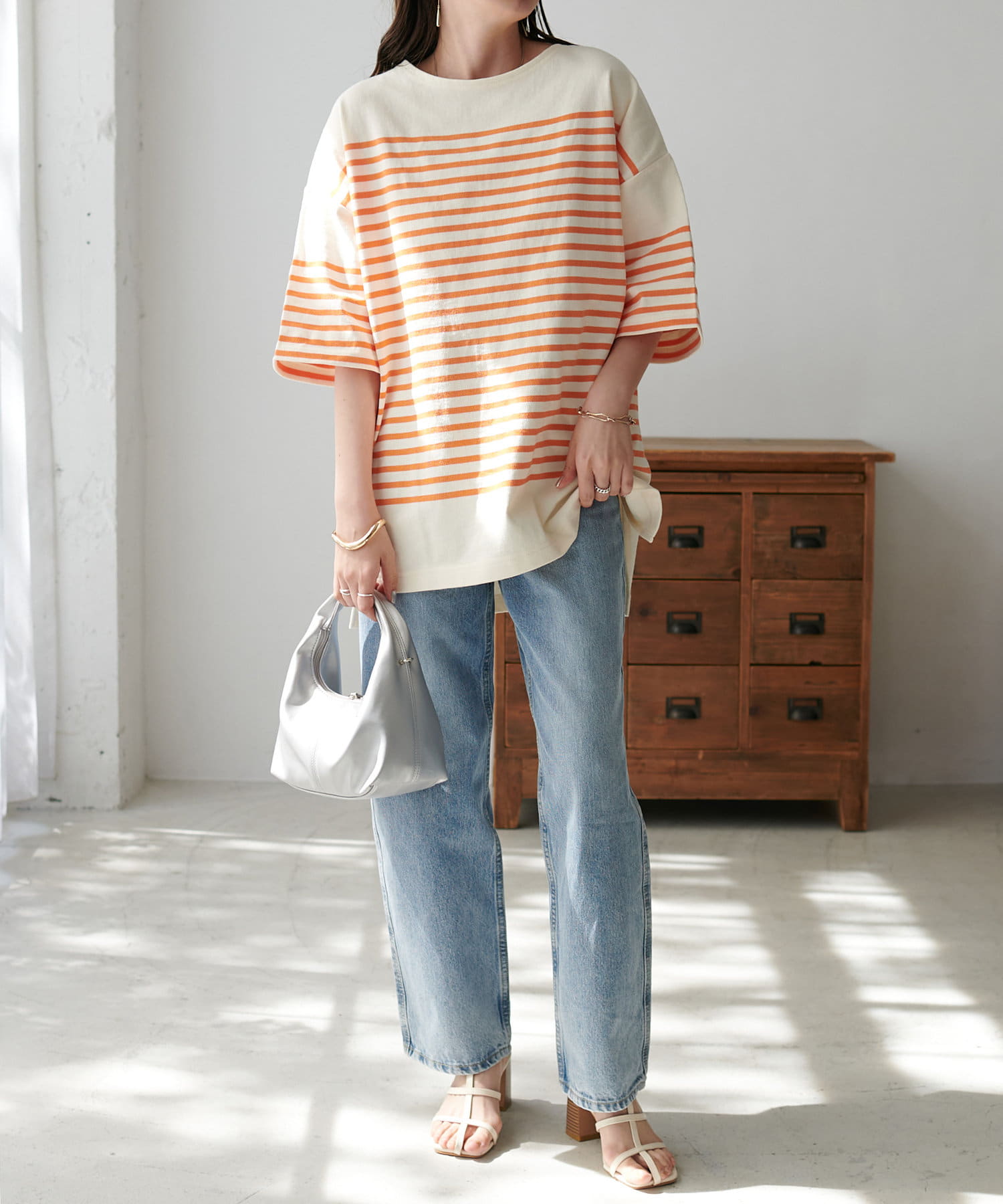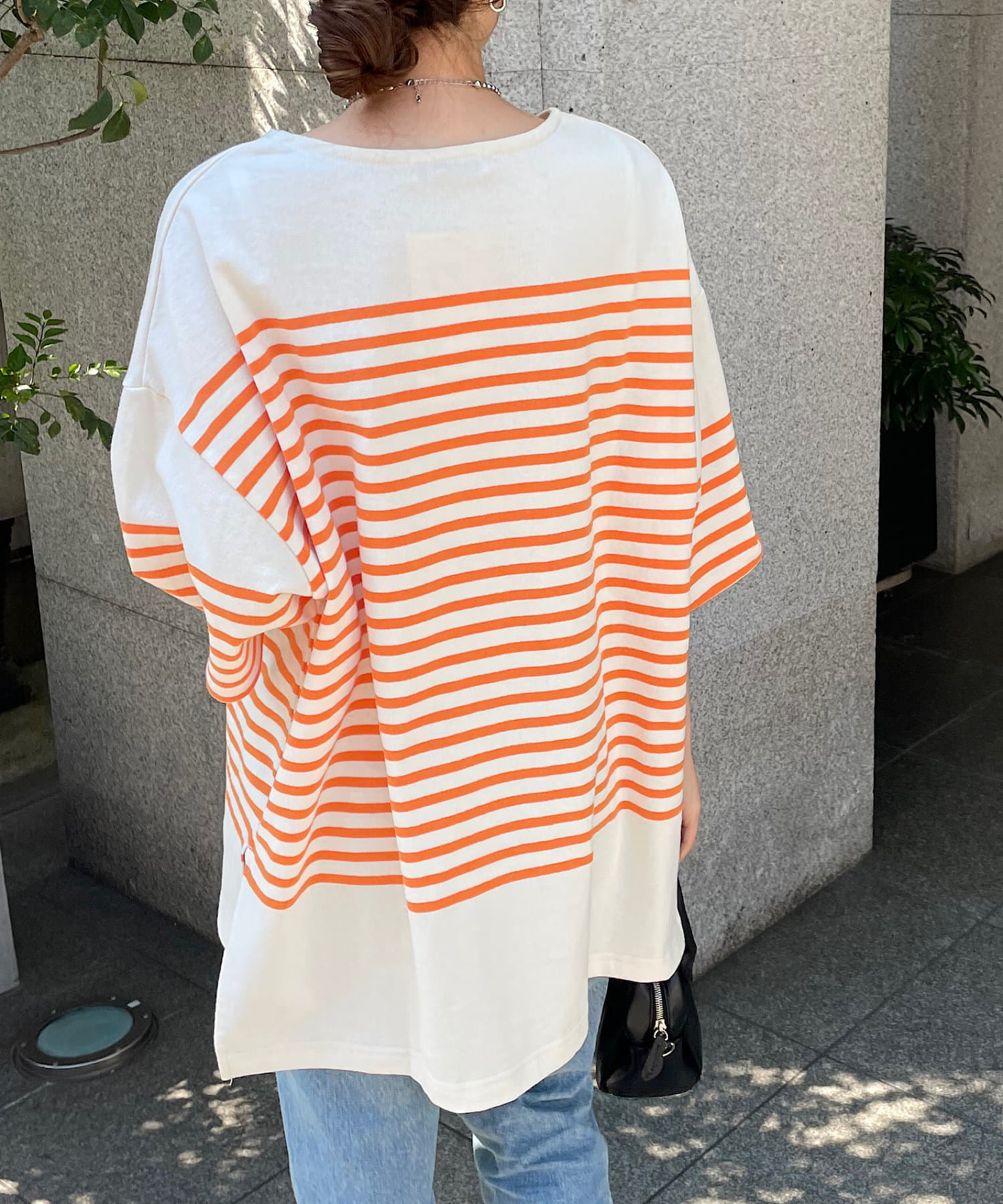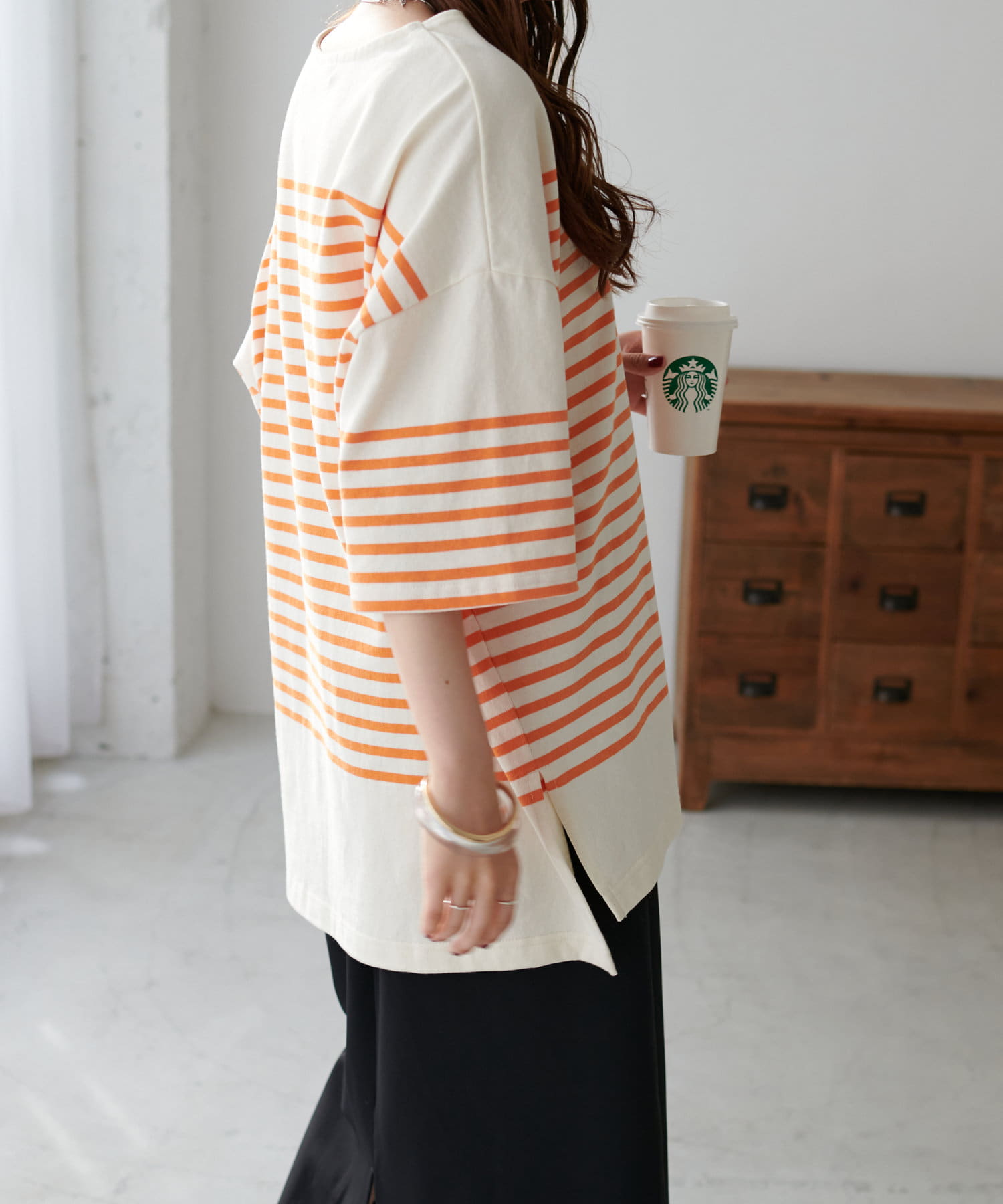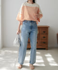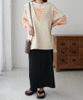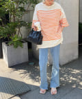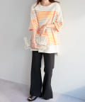 OnlineStore chiba(167cm):ビッグサイズのボーダーTはスリット入りなので抜け感があってすっきり着れます◎細身のナロースカートとの相性が◎