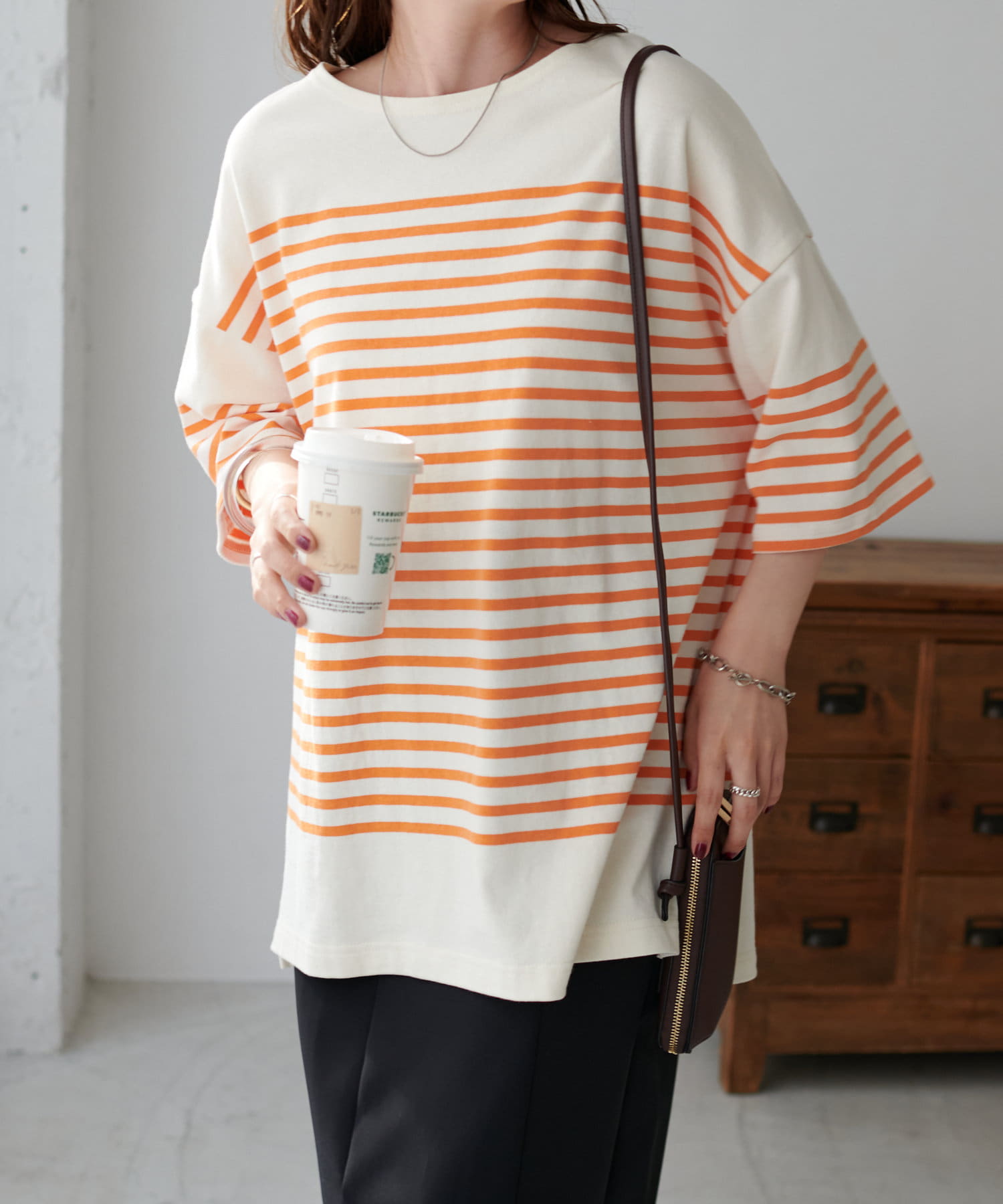 大人気のバスクボーダープルオーバーが、5分袖バージョンでリニューアル登場!前後差のある着丈に、リラックス感のあるシルエットが特徴。大胆なオーバーサイズは、取り入れるだけでこなれ感のある着こなしを叶えます。さらりとした風合いの綿100%で、着心地も快適。ベーシックから色物まで、カラーバリエーション豊富にご用意致しました♪
