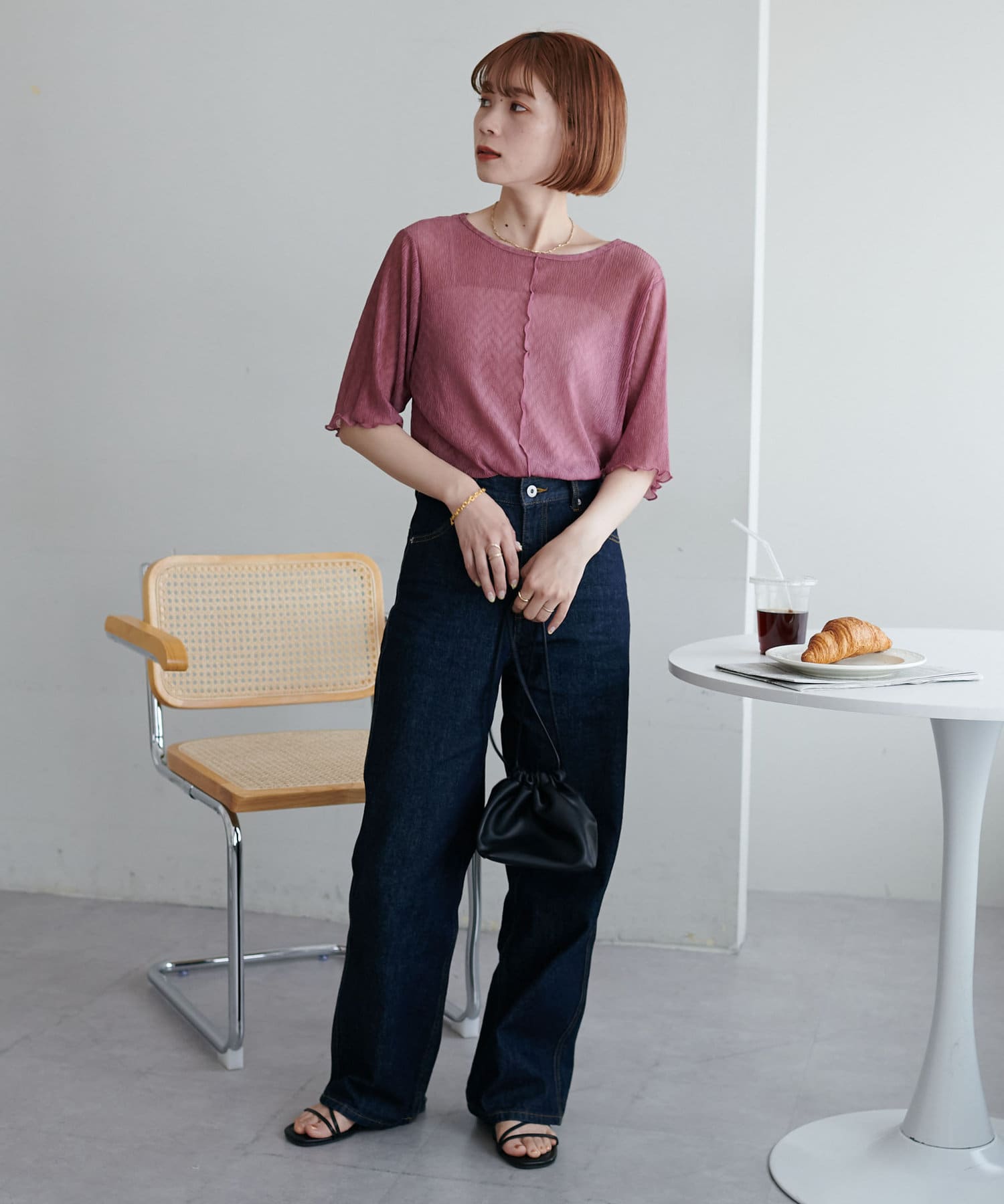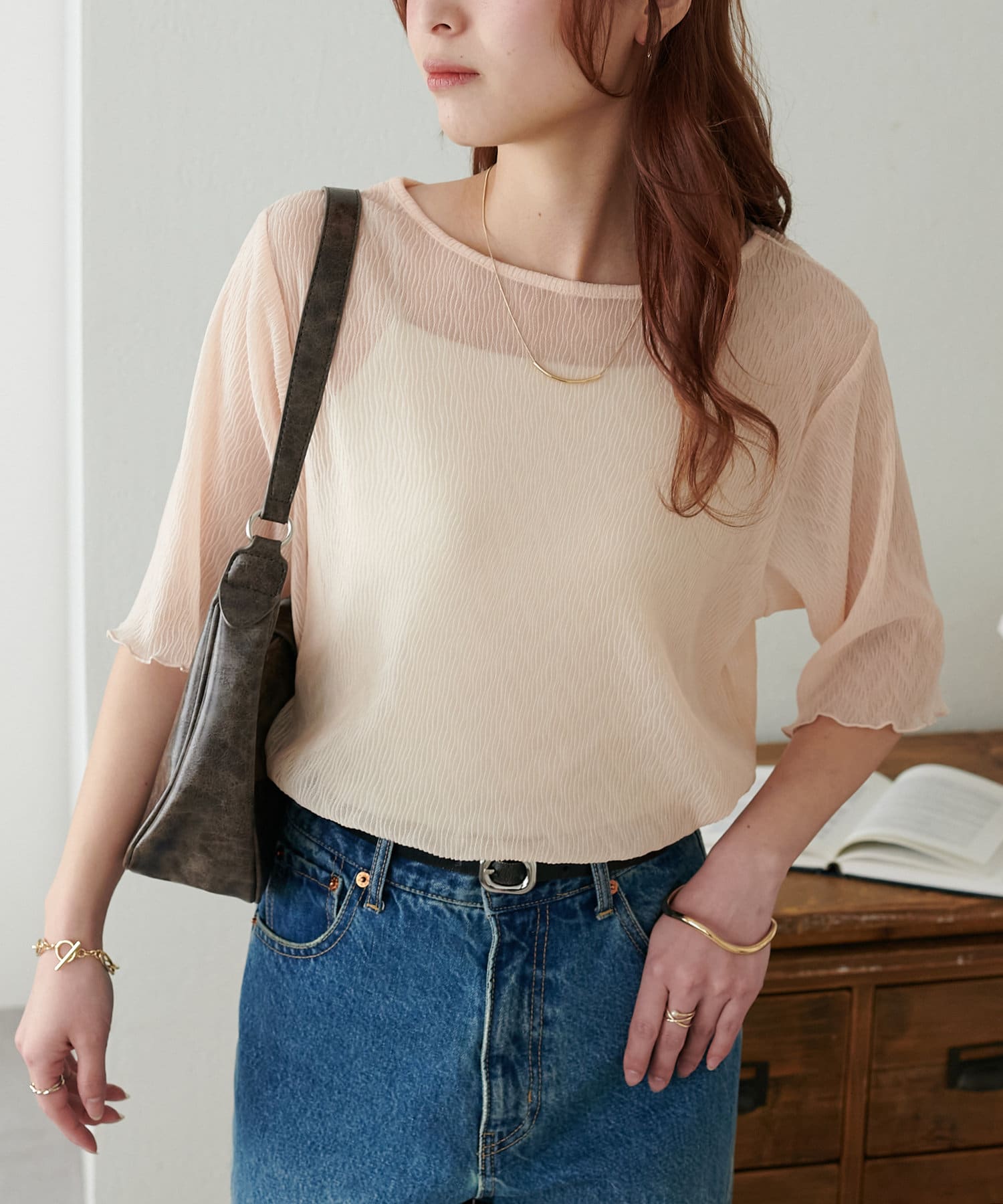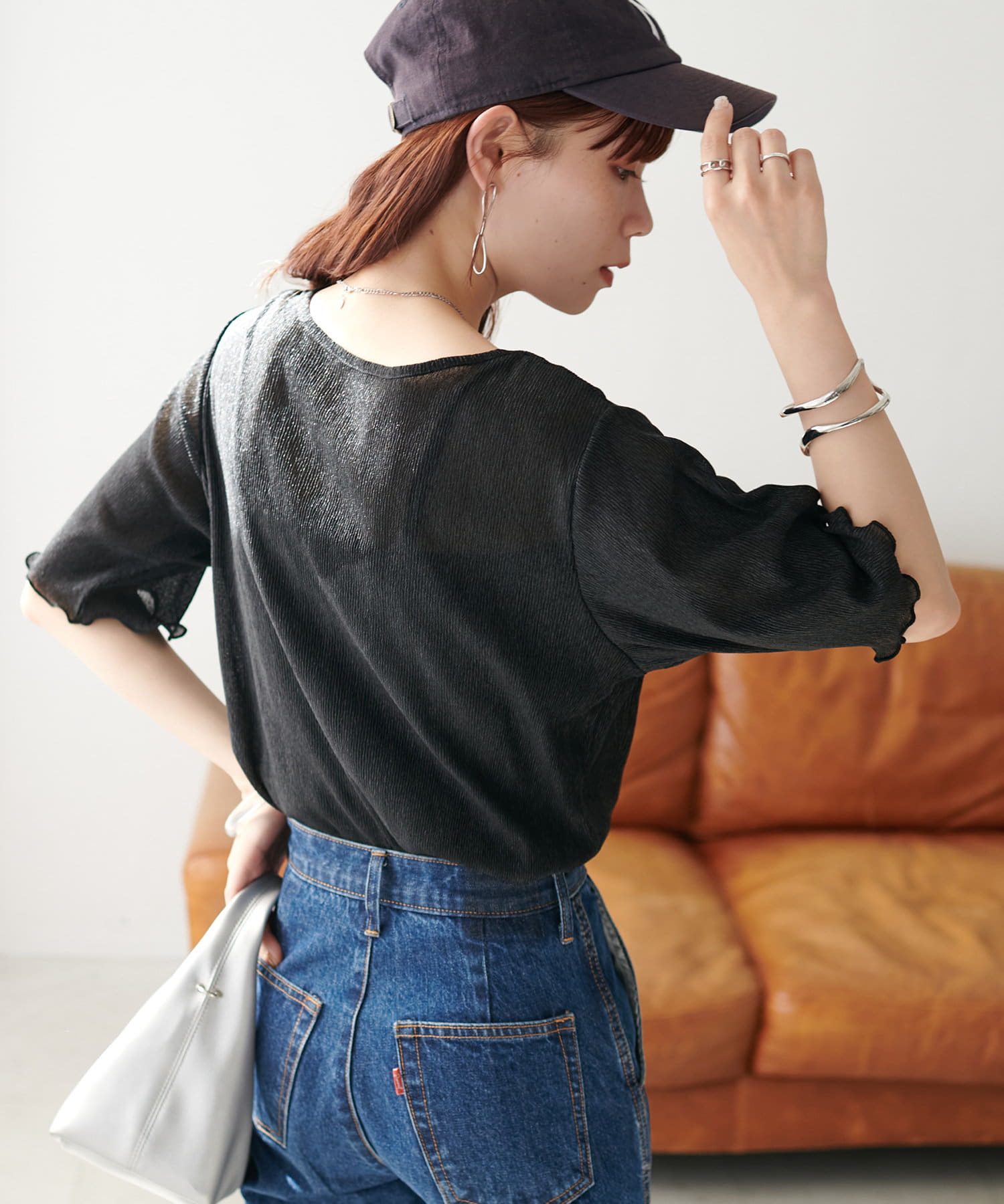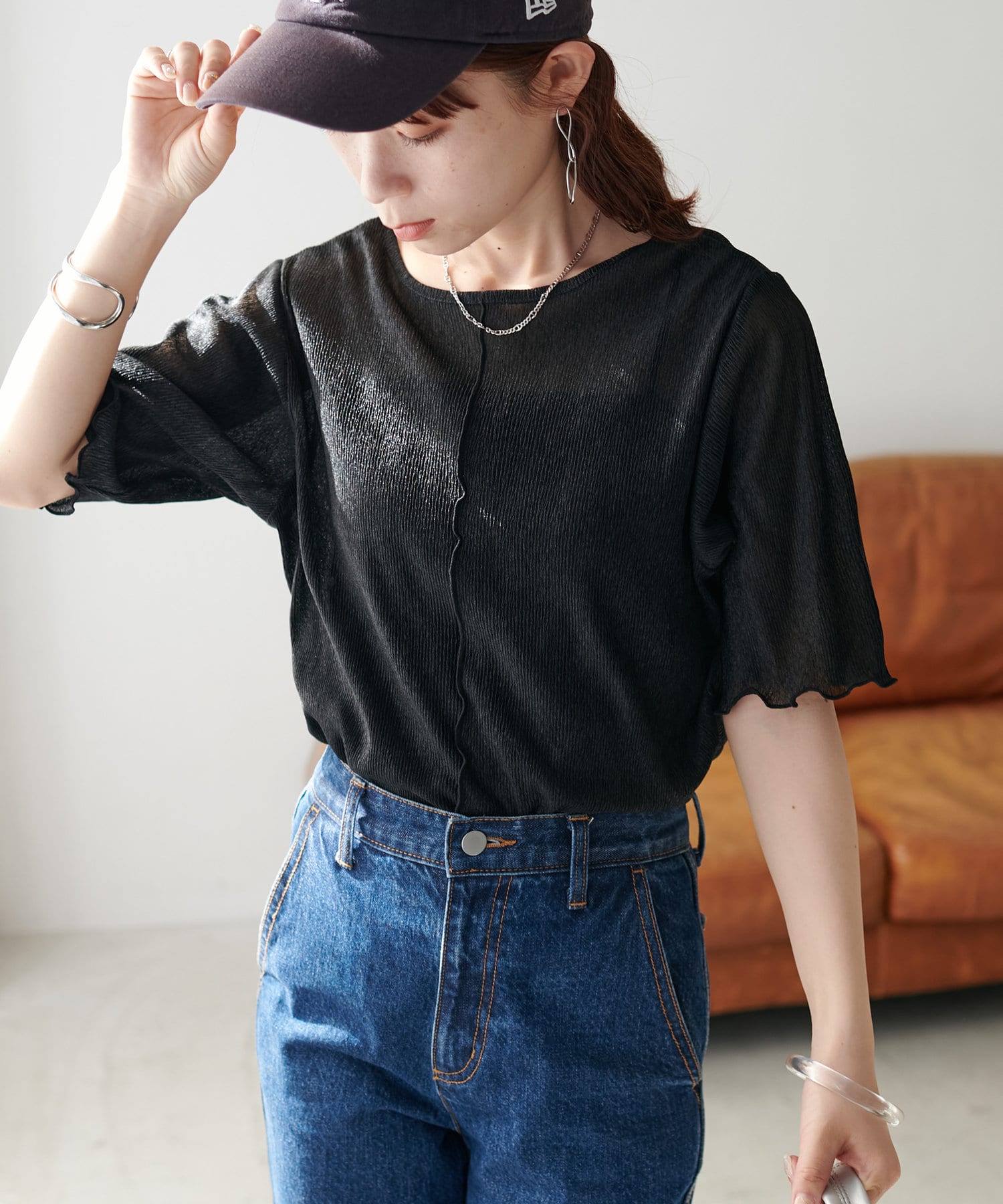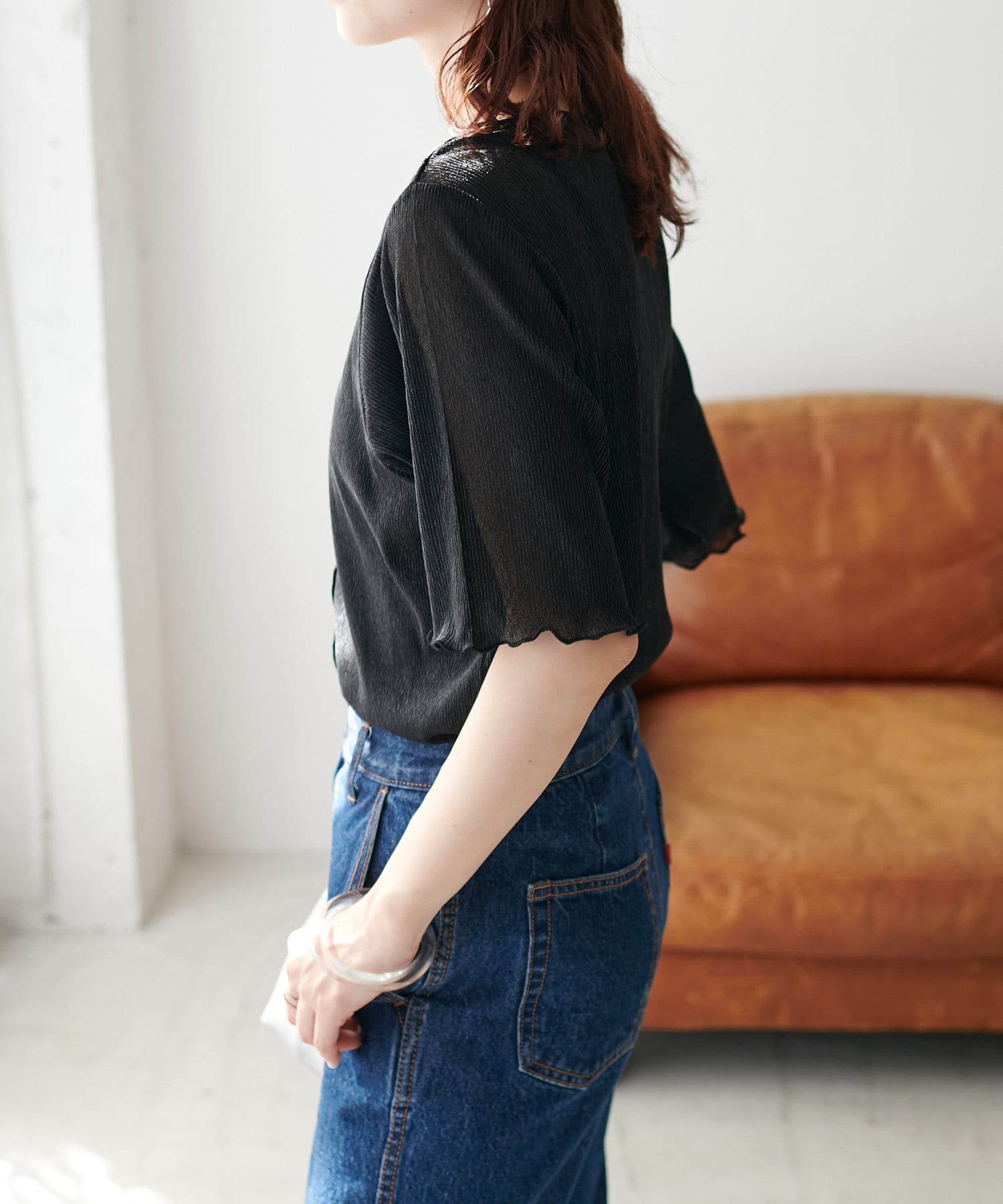 【新色追加!/WEB限定】前後2WAYラメプリーツシアーT