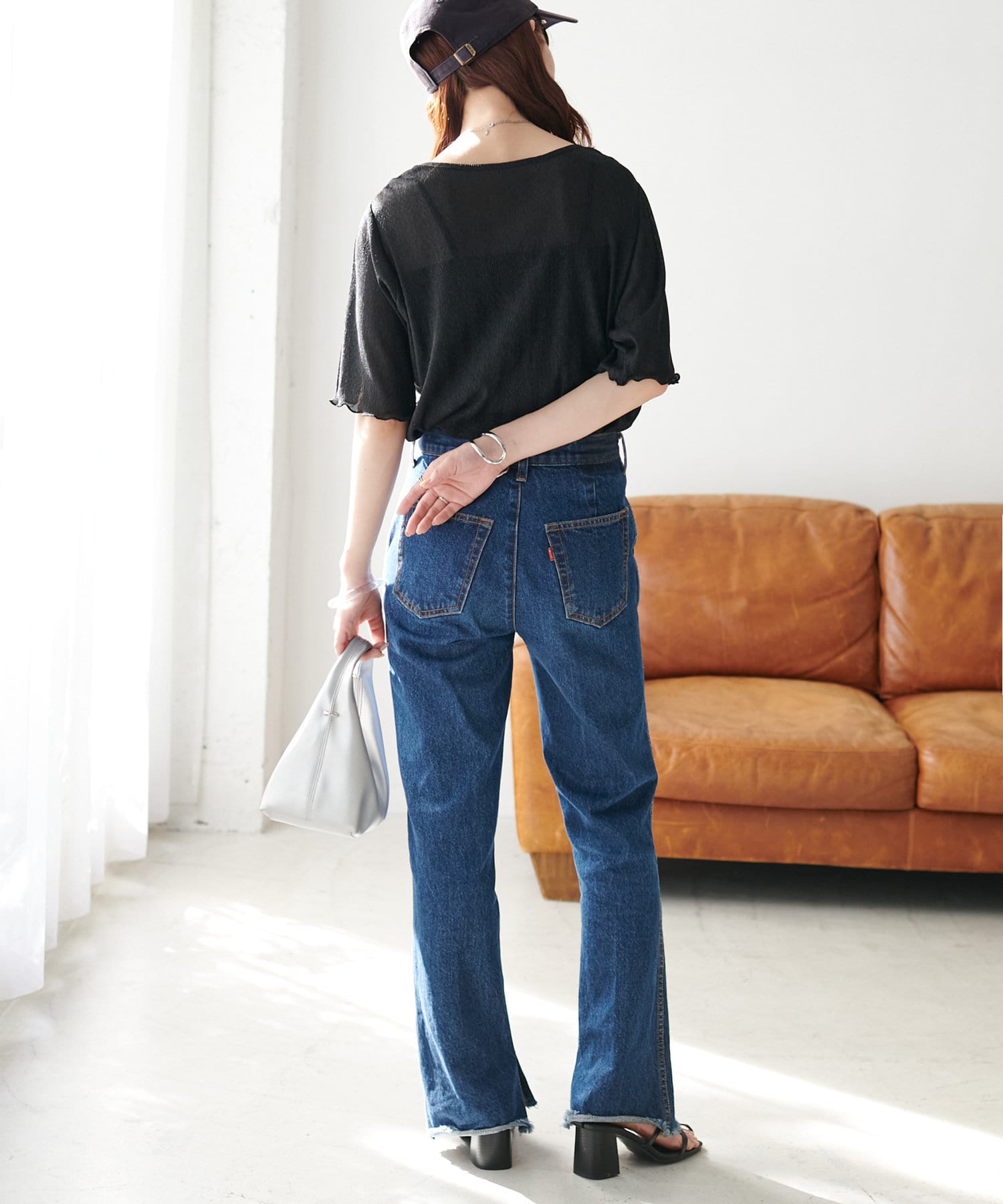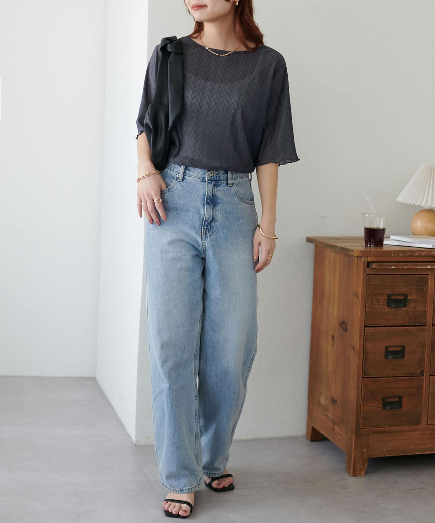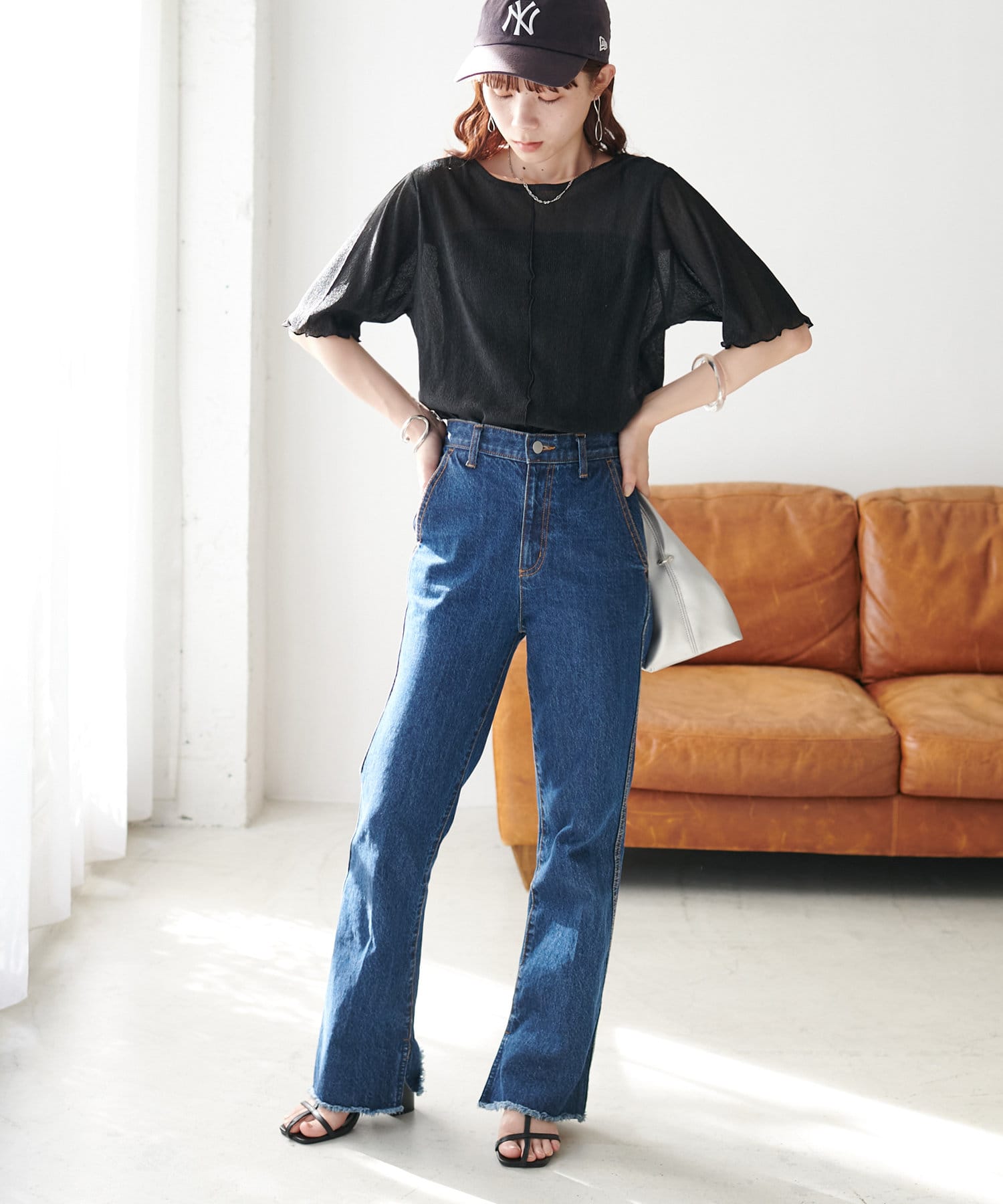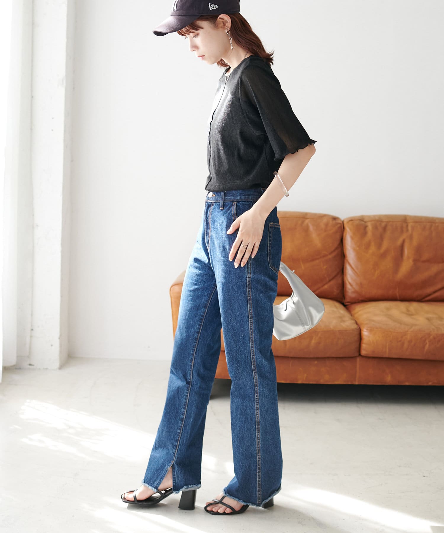インでもアウトでもこなれ感のでるアイテムです。定番のデニムはもちろん、リメイクパンツやカーゴパンツ等でキレイめカジュアルな印象になる着こなしもおすすめです♪