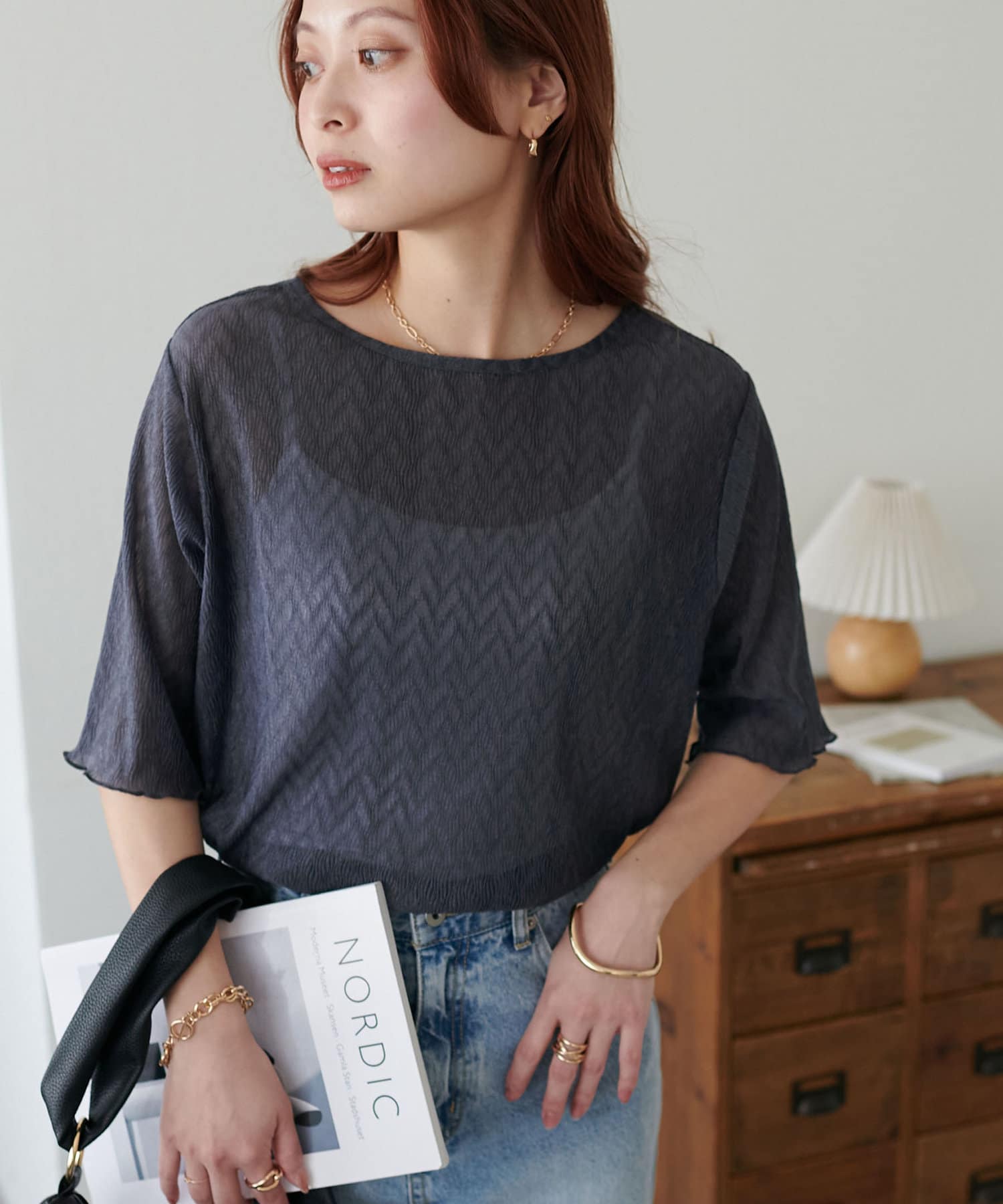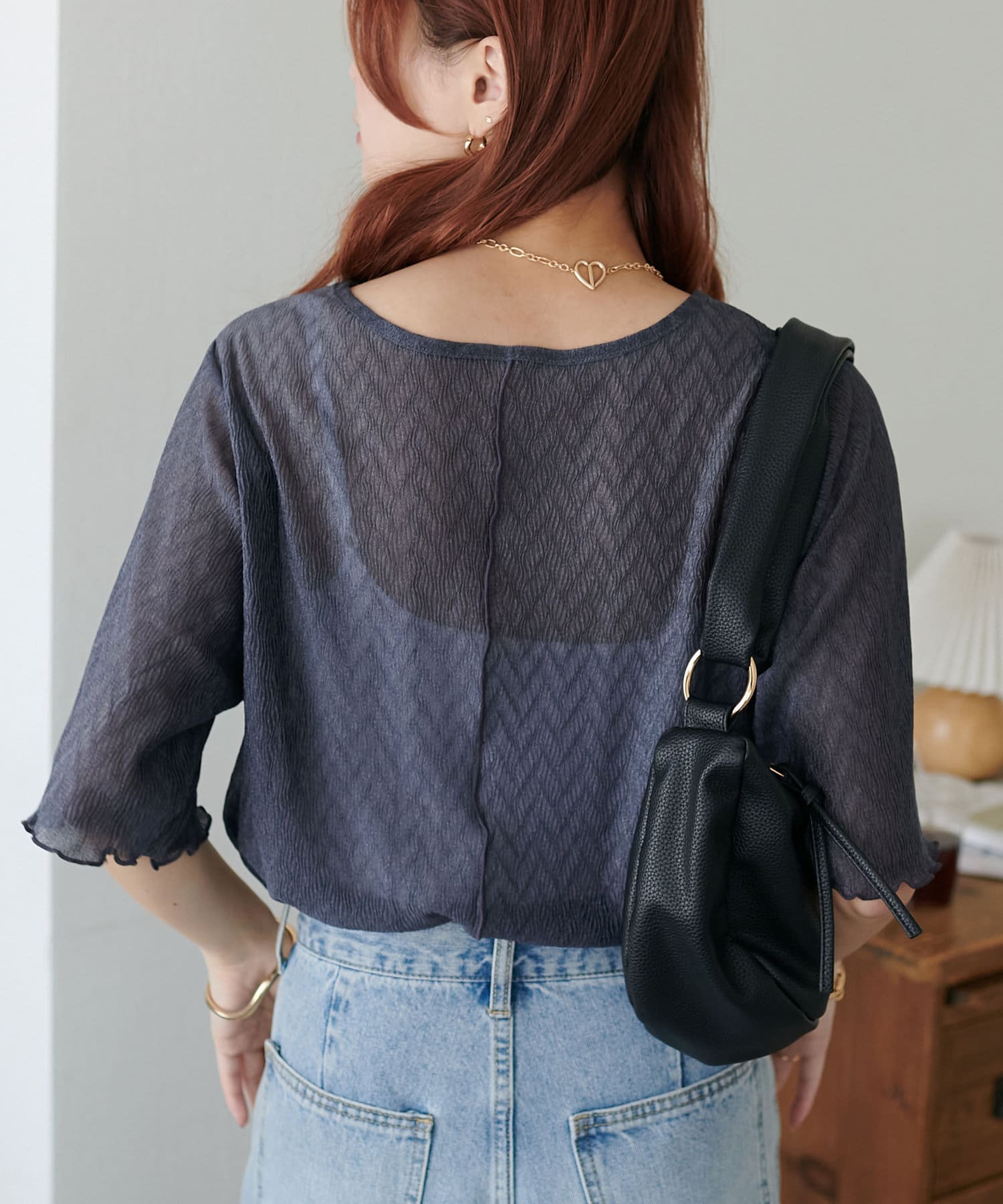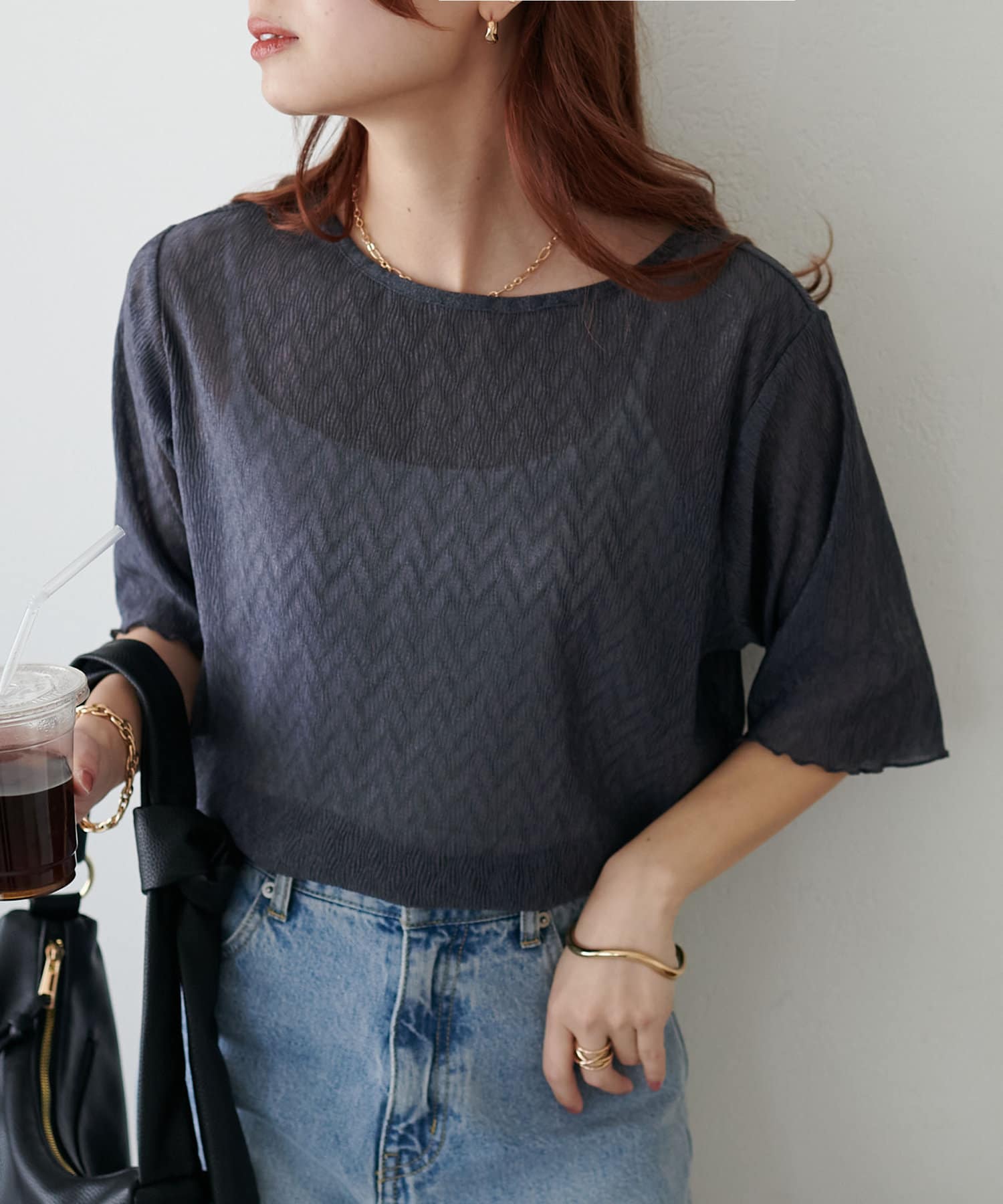 黒なのでそこまで透け感がなく、とても涼しげです。袖丈もあり、二の腕が隠れるので助かります。