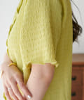 155cmスタッフ(Fサイズ着用):程よくゆとりのあるサイズ感で、窮屈感なく羽織れました◎袖丈も肘上ぐらいで、二の腕がカバーされるのが嬉しいです!