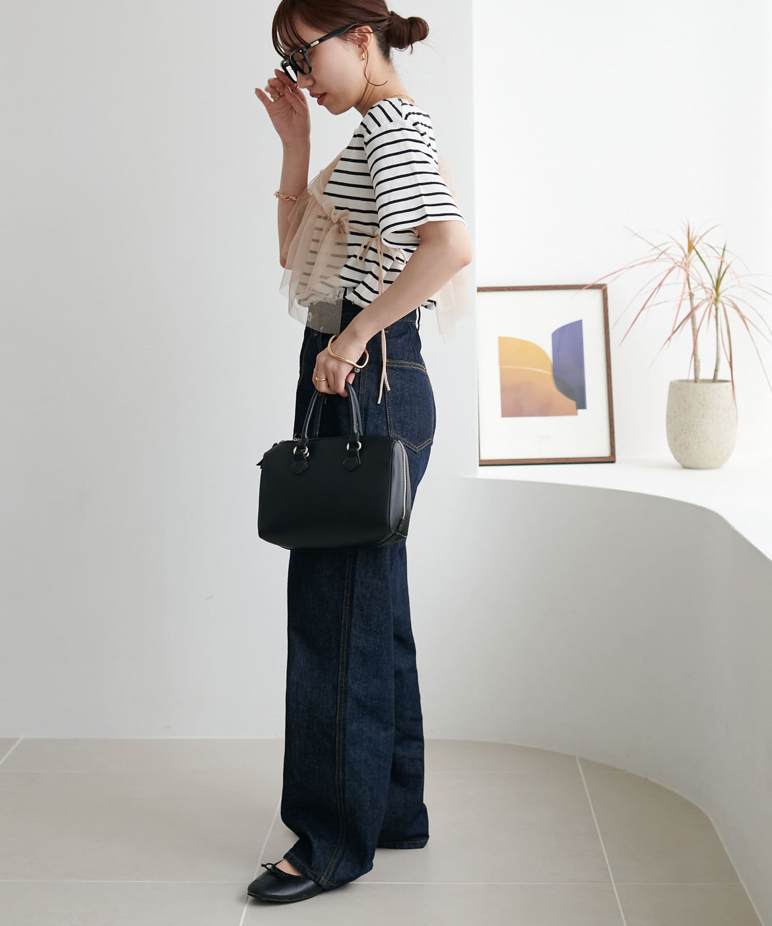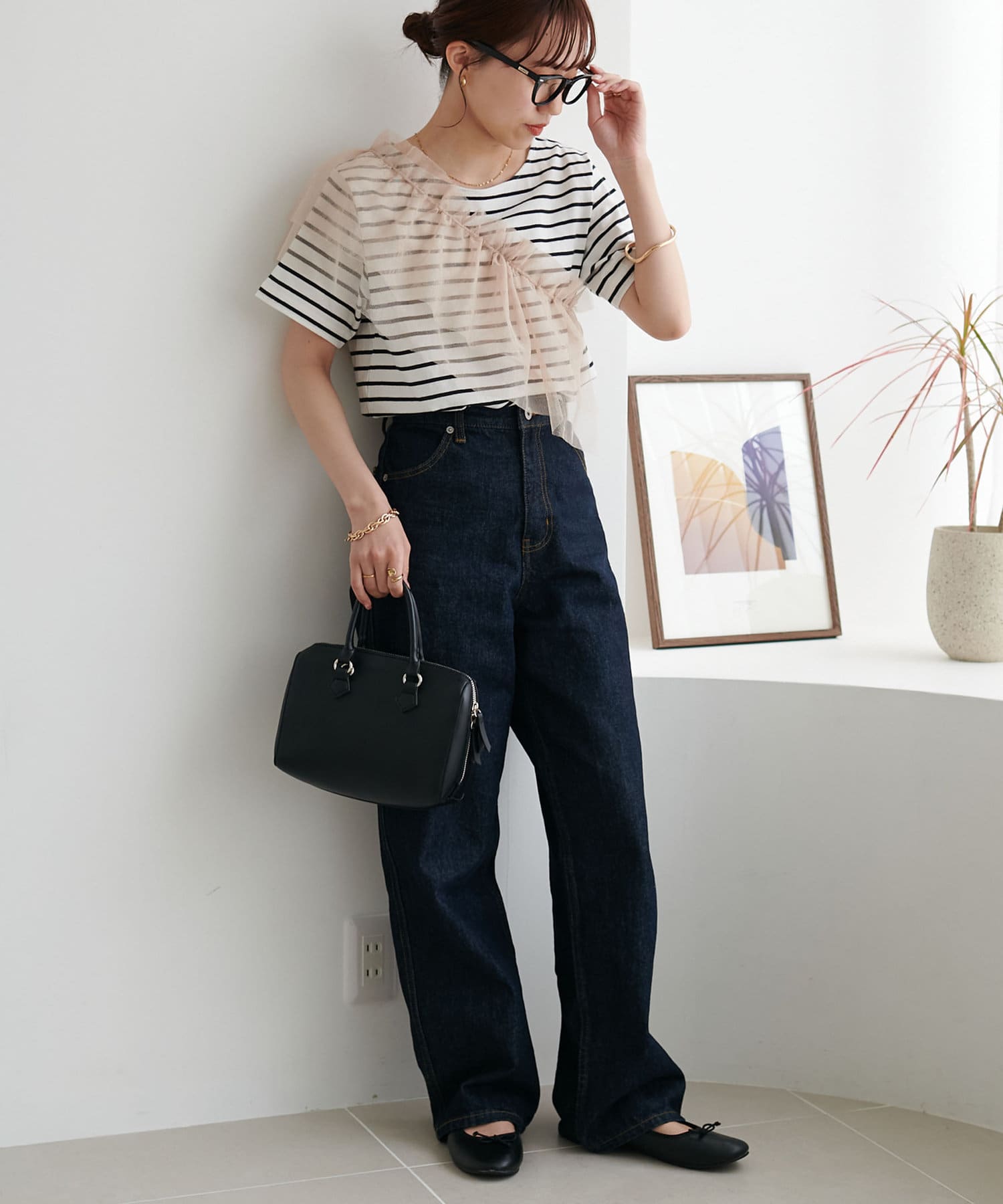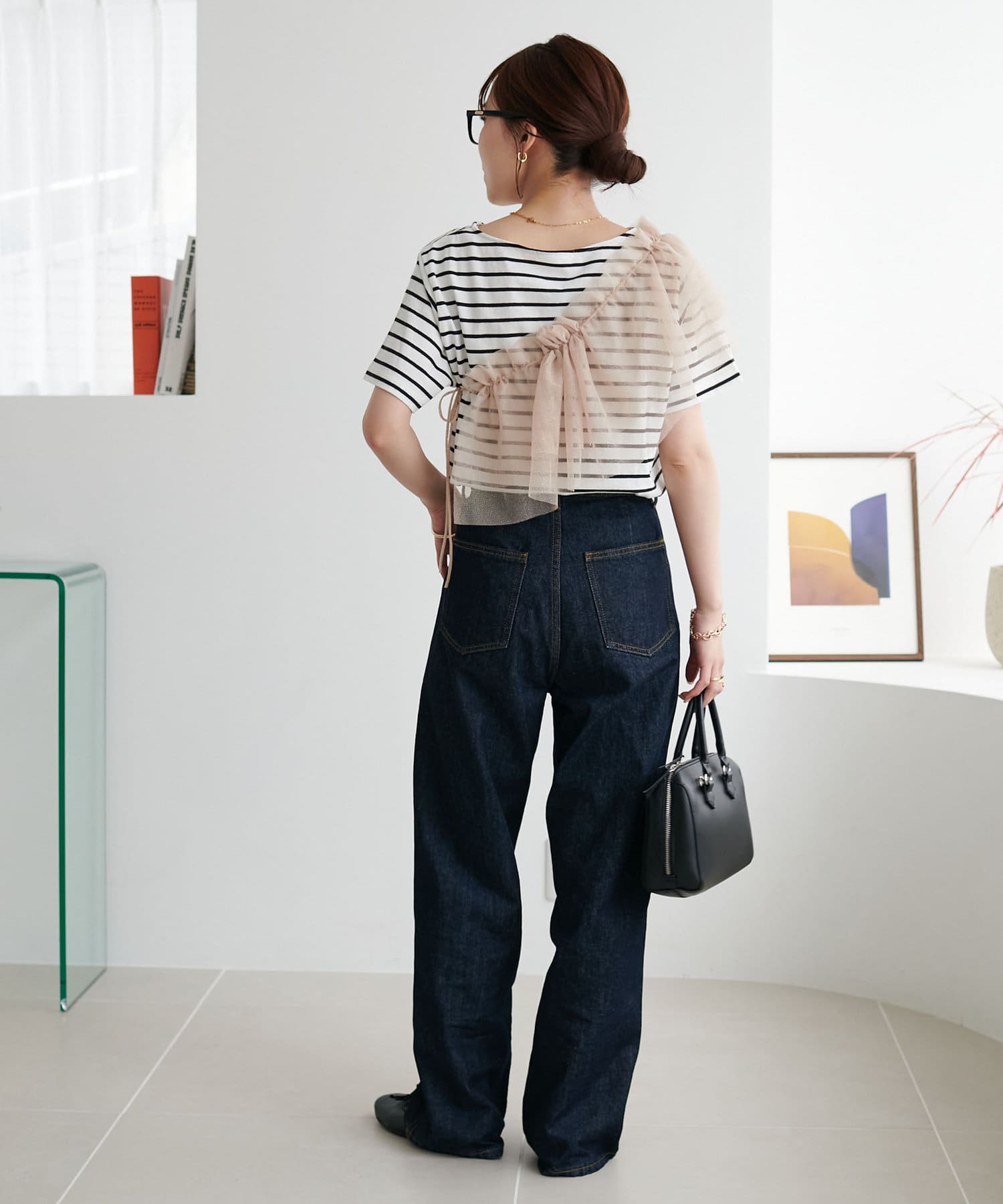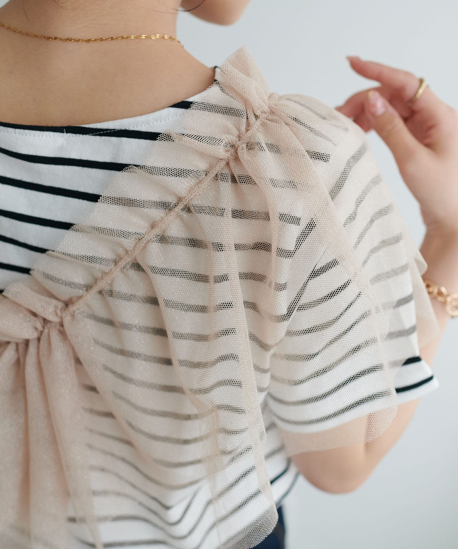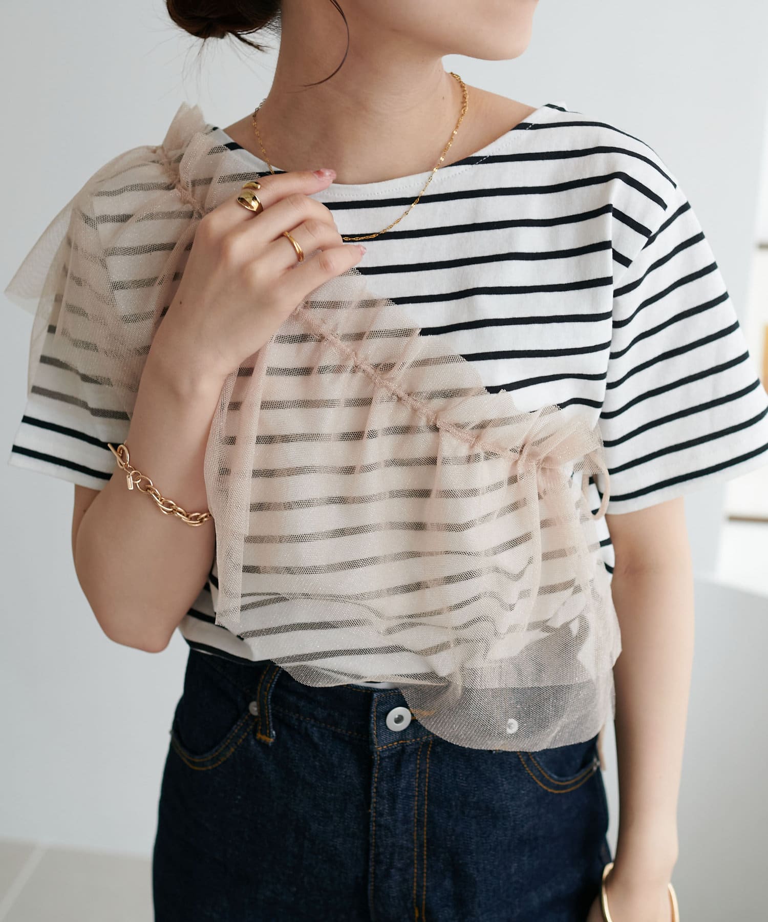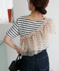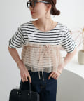コンパクトなサイズ感なので、どんなボトムスとも好相性。セットのTシャツと合わせるのはもちろん、お手持ちのカットソーやキャミワンピースとのレイヤードもでき、様々なスタリングができます。チュールの付け方でも印象がガラッと変わるのでお好みのアレンジをお楽しみください♪