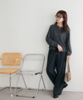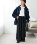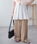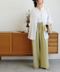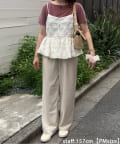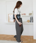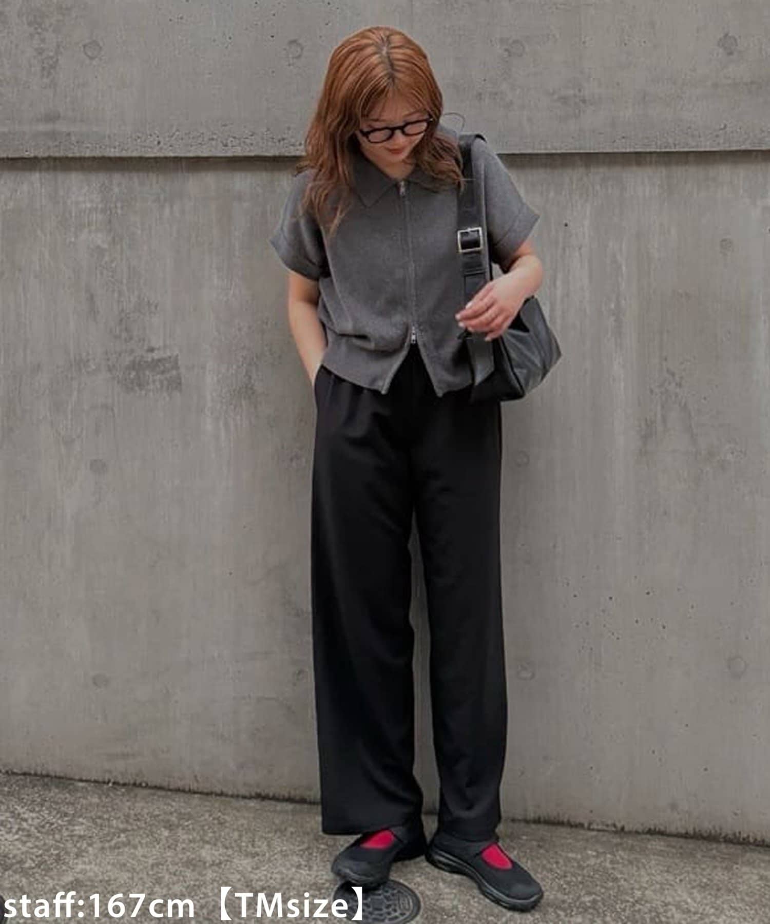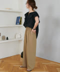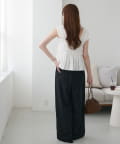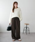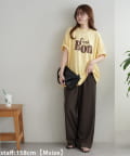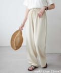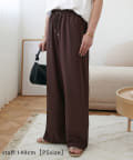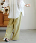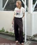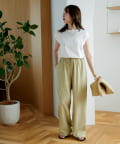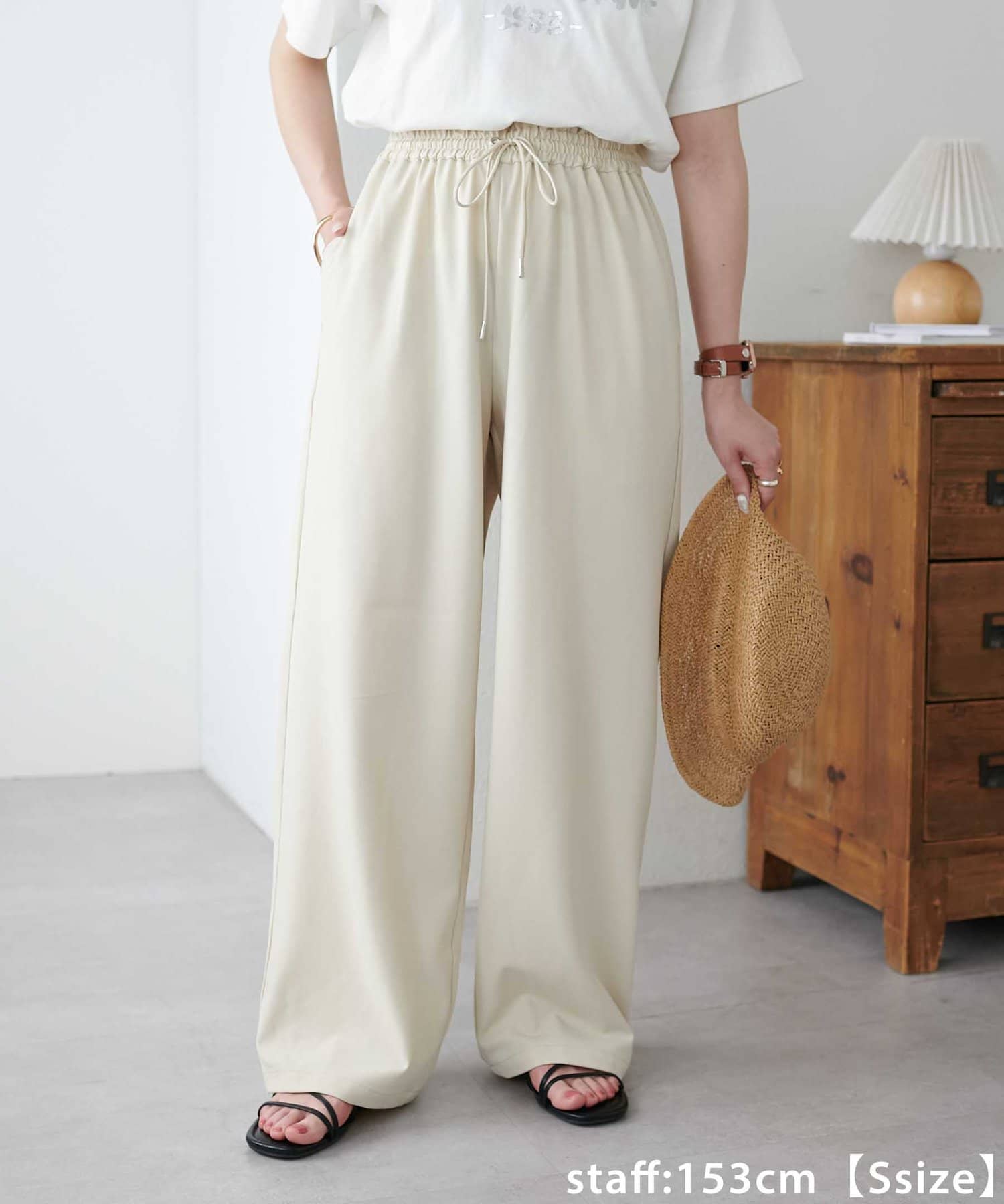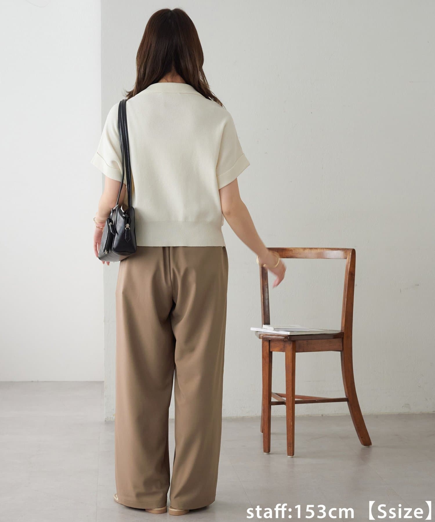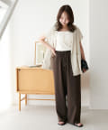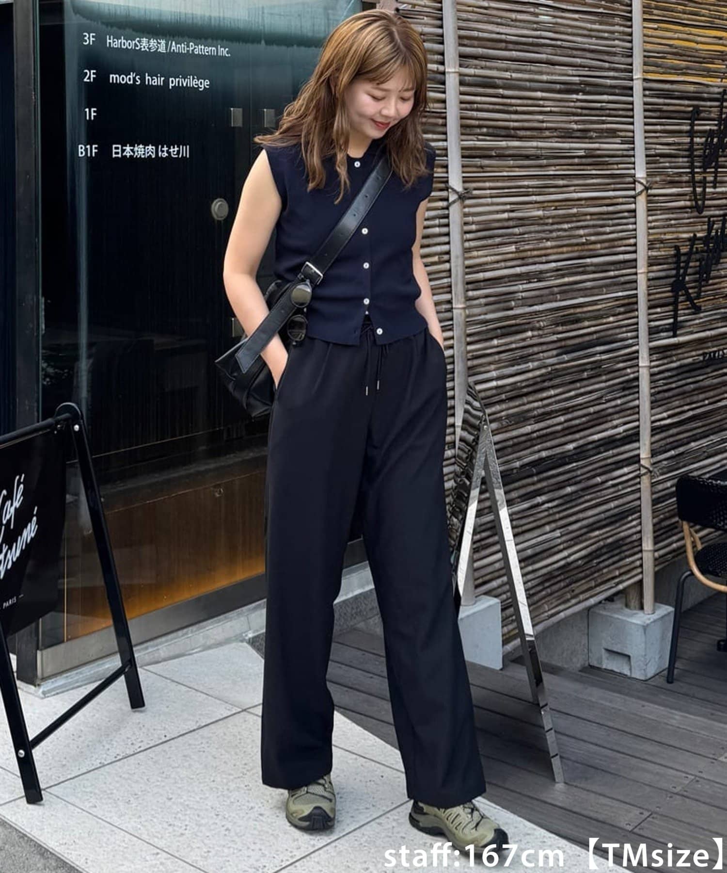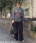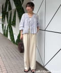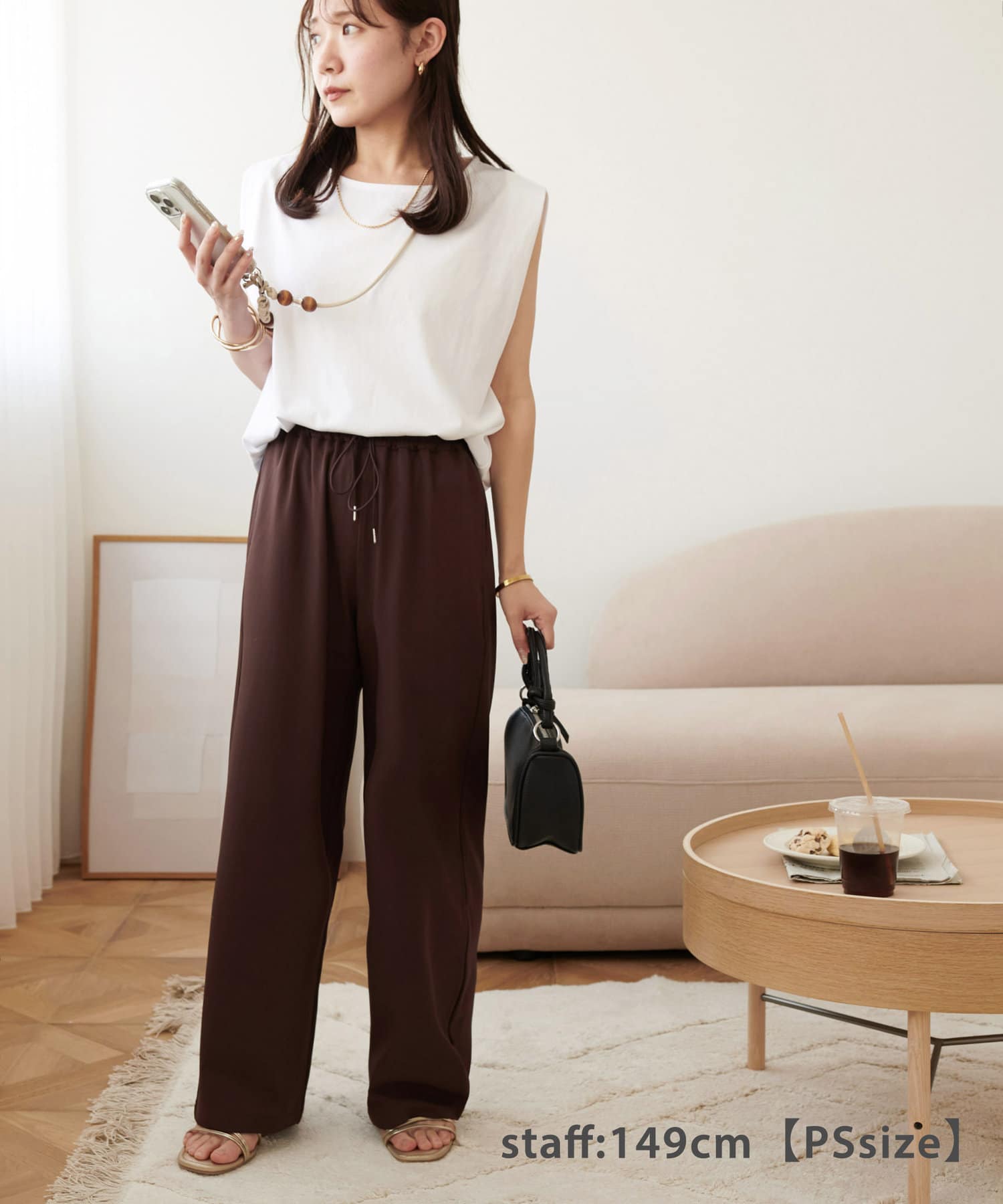 149cmスタッフ(Sサイズ着用):腰回りにギャザーが入っていることで、きれいな落ち感が出るのですっきりとした印象になります。