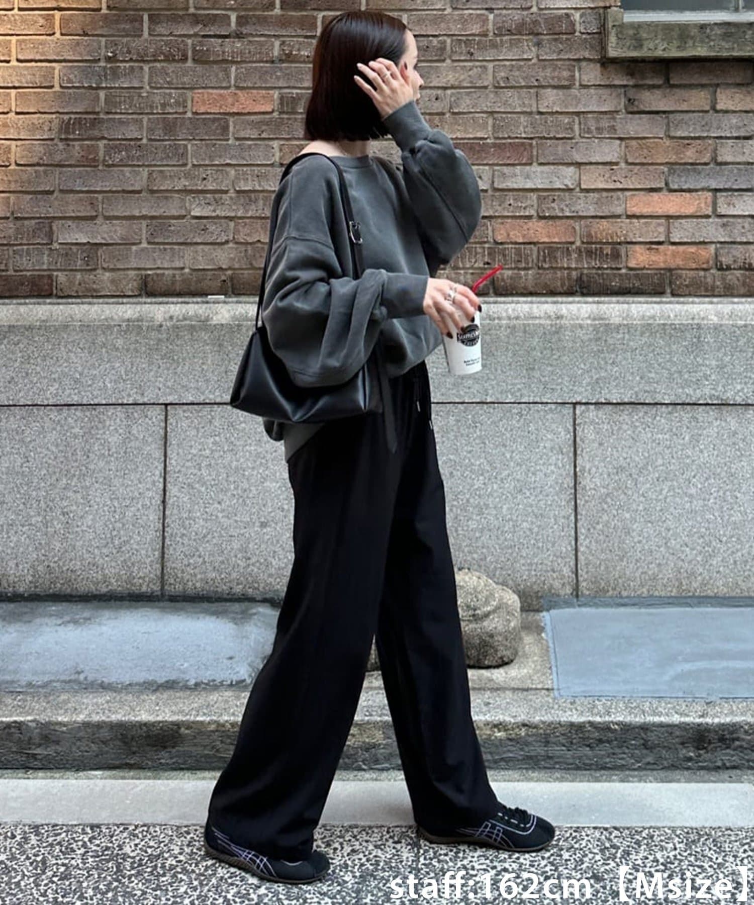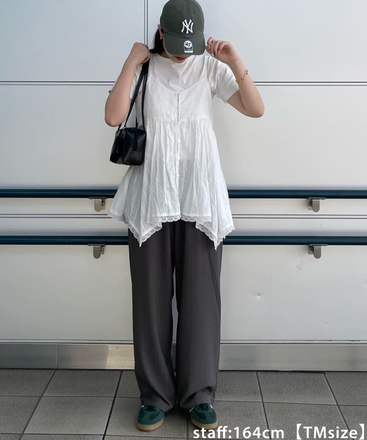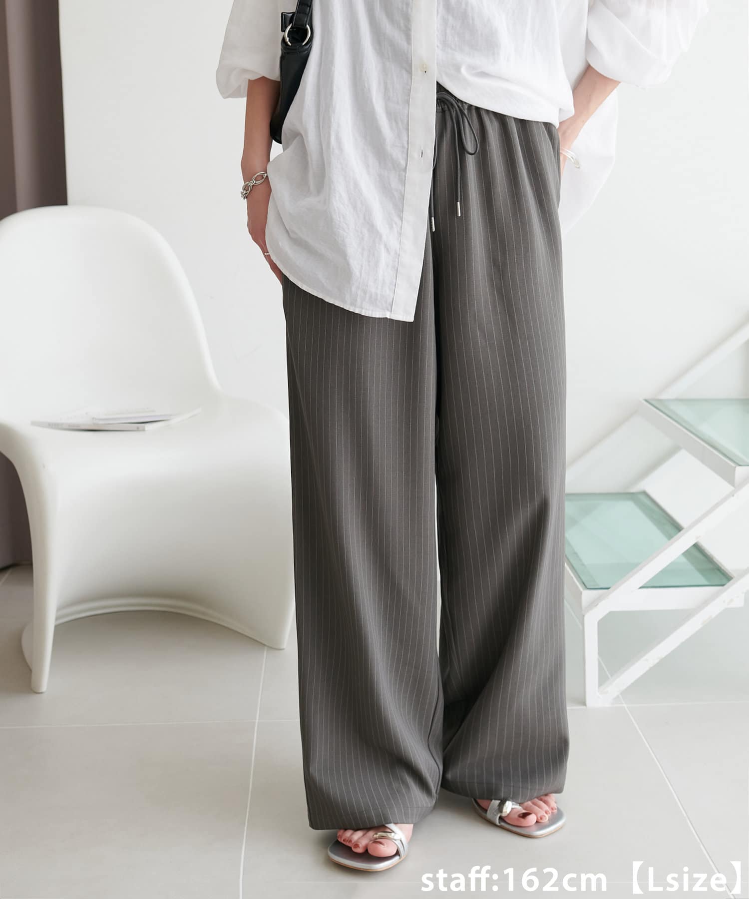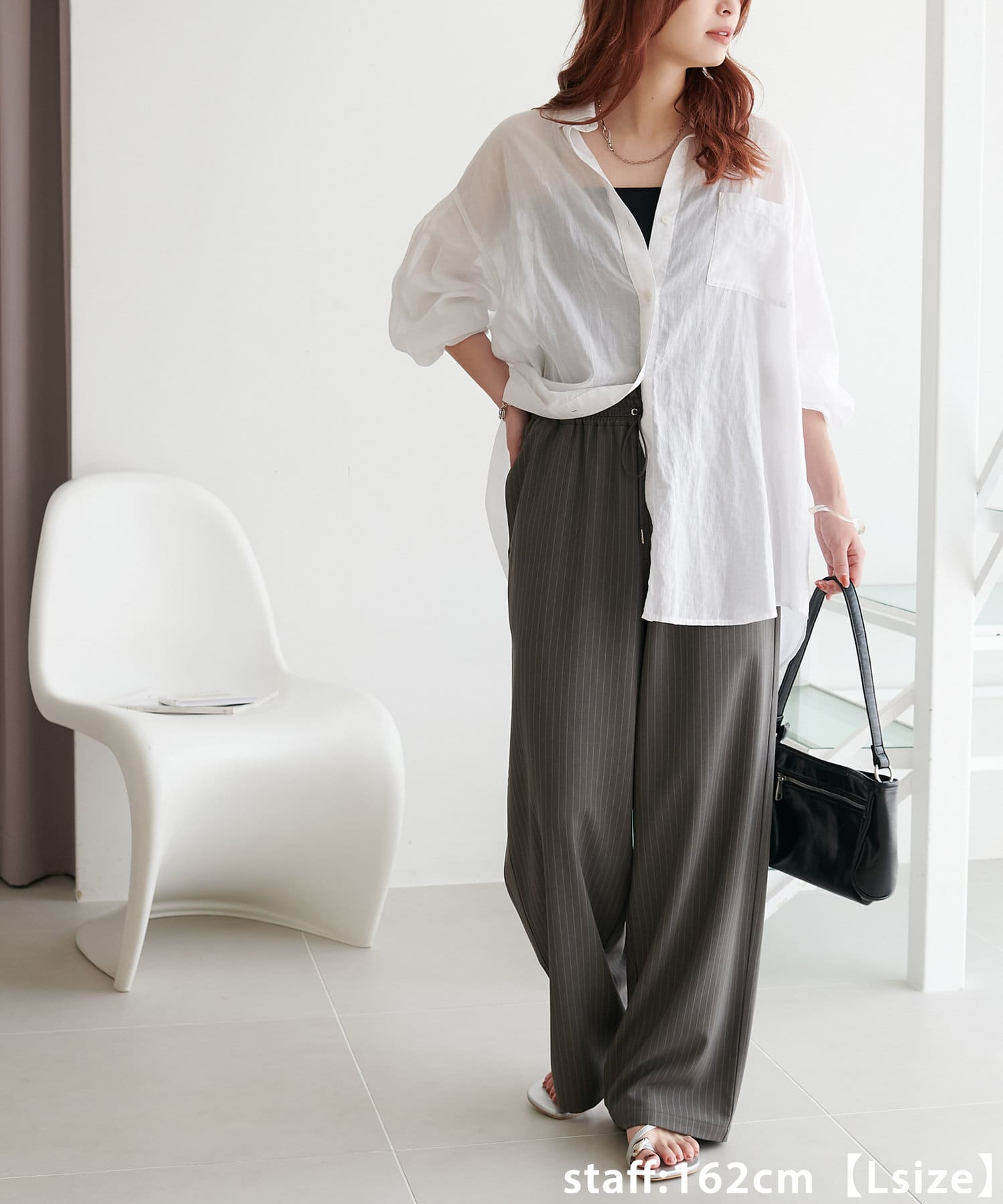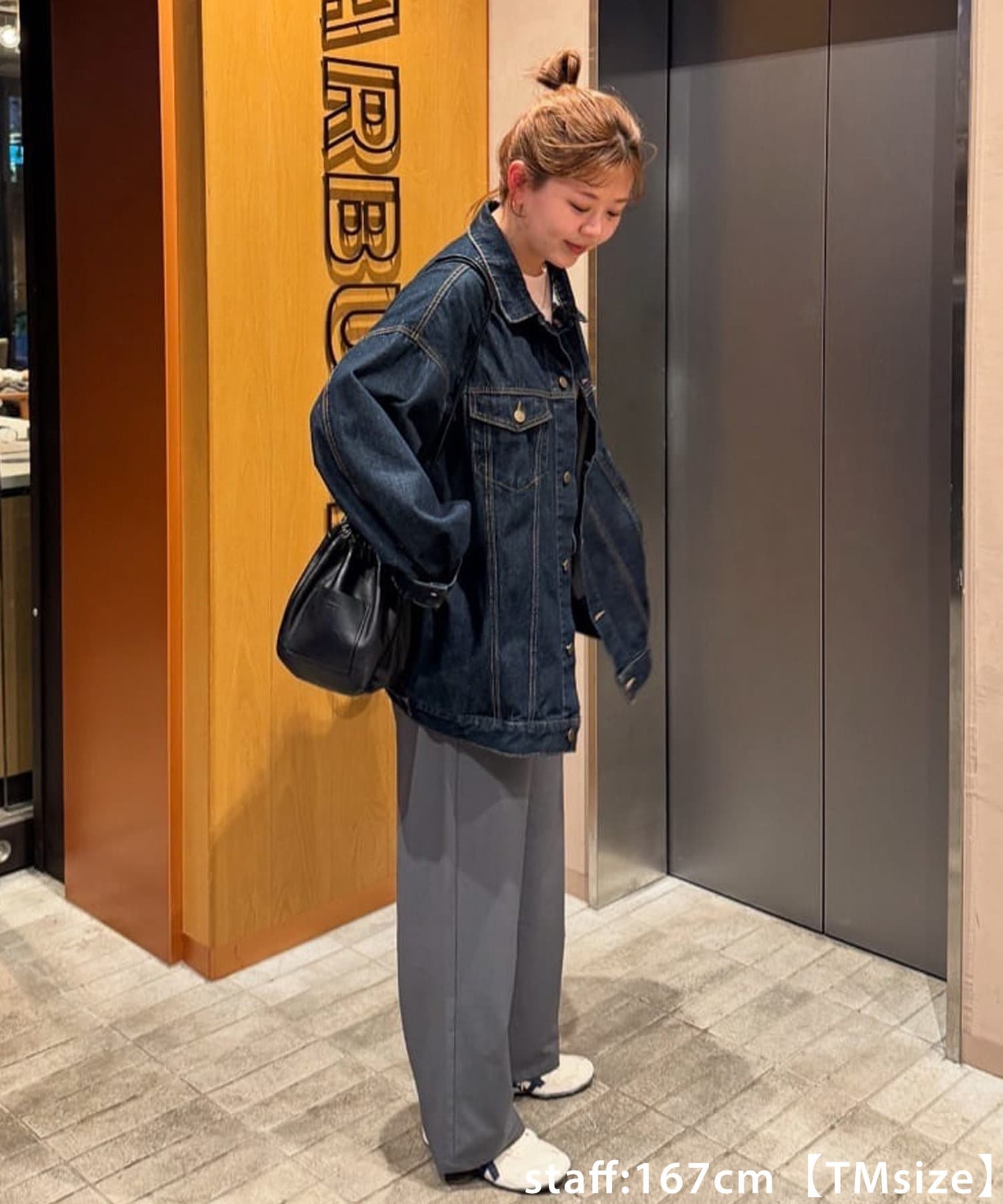 167cmスタッフ(Lサイズ着用):骨ストでお尻と太ももが大きいのですが、ゆるっとしたサイズ感なのでお尻や太ももを上手くカモフラージュしてくれてトップスも選ばずに着こなせました。