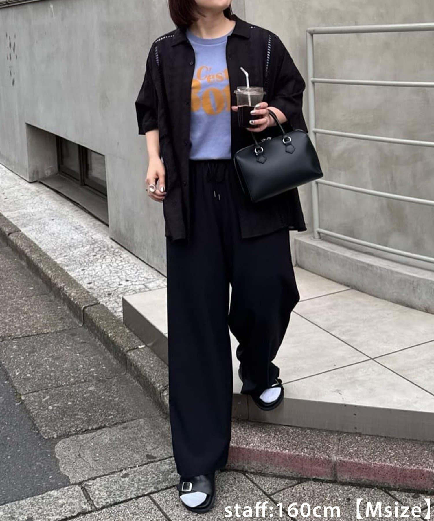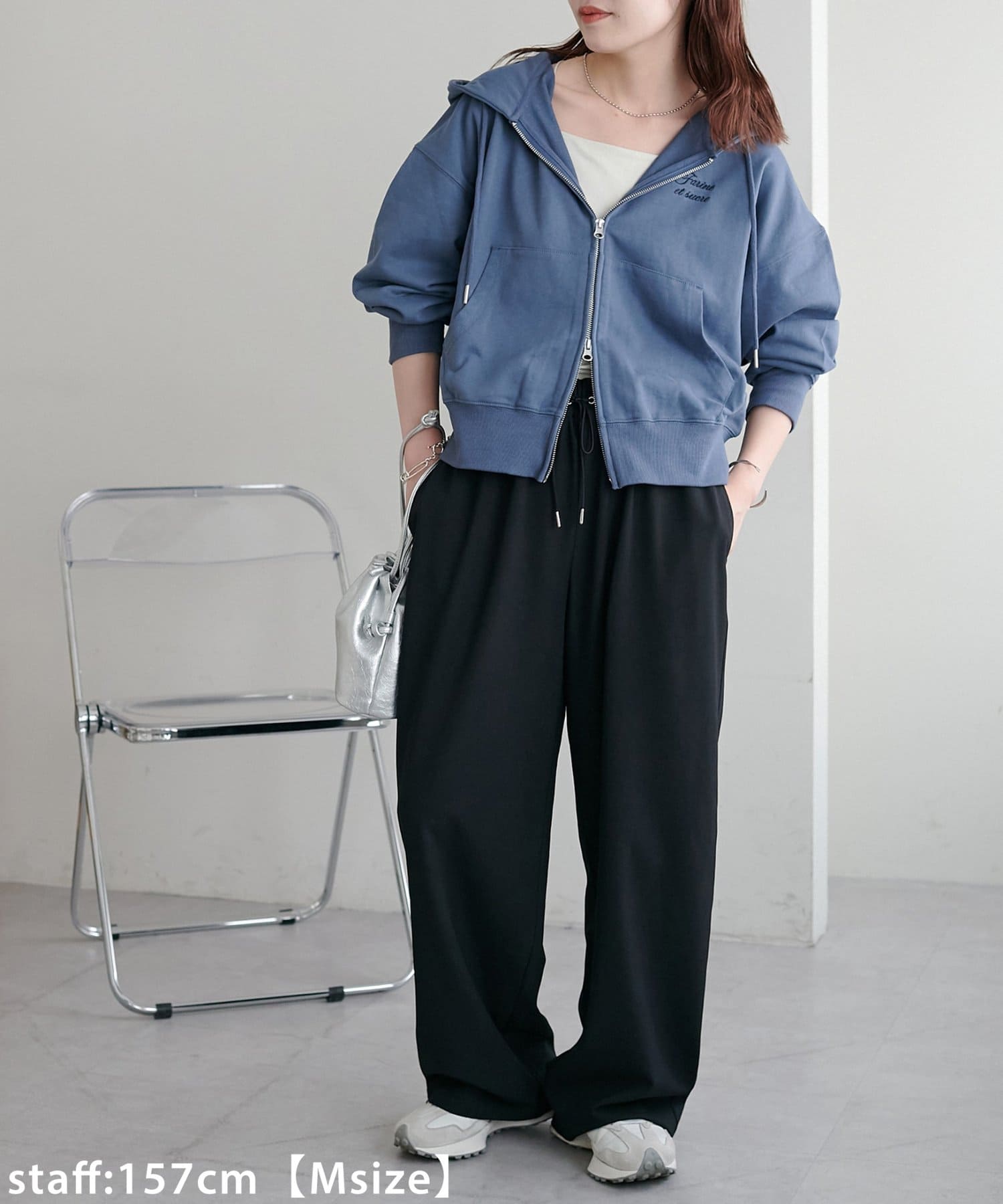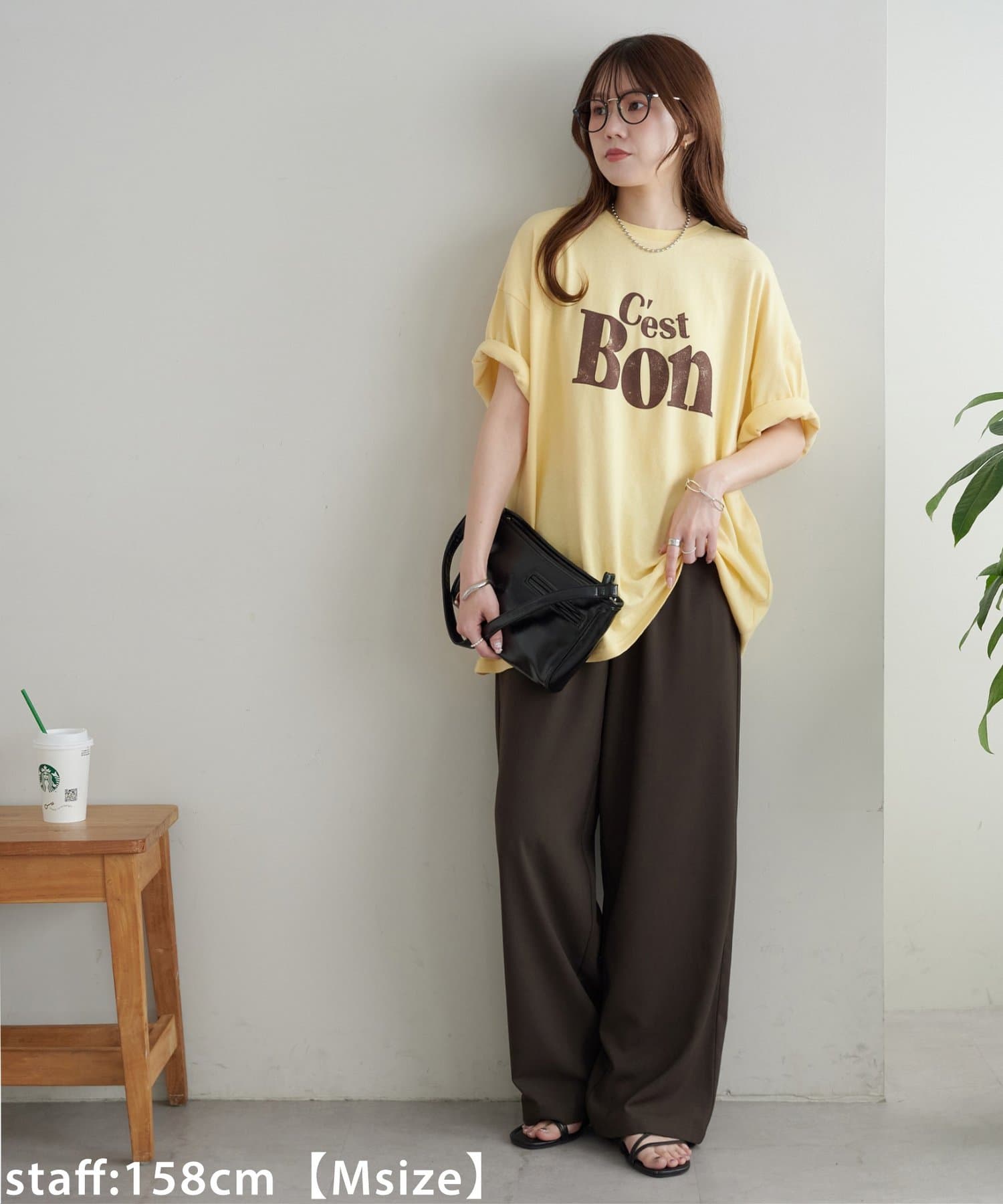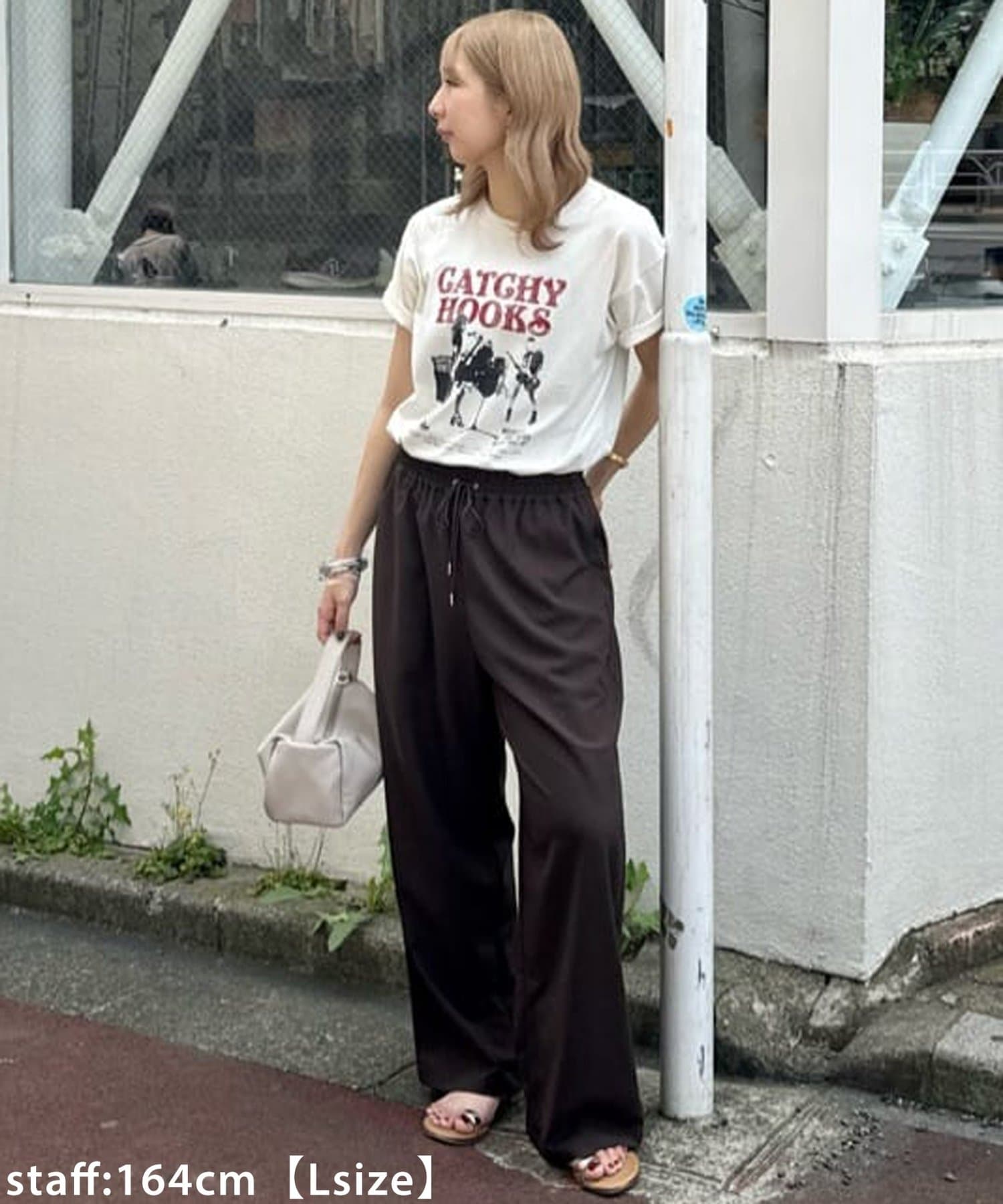 167cmスタッフ(Lサイズ着用):骨ストでお尻と太ももが大きいのですが、ゆるっとしたサイズ感なのでお尻や太ももを上手くカモフラージュしてくれてトップスも選ばずに着こなせました。
