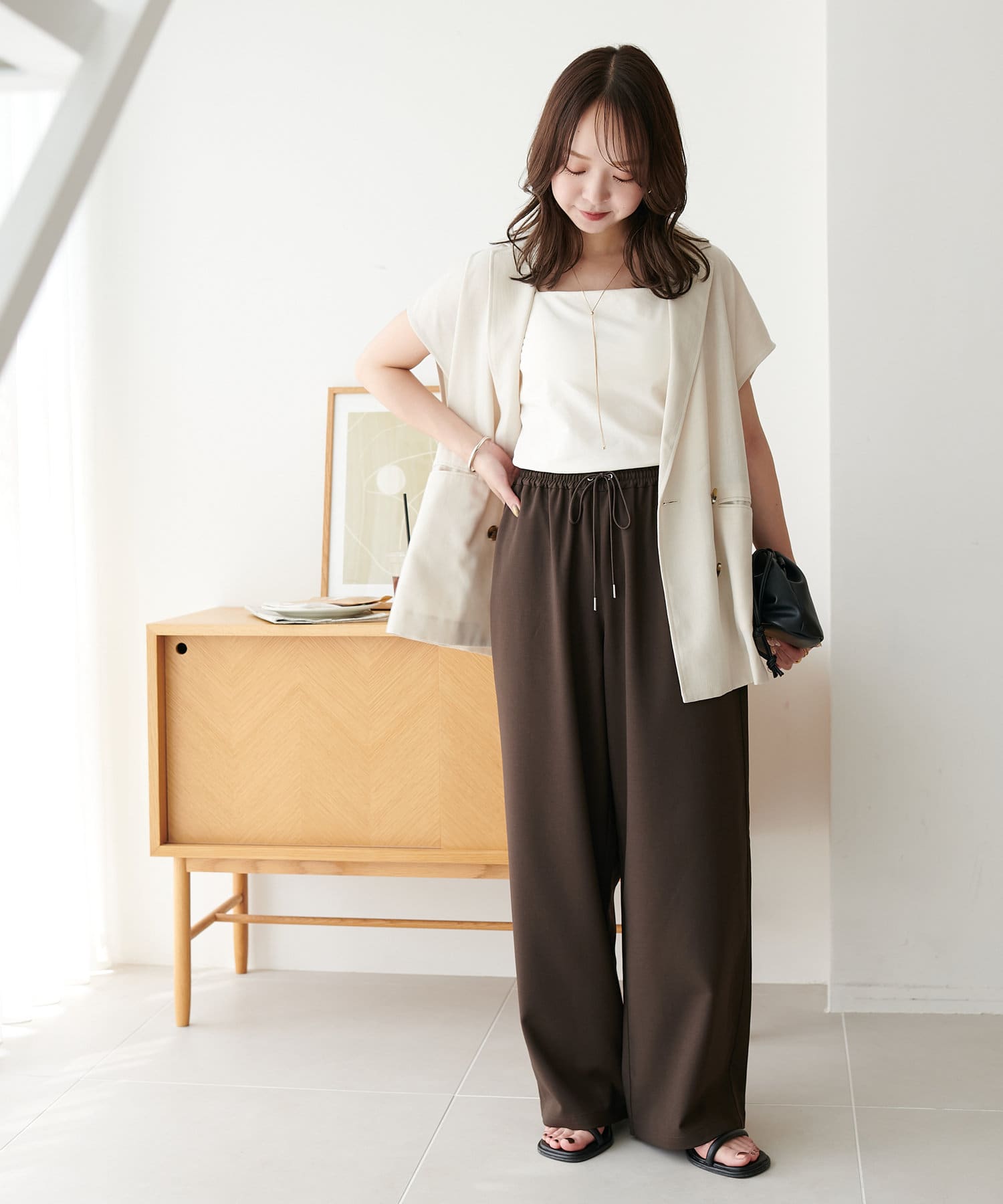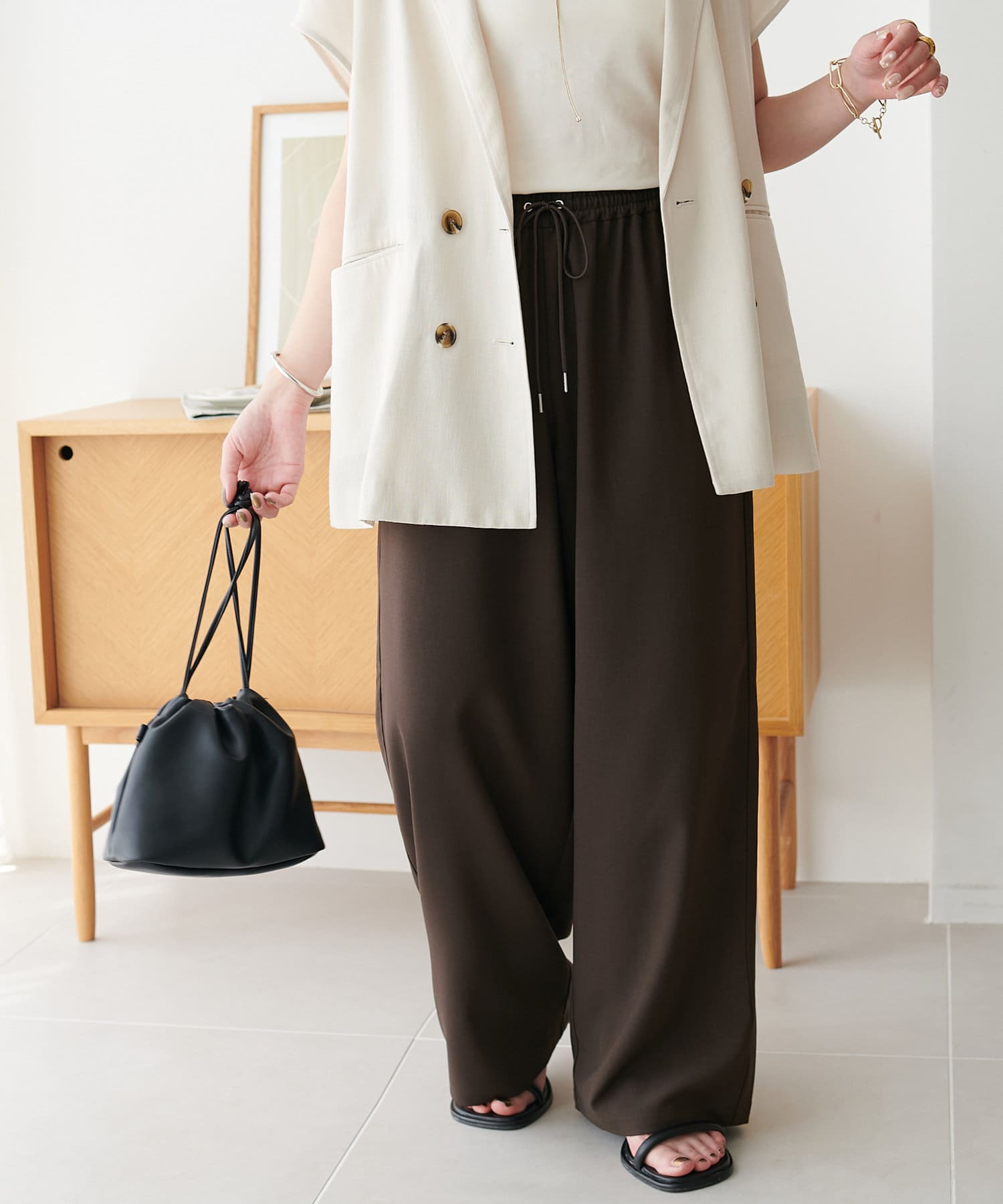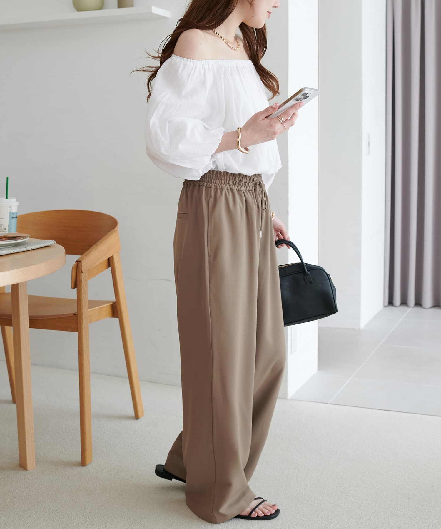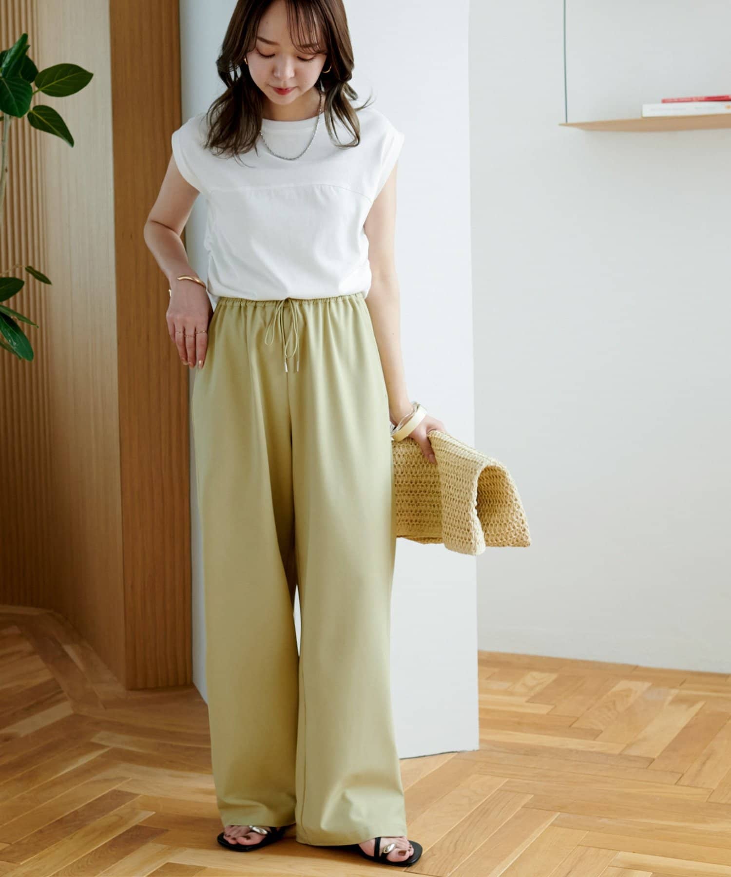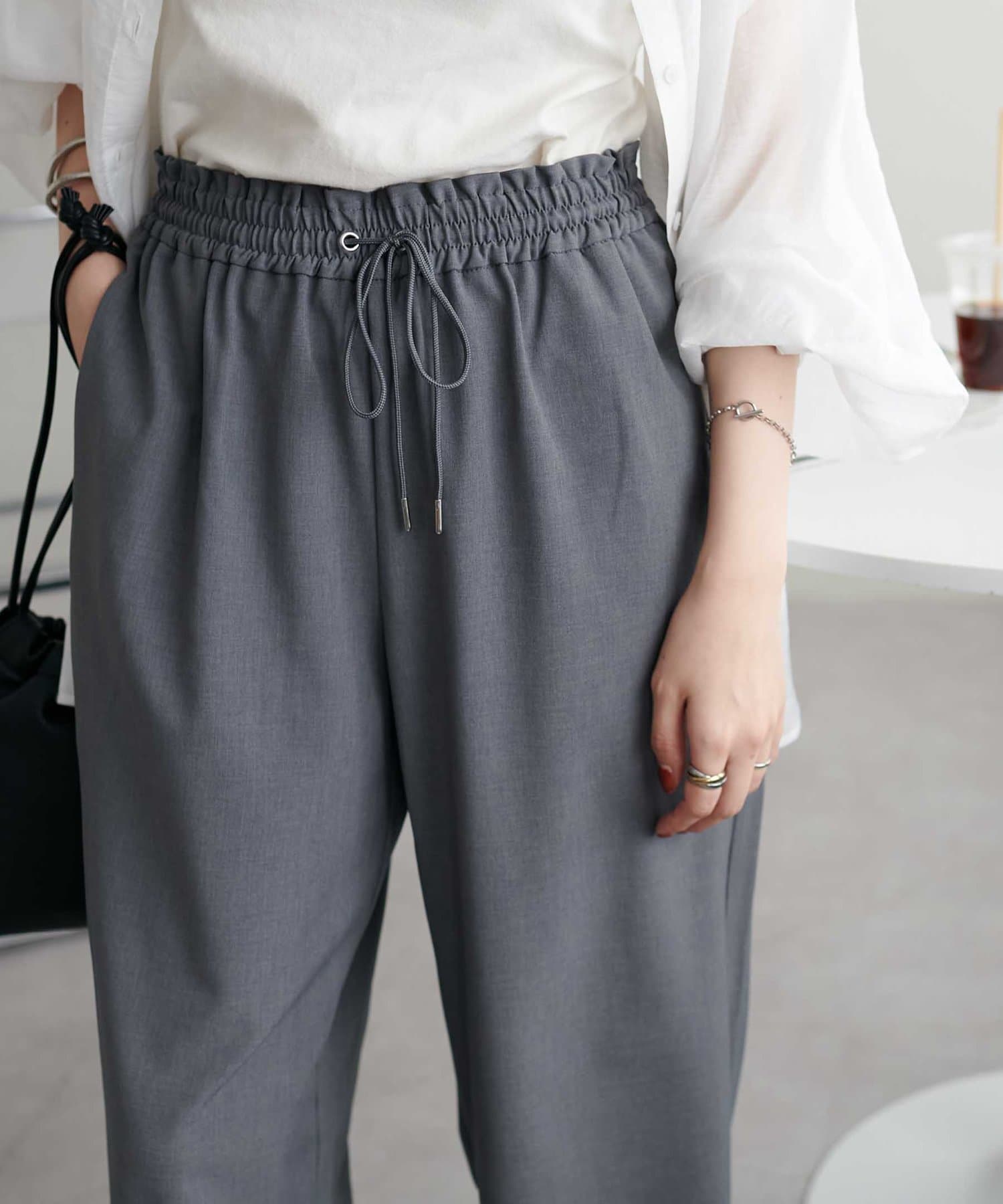 ウエストも総ゴムで楽なのにシルエットや、生地のトロミが大人カジュアルに持ってこいでした!