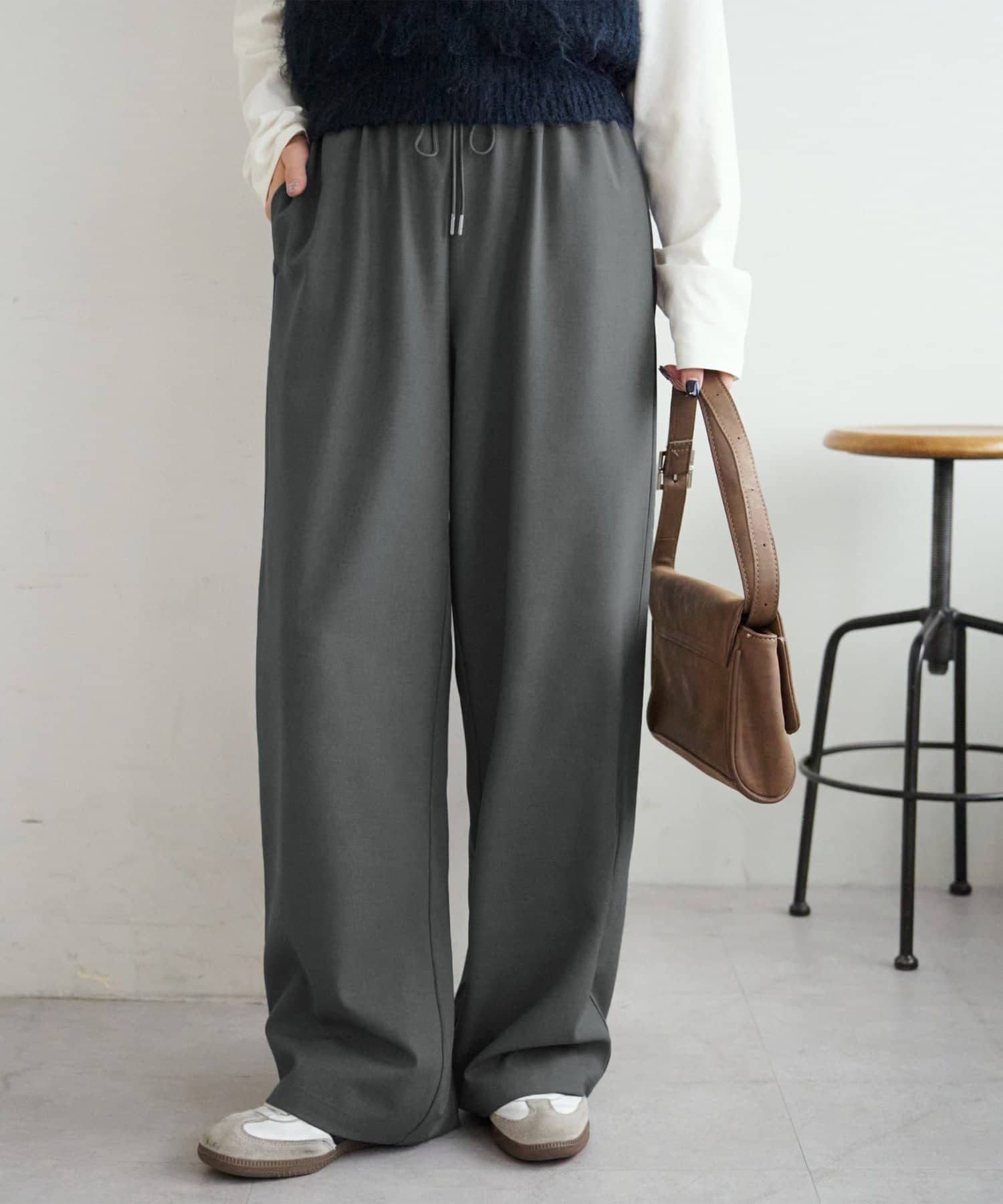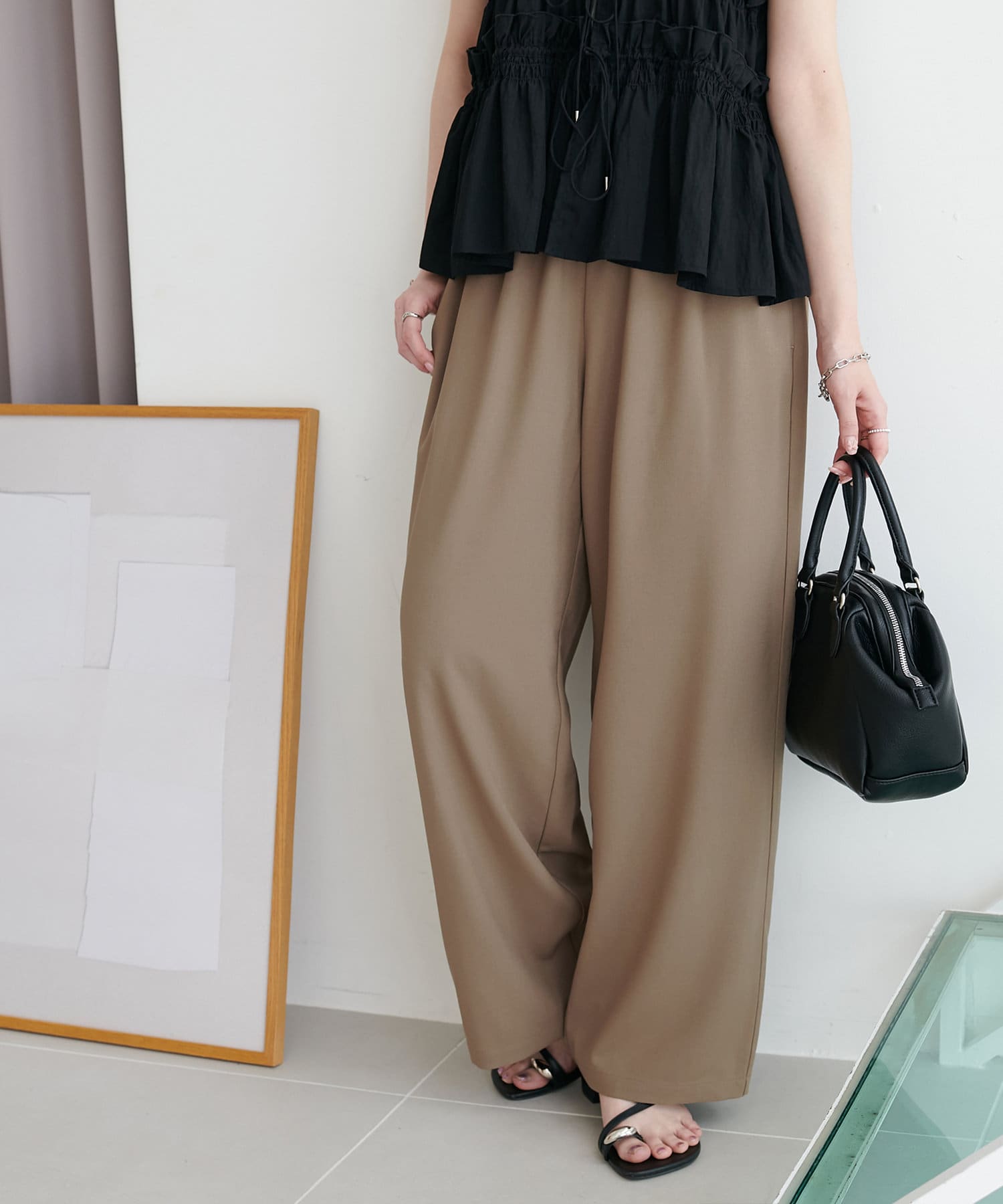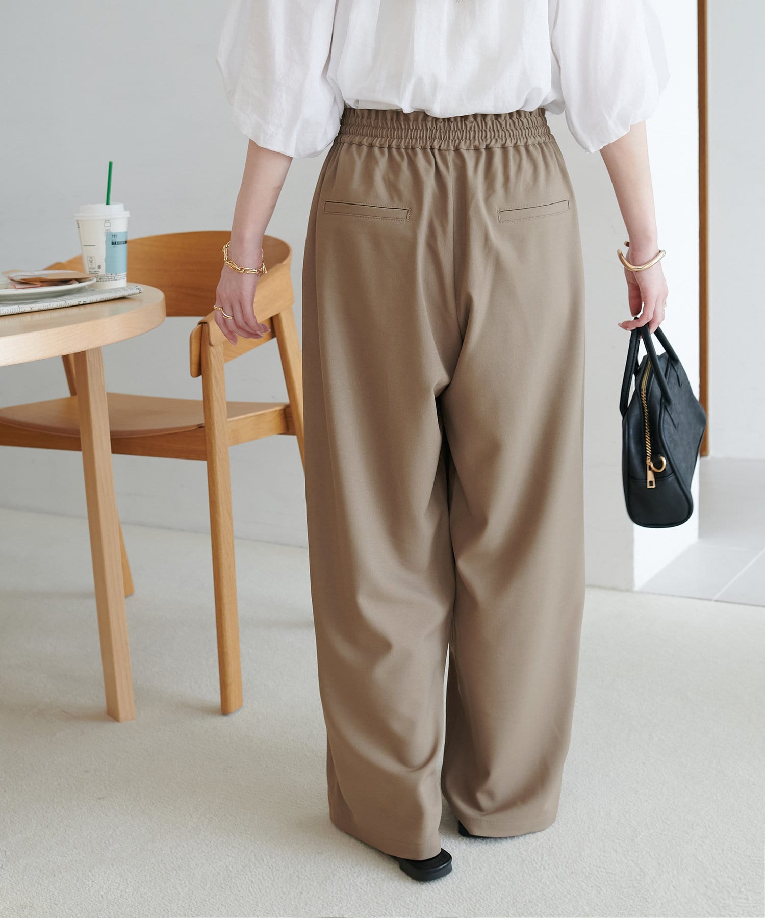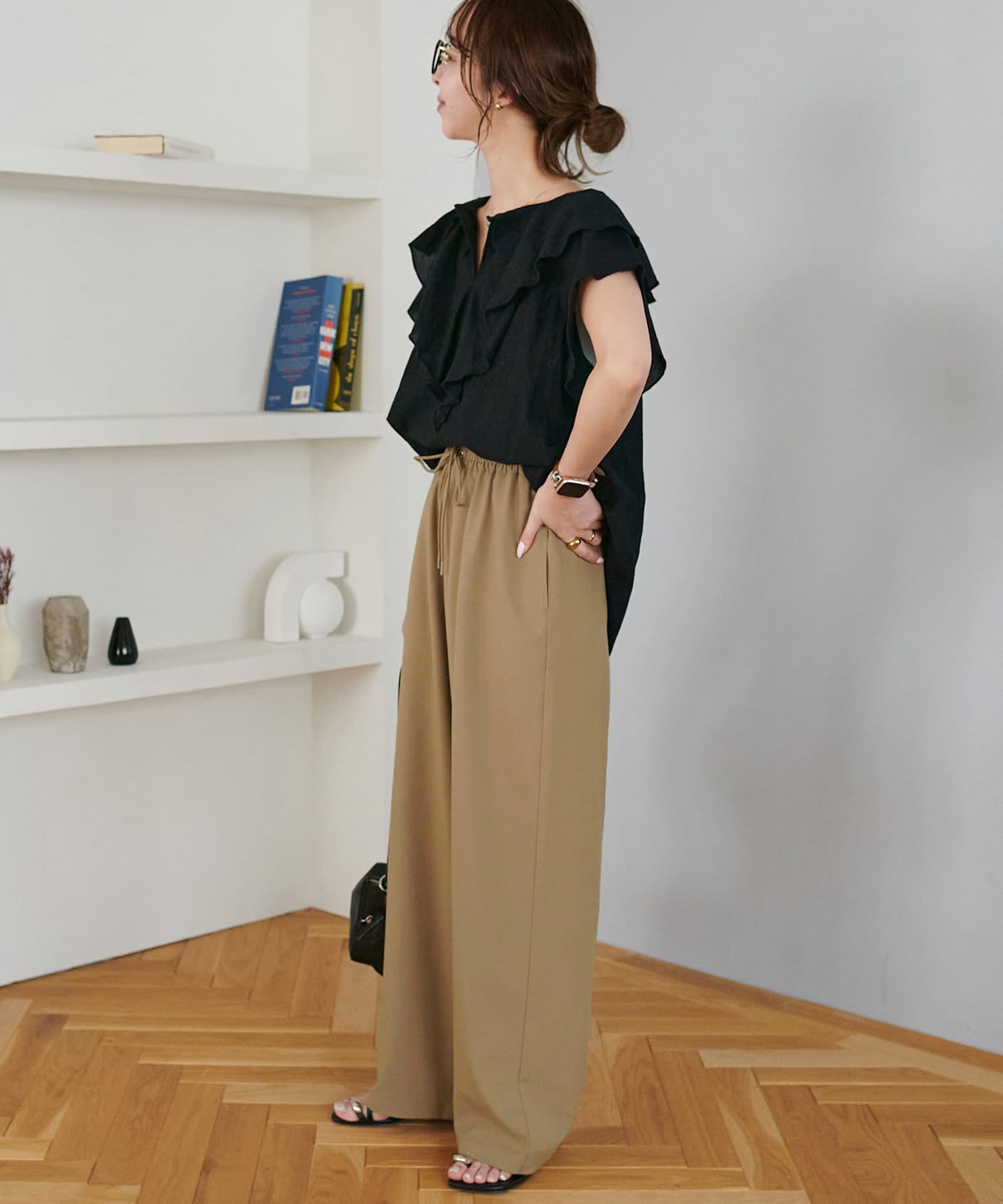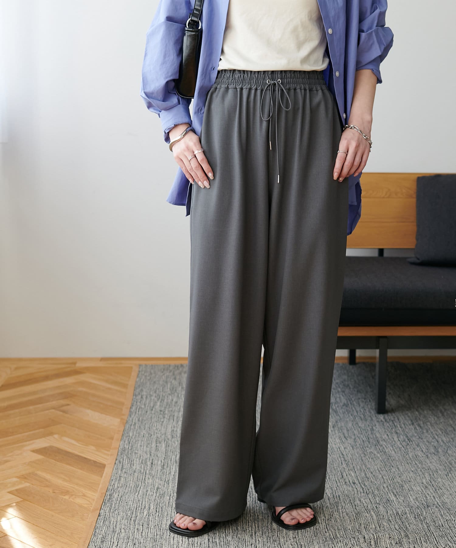ウエストも総ゴムで楽なのにシルエットや、生地のトロミが大人カジュアルに持ってこいでした!
