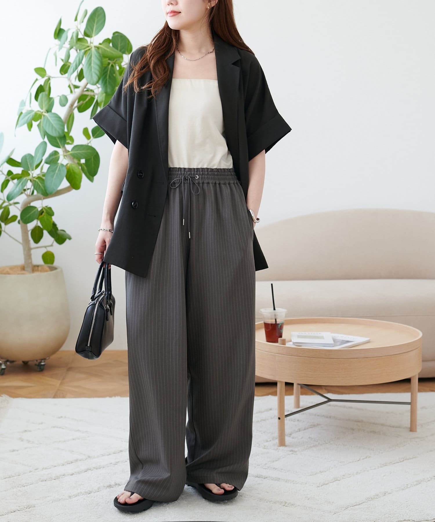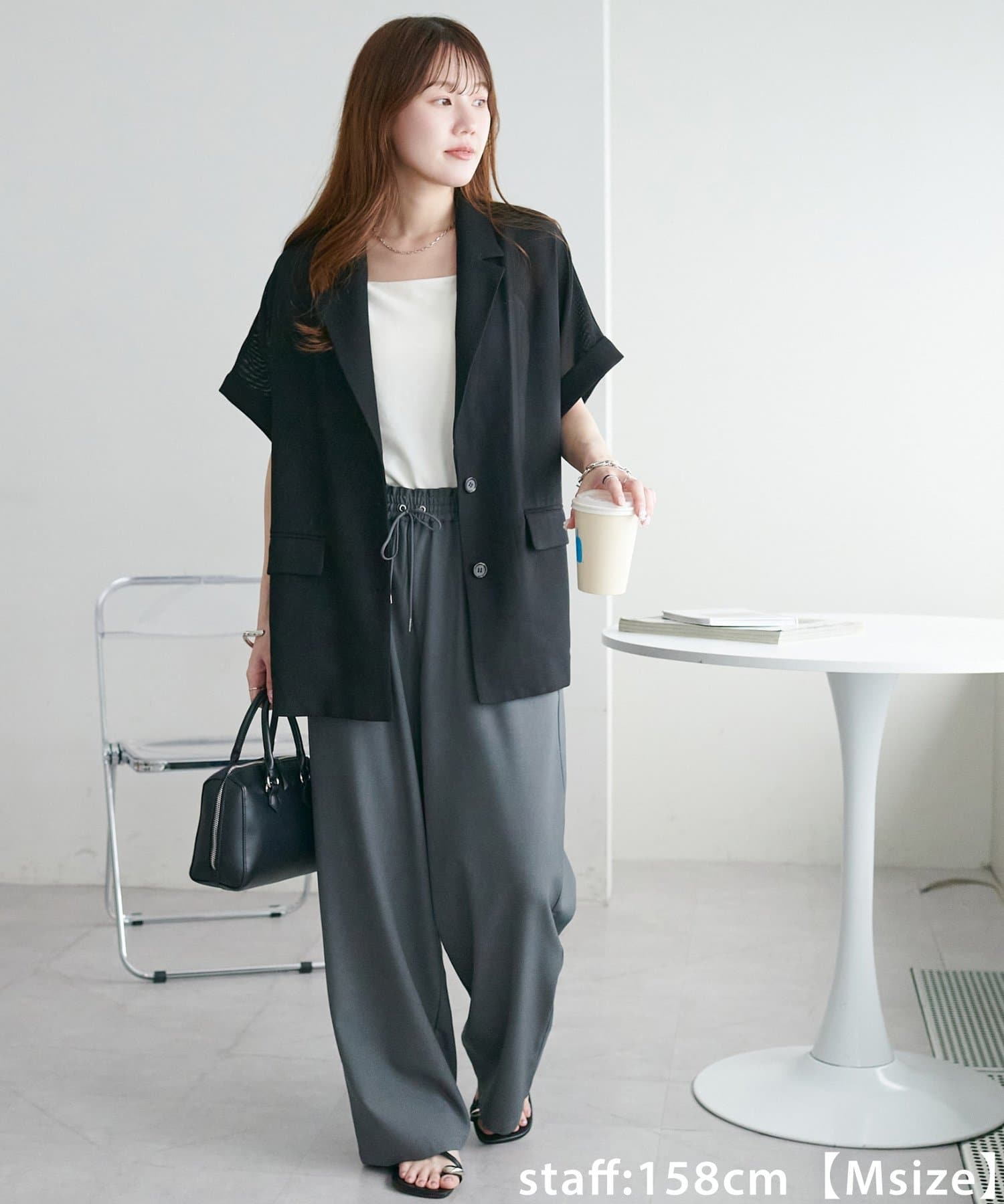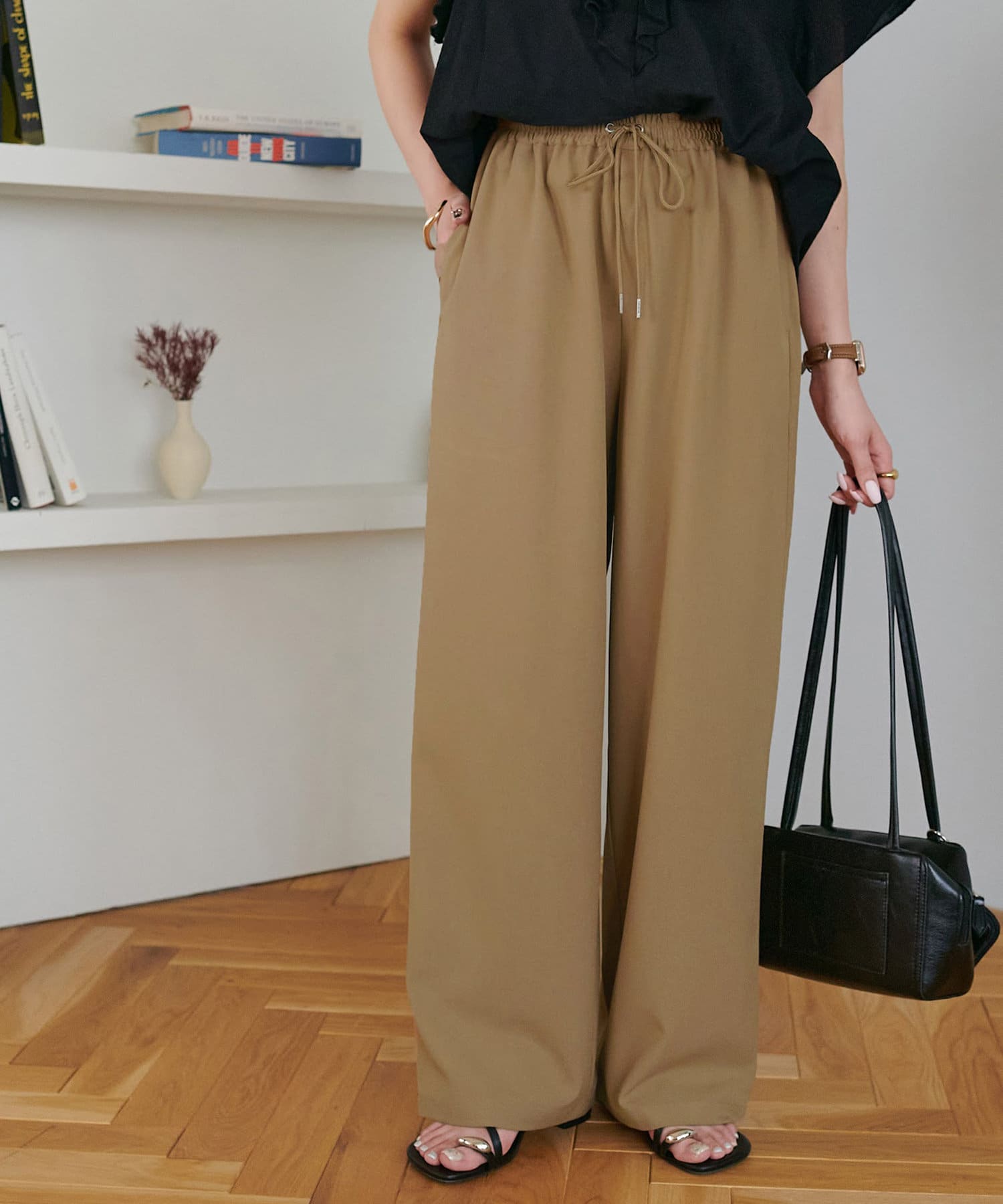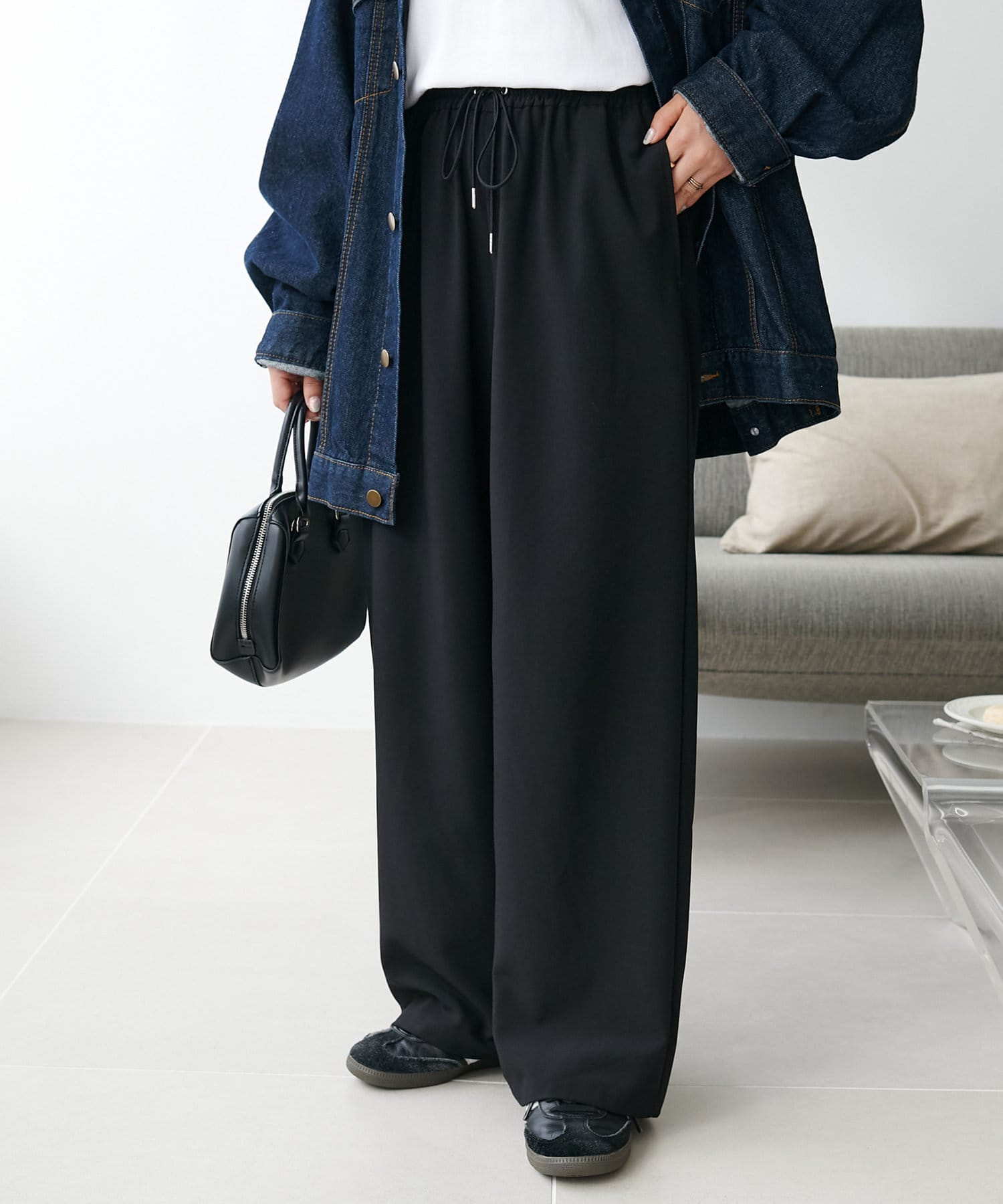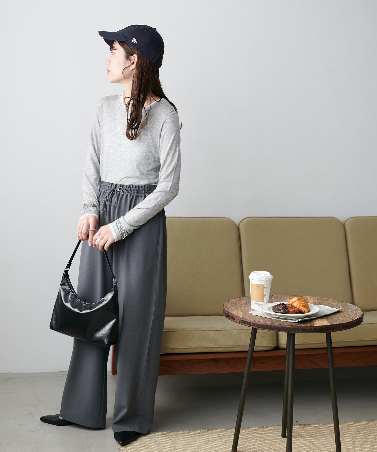 ウエストも総ゴムで楽なのにシルエットや、生地のトロミが大人カジュアルに持ってこいでした!