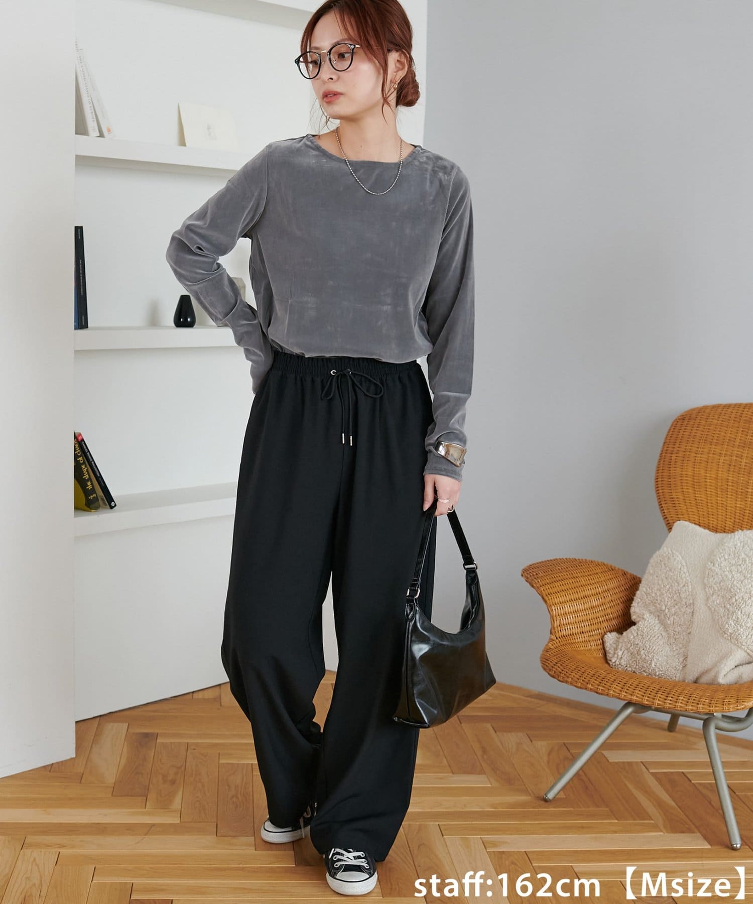 購入場所:パルクローゼット履き心地最高です!ストレッチが効いていて、ストンと落ちる生地の感じが、綺麗めにもカジュアルにも使えると思います。オンラインで購入したため、グレーの色具合が心配でしたが、明るすぎないお色で良かったです。161cmでMか迷いましたが、長めが好きなのでLサイズにしました。床につかない理想の長さでした。