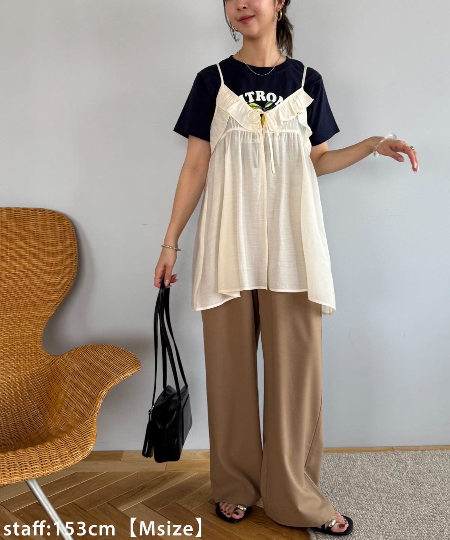 ブラックを買うつもりでしたが、アイボリーも可愛くて試着してみたら気に入り、2色買いました。涼しげな素材で夏たくさん着たいです。