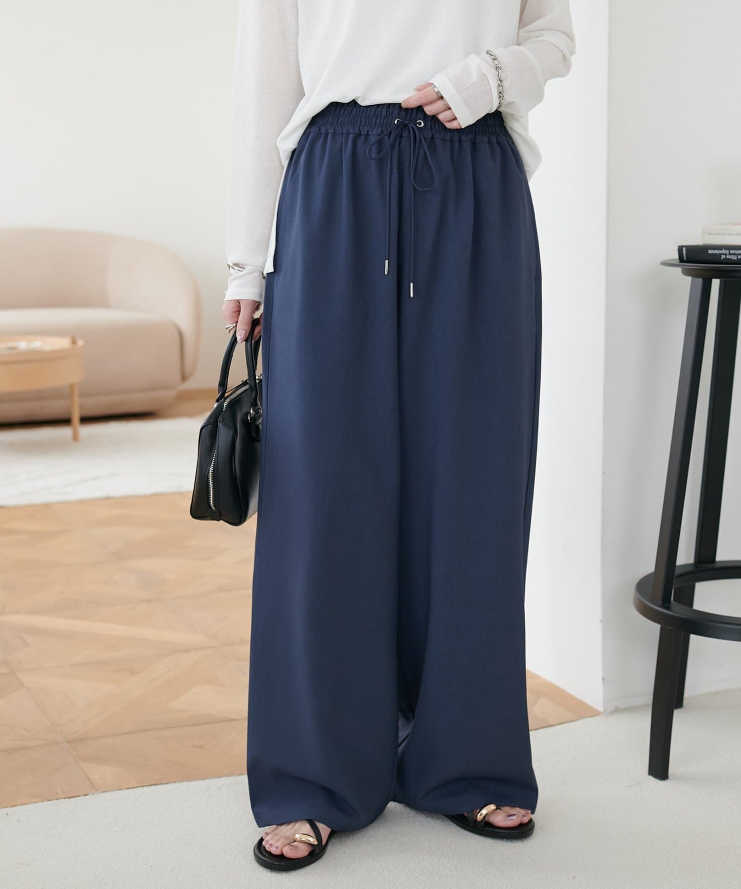 ウエストも総ゴムで楽なのにシルエットや、生地のトロミが大人カジュアルに持ってこいでした!