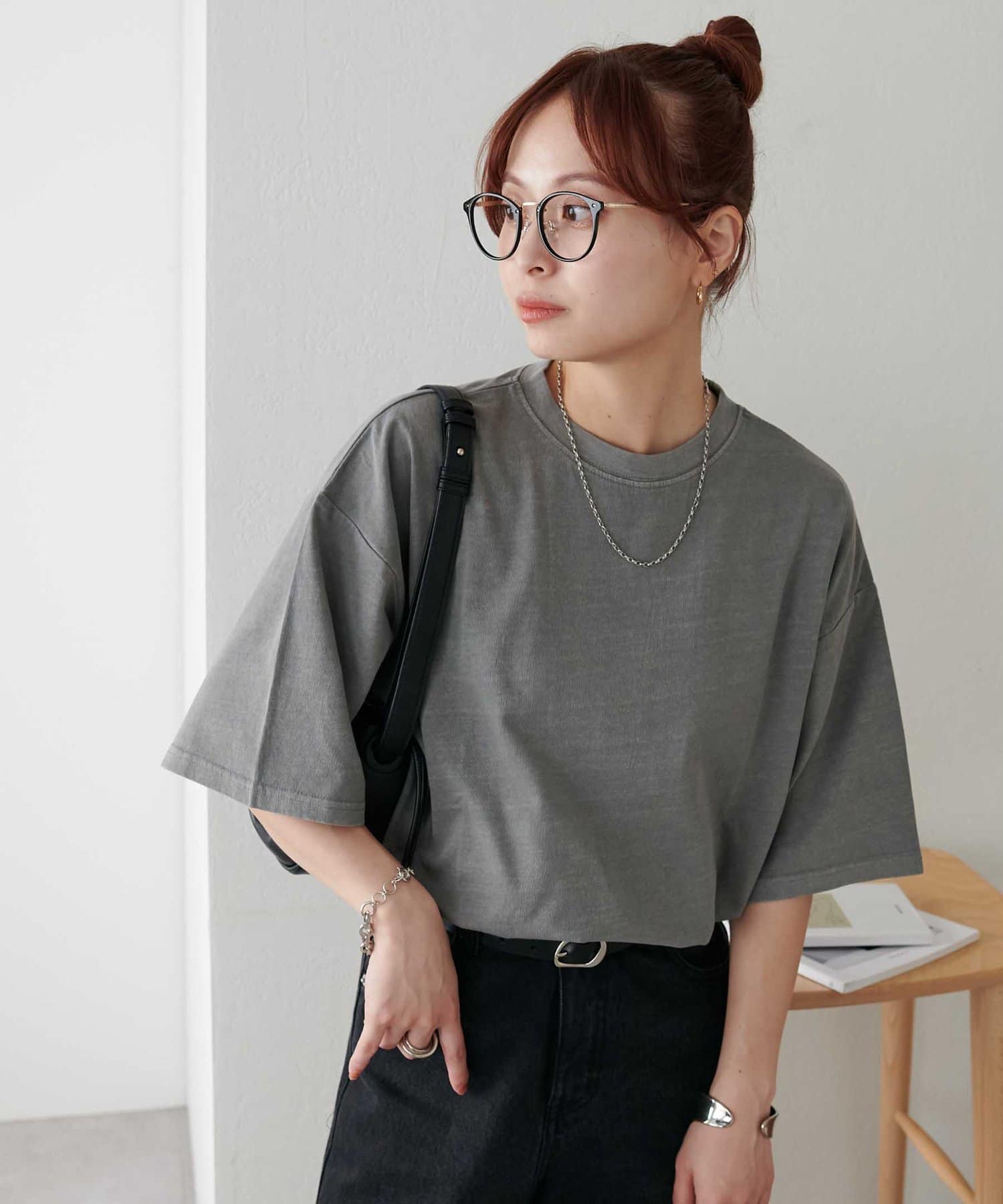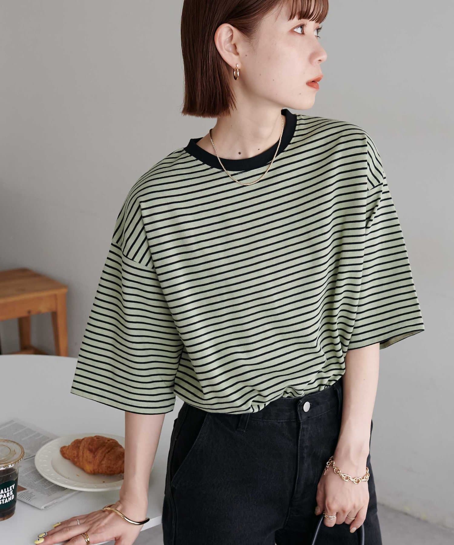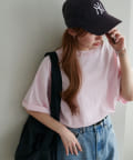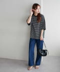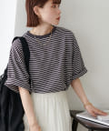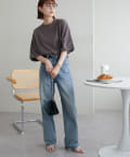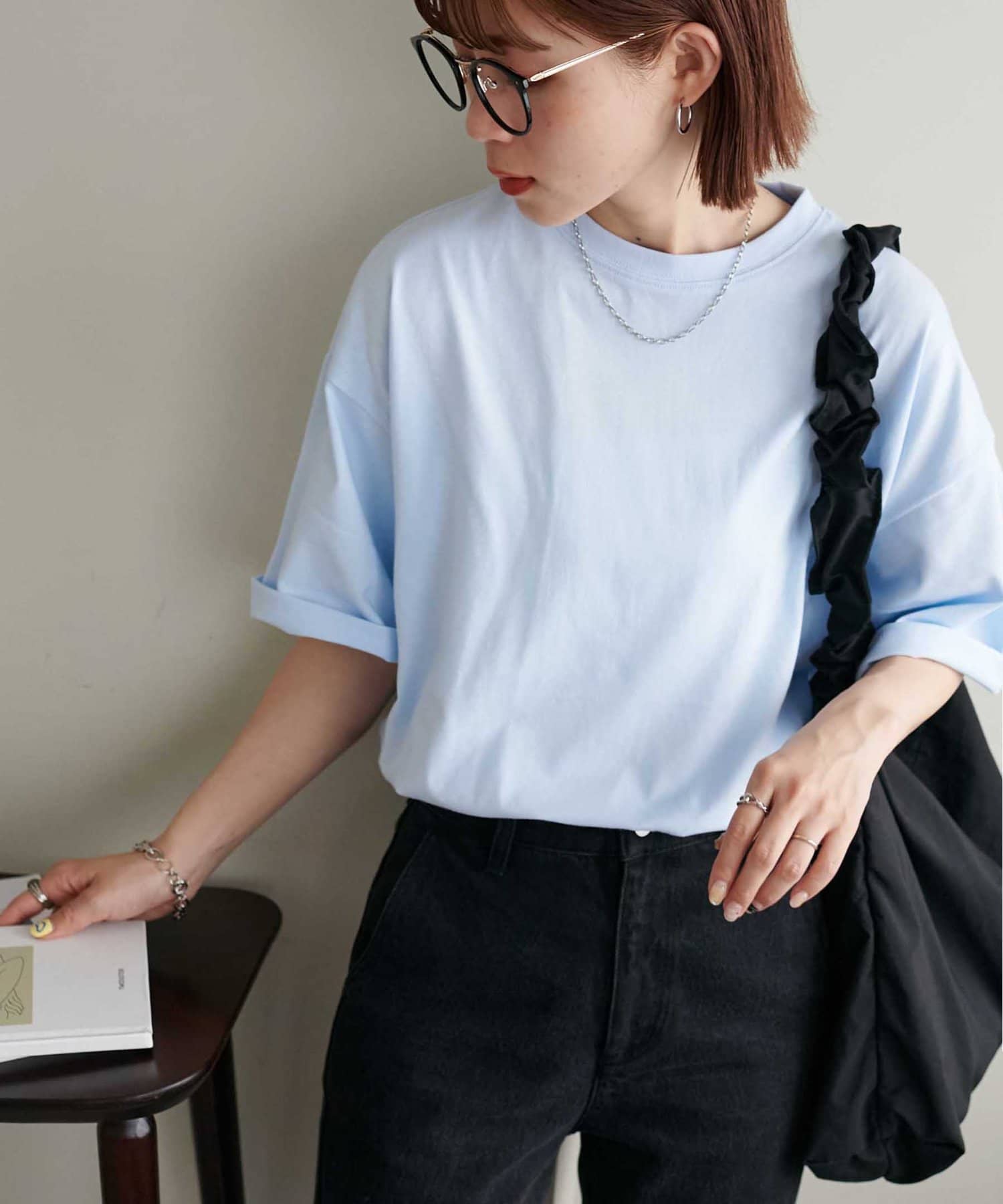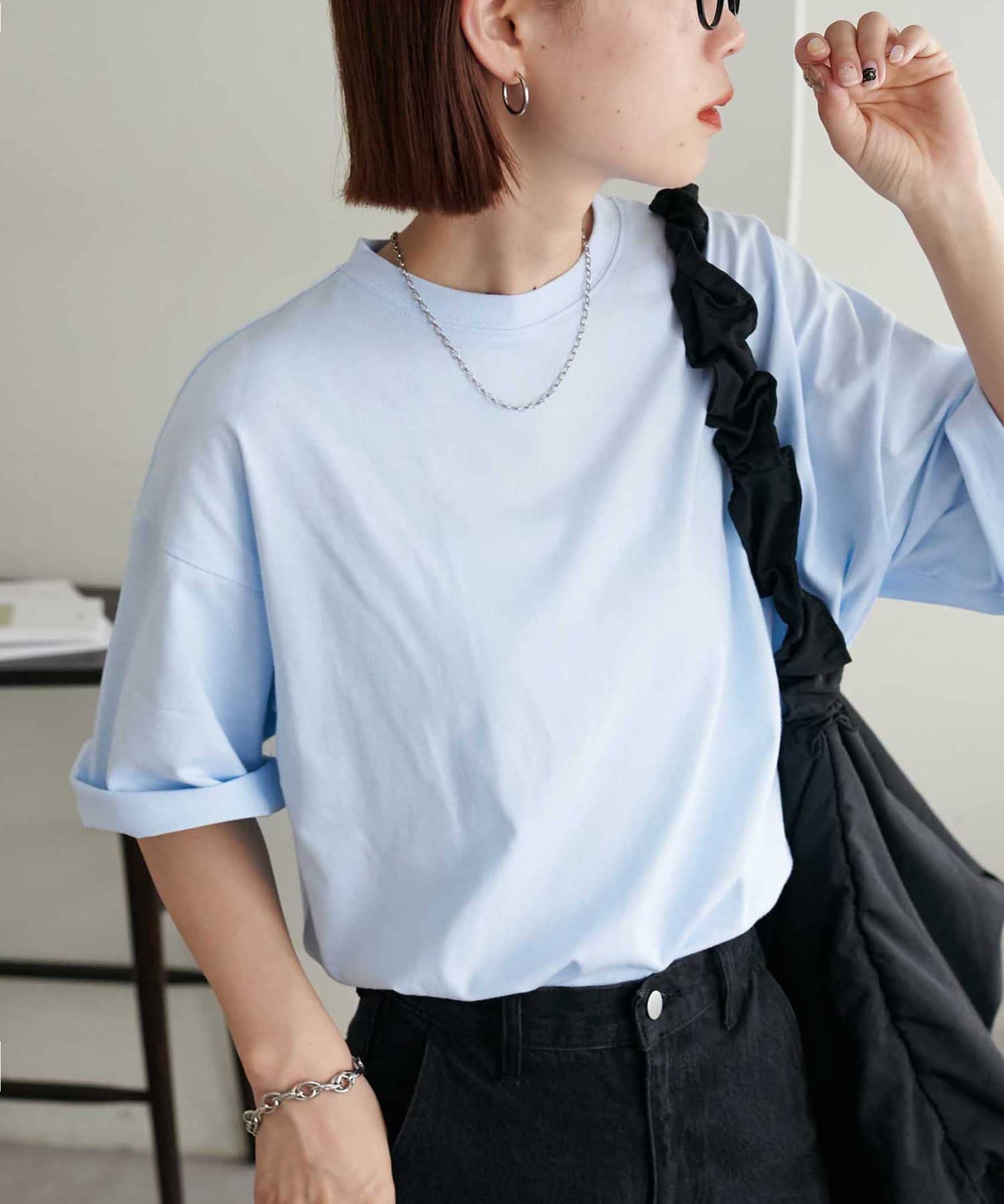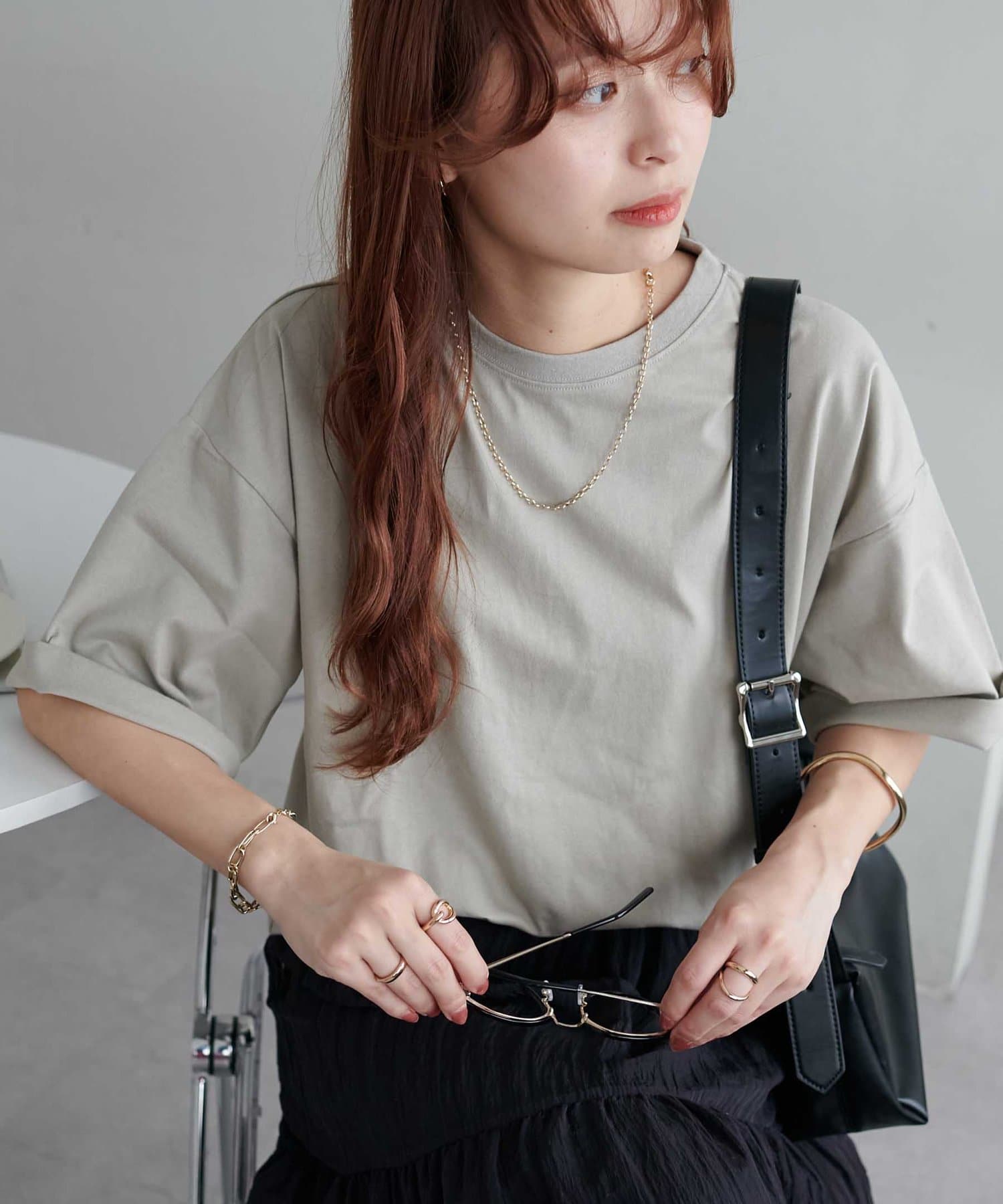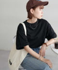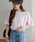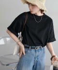 ・155cmスタッフ(Mサイズ着用):ゆとりのあるTシャツで着るだけでこなれ感を演出できます♪シンプルなので小物次第でコーデの雰囲気を変えられます◎