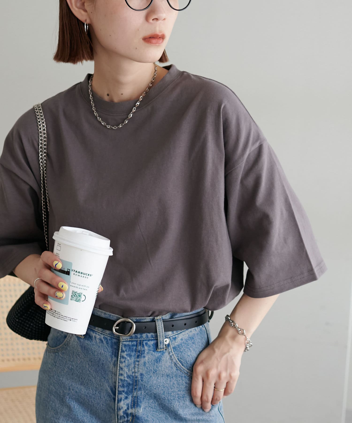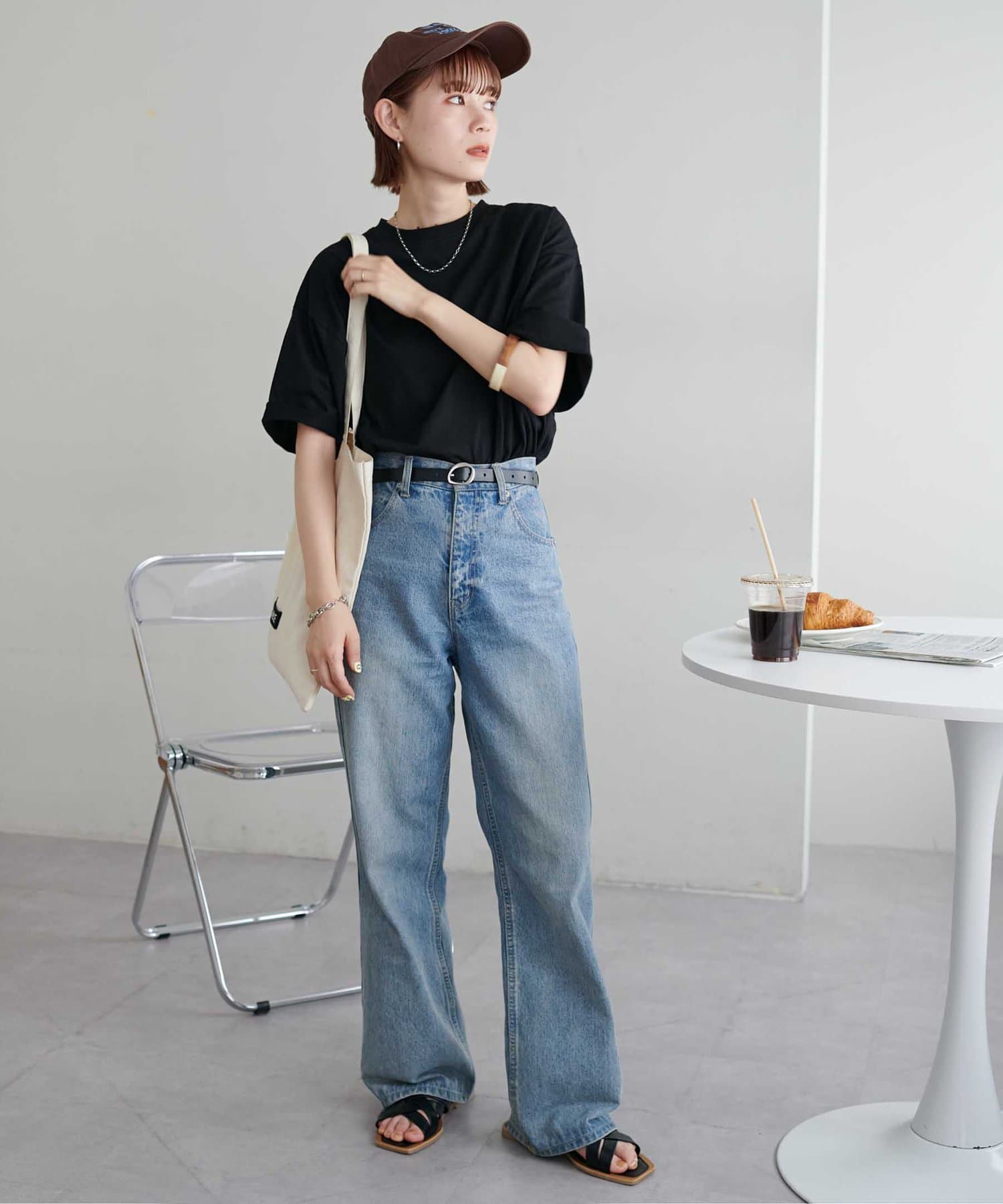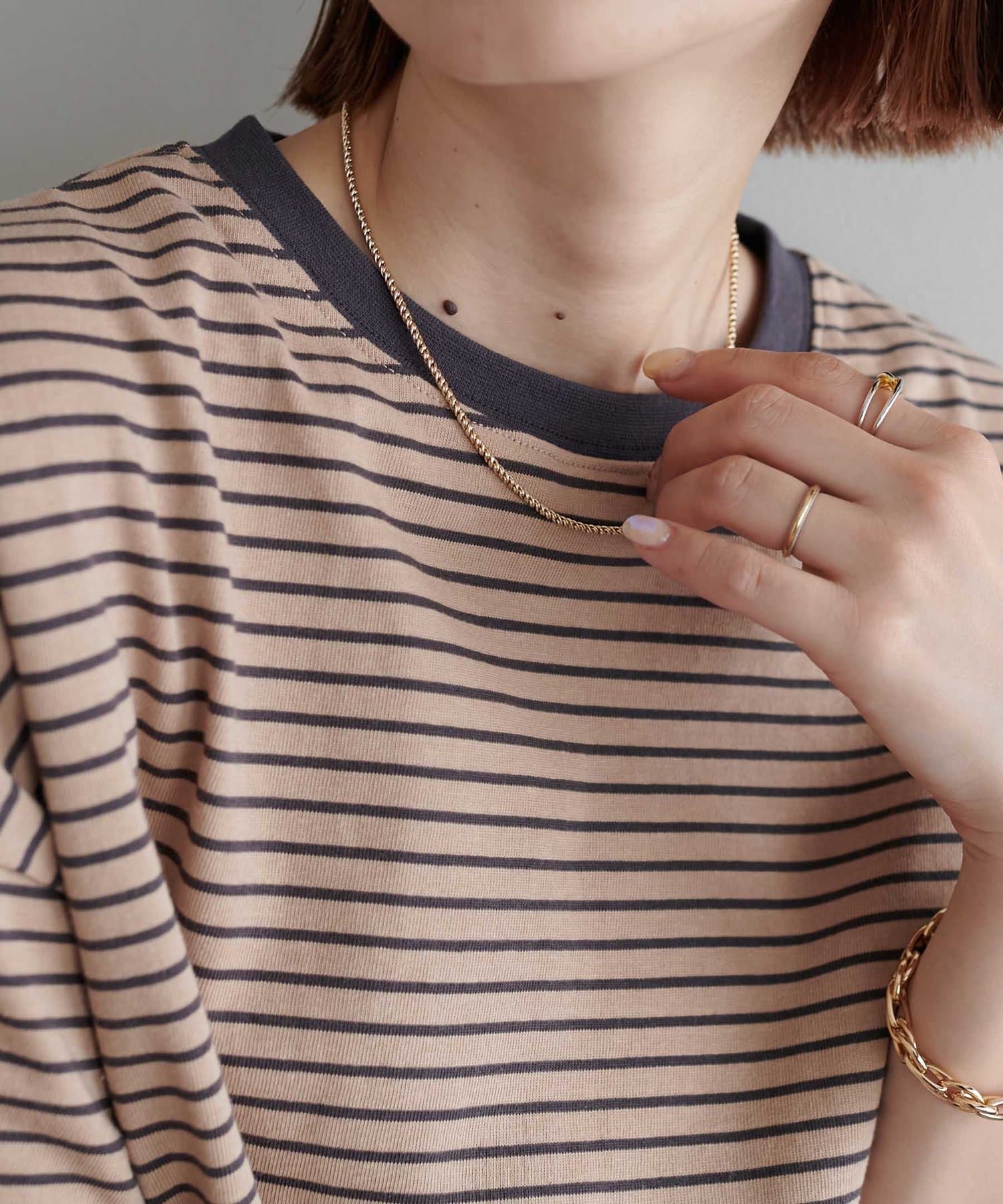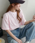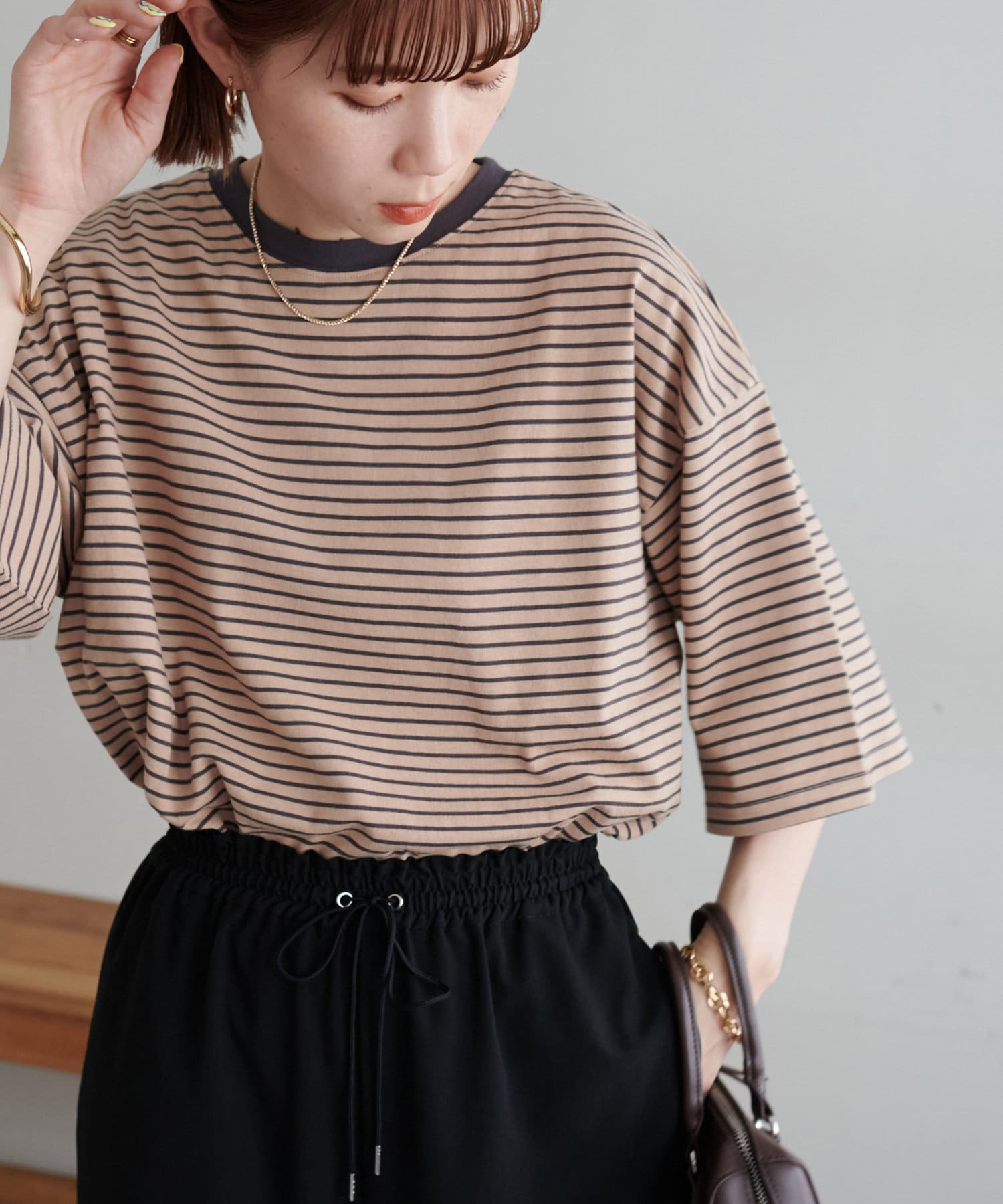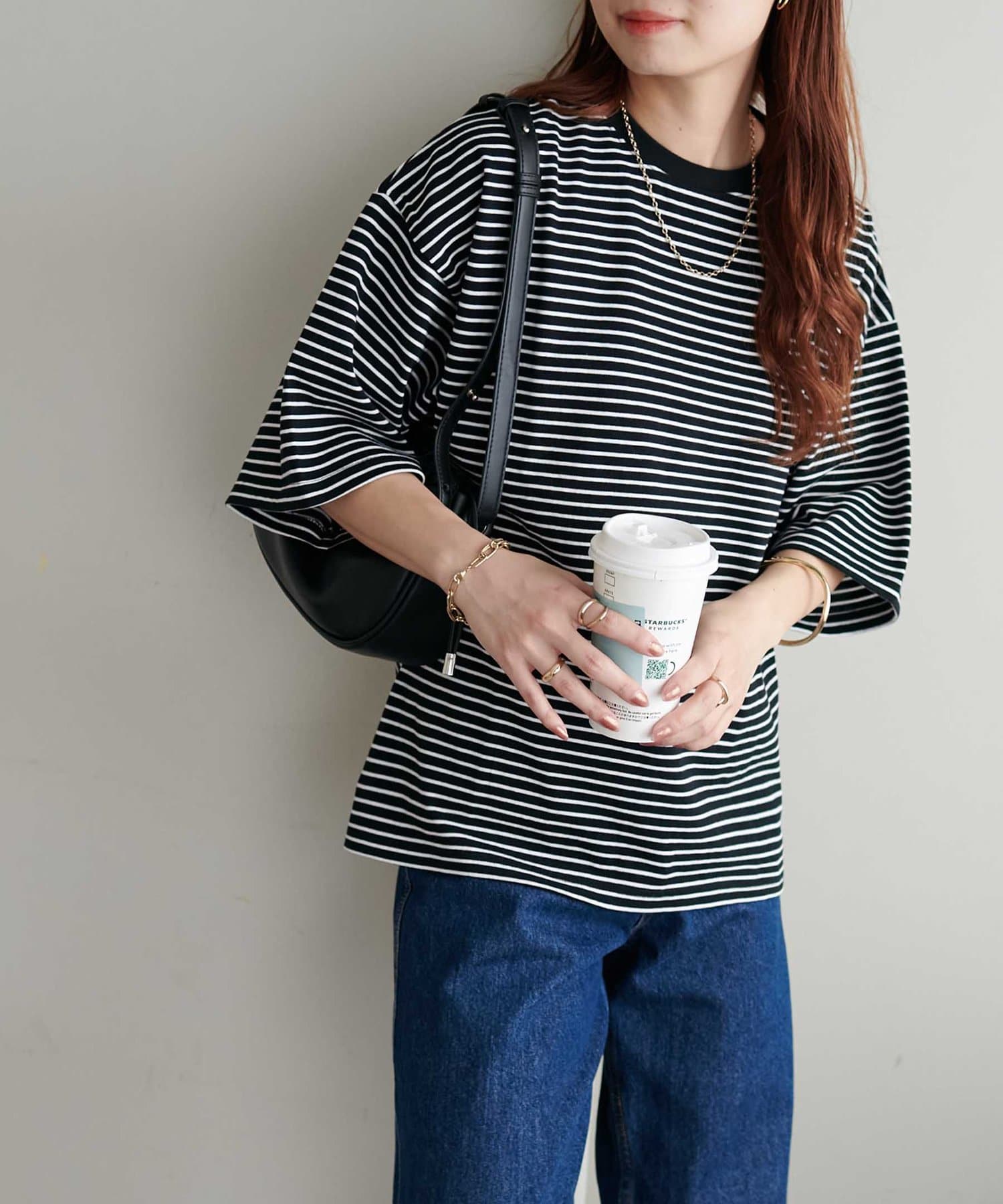 ・155cmスタッフ(Mサイズ着用):ゆとりのあるTシャツで着るだけでこなれ感を演出できます♪シンプルなので小物次第でコーデの雰囲気を変えられます◎