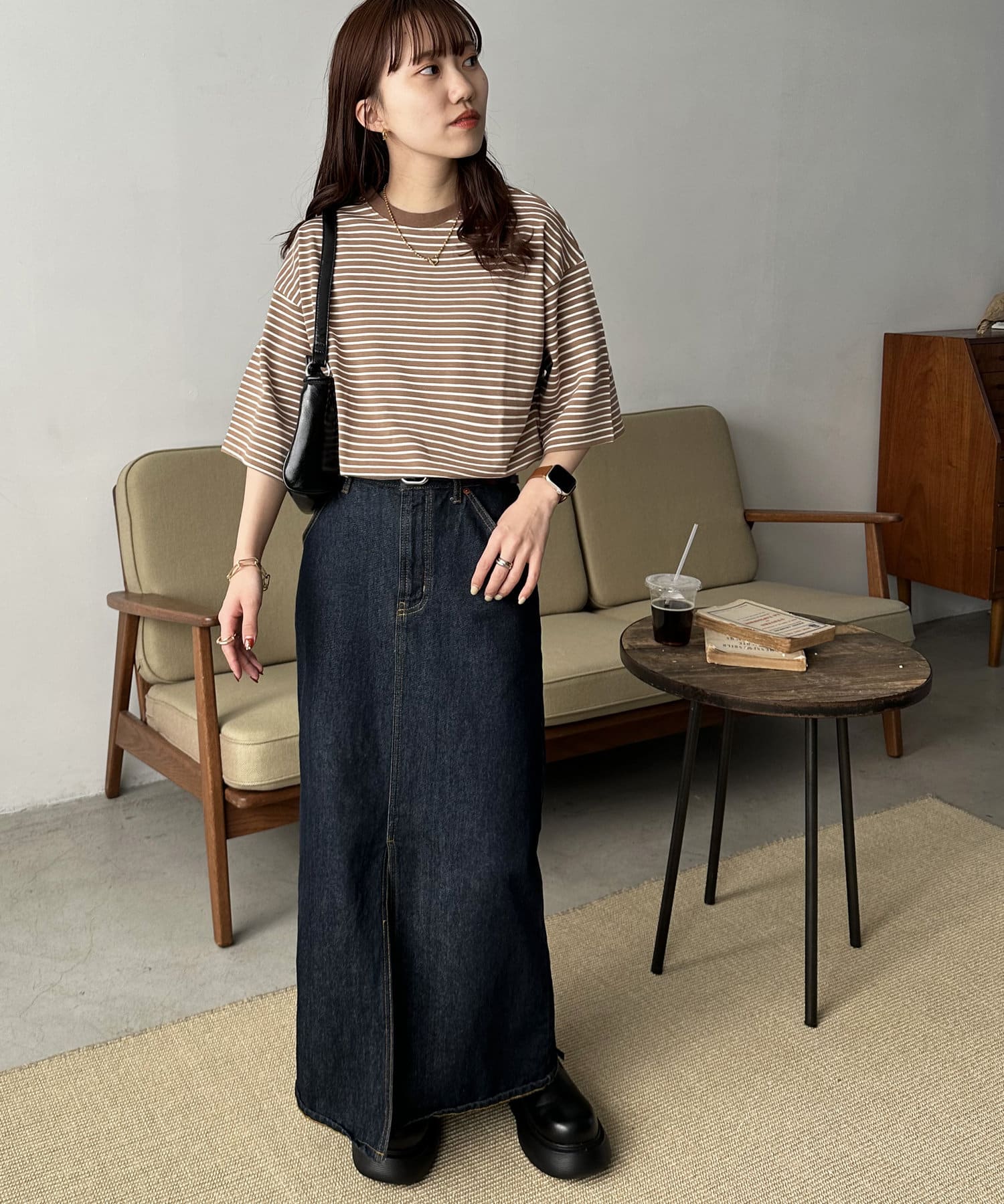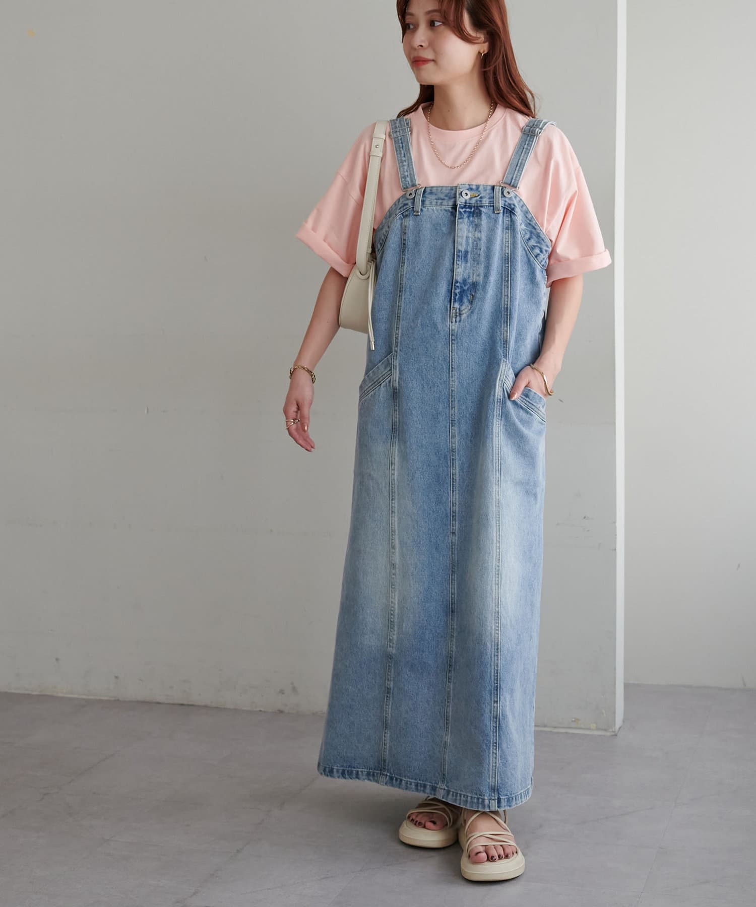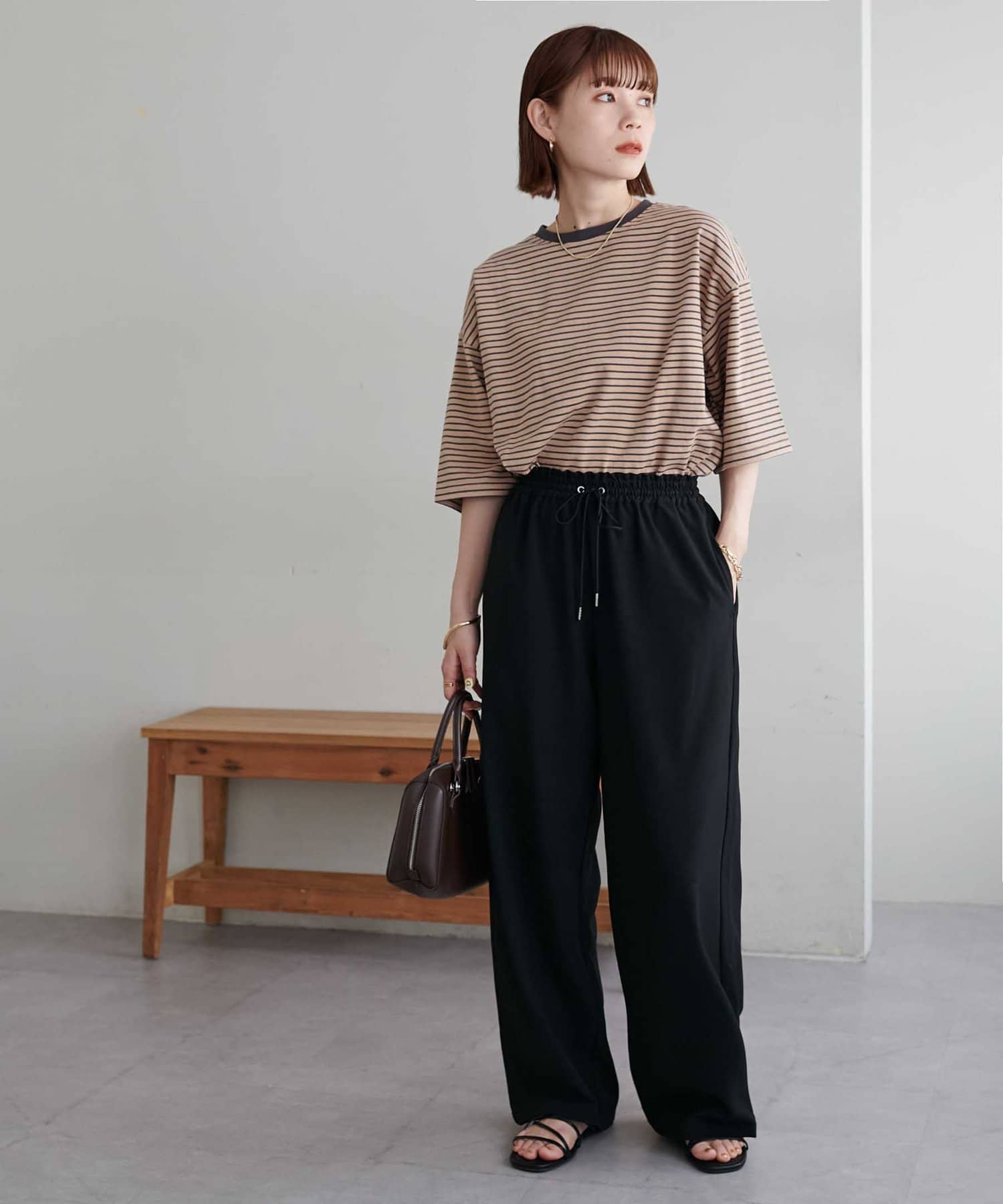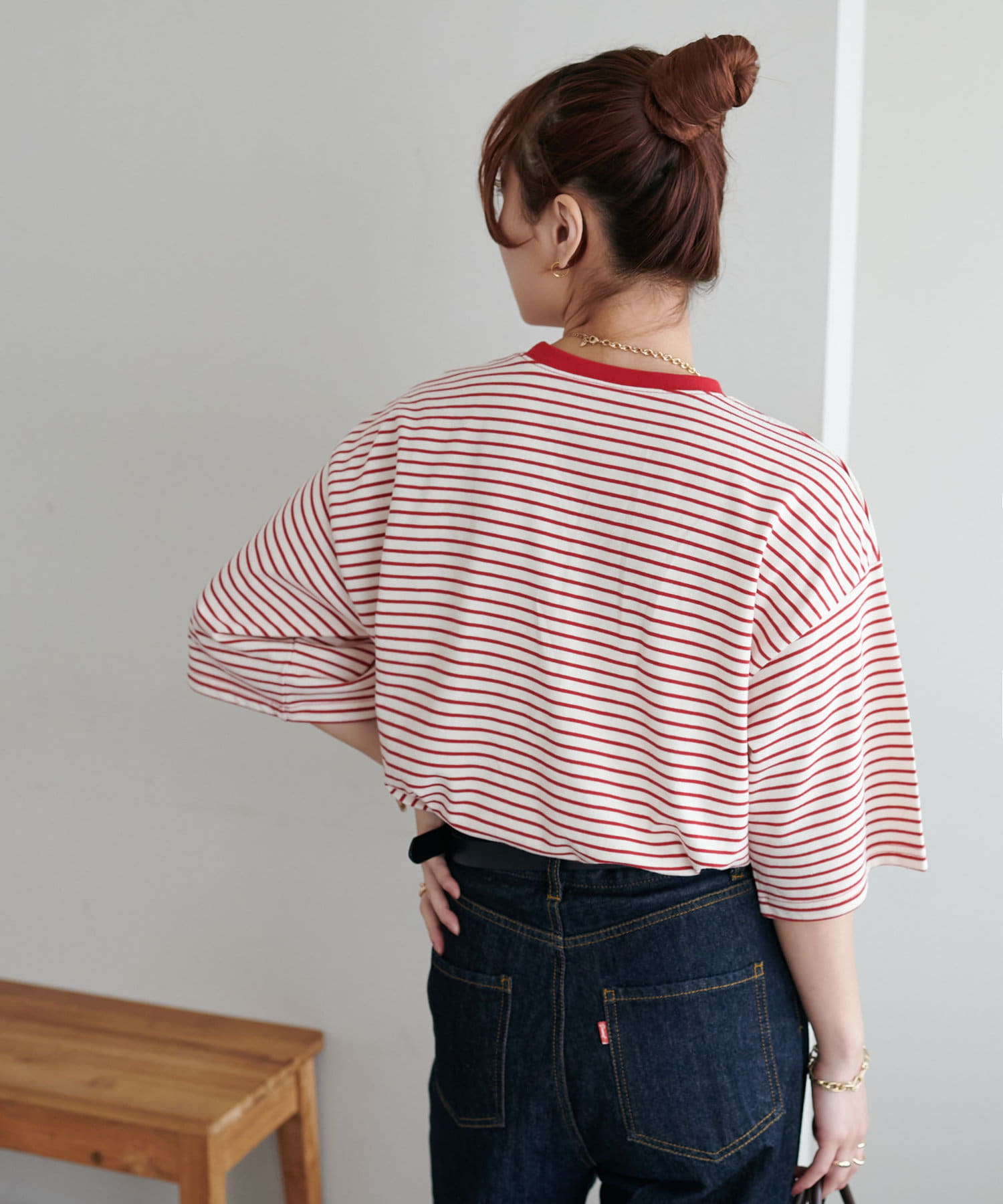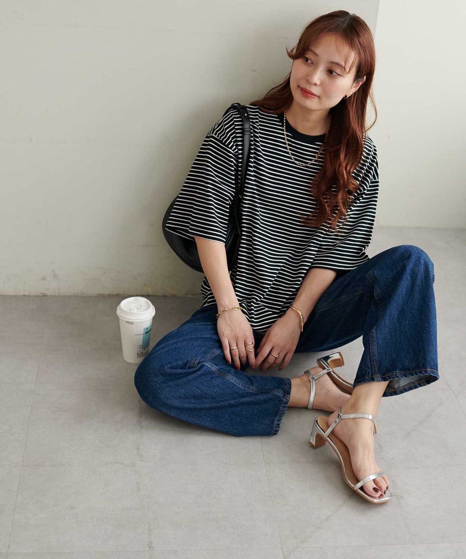 ・155cmスタッフ(Mサイズ着用):ゆとりのあるTシャツで着るだけでこなれ感を演出できます♪シンプルなので小物次第でコーデの雰囲気を変えられます◎