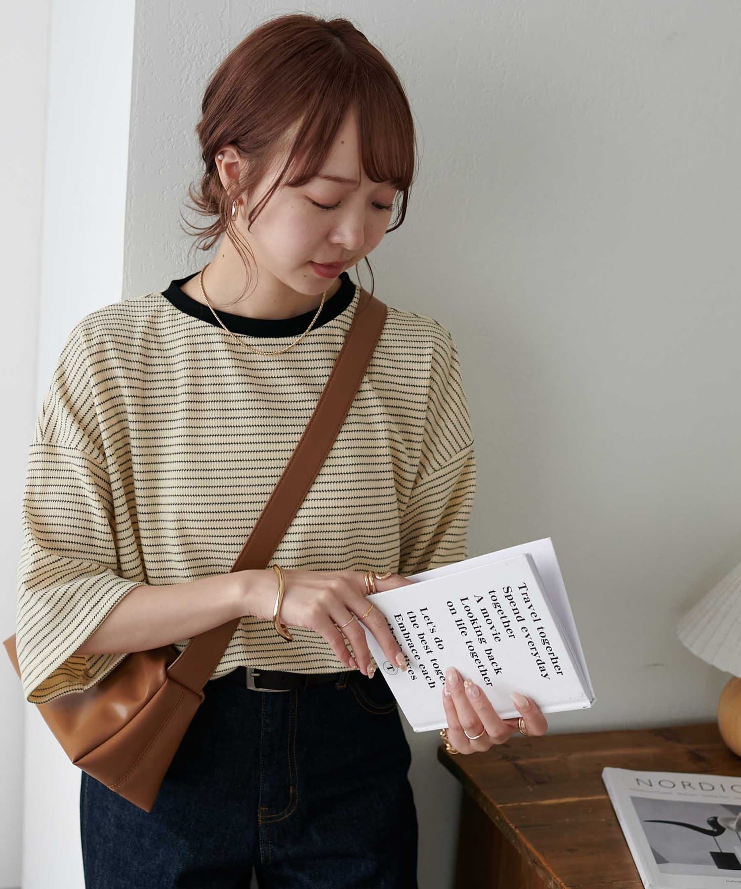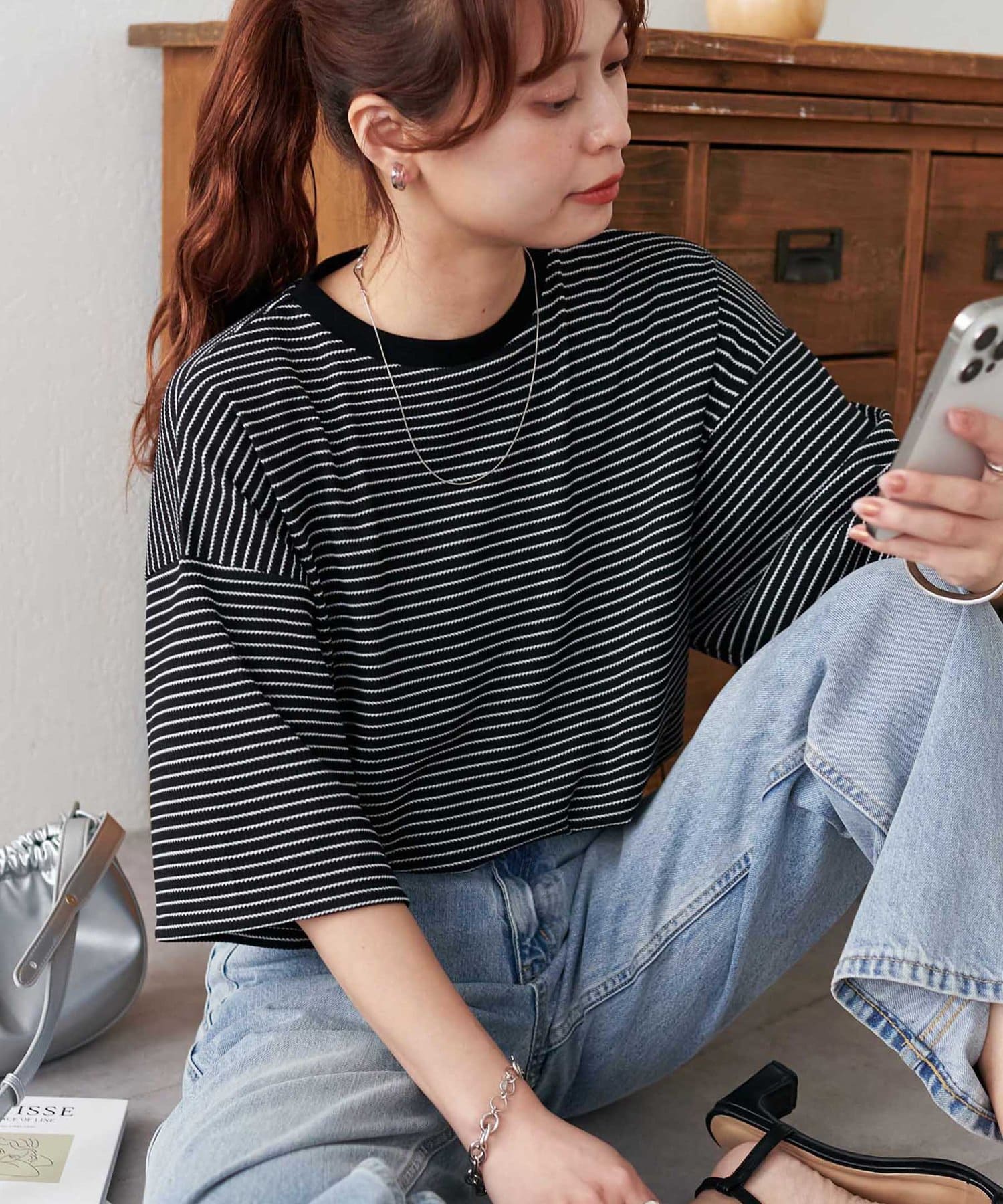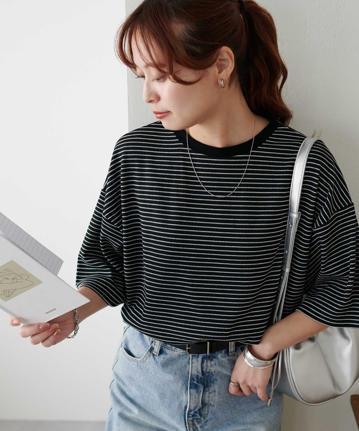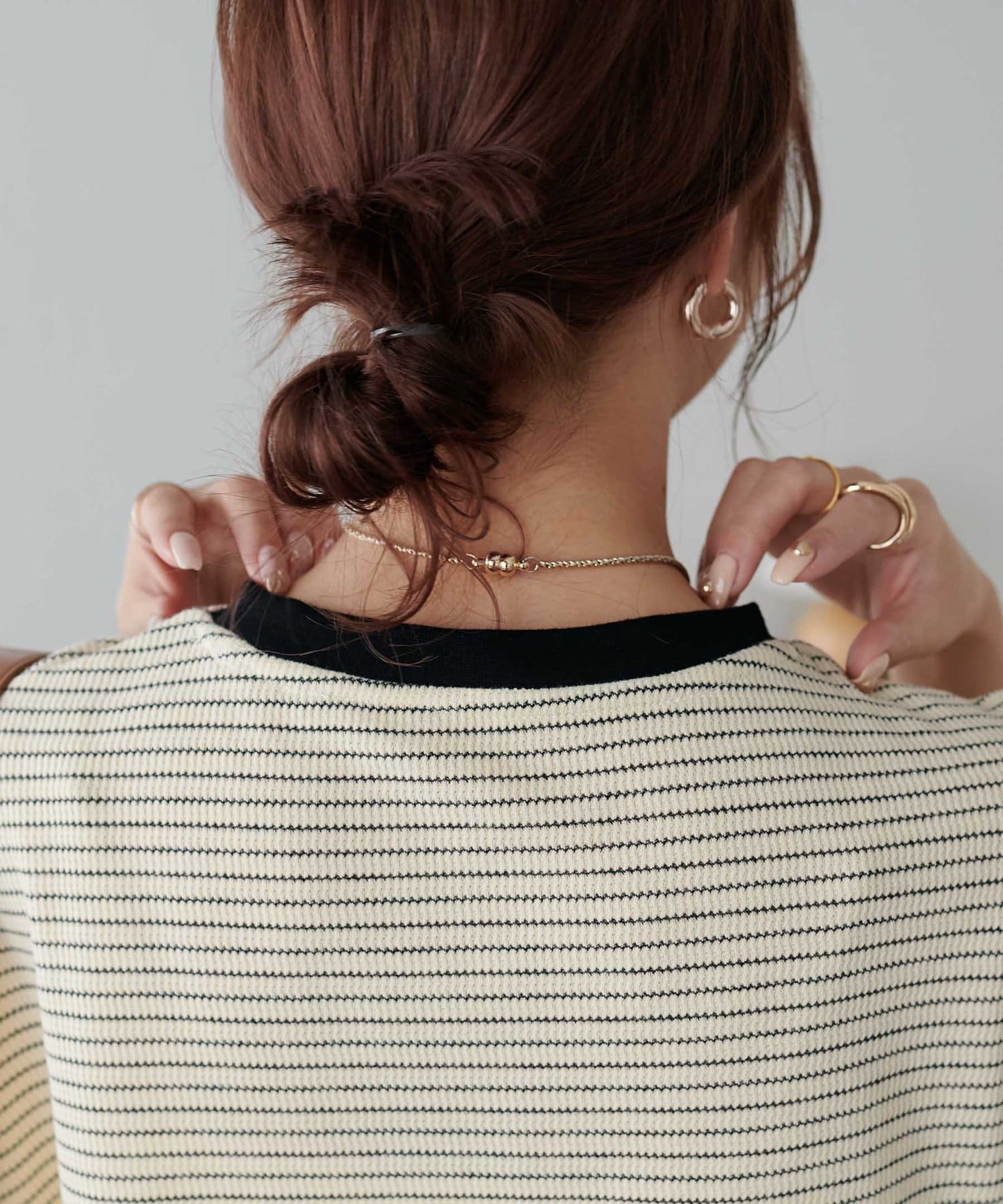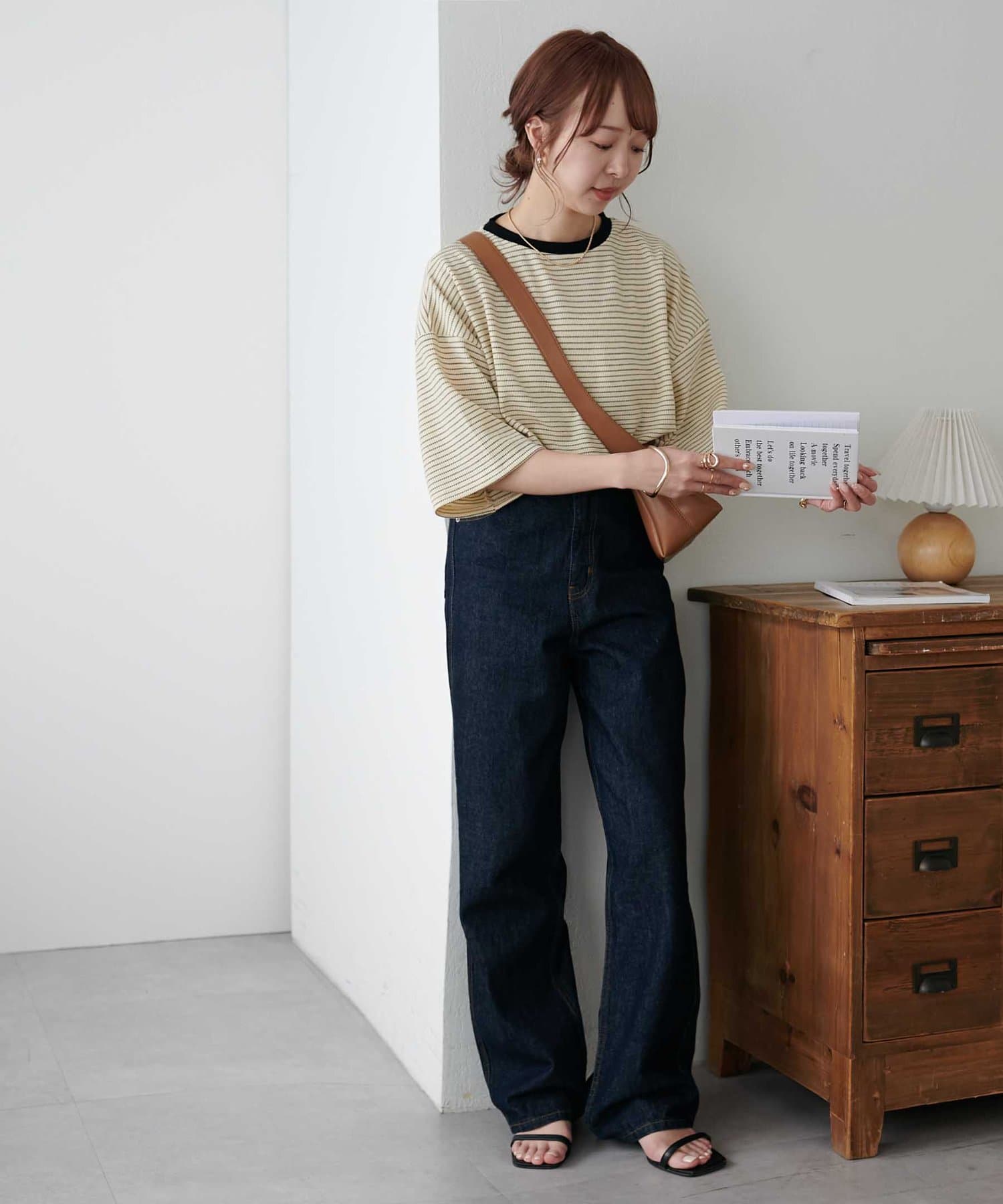 162cmスタッフ(Mサイズ着用):ワッフルの素材が可愛らしい!シンプルなので、小物合わせで様々な雰囲気に変えられるのも魅力的♡