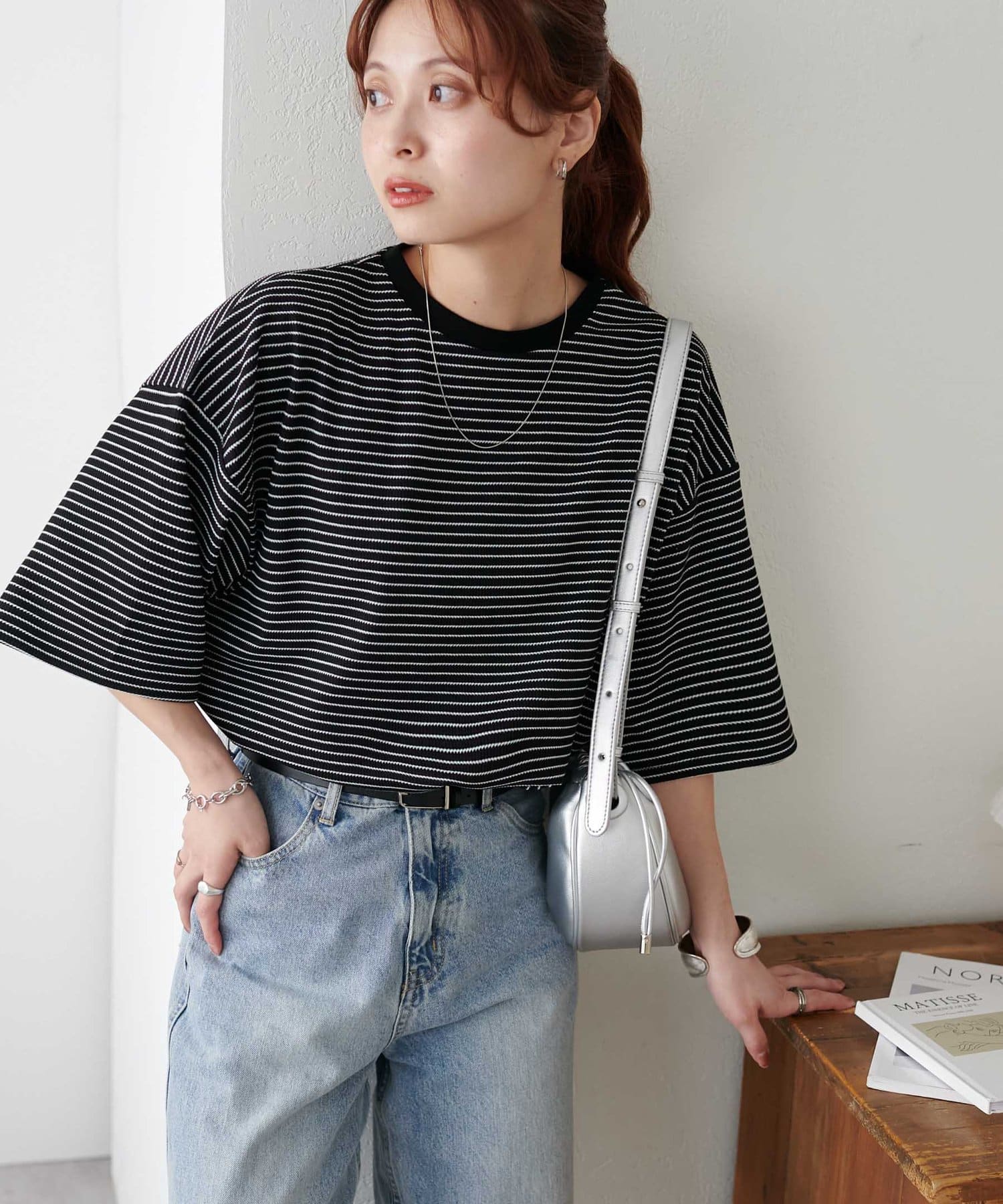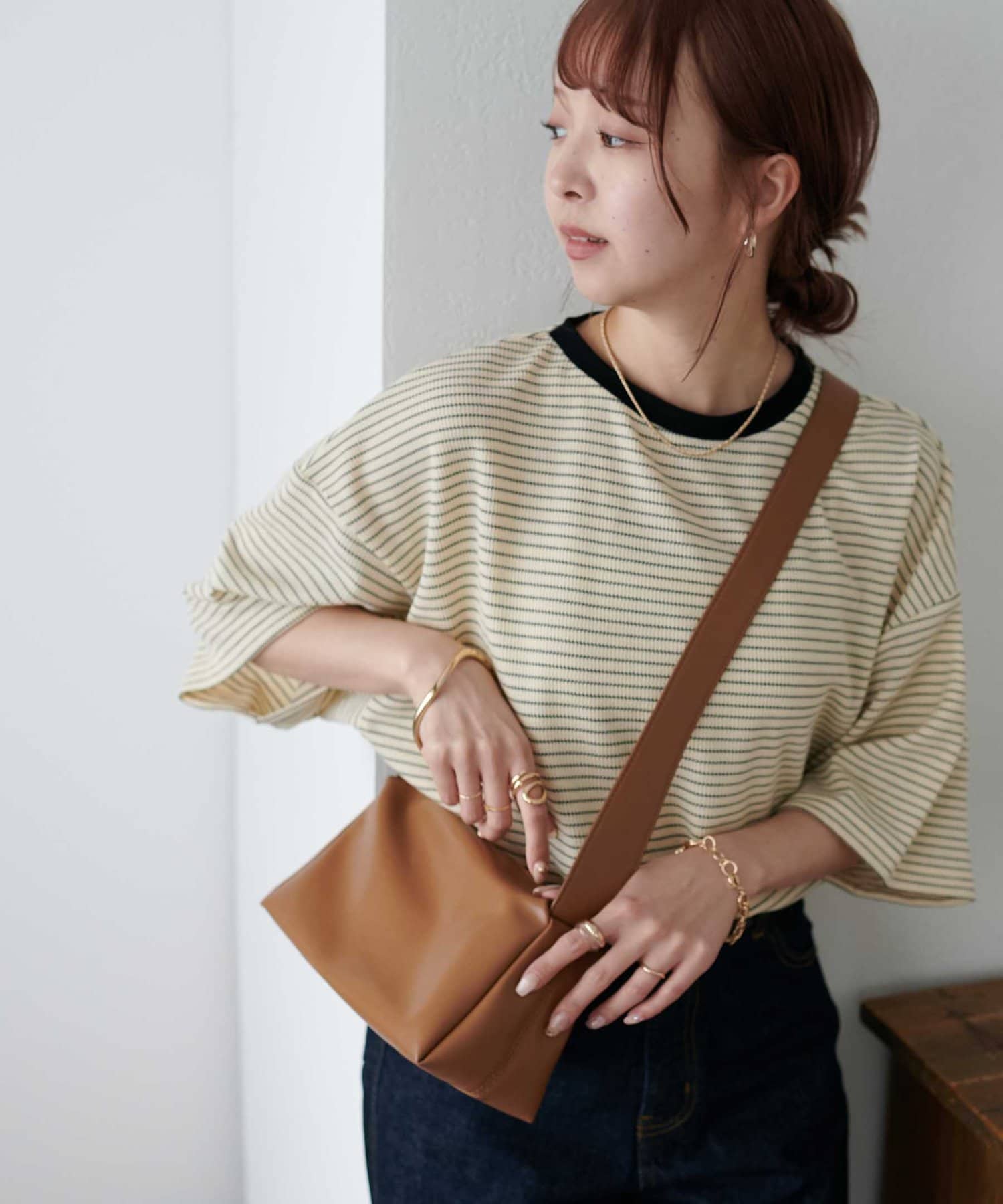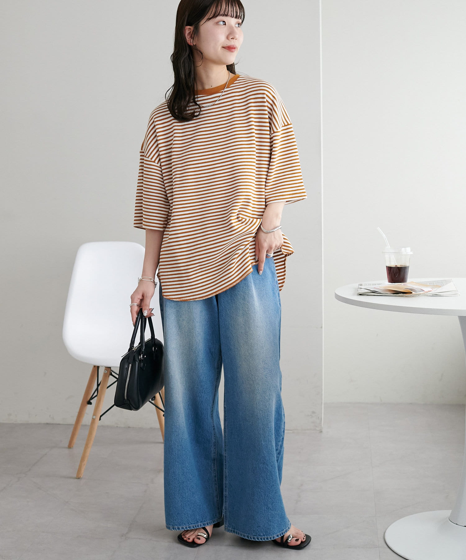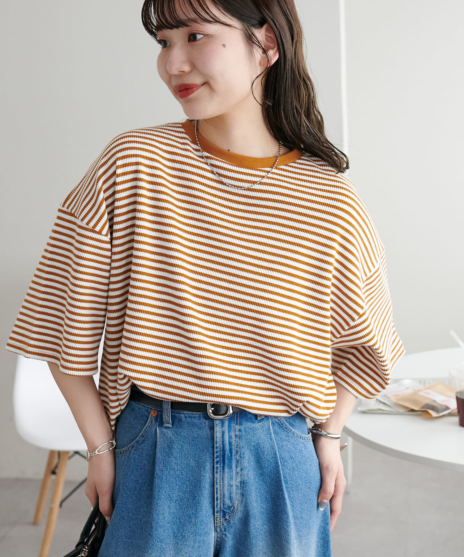 153cmスタッフ(Mサイズ着用):程よくゆとりがあって抜け感が出る一枚!