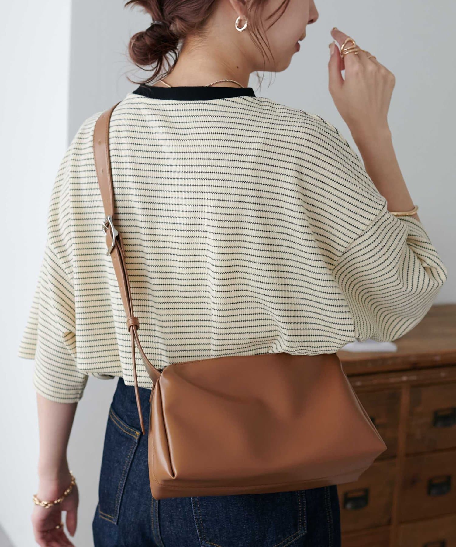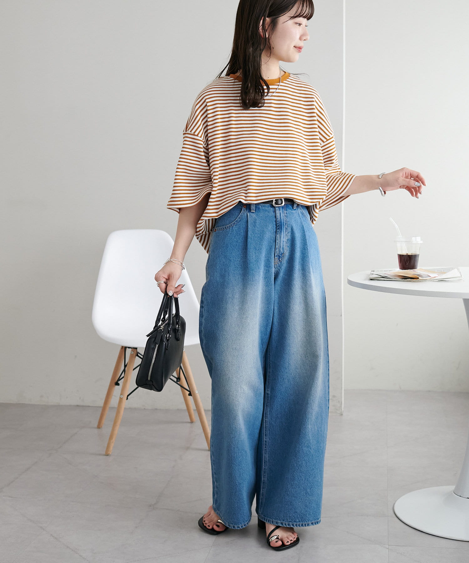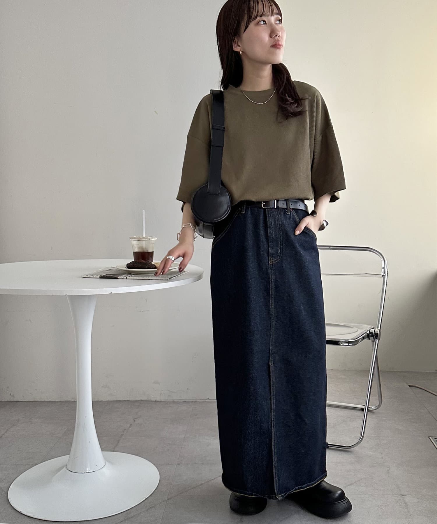 ・長めの丈感で腰まわりを自然にカバー