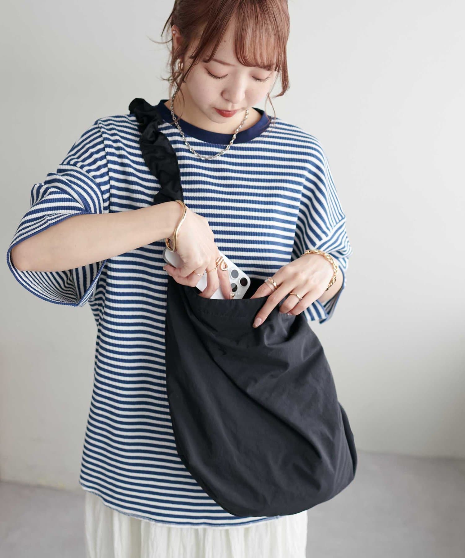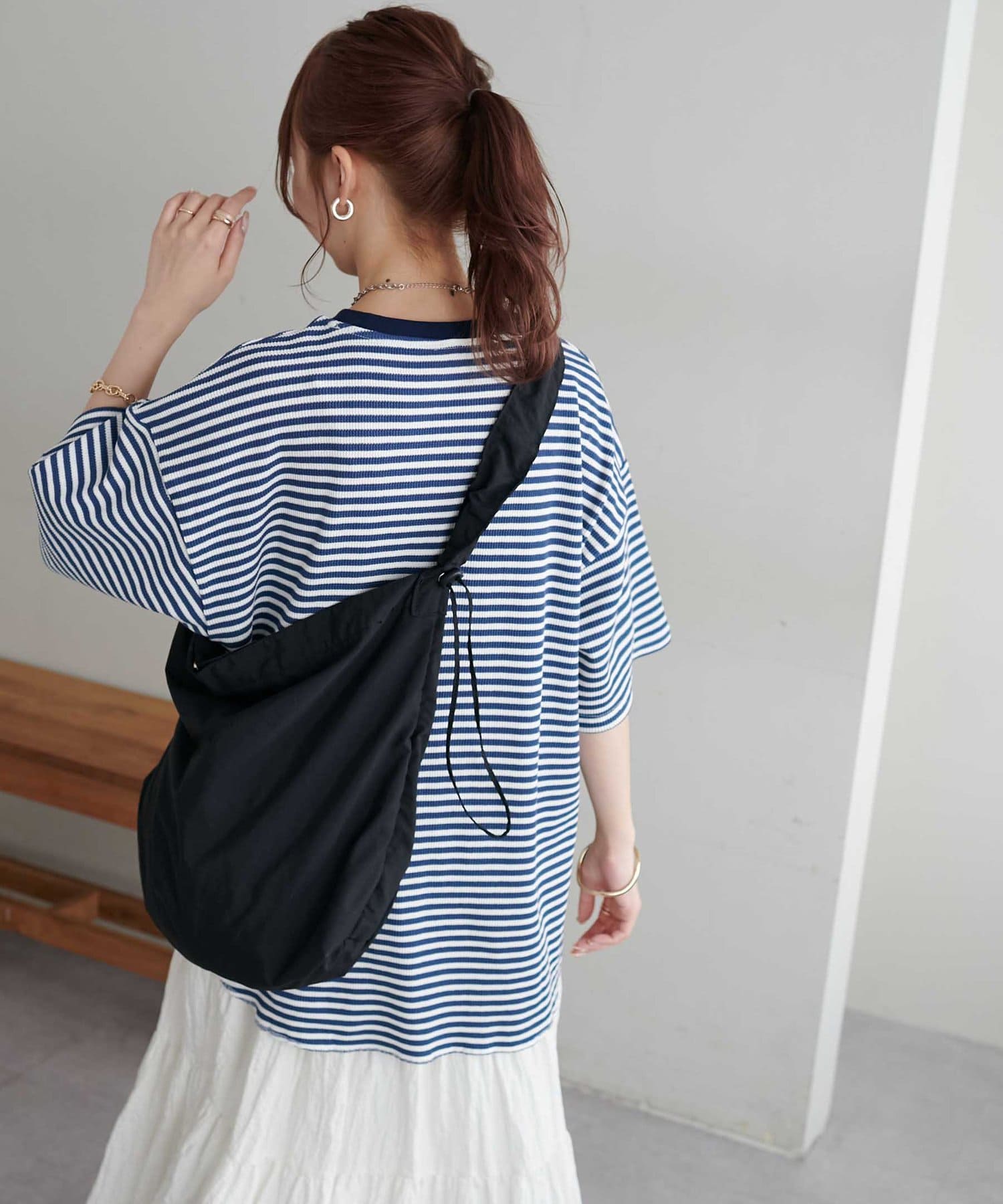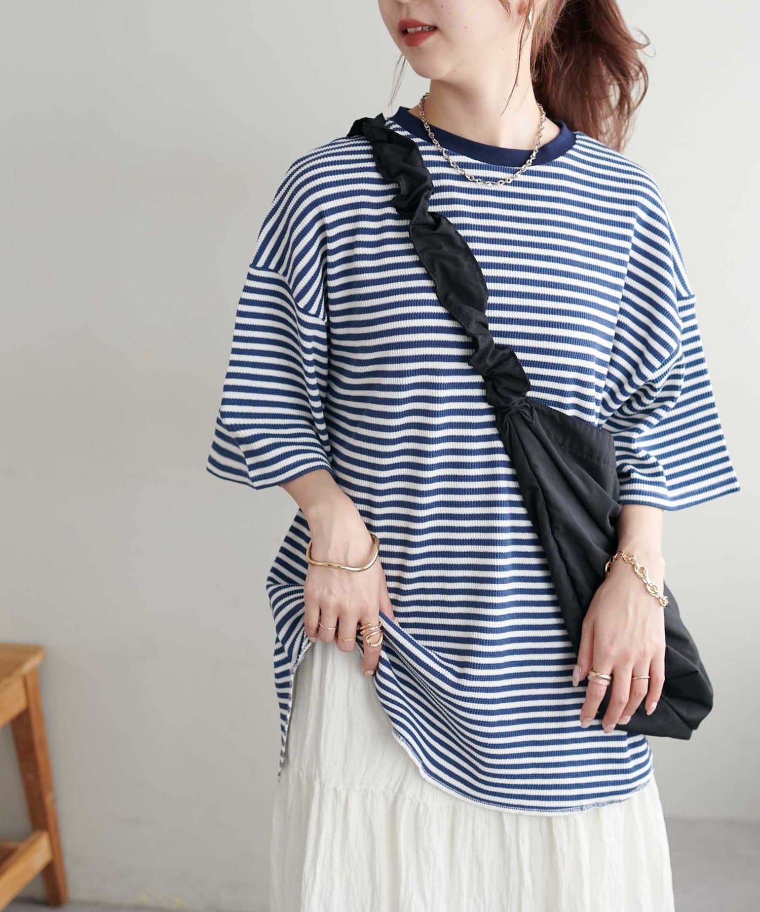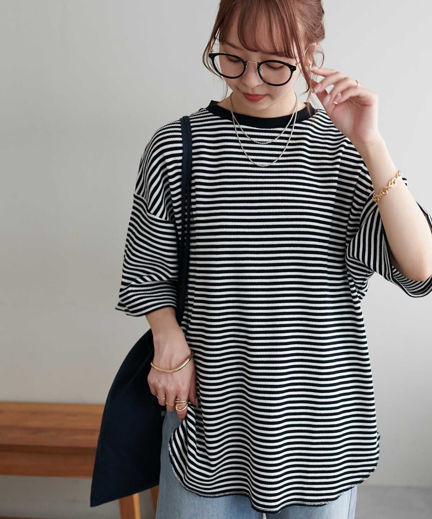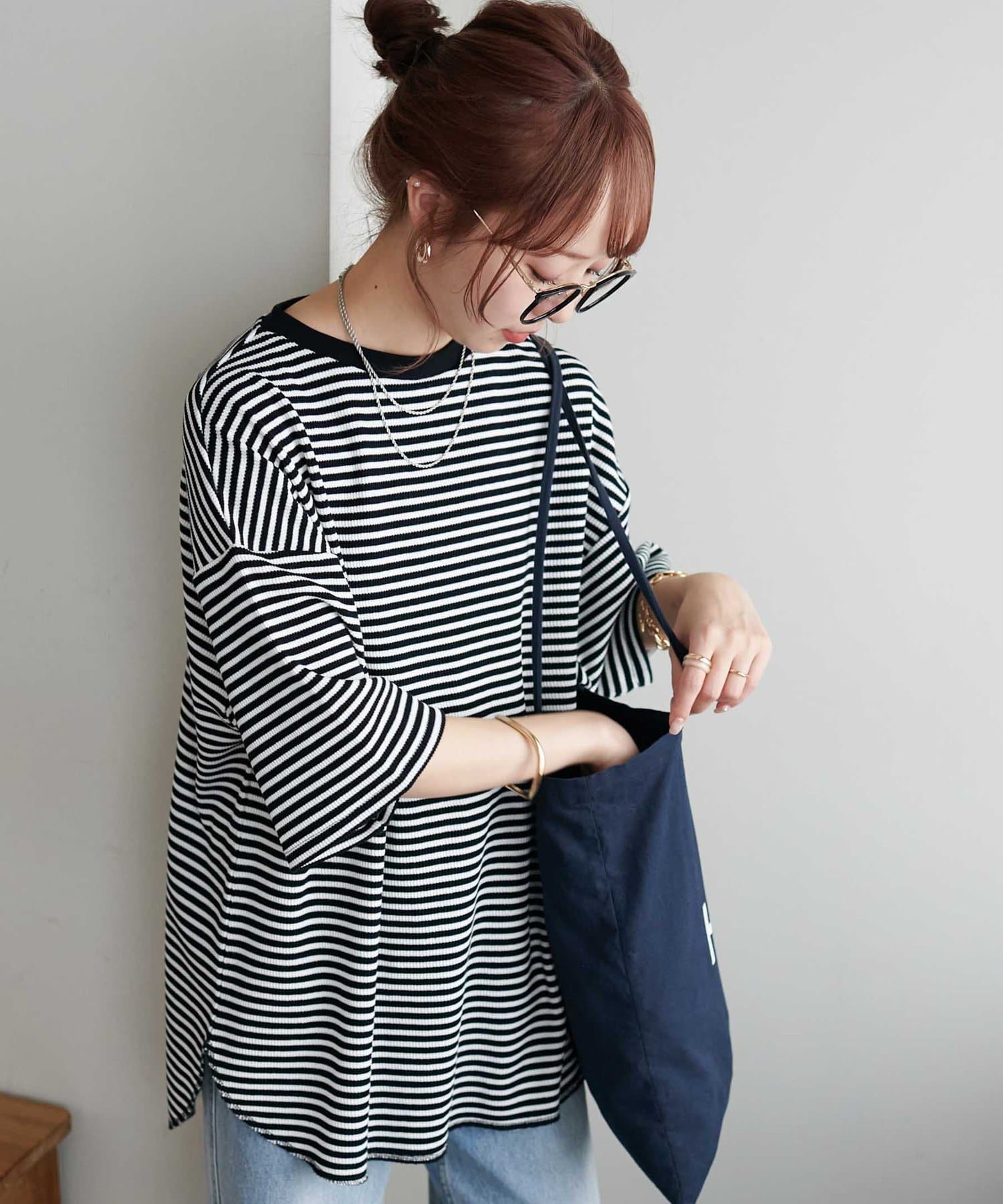 162cmスタッフ(Mサイズ着用):ワッフルの素材が可愛らしい!シンプルなので、小物合わせで様々な雰囲気に変えられるのも魅力的♡