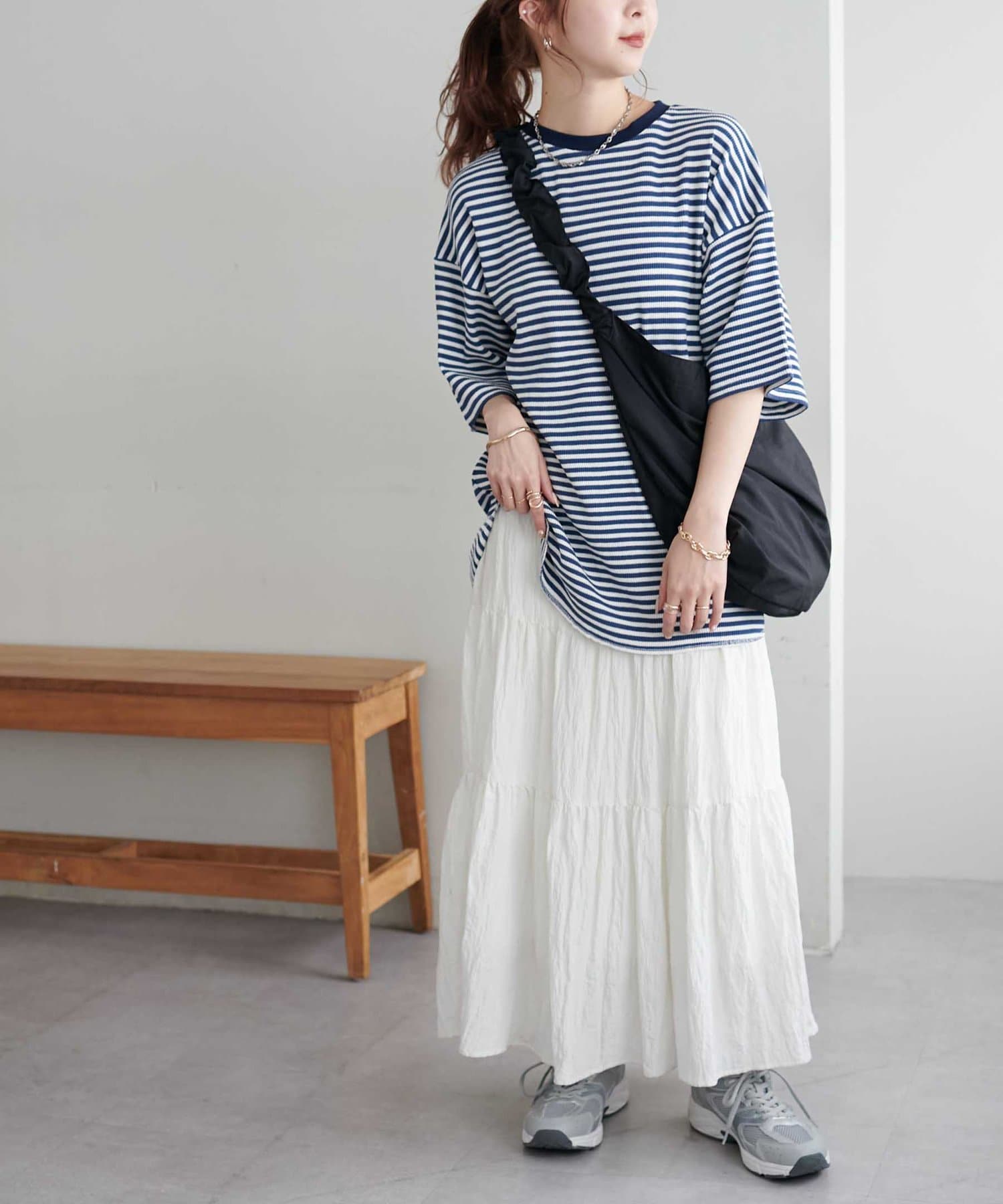 アウトスタイルでスカートと合わせてゆるっと着るのがおすすめです♪