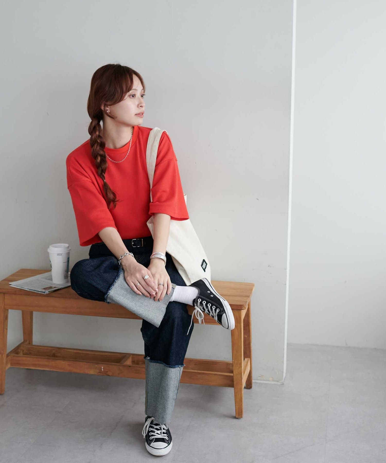 ・シンプルなデザインなので、どんなボトムスとも相性抜群です!