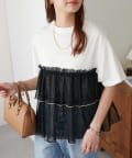 1枚で華やかな印象になるチュールドッキングTシャツ