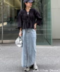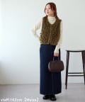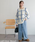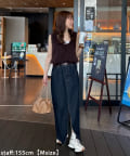 159cmスタッフ(Mサイズ着用):気になる腰回りもカバーしてくれます。タックインすることでメリハリのあるコーデに◎