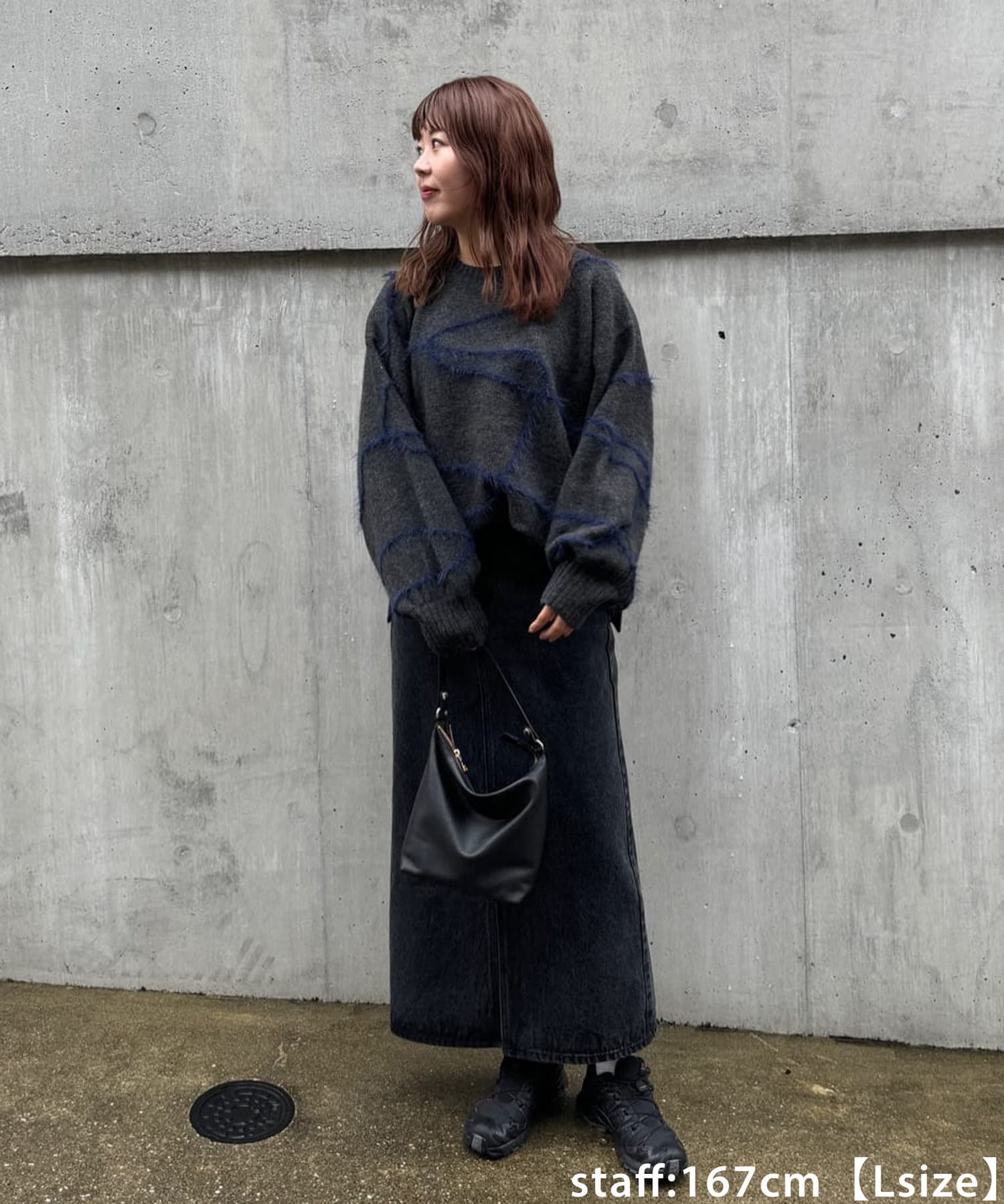 167cmスタッフ(Lサイズ着用):3サイズ展開なので低身長から高身長までオススメのアイテム。DISCOTオリジナルの紙パッチもポイントです!