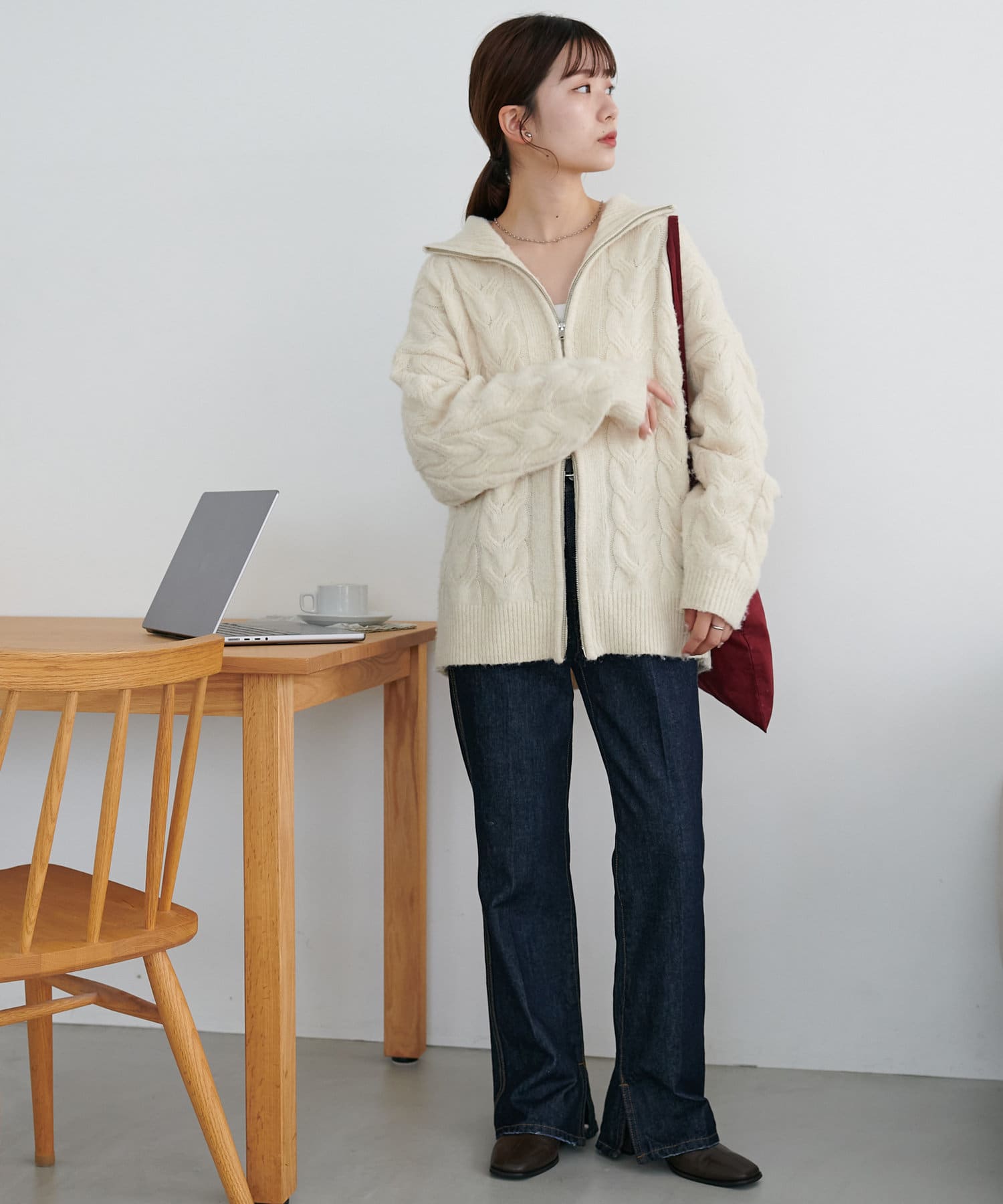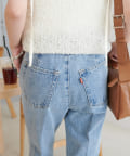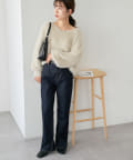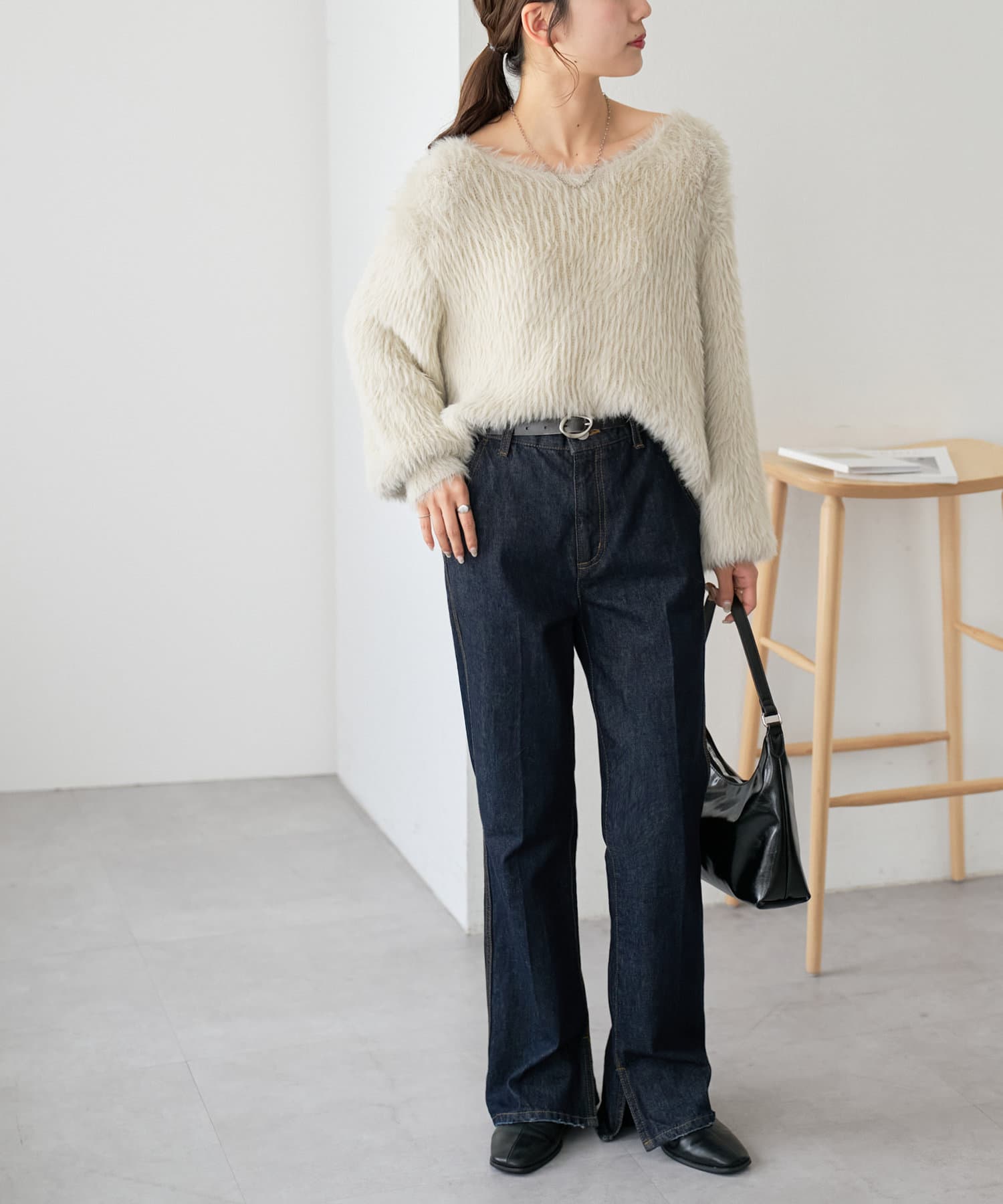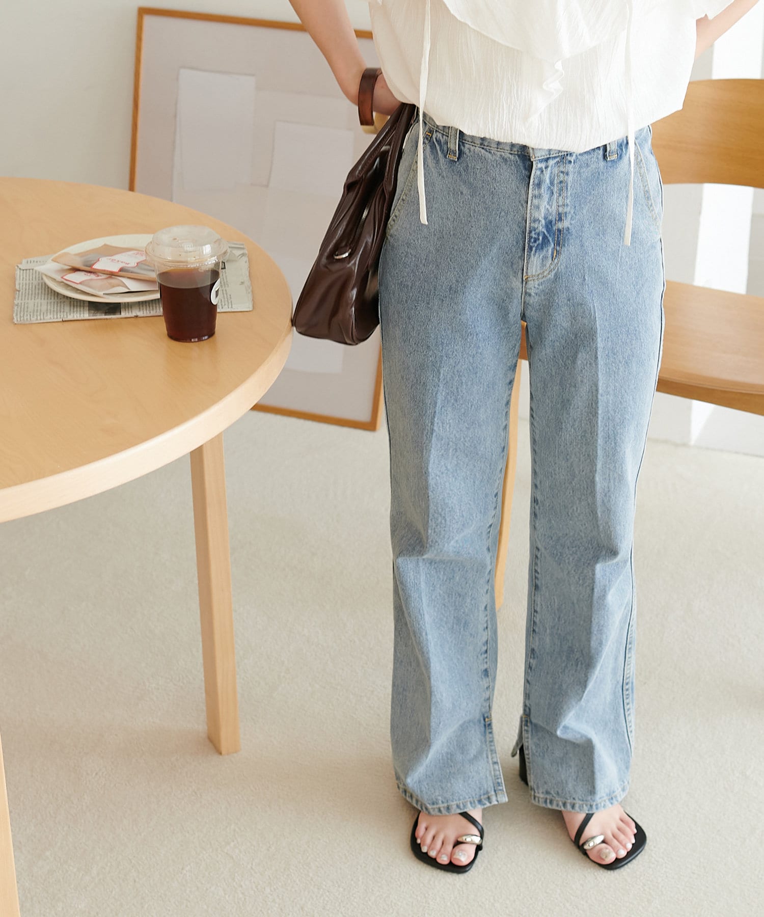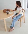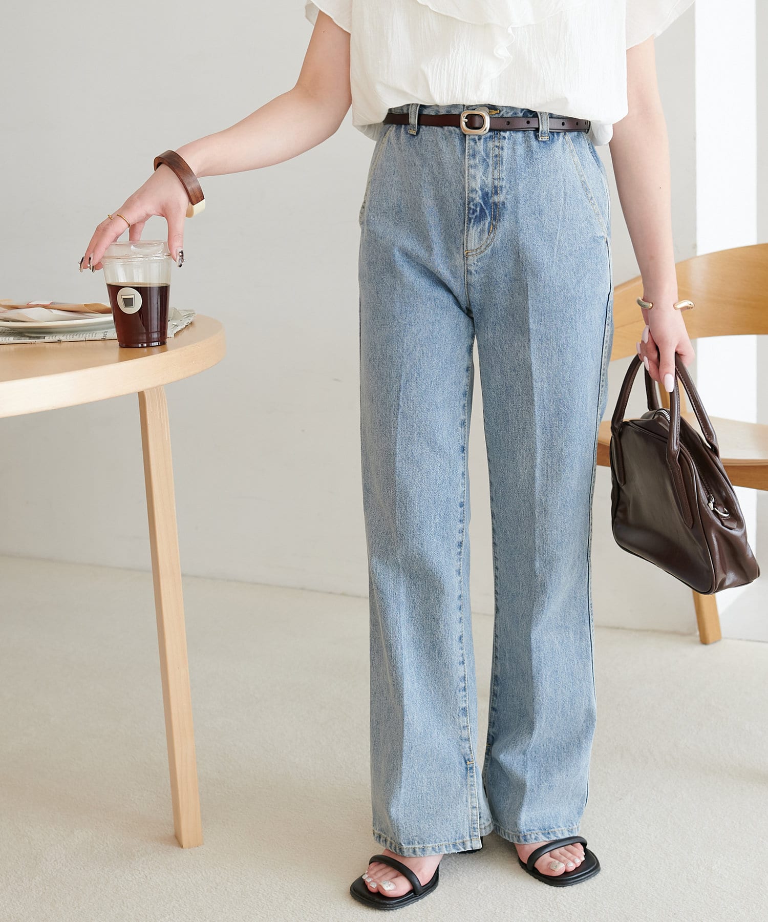 膝下からの程よい広がりとセンタープレスデザインが美脚効果をもたらす秘訣です。カジュアルながらも裾にスリットを入れることにより、抜け感と女性らしさをプラスします。カットオフデザインがなくなったことで、よりスッキリとした印象に。