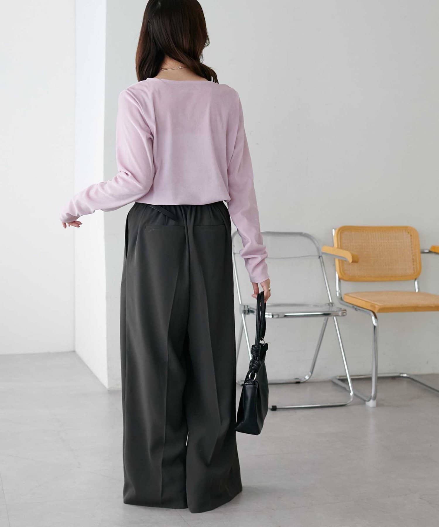 程よく伸縮性のある生地感で、リラックスして着用を楽しめるアイテムです。