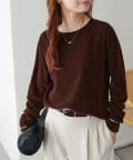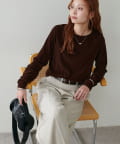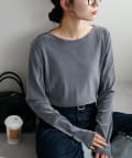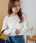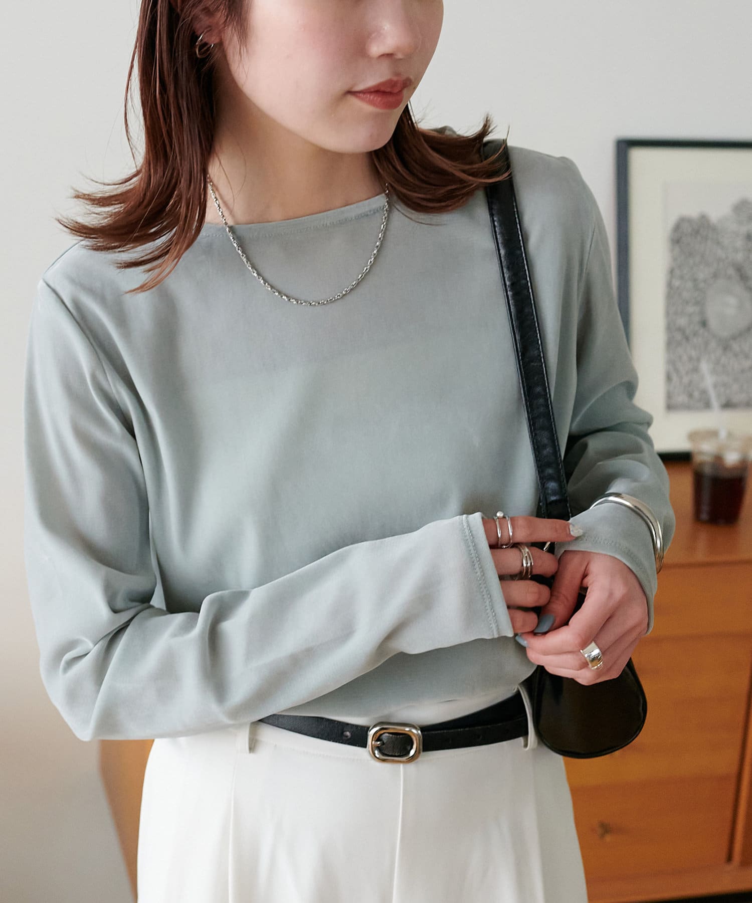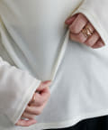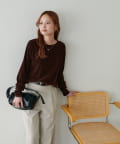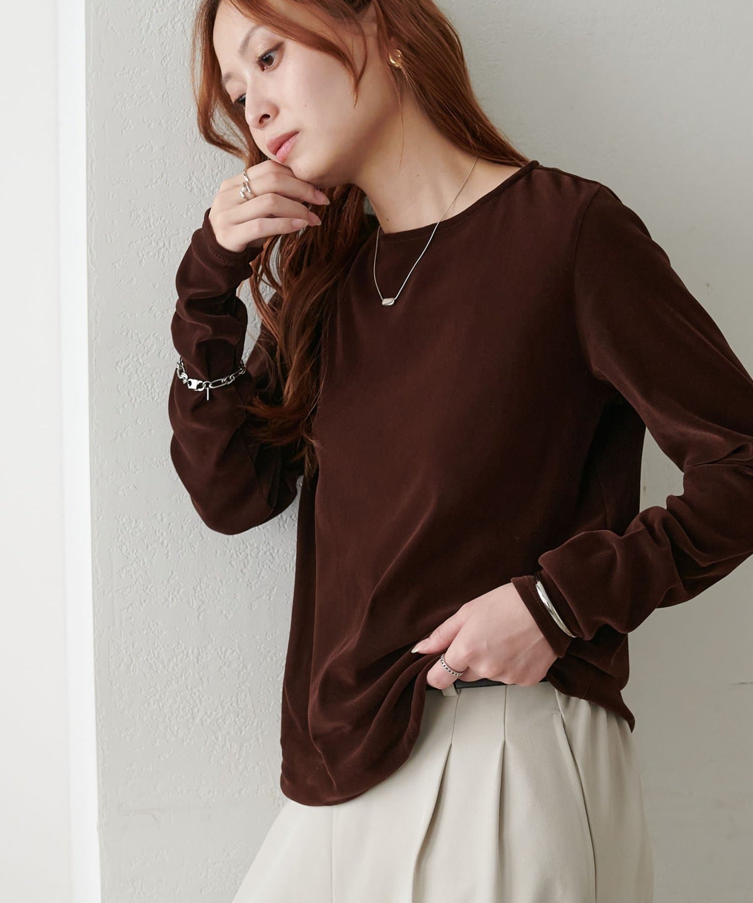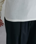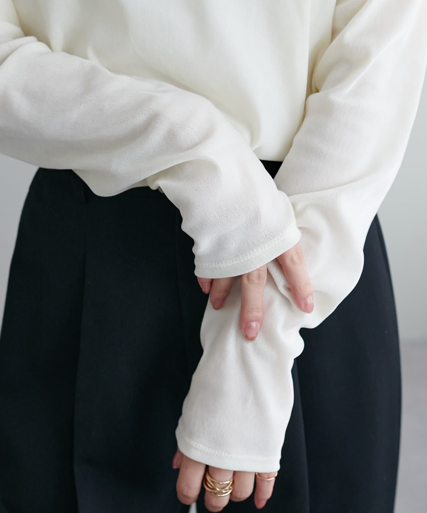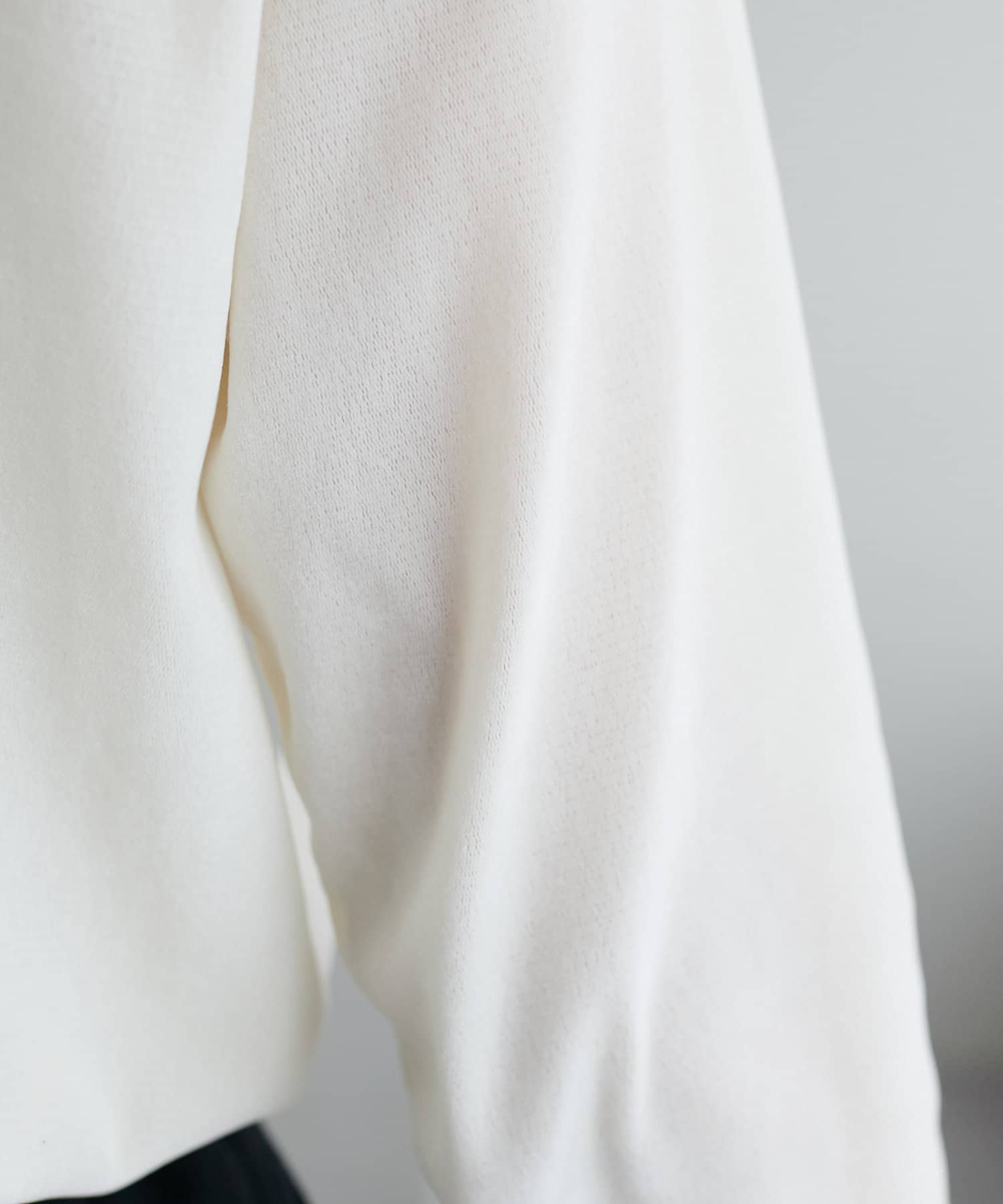 やや長めのお袖は一枚で着たときは手元にくしゅくしゅとした柔らかさを与え、ニットやジャケットのインナーで着たときは袖口からちらっと見えしやすい丈感です◎
