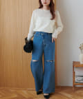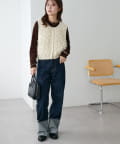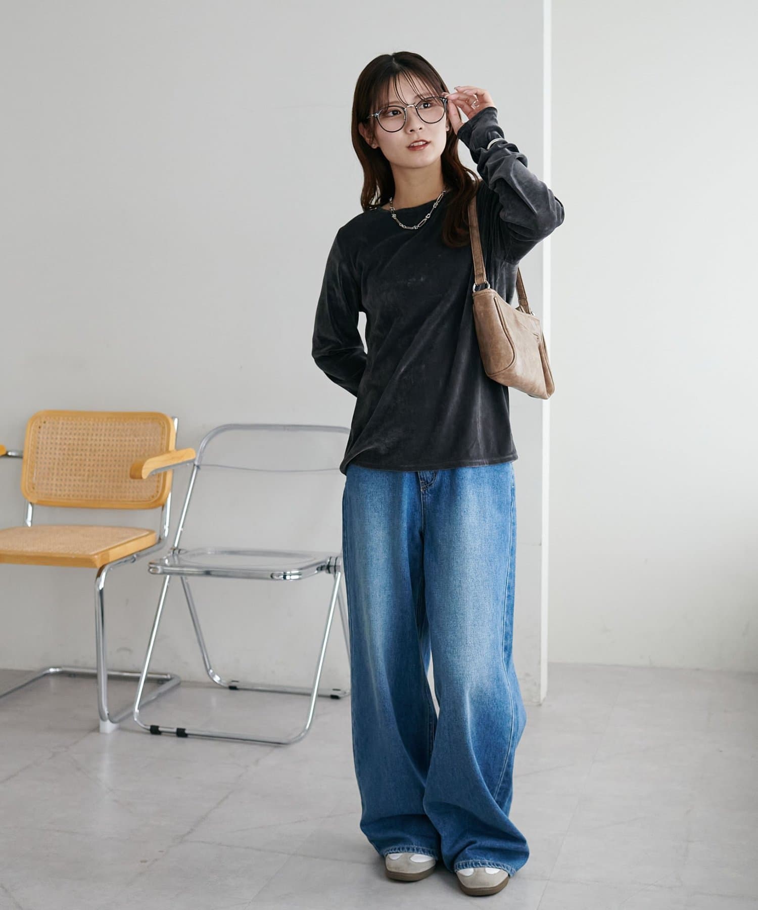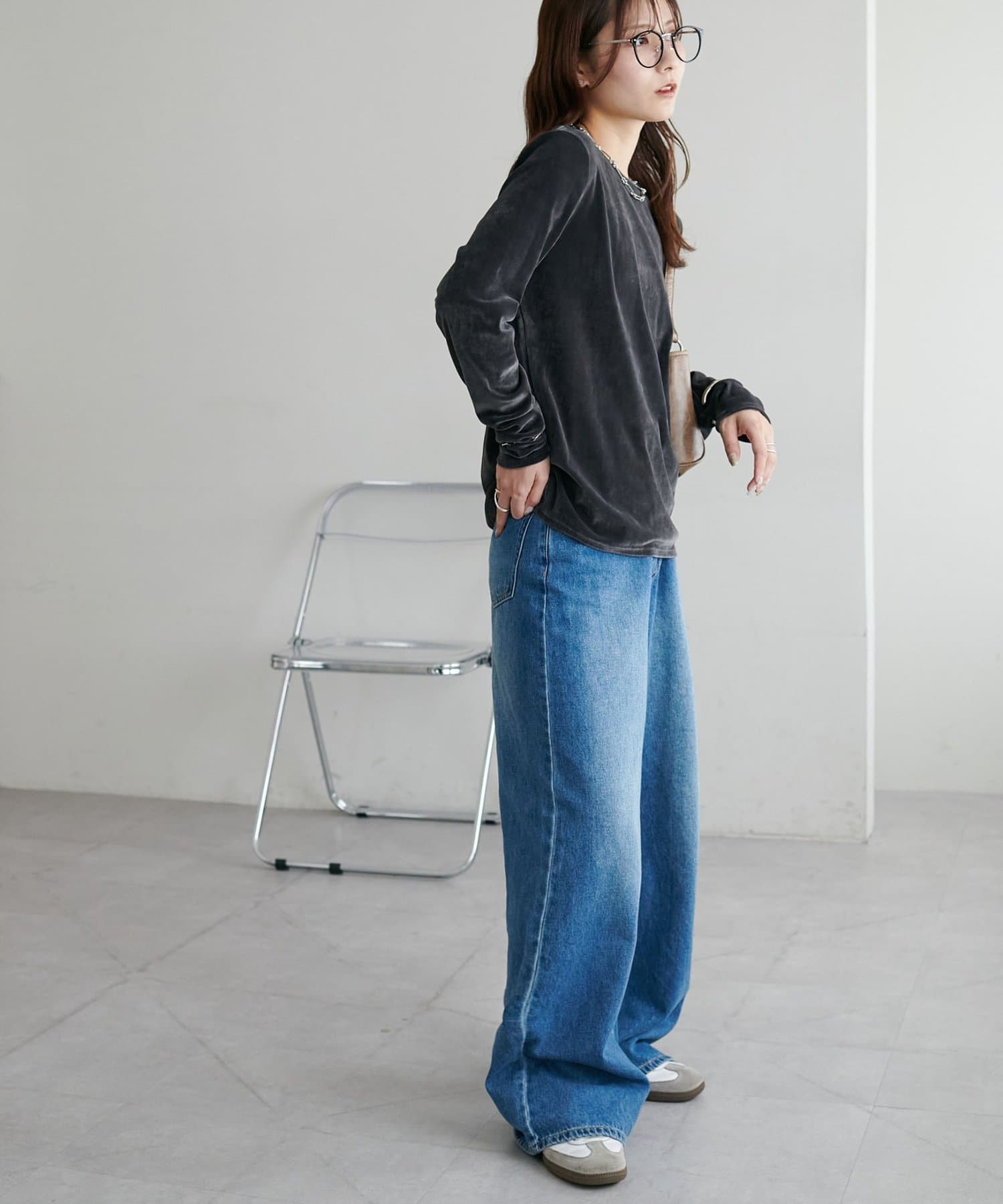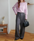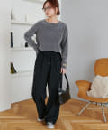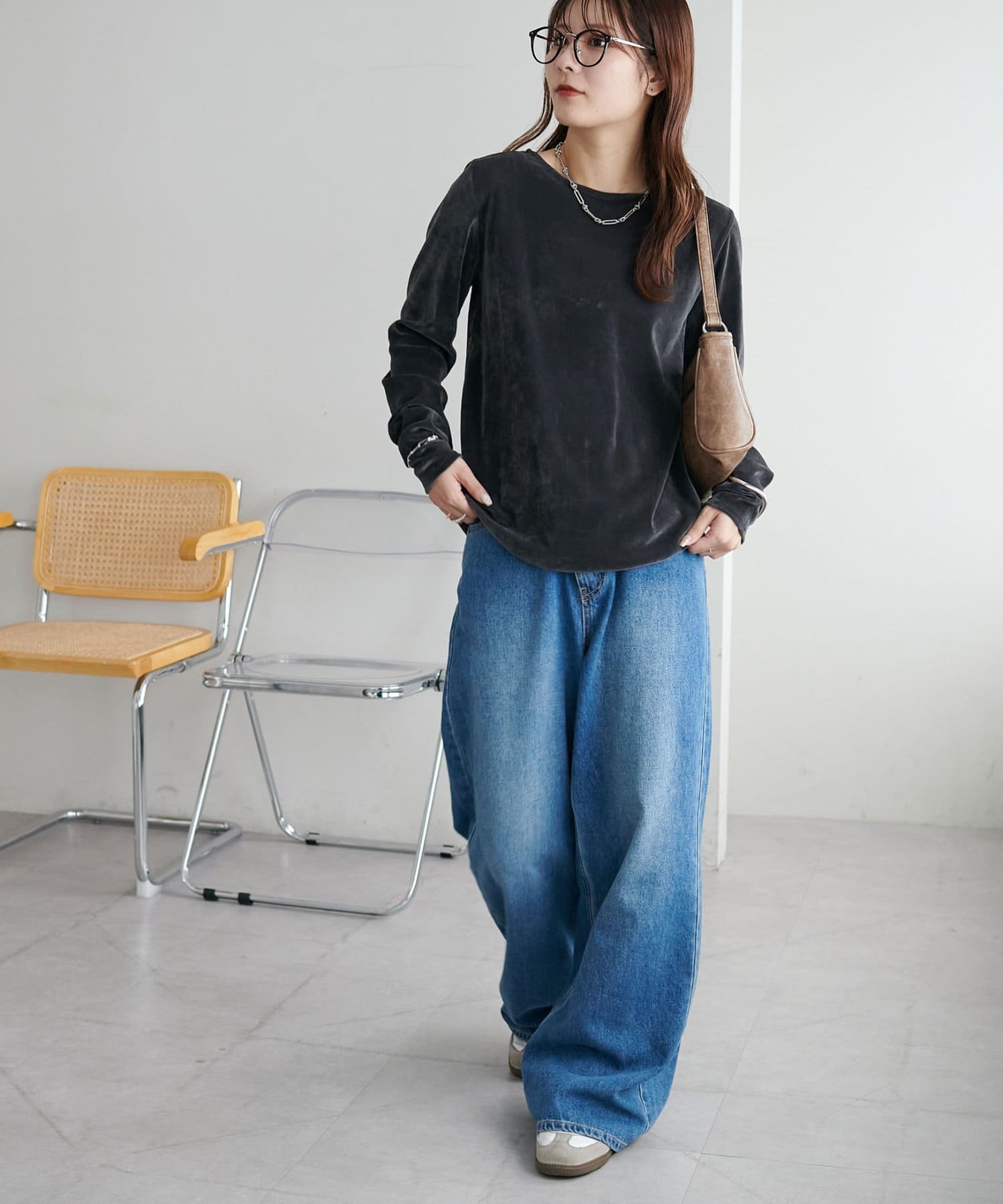 デニムやスウェットパンツと合わせたシンプルなコーデも素材感があることでおしゃれシンプルに決まります◎